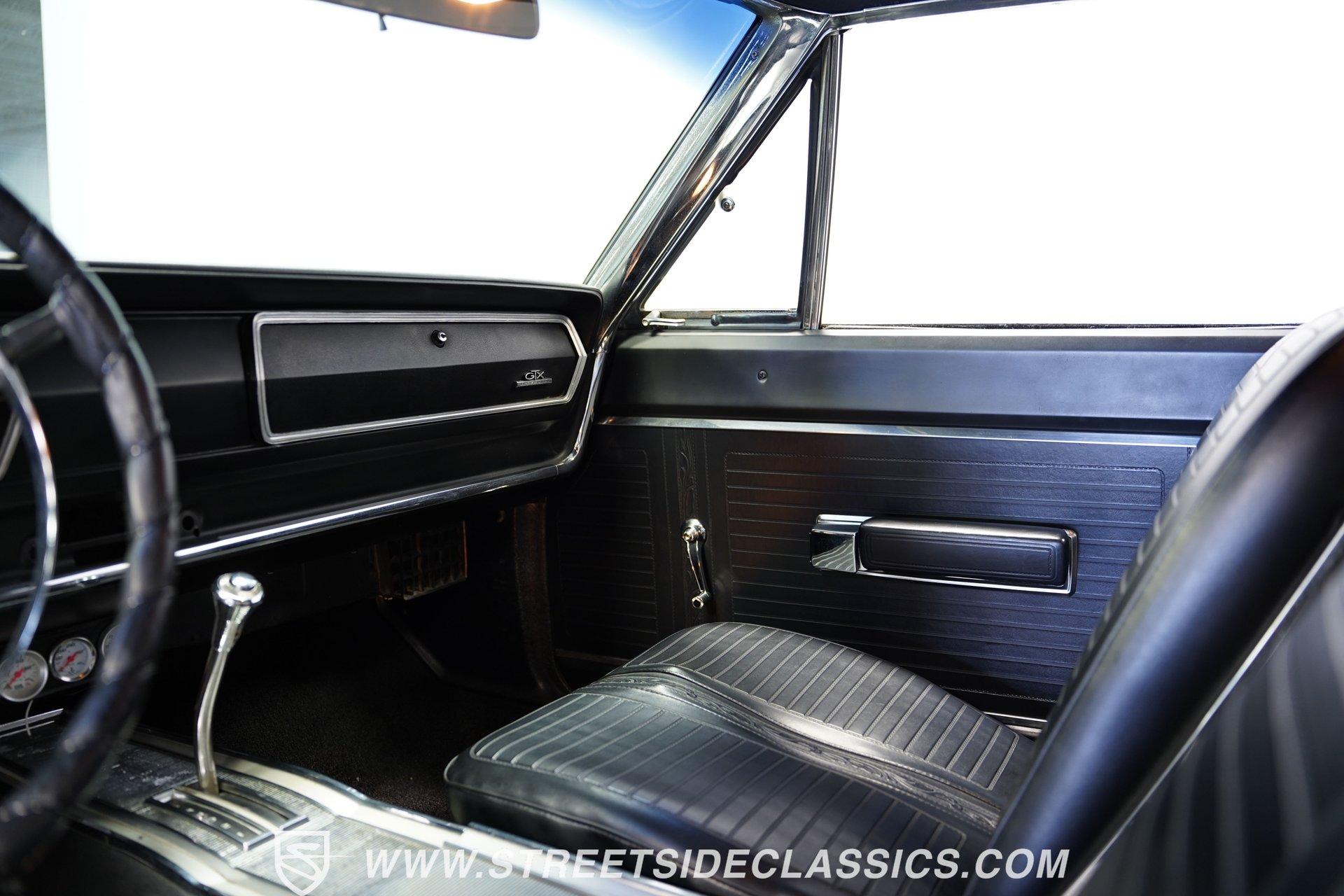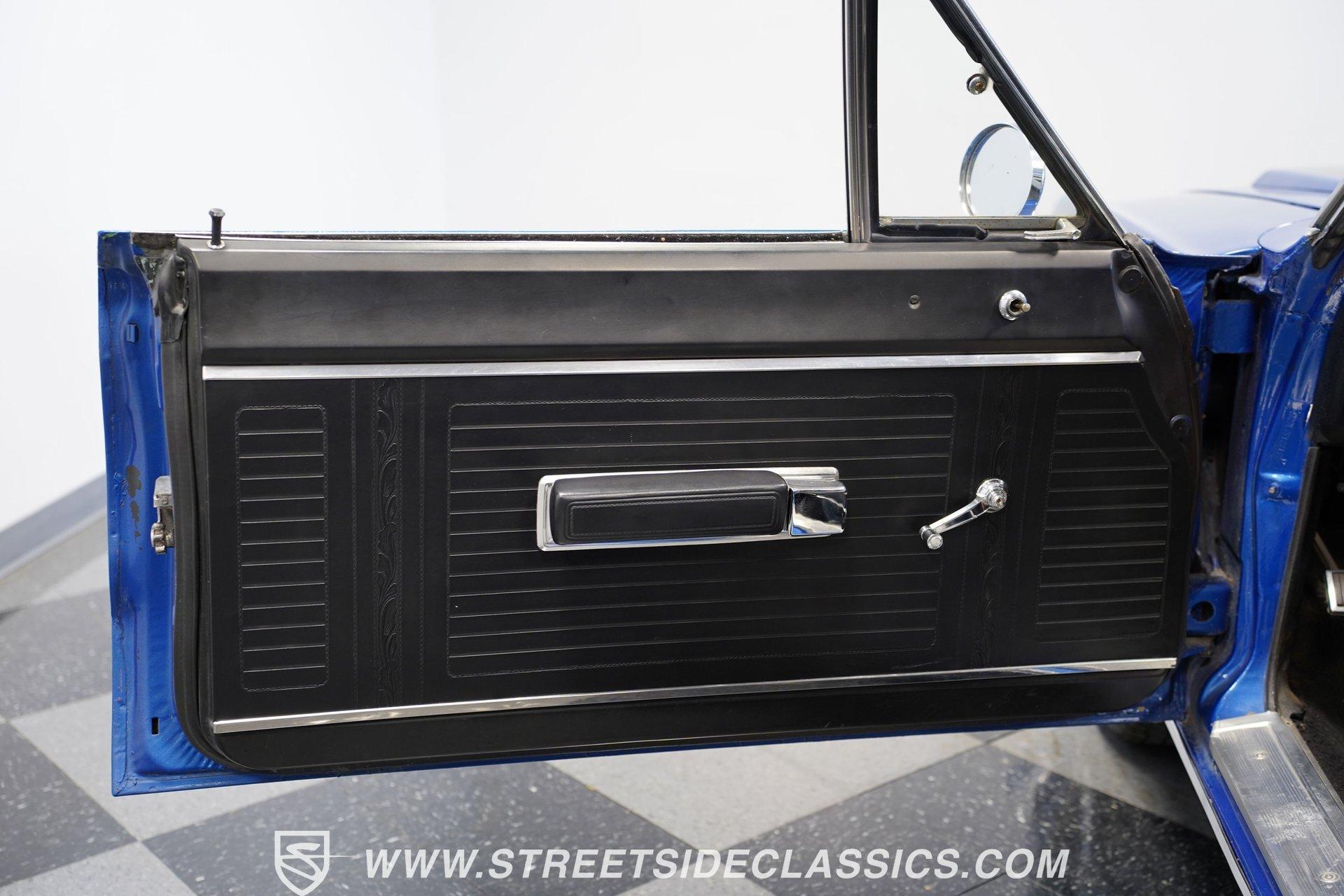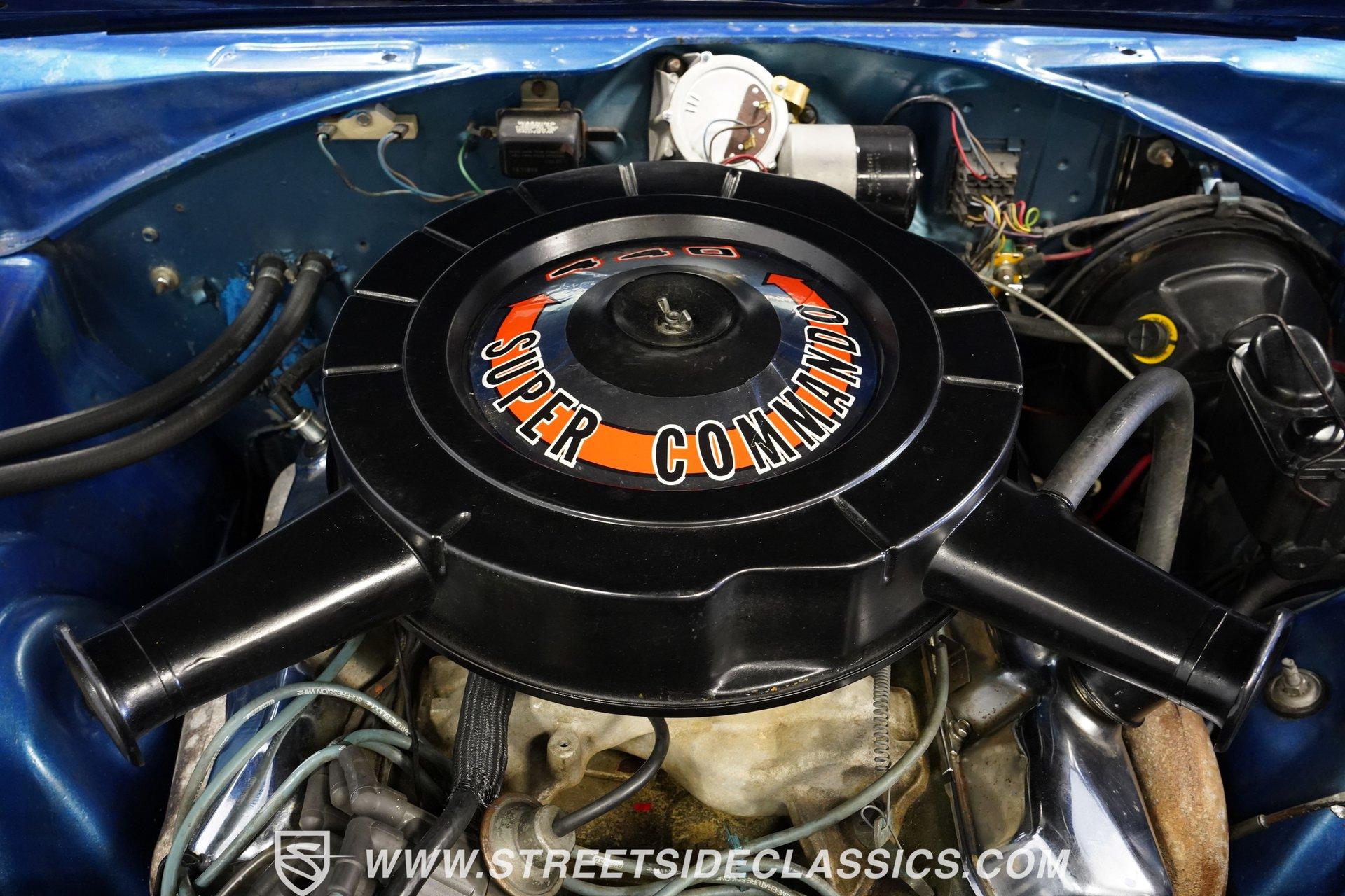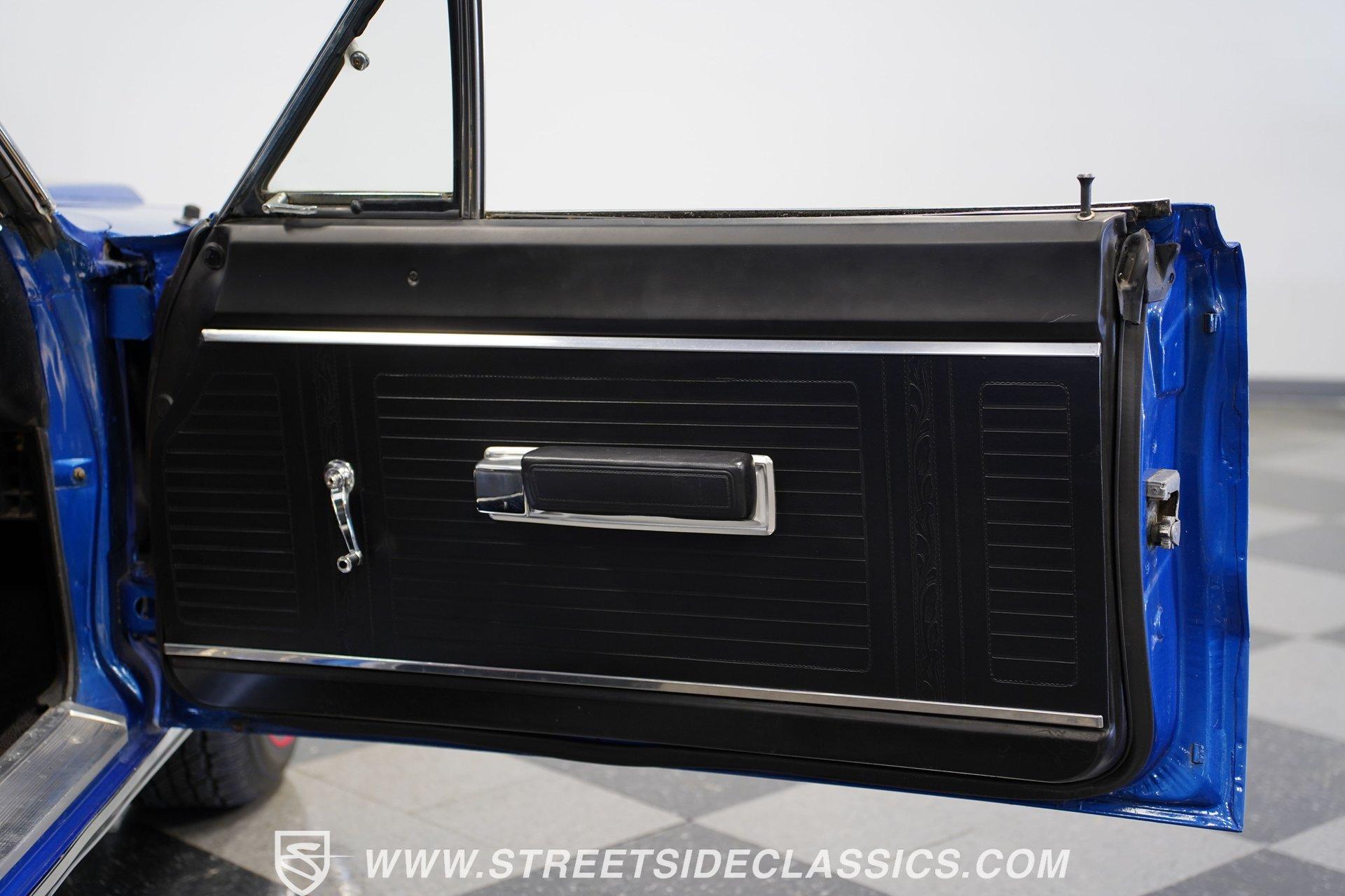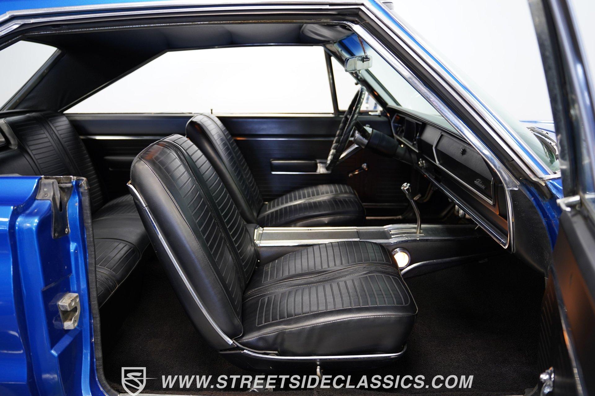 Born in 1967 as the inaugural year of Plymouth's performance flagship, this GTX shows off its blue finish with authority. The two-door design features clean, uncluttered lines that allow the color to make its statement without unnecessary distractions. Chrome accents around the windows and bumpers provide perfect contrast against the blue background. The factory-styled 15-inch wheels wear 225/70R15 tires and give this muscle machine its planted stance. GTX badging on the sides and rear announce what you're looking at - pure American muscle from Plymouth's golden age. Black leather creates a bold contrast inside this GTX. The bucket seats offer lateral support during quick cornering while the console-mounted shifter falls naturally to hand. The dash presents information clearly through the gauge cluster with its 5-digit odometer. Door panels display a distinctive floral pattern that adds visual interest without being flashy. The center console adds both function and style to the cabin layout. Black carpeting covers the floor area while the headliner remains properly attached above. Every detail works together in a unified black color scheme that lets you focus on the driving. A massive 440 cubic inch V8 gives this GTX its go-fast credentials. Cast on October 25, 1966, this period-correct big block breathes through a single four-barrel carburetor mounted on an Edelbrock Performer intake manifold. The engine bay shows off polished valve covers and a 440 Super Commando air cleaner for improved airflow. An A727 TorqueFlite 3-speed automatic transmission handles the power without fuss. Dual exhaust with aftermarket mufflers produces the appropriate V8 sound. Power steering combines with power brakes for easy control, while torsion bars with a sway bar manage the handling dynamics. HIGHLIGHTS: 440 V8 Engine A727 TorqueFlite 3-Speed Automatic Transmission Single 4-Barrel Carburetor Edelbrock Performer Intake Manifold 440 Super Commander Air Cleaner Dual Exhaust with Aftermarket Mufflers Power Drum Brakes 8 3/4 Rear Axle Torque-arm Front Suspension Torsion Bar Rear Suspension with Sway Bar Blue Exterior 15" Wheels in 225/70R15 Tires Black Leather Bucket Seats with Console Power Steering 5-Digit Odometer Factory Radio in Trunk Floral Pattern Door Panels Extra Wiper Motor This 1967 Plymouth GTX offers exactly what muscle car fans want - a mighty 440 V8, easy-shifting automatic, and comfort options in a great-looking package. One drive in this blue bruiser with its black leather interior will make you understand why GTX became legendary. Call today!