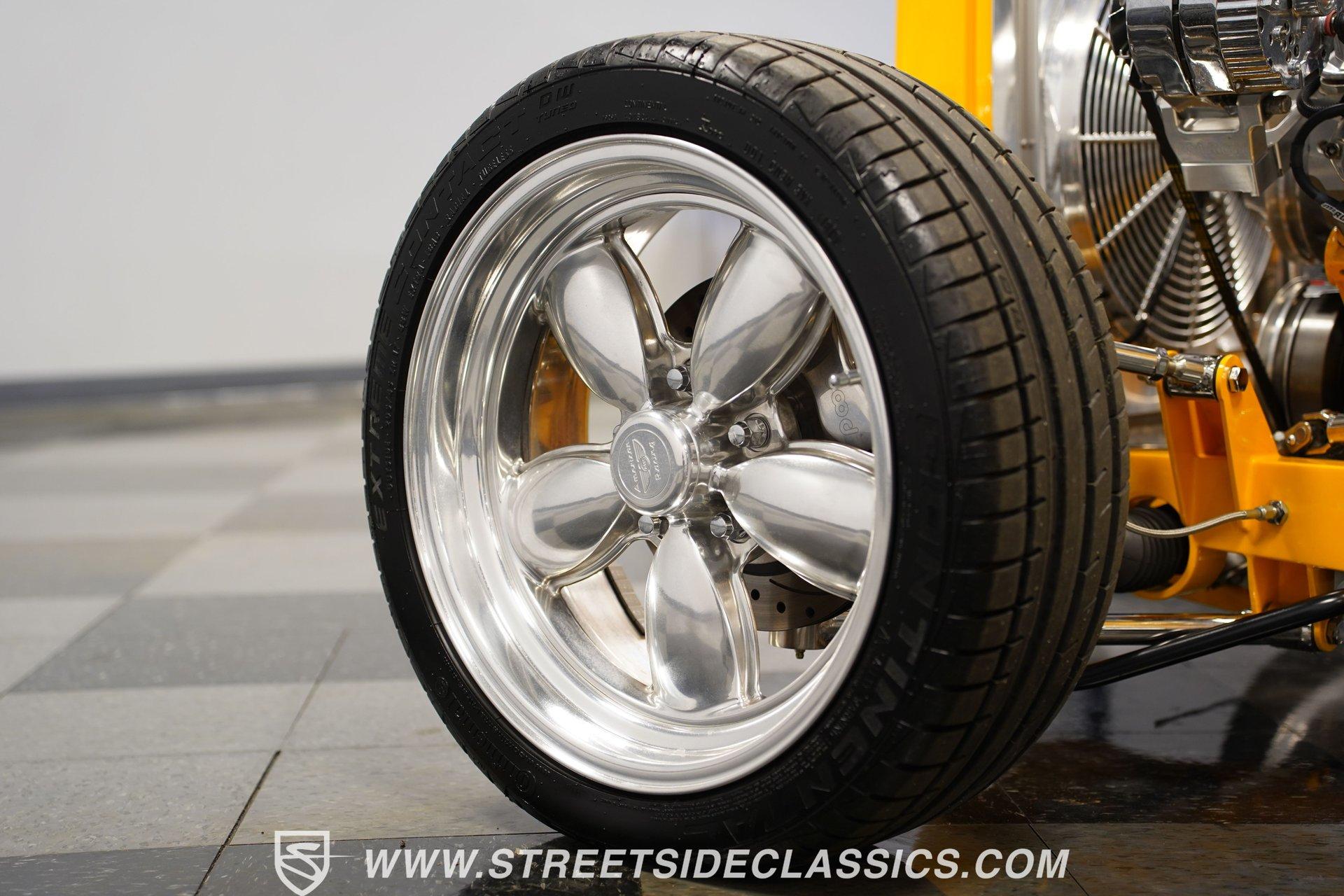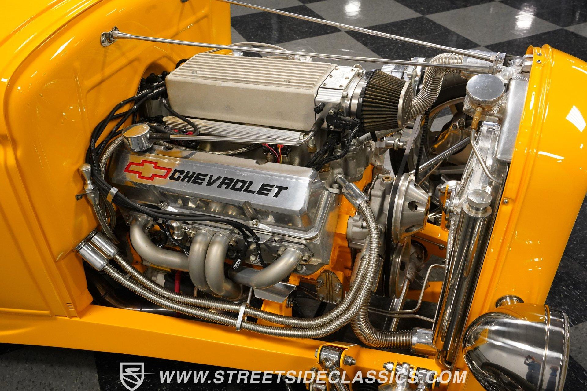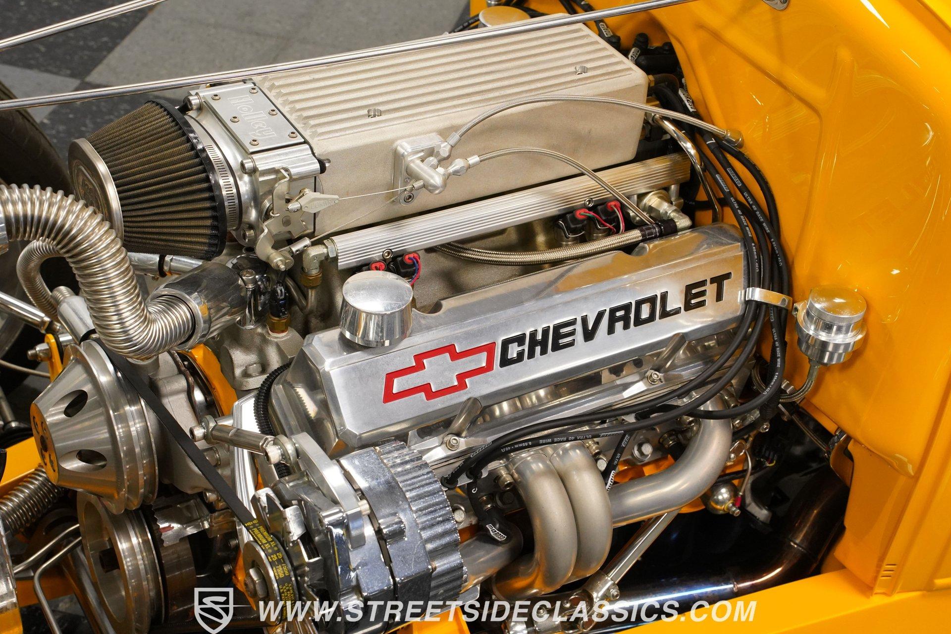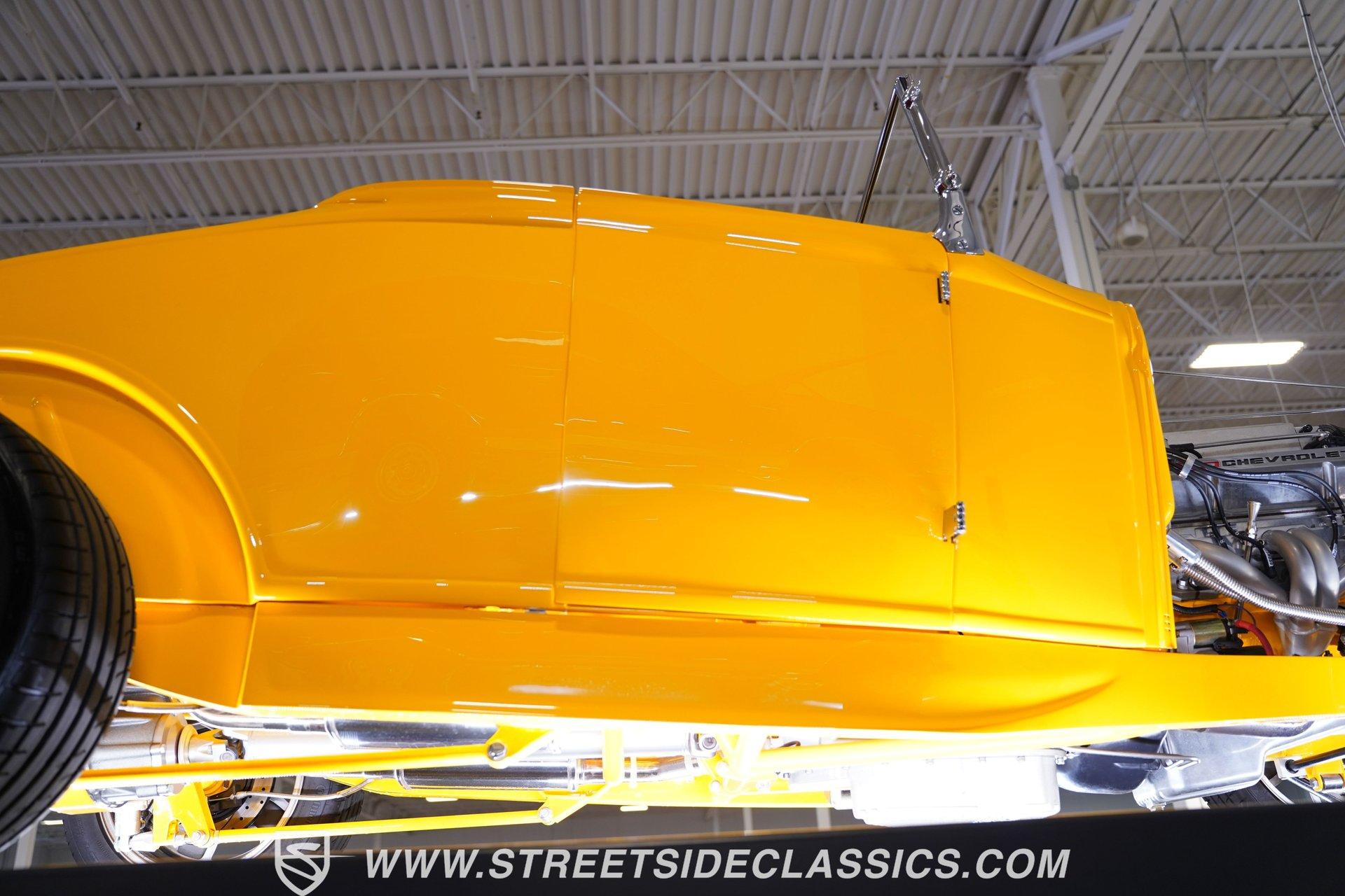 Yellow and wicked, with only 434 miles on the clock since its build, this 1930 Ford Model A Roadster fuses old-school style with modern muscle. The steel body sports a bright yellow finish that pops against the blacktop. From the custom flush-mounted gas cap to its low-slung stance, this roadster means action. The combination of 17" American Racing wheels with 205/45ZR17 front and 285/40ZR17 rear tires gives this street machine both visual punch and road-hugging grip. Saddle brown leather wraps the interior in rich luxury. The bucket seats and floor shifter create a driver-focused layout that's both comfortable and functional. Thoughtful design includes storage pockets behind the seats and in the door panels. The color-matched dash houses Classic Instrument gauges, while the chrome steering column adds flash. Quality carpets and floor mats complete the cabin. The trunk continues the same level of craftsmanship, featuring automatic lighting when opened. The powerhouse consists of a 355 V8 engine (a 350 bored .030 over) with aluminum heads and Holley EFI Stealth Ram Injection. For exhaust, blockhugger shorty headers feed into a full stainless system with MagnaFlow mufflers that produce a deep, satisfying rumble. A Monster Transmission 200R4 4-speed automatic handles gear changes while power goes to the ground through a Ford 9" rear. The suspension setup includes independent front with coilovers and a solid axle rear with 4-link and Viking double adjustable shocks. Wilwood front and rear power disc brakes provide strong stopping ability. HIGHLIGHTS: 355 V8 Engine (350 Bored .030 Over) 4-Speed Automatic Monster Transmission (200R4) Holley EFI Stealth Ram Injection Aluminum Heads Blockhugger Shorty Headers MagnaFlow Mufflers Full Stainless Exhaust Ford 9" Rear End Wilwood Power Disc Brakes Independent Front Suspension w/ Coilovers Solid Axle Rear with 4-Link and Coilovers Viking Double Adjustable Shocks Gloss Yellow Paint 17" American Racing Wheels 205/45ZR17 Front, 285/40ZR17 Rear Tires Flush Mounted Gas Cap Saddle Brown Interior with Leather Bucket Seats Floor Shifter Color-Matched Dash Classic Instrument Gauges Chrome Steering Column Door Panels with Storage Pockets Quality Carpeting and Floor Mats Finished Trunk with Automatic Lighting Car Cover Included Only 434 Miles Since Built Fast, loud, and yellow - this 1930 Ford Model A Roadster brings street-legal speed with its 355 V8 power, upgraded suspension, and Wilwood brakes. A modern hot rod with classic style that's ready for your garage and the open road. Call today!