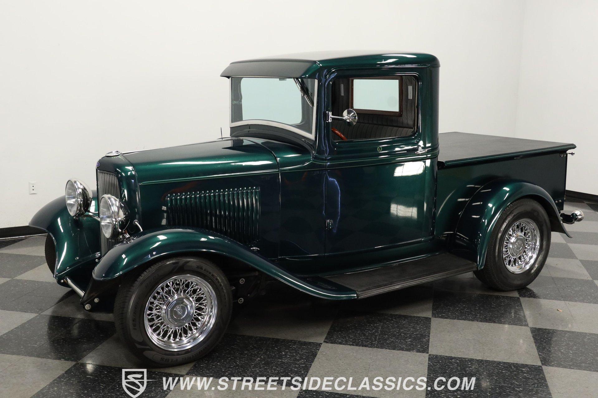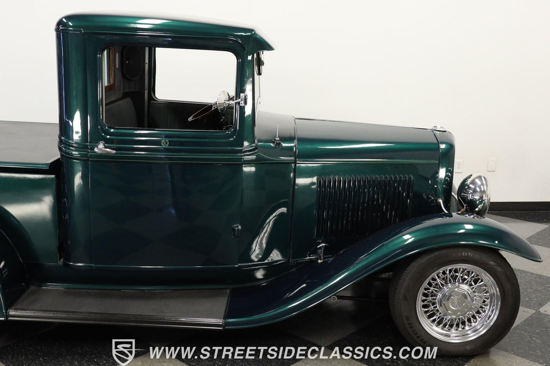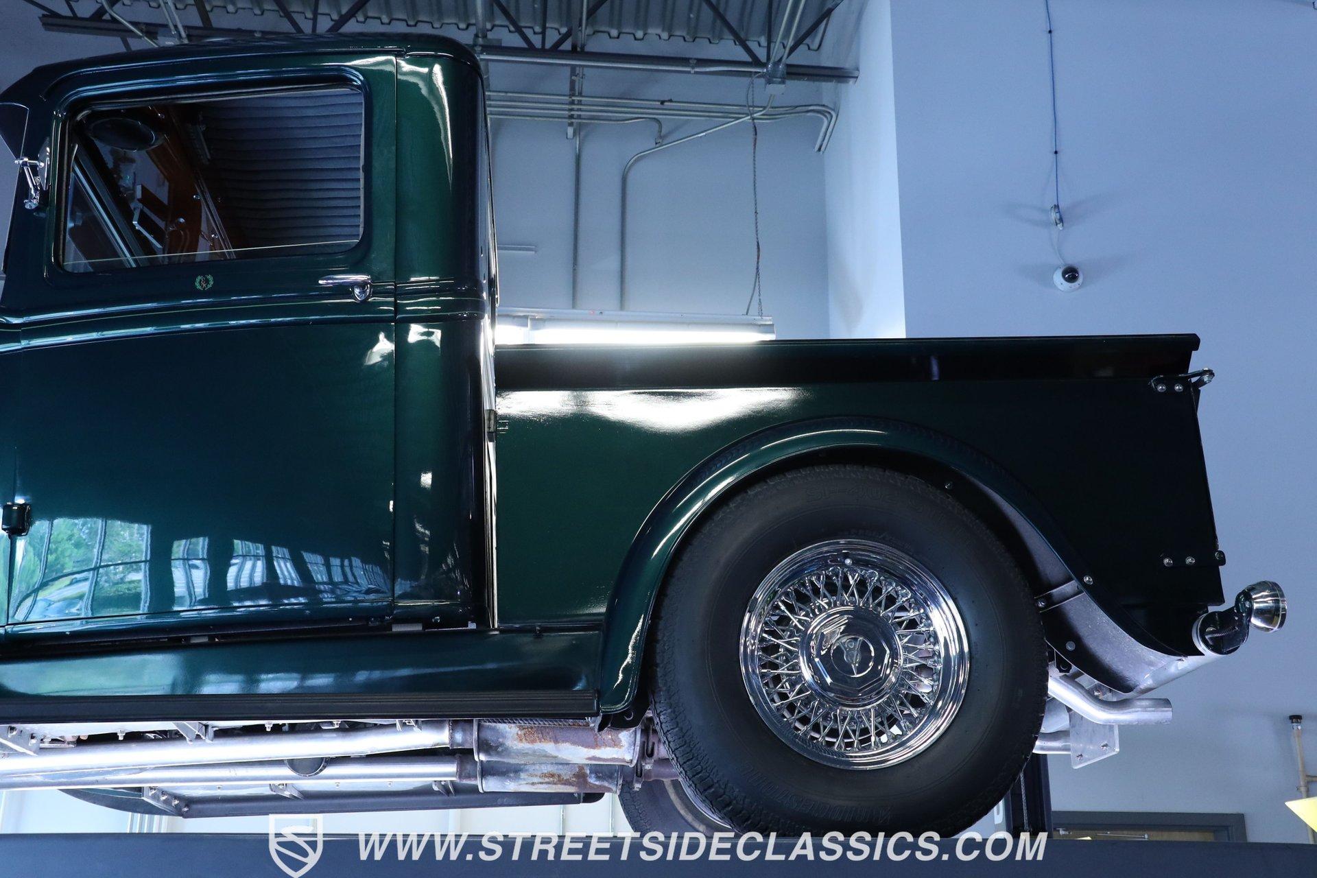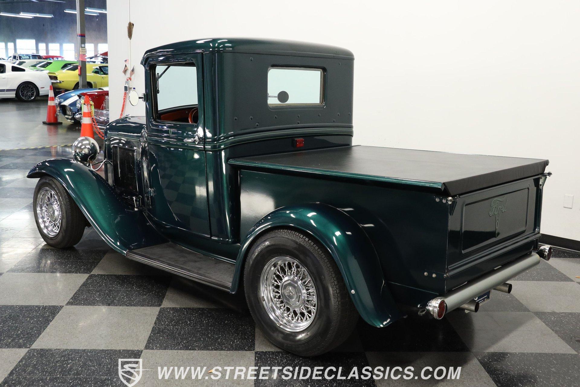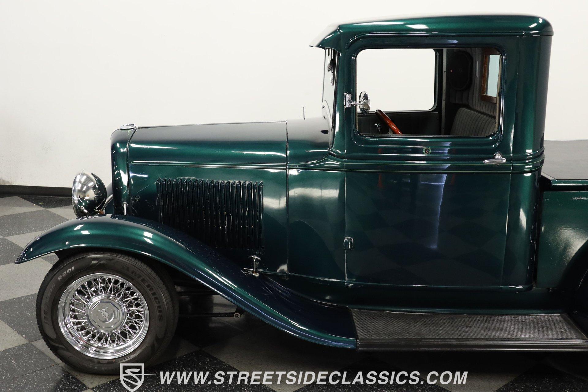 5093-TPA 1932 FORD PICKUP A classic piece of American workmanship, the 1932 Ford Pickup wears Dark Green Metallic paint accented by light green pinstripes that follow its classic profile. The all-steel body maintains authentic prewar aesthetics while the fiberglass fenders add modern durability. Chrome spoke 15" wheels are fitted with 165/80R15 front tires and wider 235/75R15 rear tires, giving this truck a planted look on the road. Black vinyl fitted hard cover and clean chrome trim complete the exterior, making this '32 Ford a true display of early automotive craftsmanship. Gray cloth upholstery fills the cabin with straightforward appeal. The bench seat offers comfortable positioning, complemented by Classic Instruments gauges that monitor vital functions. An aftermarket steering wheel sits on a tilt column, providing better control for drivers of different sizes. Entertainment comes from an AM/FM single CD receiver playing through 4-inch round overhead speakers and additional 6x9 rear speakers. Safety upgrades include properly mounted seatbelts that integrate well with the vintage interior. A 350 V8 engine powers this pickup, mated to a TH350 three-speed automatic transmission. Fuel flows through an Edelbrock four-barrel carburetor mounted to an aluminum intake manifold. The exhaust gases exit via ram horn manifolds connected to a dual exhaust system with turbo mufflers for a proper V8 note. Braking is handled by front disc brakes. For ride control, the truck uses leaf springs with shocks at each corner, giving solid handling with vintage truck character. HIGHLIGHTS: 350 V8 Engine 3 Speed Automatic Transmission (TH350) Edelbrock 4-Barrel Carburetor Aluminum Intake Manifold Front Disc Brakes Leaf Springs with Shocks Dual Exhaust with Turbo Mufflers Ram Horn Manifolds Chrome Valve Covers & Air Cleaner Belt-Driven Fan Dark Green Metallic Paint Light Green Pinstripes All Steel Body Fiberglass Fenders 15" Chrome Spoke Wheels in 165/80R15 Front, 235/75R15 Rear Tires Black Vinyl Fitted Hard Cover Chrome Trim Textured Hard Rubber Running Board Covers Gray Interior with Bench Seat Classic Instruments Gauges Aftermarket Steering Wheel Tilt Steering Column AM/FM Single CD Receiver 4" Round Overhead Speakers Rear 6x9 Speakers Seatbelts Take home this 1932 Ford Pickup and add a distinctive pre-war truck to your collection. V8 power, automatic shifting, and disc brakes make it simple to drive, while the sharp green paint and classic styling draw admiration at every stop. Call today! We can assist you with getting an Extended Vehicle Service Plan from Freedom Warranty, which provides comprehensive coverage that can save thousands of dollars on unexpected repairs. Inquire for more details and pricing!