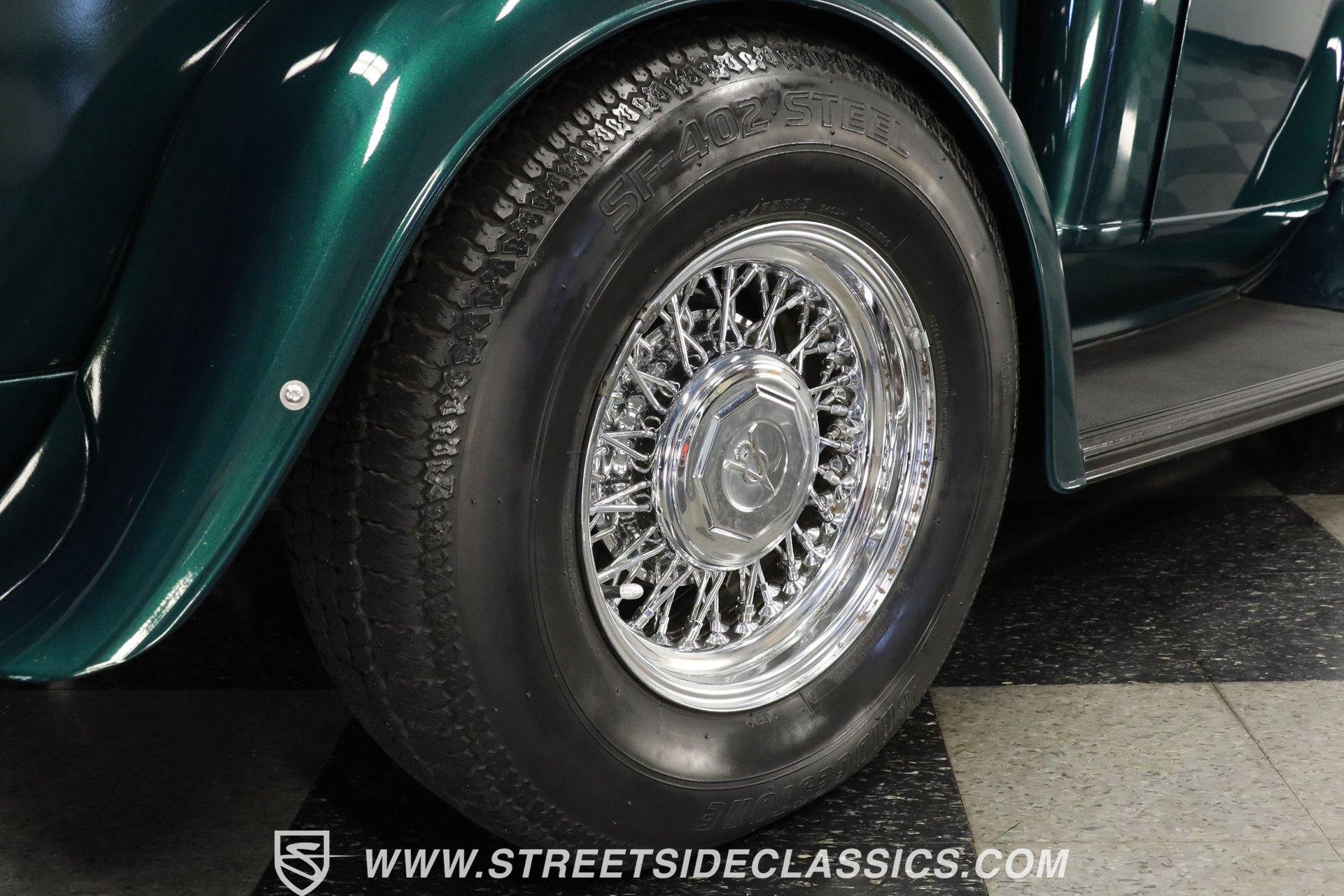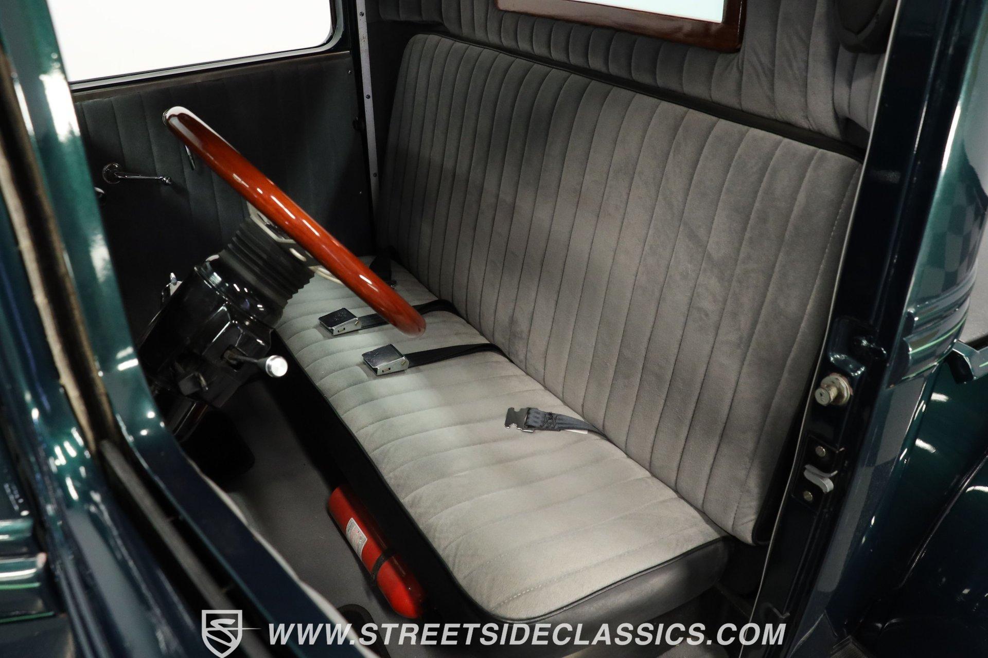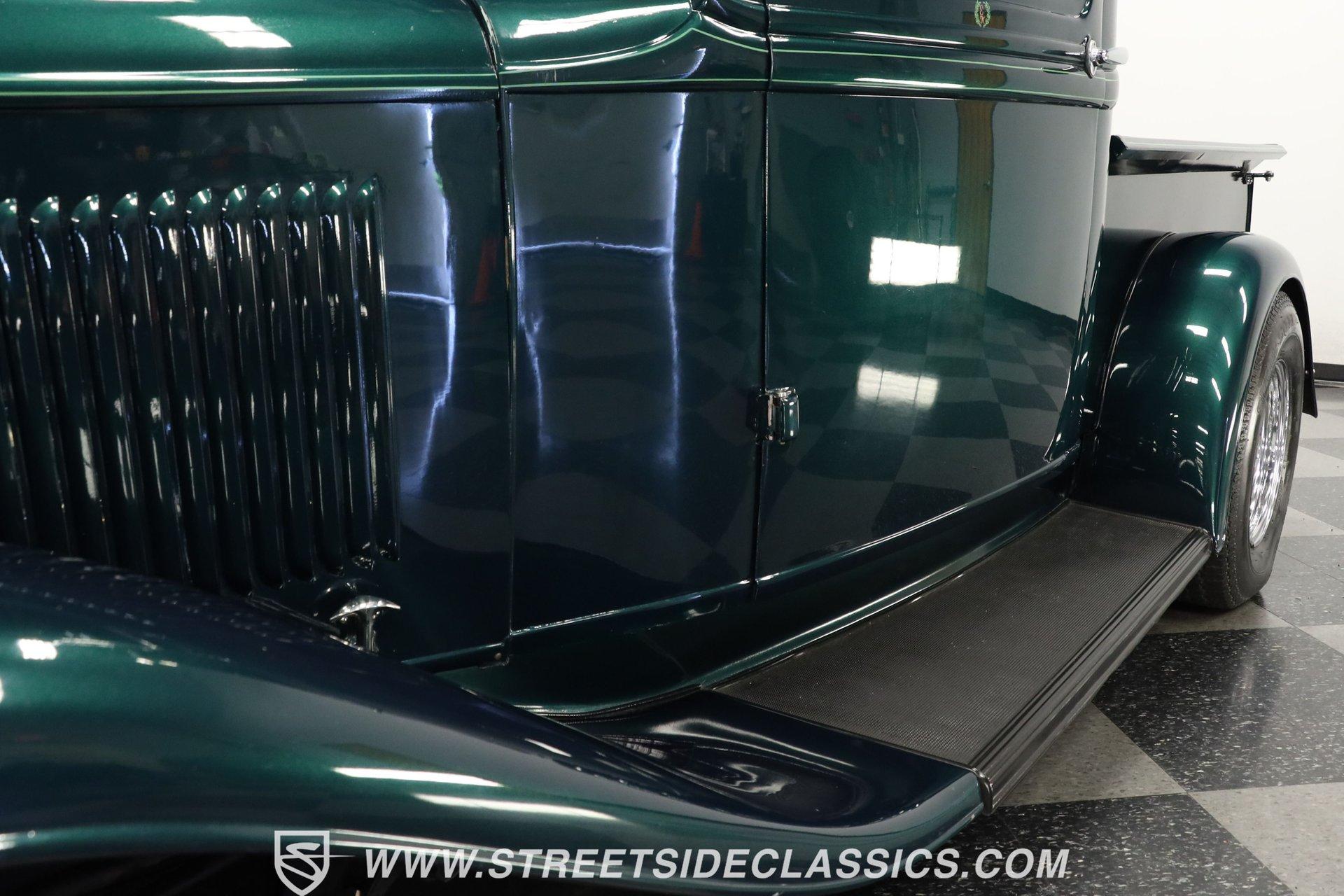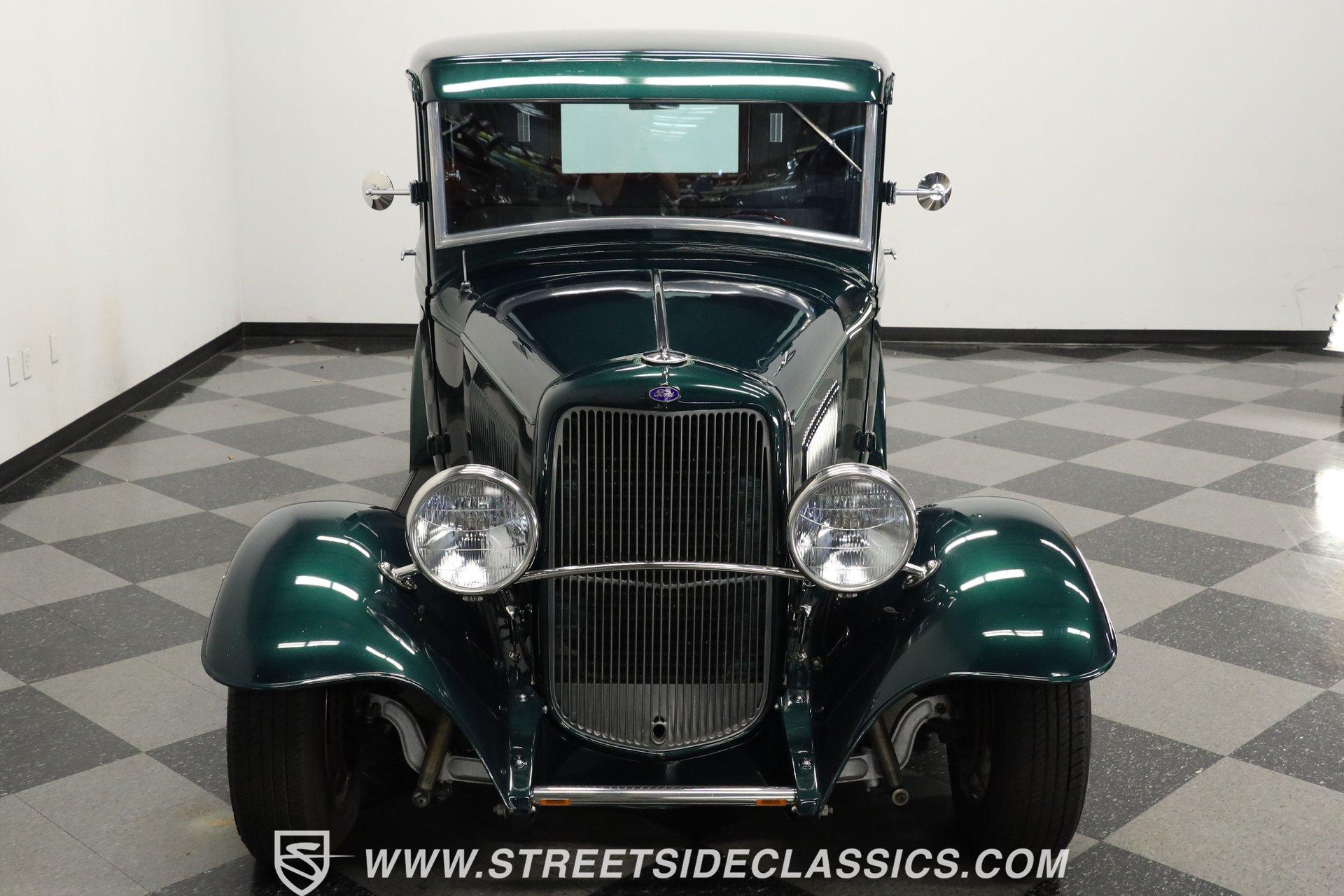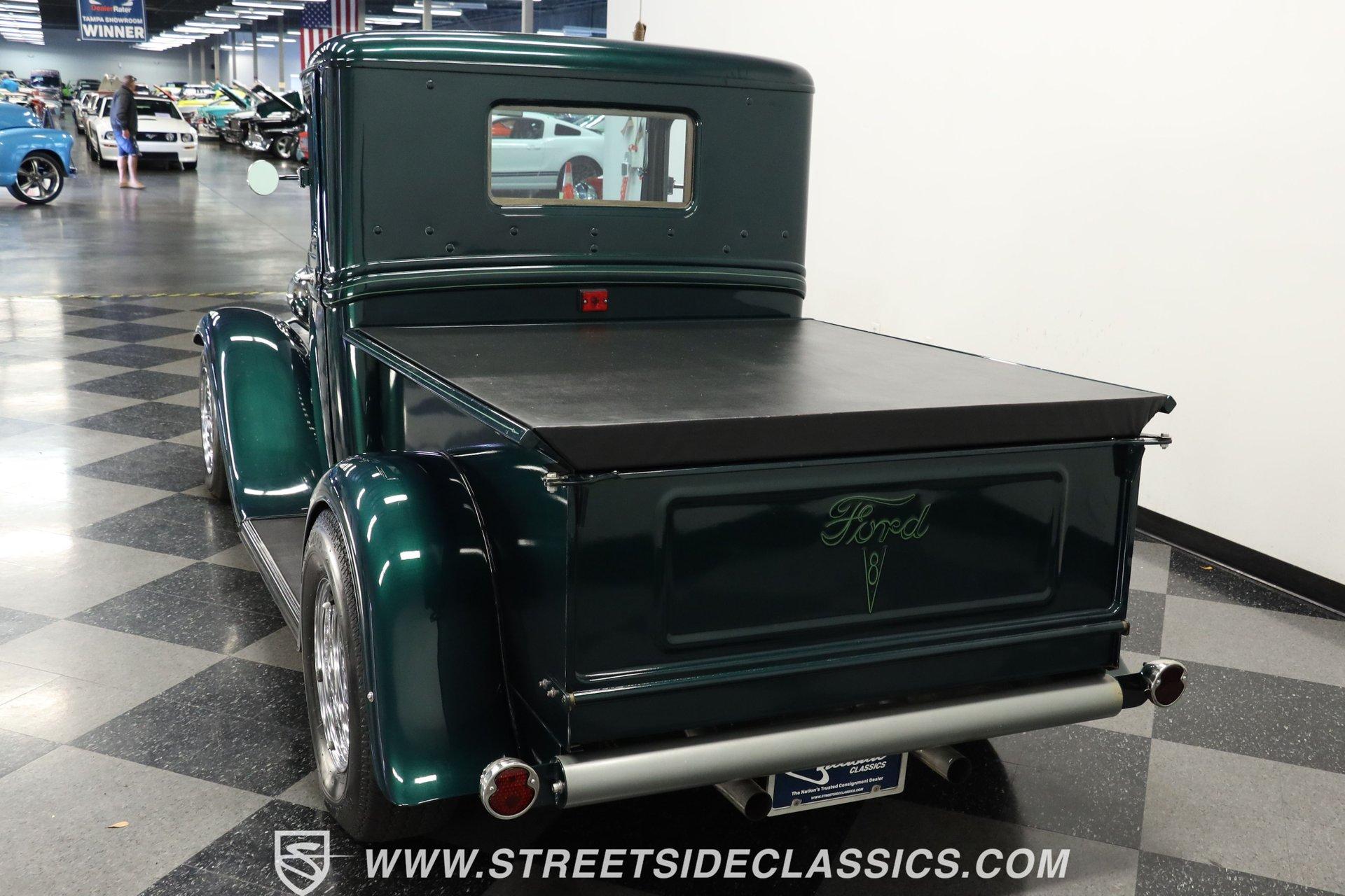 5093-TPA 1932 FORD PICKUP A classic piece of American workmanship, the 1932 Ford Pickup wears Dark Green Metallic paint accented by light green pinstripes that follow its classic profile. The all-steel body maintains authentic prewar aesthetics while the fiberglass fenders add modern durability. Chrome spoke 15" wheels are fitted with 165/80R15 front tires and wider 235/75R15 rear tires, giving this truck a planted look on the road. Black vinyl fitted hard cover and clean chrome trim complete the exterior, making this '32 Ford a true display of early automotive craftsmanship. Gray cloth upholstery fills the cabin with straightforward appeal. The bench seat offers comfortable positioning, complemented by Classic Instruments gauges that monitor vital functions. An aftermarket steering wheel sits on a tilt column, providing better control for drivers of different sizes. Entertainment comes from an AM/FM single CD receiver playing through 4-inch round overhead speakers and additional 6x9 rear speakers. Safety upgrades include properly mounted seatbelts that integrate well with the vintage interior. A 350 V8 engine powers this pickup, mated to a TH350 three-speed automatic transmission. Fuel flows through an Edelbrock four-barrel carburetor mounted to an aluminum intake manifold. The exhaust gases exit via ram horn manifolds connected to a dual exhaust system with turbo mufflers for a proper V8 note. Braking is handled by front disc brakes. For ride control, the truck uses leaf springs with shocks at each corner, giving solid handling with vintage truck character. HIGHLIGHTS: 350 V8 Engine 3 Speed Automatic Transmission (TH350) Edelbrock 4-Barrel Carburetor Aluminum Intake Manifold Front Disc Brakes Leaf Springs with Shocks Dual Exhaust with Turbo Mufflers Ram Horn Manifolds Chrome Valve Covers & Air Cleaner Belt-Driven Fan Dark Green Metallic Paint Light Green Pinstripes All Steel Body Fiberglass Fenders 15" Chrome Spoke Wheels in 165/80R15 Front, 235/75R15 Rear Tires Black Vinyl Fitted Hard Cover Chrome Trim Textured Hard Rubber Running Board Covers Gray Interior with Bench Seat Classic Instruments Gauges Aftermarket Steering Wheel Tilt Steering Column AM/FM Single CD Receiver 4" Round Overhead Speakers Rear 6x9 Speakers Seatbelts Take home this 1932 Ford Pickup and add a distinctive pre-war truck to your collection. V8 power, automatic shifting, and disc brakes make it simple to drive, while the sharp green paint and classic styling draw admiration at every stop. Call today! We can assist you with getting an Extended Vehicle Service Plan from Freedom Warranty, which provides comprehensive coverage that can save thousands of dollars on unexpected repairs. Inquire for more details and pricing!