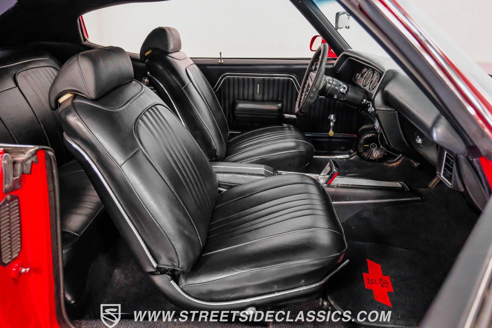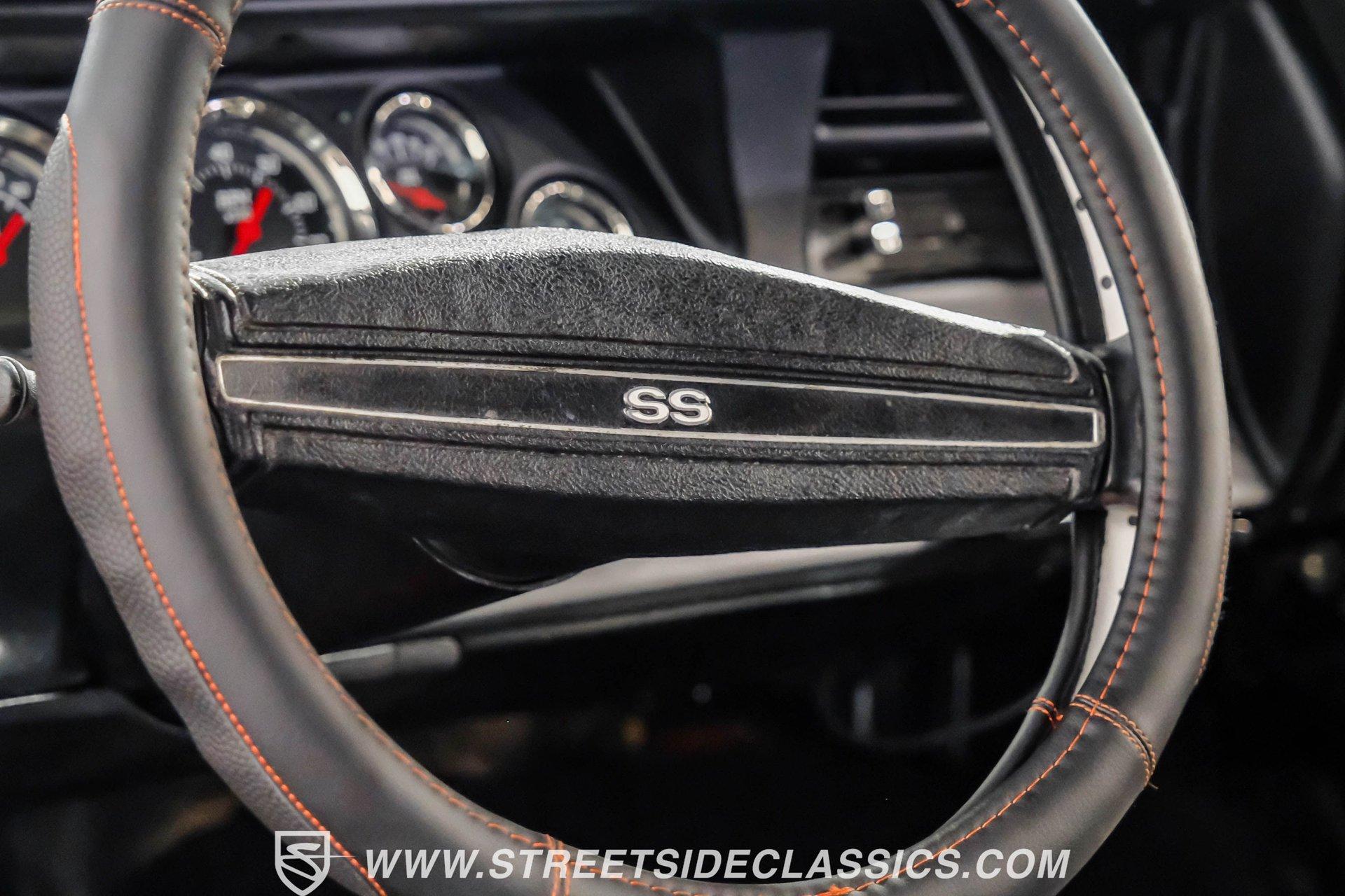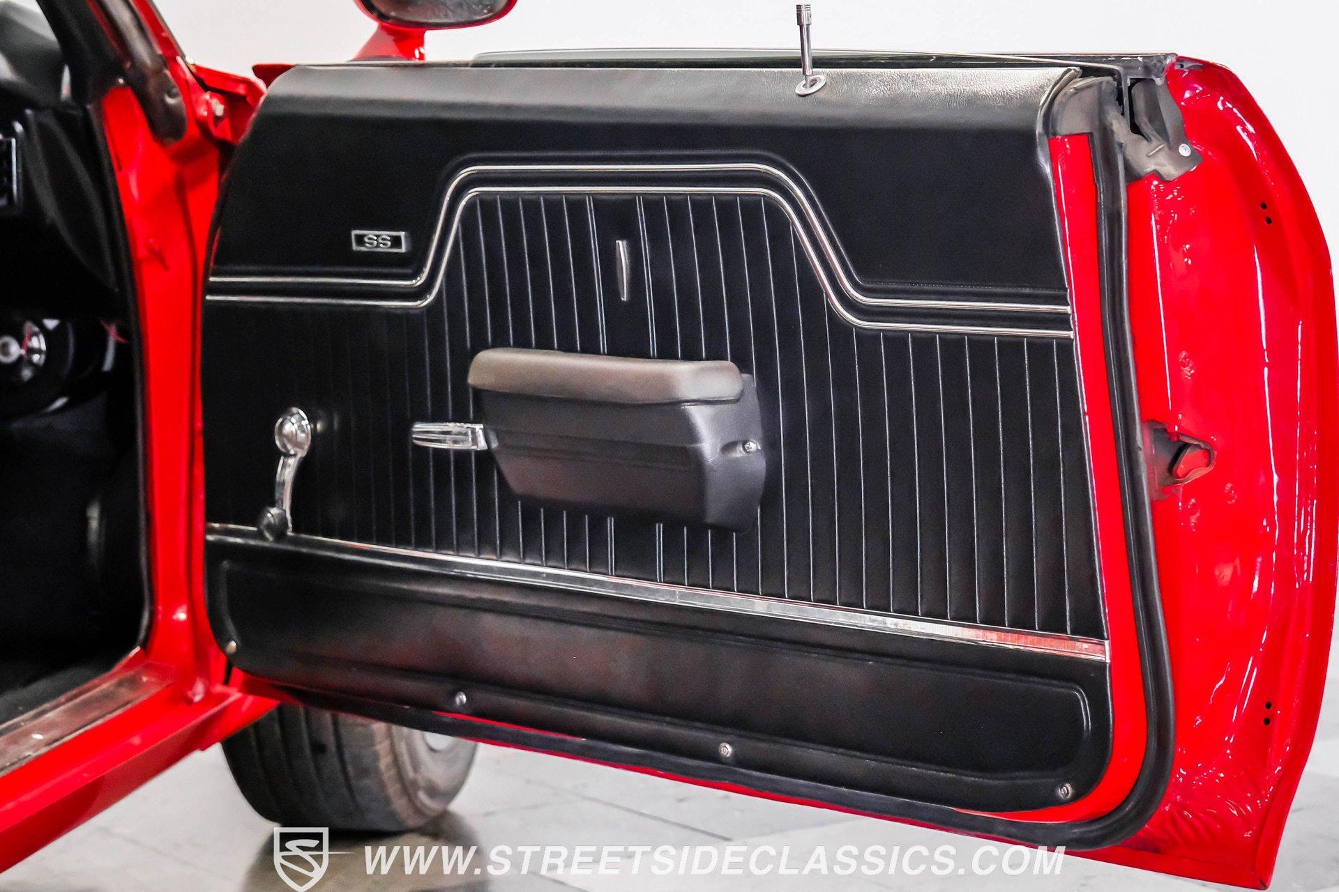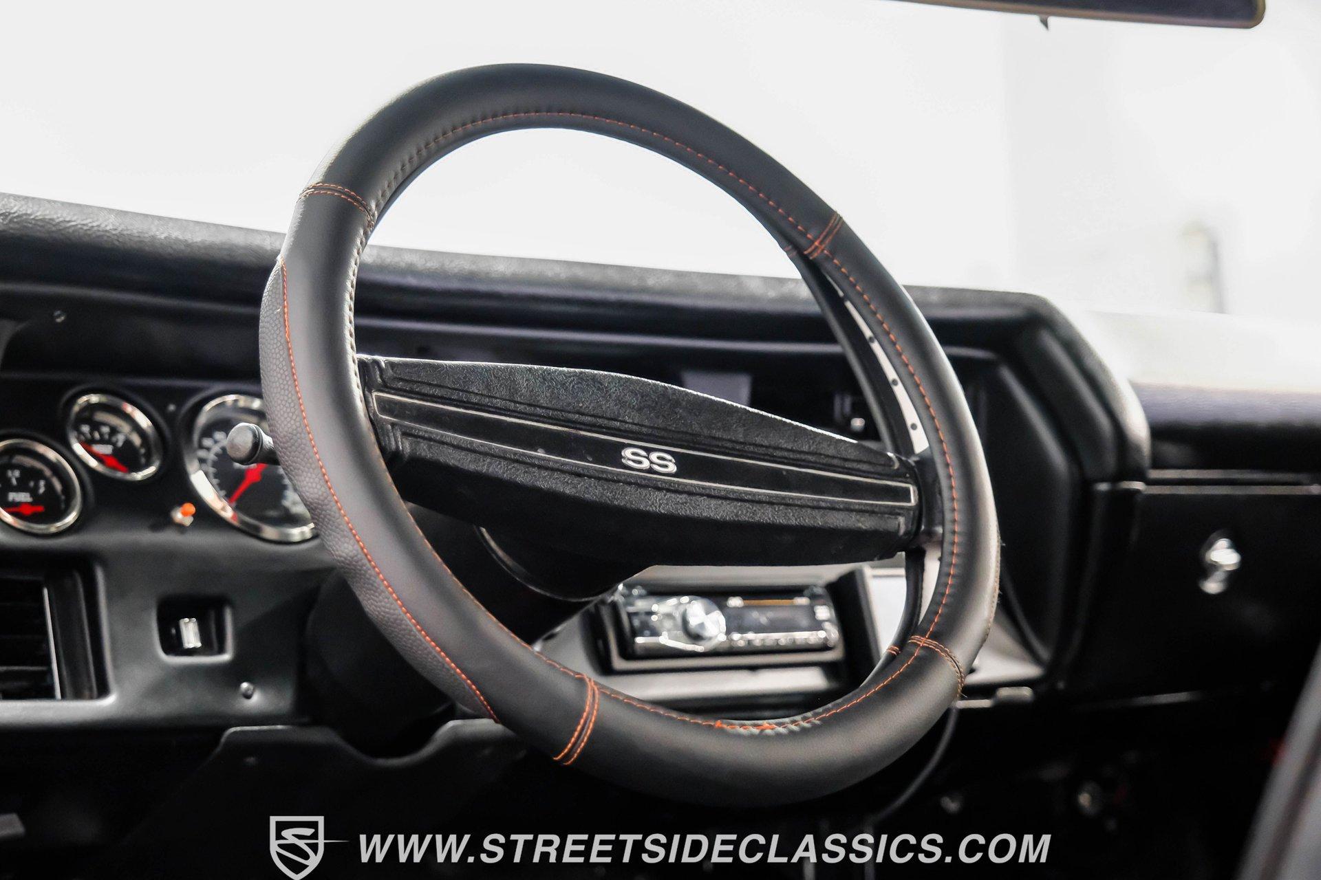 Finished in a Cranberry Red that makes every angle of this 1971 Chevrolet Chevelle SS 454 Tribute look sharp, the muscular body lines have been elevated by aggressive painted black stripes. The color combination works perfectly against the bright chrome trim and grille. A lowered stance gives this Chevelle serious muscle car credibility, sitting on a mix of 17" front and 15" rear Summit Racing wheels wrapped in 225/60R17 Roadone tires up front and 275/60R15 Nitto drag radials in the back. Tinted windows add a dark contrast against the vibrant red exterior, while hood pins complete the track-ready look. Black vinyl interior gives this Chevelle a factory-correct appearance while offering modern upgrades. The restuffed bucket seats with console maintain the period-correct muscle car feel. An upgraded JVC AM/FM/AUX/CD/MP3 unit handles the audio duties while custom Omega Kustom Instruments gauges provide clear readouts of vital engine data. The Holley Sniper EFI monitor gives the driver full control over fuel mapping. Vintage Air conditioning and heat keep the cabin comfortable, while the black carpet and headliner complete the factory appearance. The big-block 454 cubic inch V8 provides tremendous power through electronic fuel injection via a Holley Sniper system mounted on an Edelbrock aluminum intake. Aluminum Edelbrock heads with a performance camshaft maximize performance, while the engine breathes through long-tube headers connected to a dual exhaust system with an X-pipe and FlowFX mufflers for that perfect muscle car sound. A TH350 3-speed automatic transmission handles the power delivery to the 12-bolt rear end. The handling is dramatically improved with QA1 tubular A-arms, adjustable coil-overs, and sway bars front and rear. Stopping power comes from Wilwood 4-wheel disc brakes with drilled and slotted rotors. HIGHLIGHTS: 454 V8 Engine TH350 3-Speed Automatic Transmission Holley Sniper Electronic Fuel Injection Edelbrock Aluminum Heads and Intake 12-Bolt Rear End Long-Tube Headers Dual Exhaust with X-Pipe FlowFX Mufflers Wilwood 4-Wheel Disc Brakes with Drilled/Slotted Rotors QA1 Tubular A-Arms QA1 Adjustable Coil-Overs Serpentine Belt System Modern Radiator with Dual Electric Fans Cranberry Red Paint with Black Stripes 17" Front, 15" Rear Summit Racing Wheels 225/60R17 Roadone Front, 275/60R15 Nitto Rear Tires Black Interior with Bucket Seats and Console Omega Kustom Instruments Gauges JVC AM/FM/AUX/CD/MP3 Head Unit Vintage Air Conditioning and Heat Power Steering A big-block powered 1971 Chevrolet Chevelle SS 454 Tribute with modern handling and braking upgrades makes for an unbeatable combination of classic muscle car style and updated performance. The Cranberry Red paint, black stripes, and aggressive stance draw admirers while the 454 V8 produces the power to back up those looks. Call today!
