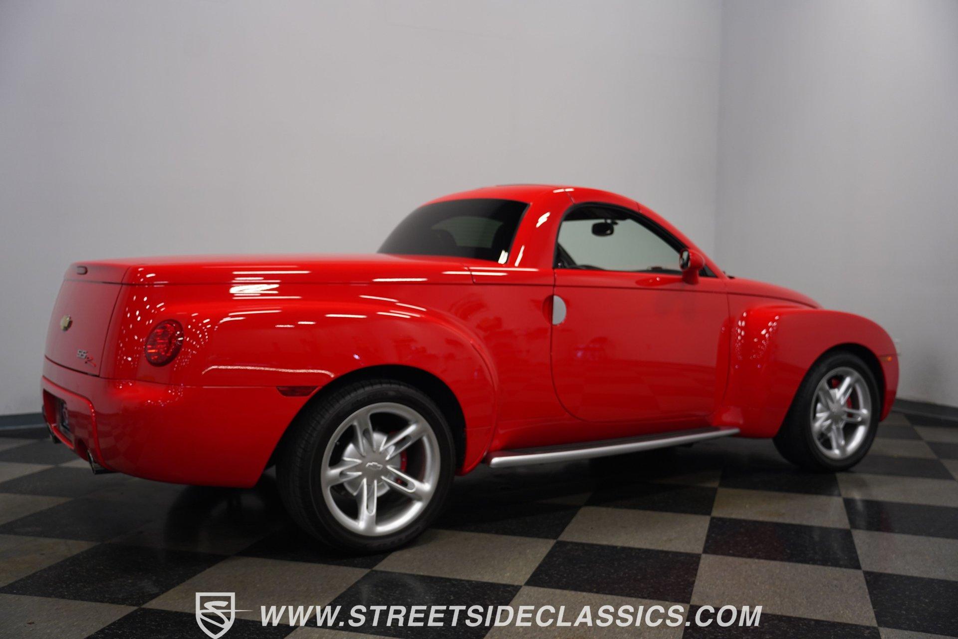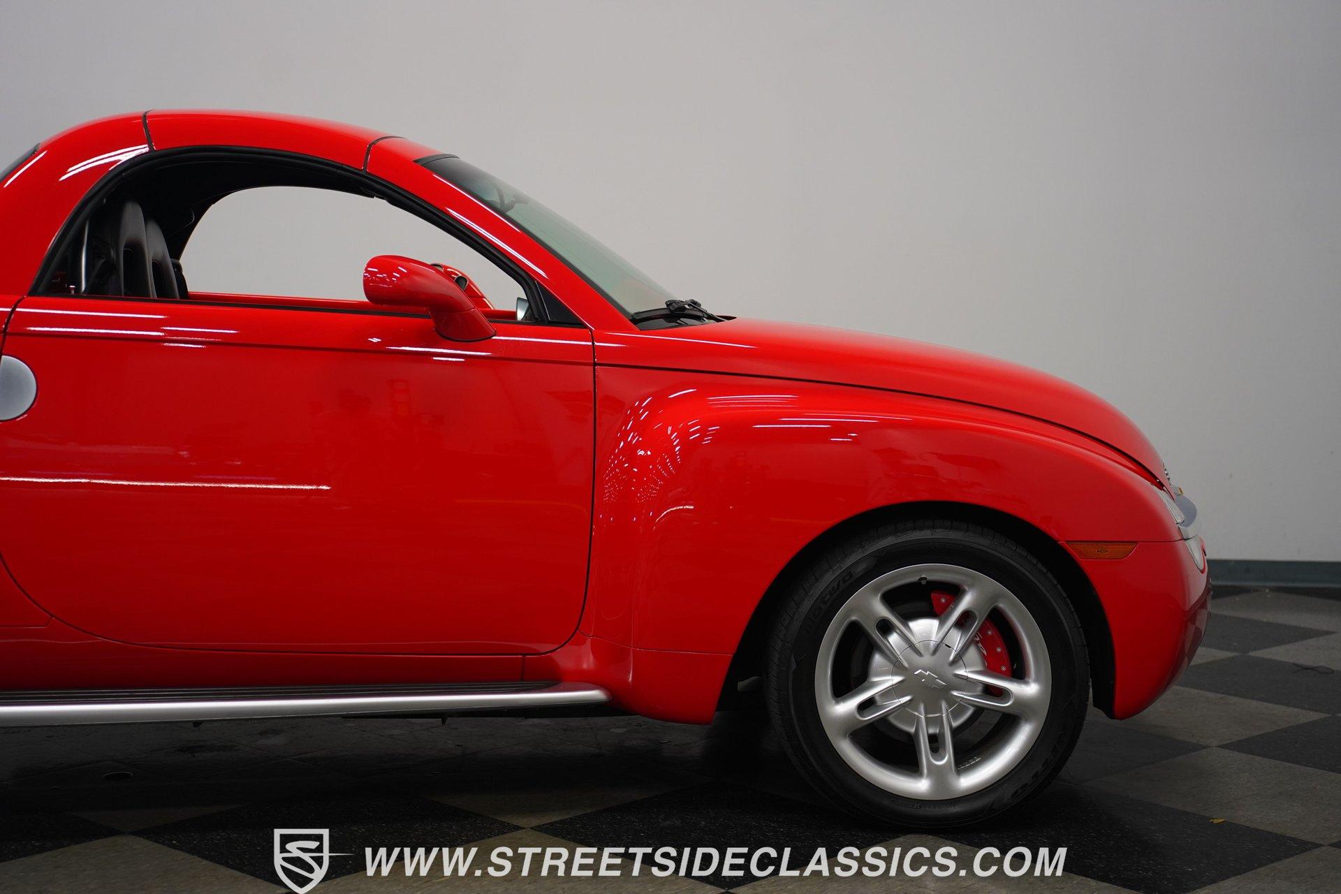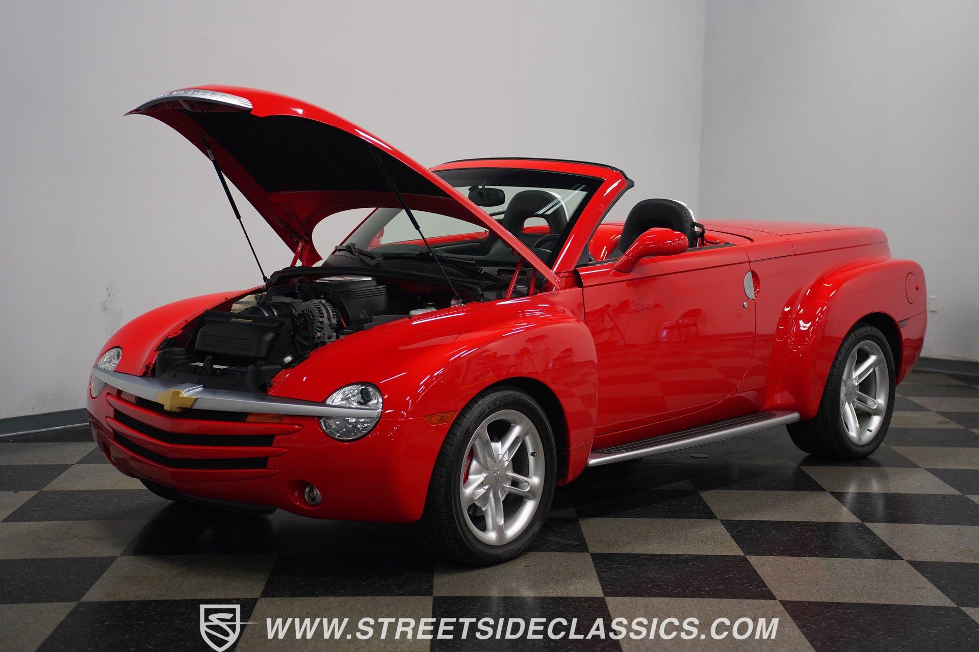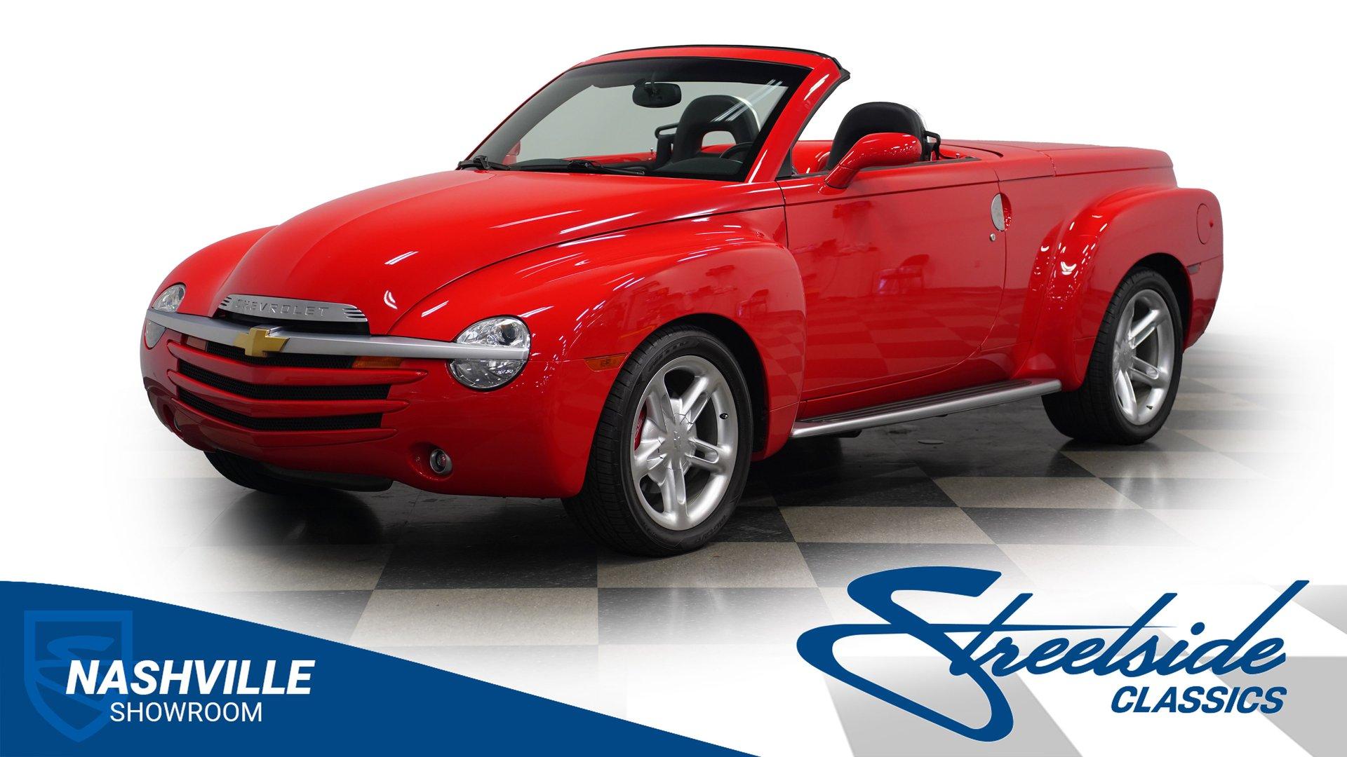 Conceived as a concept car that made it to production reality, this 2004 Chevrolet SSR shows just 18,903 actual miles on the odometer. Finished in vibrant Redline Red, this limited-production convertible pickup blends nostalgic styling with modern engineering. The fully automatic hardtop folds away completely, allowing for true open-air cruising without compromising the truck bed. Factory chrome wheels in staggered sizes - 19 inches front and massive 20 inches rear - add muscle to the already athletic fenders. Wide 255/45ZR19 front and 315/35ZR20 rear tires plant this vehicle firmly on the asphalt, completing a look that draws attention wherever it goes. Black leather covers the interior surfaces of this SSR with excellent attention to detail. The bucket seats show minimal wear while maintaining their original shape and support. A flawless dash and door panels highlight the quality of materials used throughout. The console shifter places control directly where needed during driving. Air conditioning keeps occupants cool while the AM/FM single CD player provides entertainment for any road trip in this unique machine. A 5.3L V8 engine pushes this vehicle down the road with quick acceleration. The 4-speed automatic 4L60E transmission shifts exactly when needed. Four-wheel power disc brakes provide excellent stopping capability. Power steering makes maneuvering easy despite the wide tires. The dual exhaust system allows for proper breathing without excessive noise. Stock suspension maintains the factory-engineered balance between handling and daily comfort. HIGHLIGHTS: 5.3L V8 Engine 4-Speed Automatic 4L60E Transmission Electronic Fuel Injection Power Disc Brakes Dual Exhaust Redline Red Paint Retractable Hard Top 19" Front, 20" Rear Chrome Wheels 255/45ZR19 Front, 315/35ZR20 Rear Tires Original Paint Original Body Panels Two-Door Design Black Interior with Leather Bucket Seats Air Conditioning AM/FM Single CD Player Power Steering Console Shifter Center Console 5-Digit Odometer 18,903 Actual Miles One of GM's most adventurous designs of the 2000s, this 2004 SSR offers V8 performance with the versatility of a pickup and the fun of a convertible. Limited production numbers and incredibly low mileage make this vehicle increasingly collectible as the years pass. Call today!