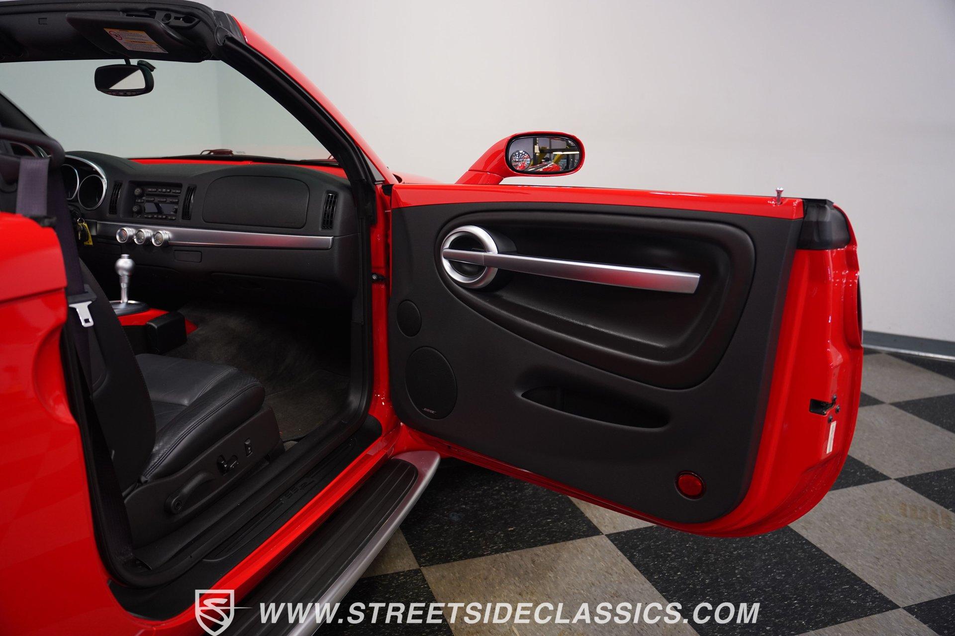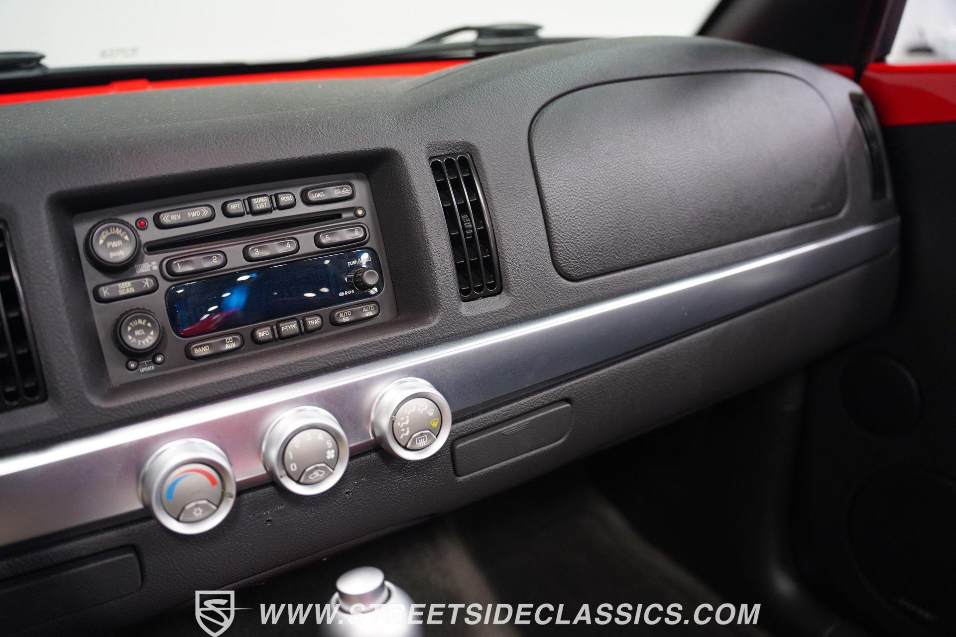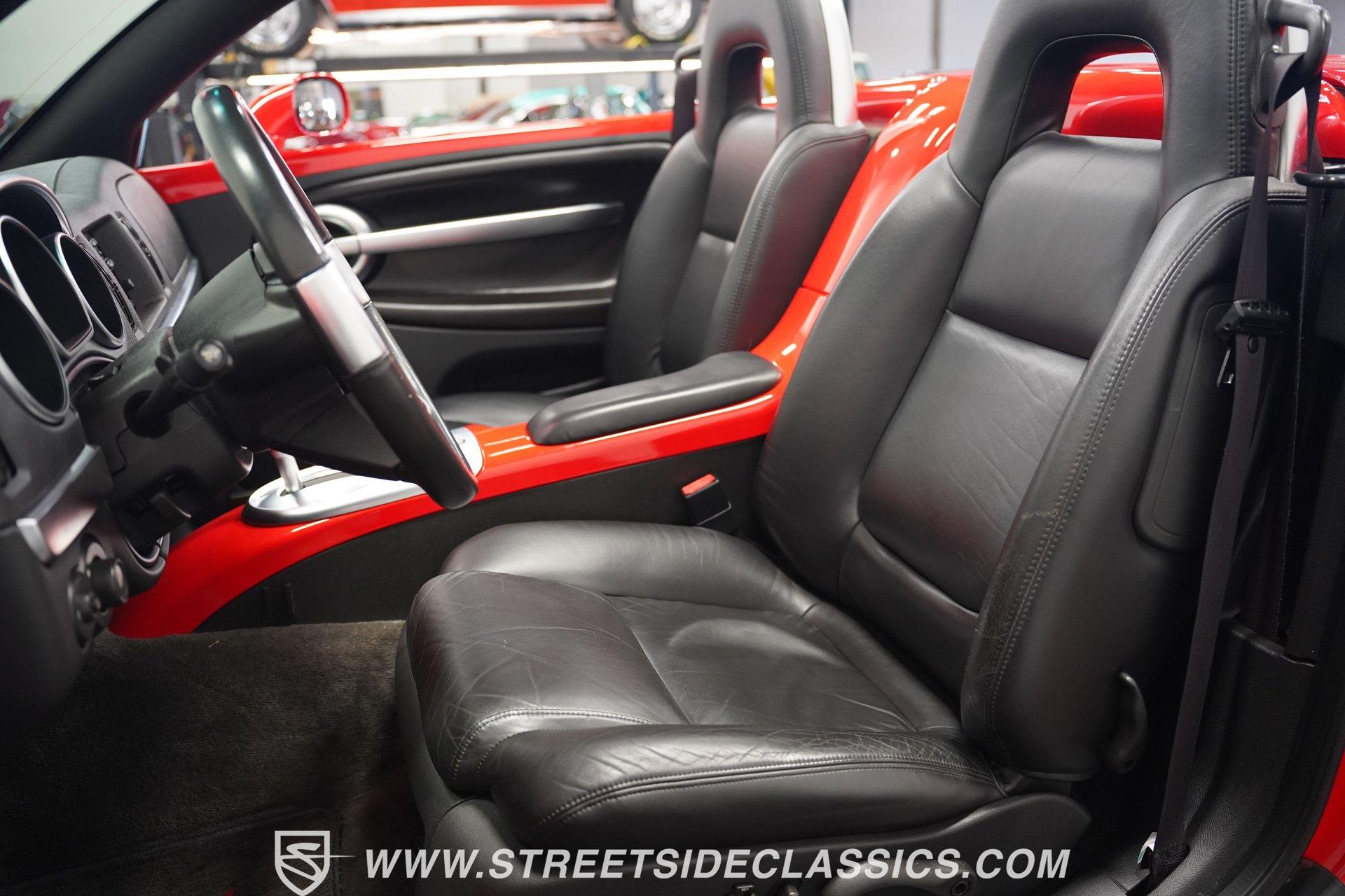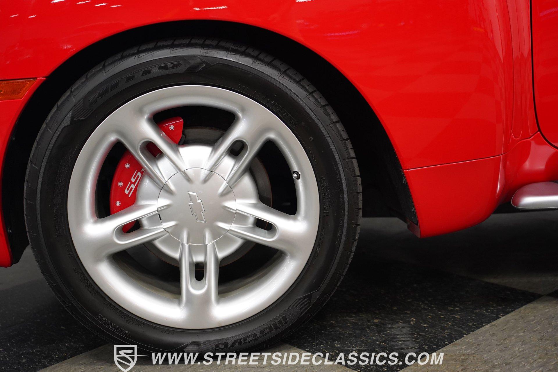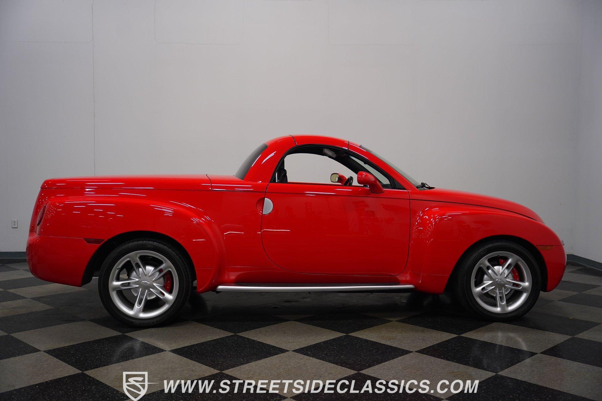 Conceived as a concept car that made it to production reality, this 2004 Chevrolet SSR shows just 18,903 actual miles on the odometer. Finished in vibrant Redline Red, this limited-production convertible pickup blends nostalgic styling with modern engineering. The fully automatic hardtop folds away completely, allowing for true open-air cruising without compromising the truck bed. Factory chrome wheels in staggered sizes - 19 inches front and massive 20 inches rear - add muscle to the already athletic fenders. Wide 255/45ZR19 front and 315/35ZR20 rear tires plant this vehicle firmly on the asphalt, completing a look that draws attention wherever it goes. Black leather covers the interior surfaces of this SSR with excellent attention to detail. The bucket seats show minimal wear while maintaining their original shape and support. A flawless dash and door panels highlight the quality of materials used throughout. The console shifter places control directly where needed during driving. Air conditioning keeps occupants cool while the AM/FM single CD player provides entertainment for any road trip in this unique machine. A 5.3L V8 engine pushes this vehicle down the road with quick acceleration. The 4-speed automatic 4L60E transmission shifts exactly when needed. Four-wheel power disc brakes provide excellent stopping capability. Power steering makes maneuvering easy despite the wide tires. The dual exhaust system allows for proper breathing without excessive noise. Stock suspension maintains the factory-engineered balance between handling and daily comfort. HIGHLIGHTS: 5.3L V8 Engine 4-Speed Automatic 4L60E Transmission Electronic Fuel Injection Power Disc Brakes Dual Exhaust Redline Red Paint Retractable Hard Top 19" Front, 20" Rear Chrome Wheels 255/45ZR19 Front, 315/35ZR20 Rear Tires Original Paint Original Body Panels Two-Door Design Black Interior with Leather Bucket Seats Air Conditioning AM/FM Single CD Player Power Steering Console Shifter Center Console 5-Digit Odometer 18,903 Actual Miles One of GM's most adventurous designs of the 2000s, this 2004 SSR offers V8 performance with the versatility of a pickup and the fun of a convertible. Limited production numbers and incredibly low mileage make this vehicle increasingly collectible as the years pass. Call today!