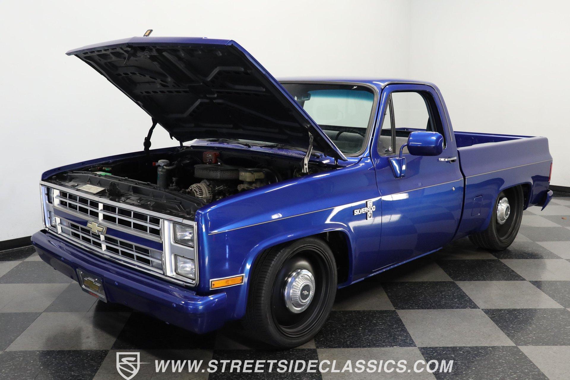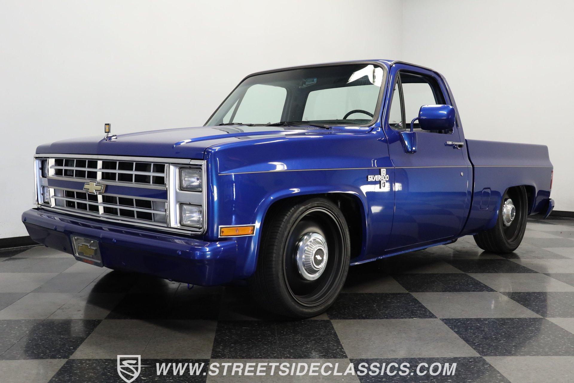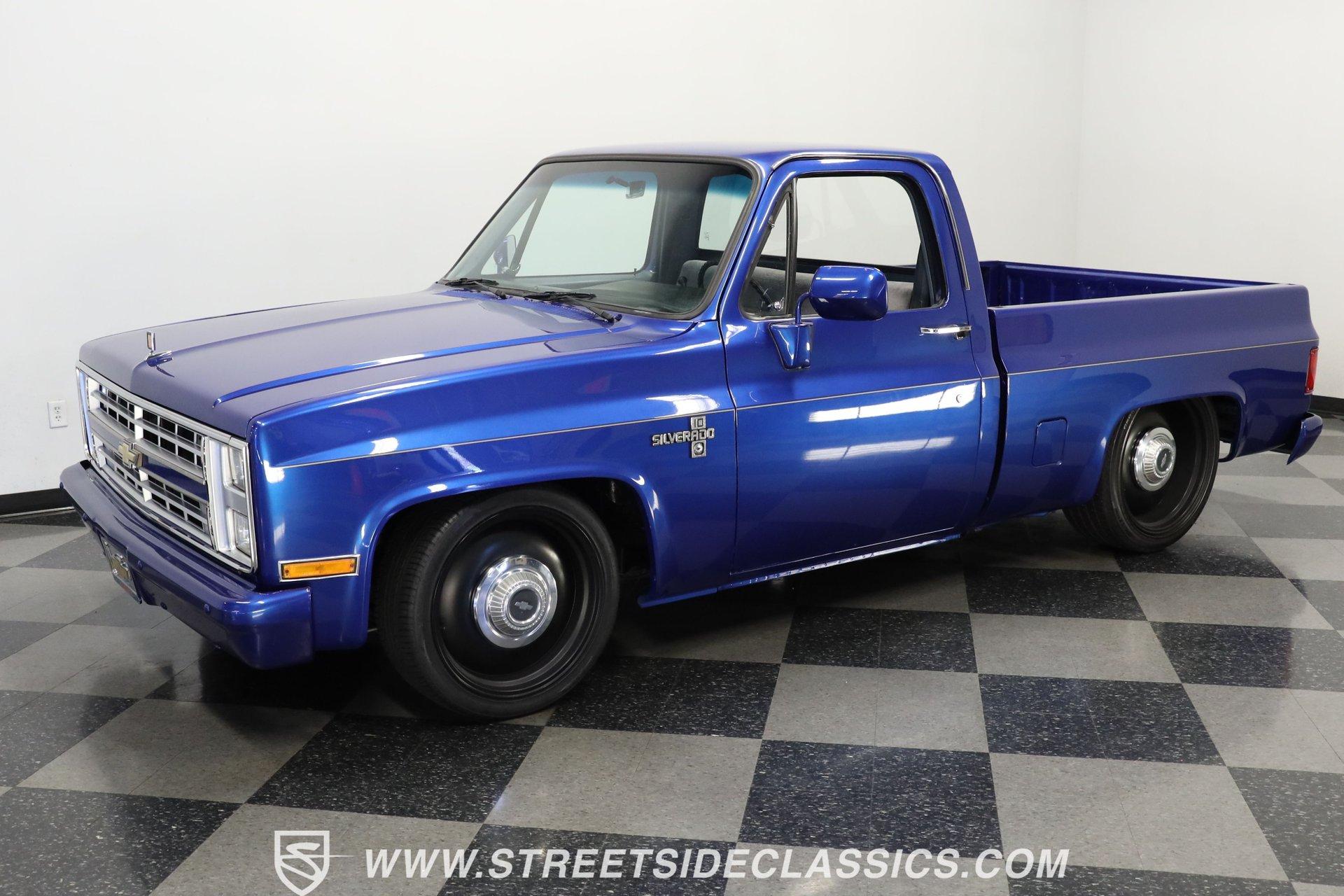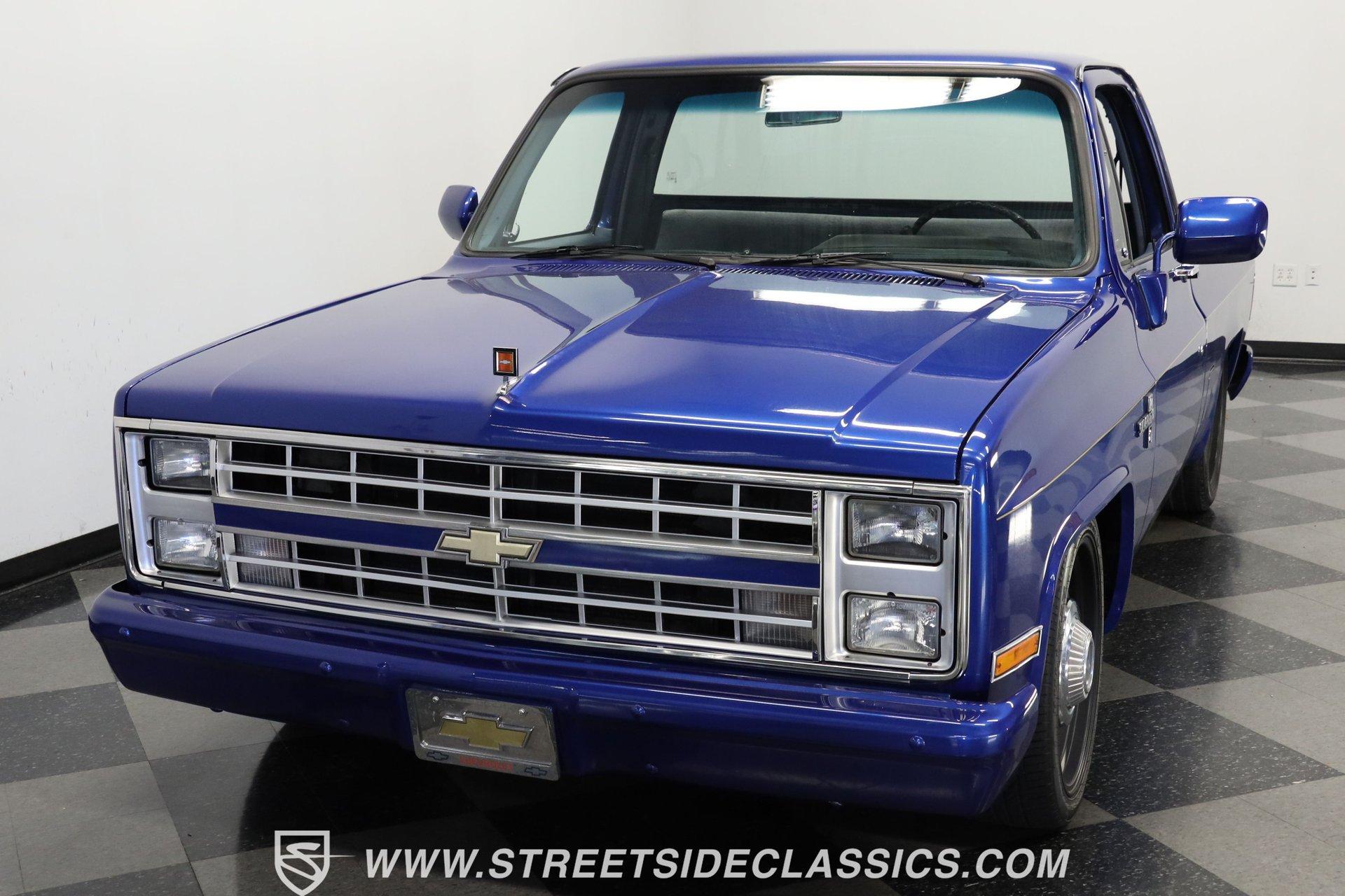 5106-TPA 1986 CHEVROLET C10 Lowered to perfection, this 1986 Chevrolet C10 showcases custom engineering with a slick dark blue exterior that gives it an unmistakable street truck aesthetic. The modified body features color-matched front and rear bumpers that flow seamlessly with the truck's lines, creating a cohesive visual package. The tubbed rear bed, specifically designed to accommodate the air suspension system, adds both style and function to this C10's appearance. Black steely 20-inch wheels with 245/40R20 tires fill the wheel wells perfectly, giving this truck an aggressive stance that draws attention wherever it goes. The gray cloth interior offers both comfort and utility with its spacious bench seat that shows minimal wear. Original-looking gauges provide clear readouts of all vital information, while the tilt steering column allows for custom driving positions. The dashboard maintains its classic Chevy truck appearance with simple, functional controls within easy reach. A modern AM/FM/AUX stereo system provides entertainment options for cruising, while the column shifter maintains the truck's original character and maximizes interior space without the need for a center console. Powering this street-oriented C10 is a 5.3L V8 engine, offering modern performance in a classic package and compatibility with its LS relatives. The powerplant is enhanced with a Holley high-rise intake manifold, 4-barrel Holley carburetor, and MSD ignition system for improved throttle response and reliability. A 700R4 4-speed automatic transmission handles the power delivery to the rear wheels, while the dual exhaust with headers produces a satisfying exhaust note. The custom air bag suspension with 4-link rear setup allows for adjustable ride height, and power disc brakes up front provide confident stopping power. HIGHLIGHTS: 5.3L V8 Engine 700R4 4-Speed Automatic Transmission MSD Ignition System 4-Barrel Holley Carburetor Holley High-Rise Intake Manifold Dual Exhaust with Headers Air Bag Suspension with 4-Link Rear Power Disc Brakes Power Steering Electric Fan Assembly Dark Blue Paint Color-Matched Front and Rear Bumpers 20" Black Steely Wheels with 245/40R20 Tires Modified Truck Bed for Air Suspension Color-Matched Rear View Mirrors Gray Interior with Bench Seat AM/FM/AUX Stereo Tilt Steering Column Air Tank Storage in Rear Truck Bed Modified with street style in mind, this 1986 Chevrolet C10 combines classic truck appeal with modern performance upgrades. The 5.3L V8, air suspension system, and custom touches throughout make this an ideal truck for cruising the boulevard or showing off at local meets. Call today! We can assist you with getting an Extended Vehicle Service Plan from Freedom Warranty, which provides comprehensive coverage that can save thousands of dollars on unexpected repairs. Inquire for more details and pricing!
