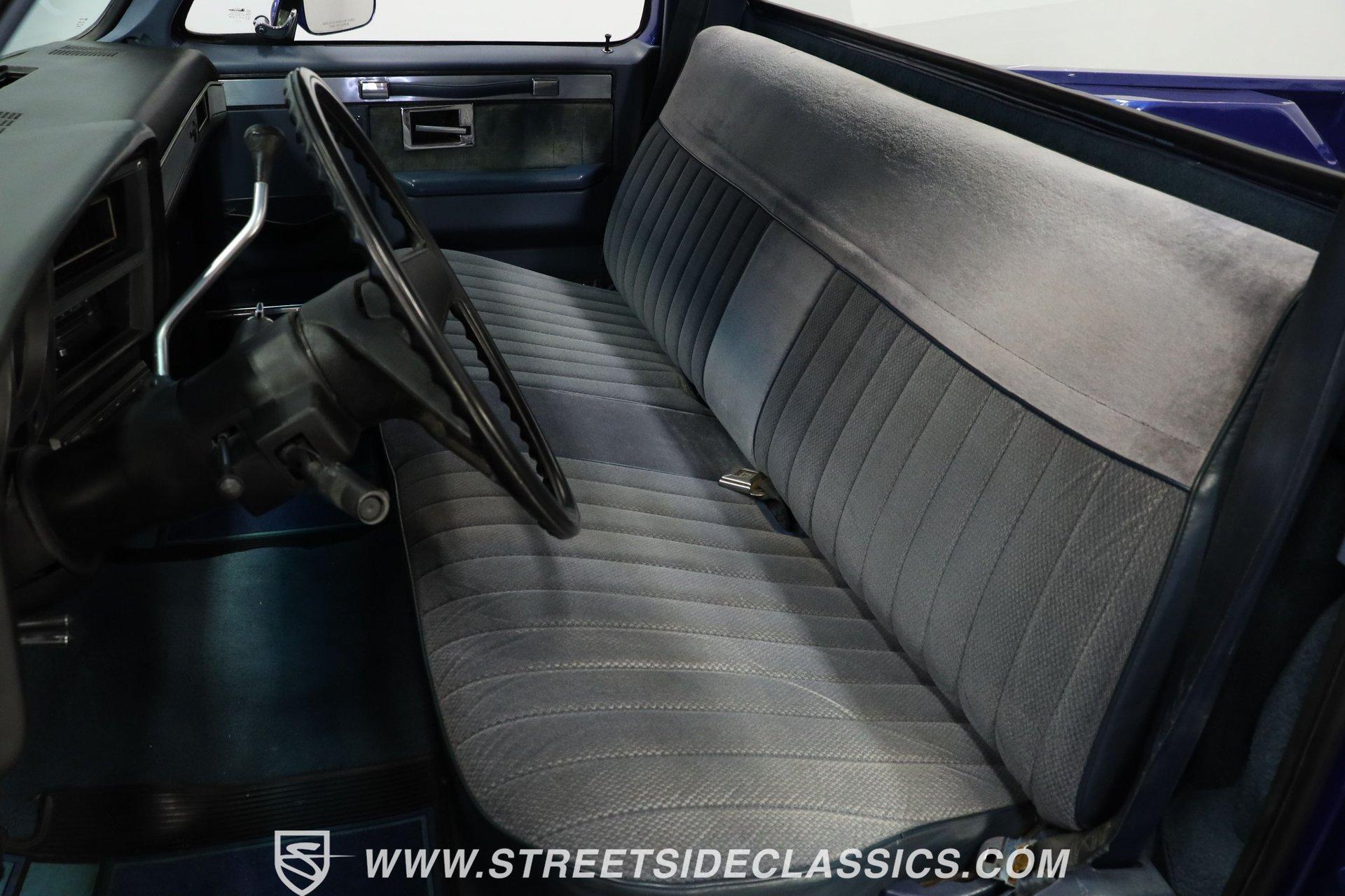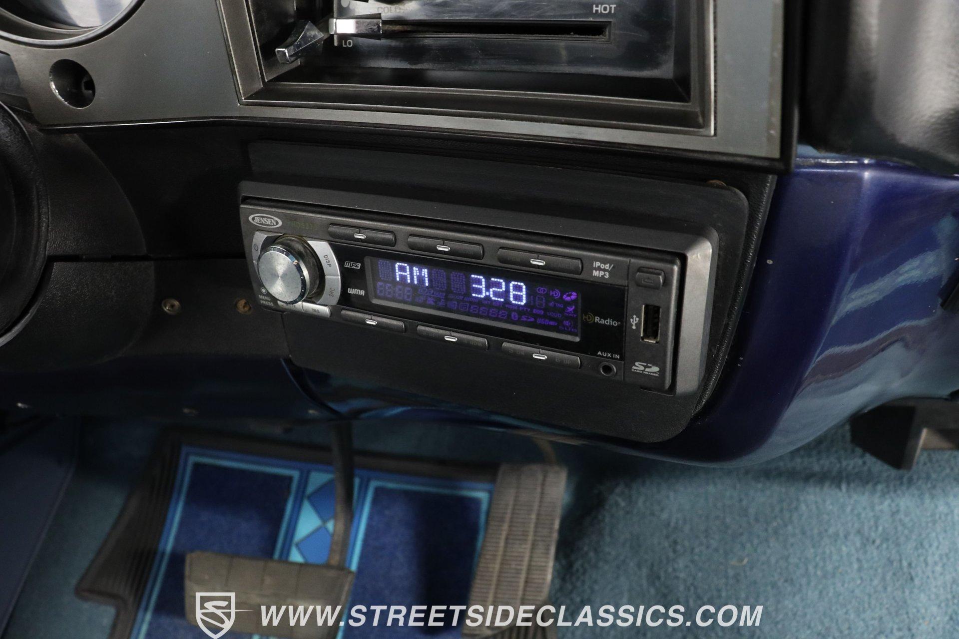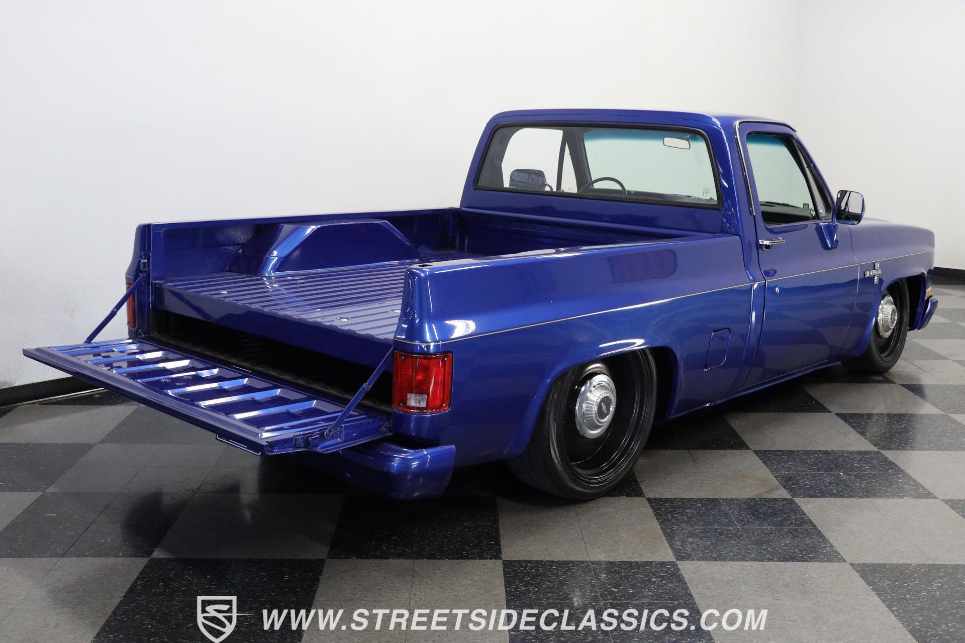 5106-TPA 1986 CHEVROLET C10 Lowered to perfection, this 1986 Chevrolet C10 showcases custom engineering with a slick dark blue exterior that gives it an unmistakable street truck aesthetic. The modified body features color-matched front and rear bumpers that flow seamlessly with the truck's lines, creating a cohesive visual package. The tubbed rear bed, specifically designed to accommodate the air suspension system, adds both style and function to this C10's appearance. Black steely 20-inch wheels with 245/40R20 tires fill the wheel wells perfectly, giving this truck an aggressive stance that draws attention wherever it goes. The gray cloth interior offers both comfort and utility with its spacious bench seat that shows minimal wear. Original-looking gauges provide clear readouts of all vital information, while the tilt steering column allows for custom driving positions. The dashboard maintains its classic Chevy truck appearance with simple, functional controls within easy reach. A modern AM/FM/AUX stereo system provides entertainment options for cruising, while the column shifter maintains the truck's original character and maximizes interior space without the need for a center console. Powering this street-oriented C10 is a 5.3L V8 engine, offering modern performance in a classic package and compatibility with its LS relatives. The powerplant is enhanced with a Holley high-rise intake manifold, 4-barrel Holley carburetor, and MSD ignition system for improved throttle response and reliability. A 700R4 4-speed automatic transmission handles the power delivery to the rear wheels, while the dual exhaust with headers produces a satisfying exhaust note. The custom air bag suspension with 4-link rear setup allows for adjustable ride height, and power disc brakes up front provide confident stopping power. HIGHLIGHTS: 5.3L V8 Engine 700R4 4-Speed Automatic Transmission MSD Ignition System 4-Barrel Holley Carburetor Holley High-Rise Intake Manifold Dual Exhaust with Headers Air Bag Suspension with 4-Link Rear Power Disc Brakes Power Steering Electric Fan Assembly Dark Blue Paint Color-Matched Front and Rear Bumpers 20" Black Steely Wheels with 245/40R20 Tires Modified Truck Bed for Air Suspension Color-Matched Rear View Mirrors Gray Interior with Bench Seat AM/FM/AUX Stereo Tilt Steering Column Air Tank Storage in Rear Truck Bed Modified with street style in mind, this 1986 Chevrolet C10 combines classic truck appeal with modern performance upgrades. The 5.3L V8, air suspension system, and custom touches throughout make this an ideal truck for cruising the boulevard or showing off at local meets. Call today! We can assist you with getting an Extended Vehicle Service Plan from Freedom Warranty, which provides comprehensive coverage that can save thousands of dollars on unexpected repairs. Inquire for more details and pricing!