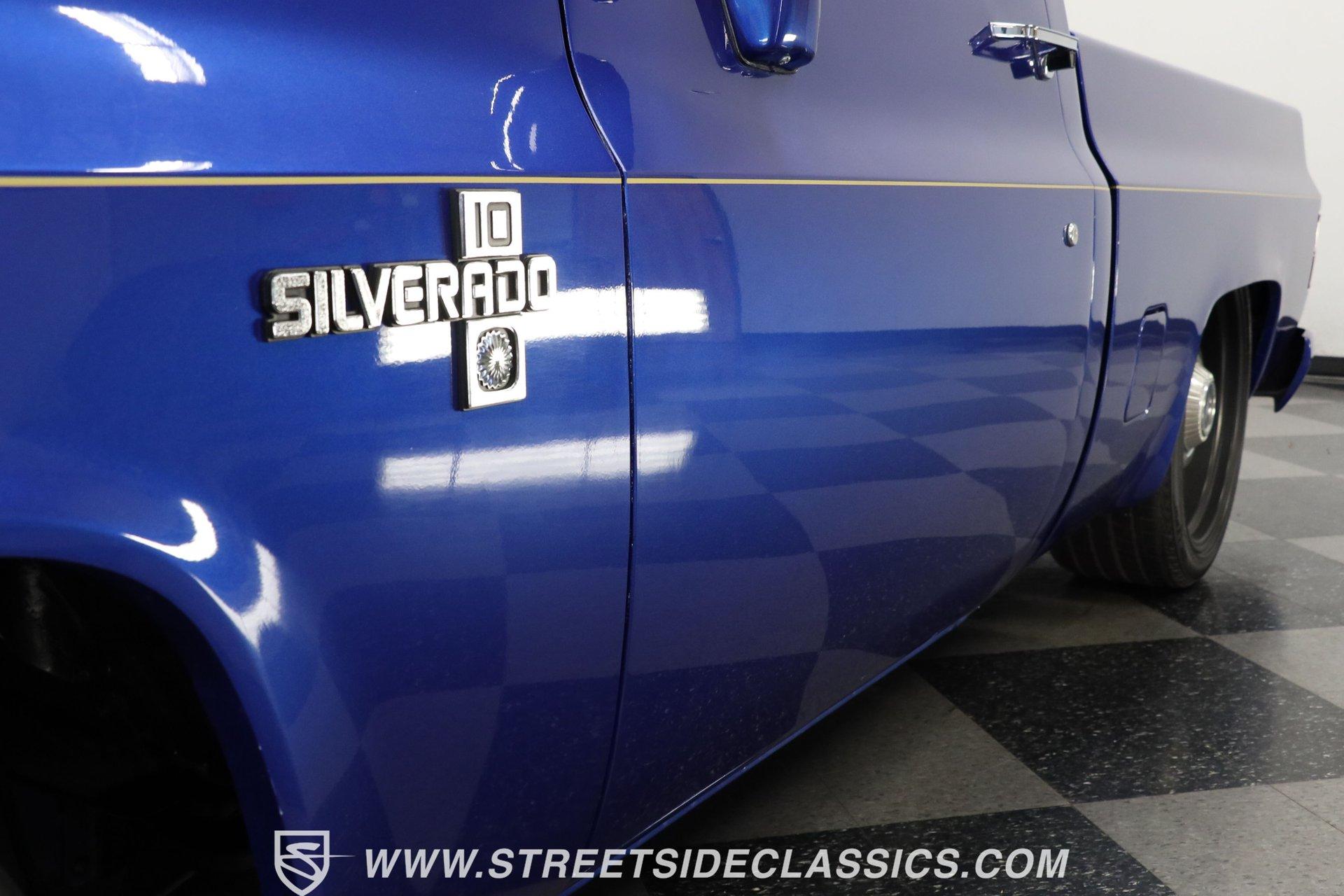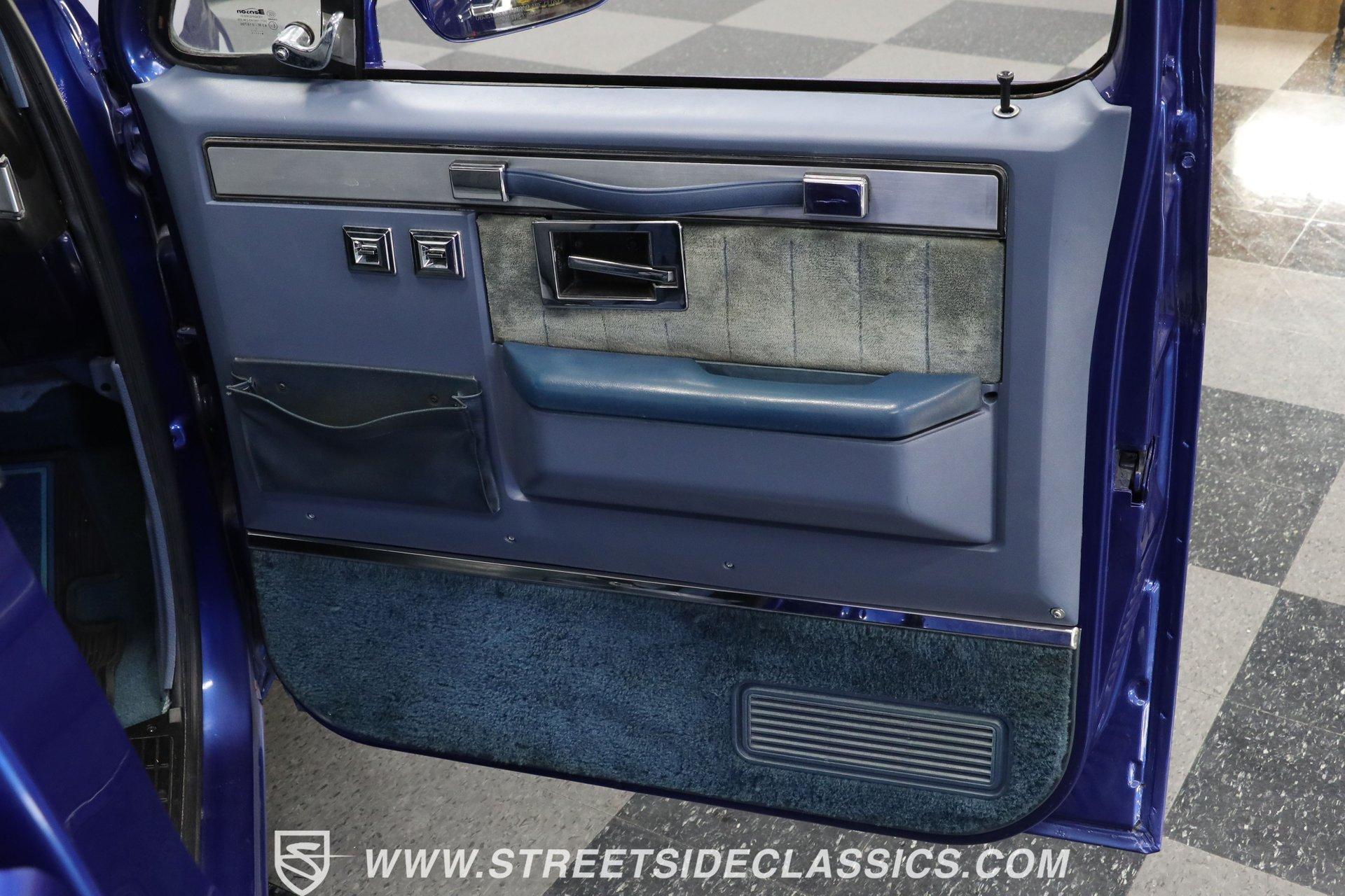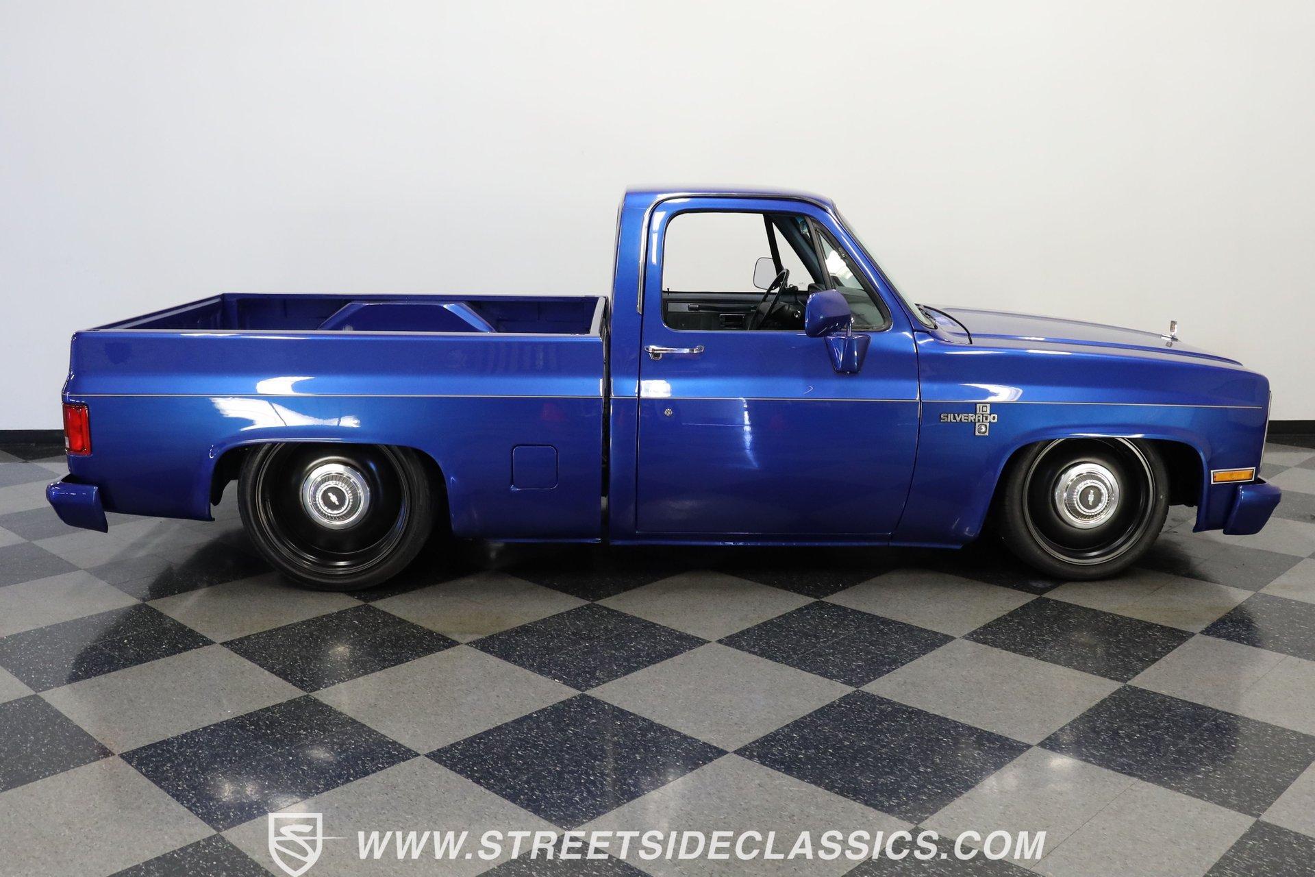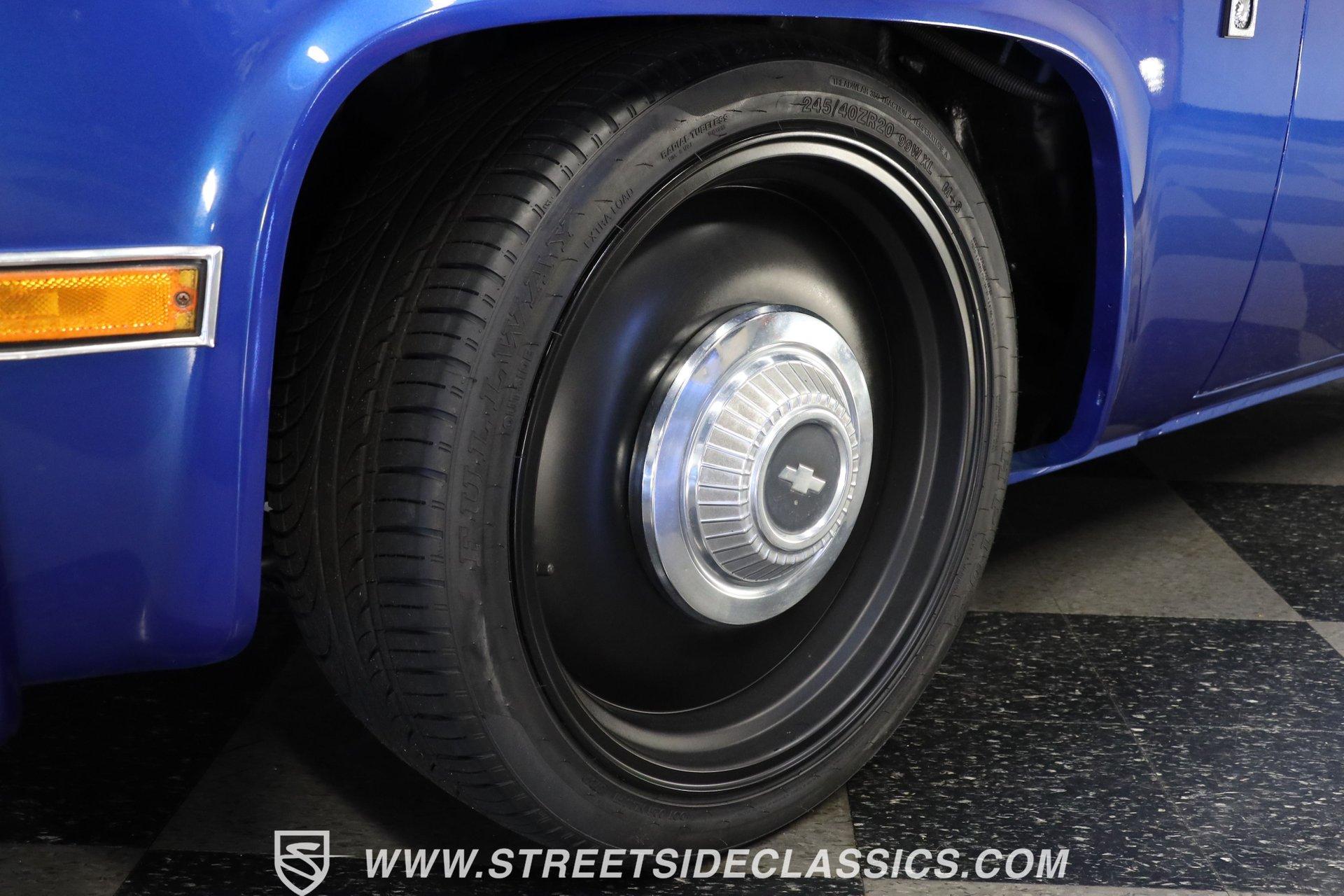 5106-TPA 1986 CHEVROLET C10 Lowered to perfection, this 1986 Chevrolet C10 showcases custom engineering with a slick dark blue exterior that gives it an unmistakable street truck aesthetic. The modified body features color-matched front and rear bumpers that flow seamlessly with the truck's lines, creating a cohesive visual package. The tubbed rear bed, specifically designed to accommodate the air suspension system, adds both style and function to this C10's appearance. Black steely 20-inch wheels with 245/40R20 tires fill the wheel wells perfectly, giving this truck an aggressive stance that draws attention wherever it goes. The gray cloth interior offers both comfort and utility with its spacious bench seat that shows minimal wear. Original-looking gauges provide clear readouts of all vital information, while the tilt steering column allows for custom driving positions. The dashboard maintains its classic Chevy truck appearance with simple, functional controls within easy reach. A modern AM/FM/AUX stereo system provides entertainment options for cruising, while the column shifter maintains the truck's original character and maximizes interior space without the need for a center console. Powering this street-oriented C10 is a 5.3L V8 engine, offering modern performance in a classic package and compatibility with its LS relatives. The powerplant is enhanced with a Holley high-rise intake manifold, 4-barrel Holley carburetor, and MSD ignition system for improved throttle response and reliability. A 700R4 4-speed automatic transmission handles the power delivery to the rear wheels, while the dual exhaust with headers produces a satisfying exhaust note. The custom air bag suspension with 4-link rear setup allows for adjustable ride height, and power disc brakes up front provide confident stopping power. HIGHLIGHTS: 5.3L V8 Engine 700R4 4-Speed Automatic Transmission MSD Ignition System 4-Barrel Holley Carburetor Holley High-Rise Intake Manifold Dual Exhaust with Headers Air Bag Suspension with 4-Link Rear Power Disc Brakes Power Steering Electric Fan Assembly Dark Blue Paint Color-Matched Front and Rear Bumpers 20" Black Steely Wheels with 245/40R20 Tires Modified Truck Bed for Air Suspension Color-Matched Rear View Mirrors Gray Interior with Bench Seat AM/FM/AUX Stereo Tilt Steering Column Air Tank Storage in Rear Truck Bed Modified with street style in mind, this 1986 Chevrolet C10 combines classic truck appeal with modern performance upgrades. The 5.3L V8, air suspension system, and custom touches throughout make this an ideal truck for cruising the boulevard or showing off at local meets. Call today! We can assist you with getting an Extended Vehicle Service Plan from Freedom Warranty, which provides comprehensive coverage that can save thousands of dollars on unexpected repairs. Inquire for more details and pricing!