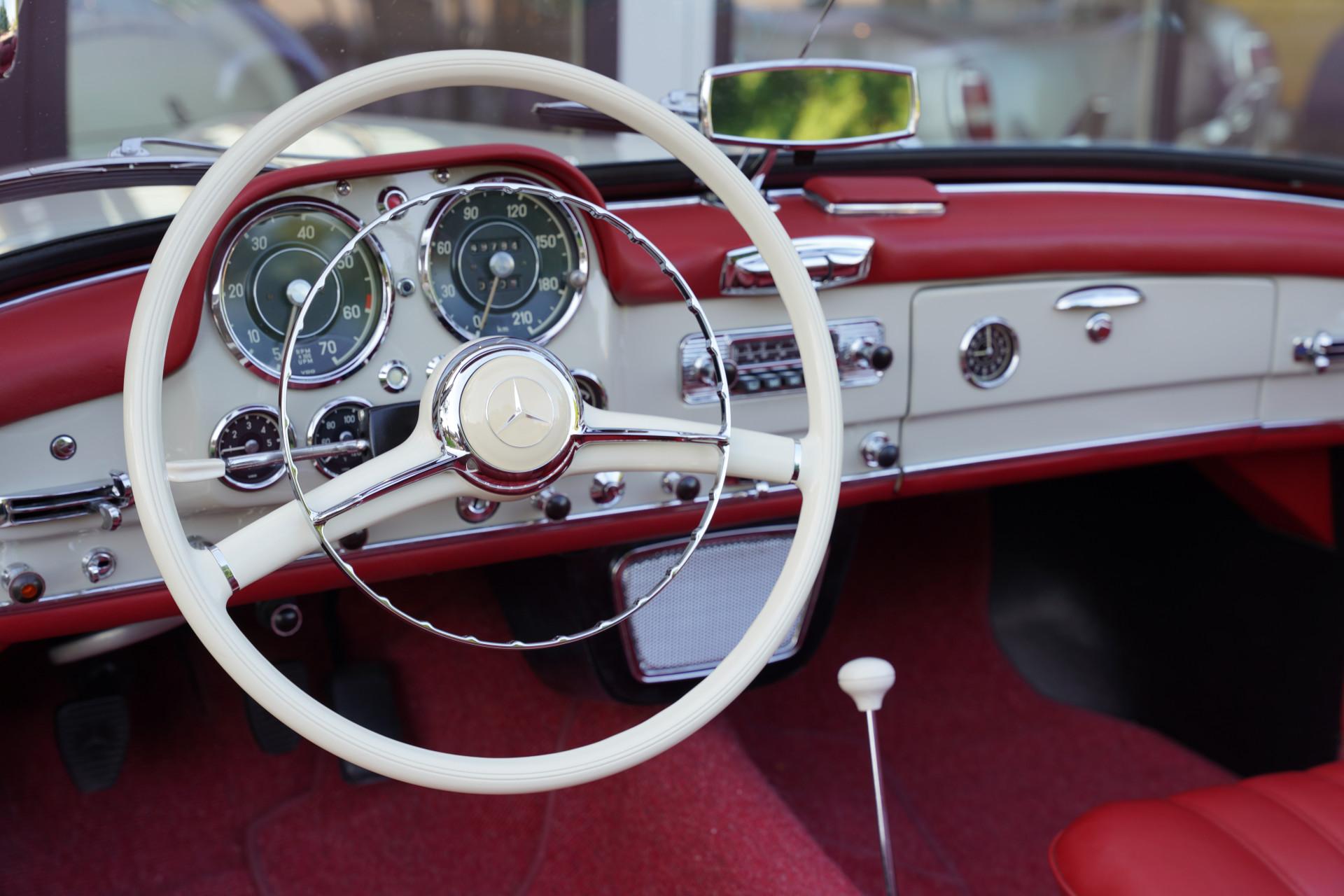 Under the hood sits a 1.9-liter four-cylinder engine with twin Solex carburetors, producing 105 horsepower. It was never meant for outright speed, but for delivering a superb driving experience. The 190 SL is smooth, stable, and inviting—exactly what a classic grand tourer should be. And then there's that unmistakable sound when you close the door with a solid “click”—a small detail that speaks volumes about its craftsmanship.