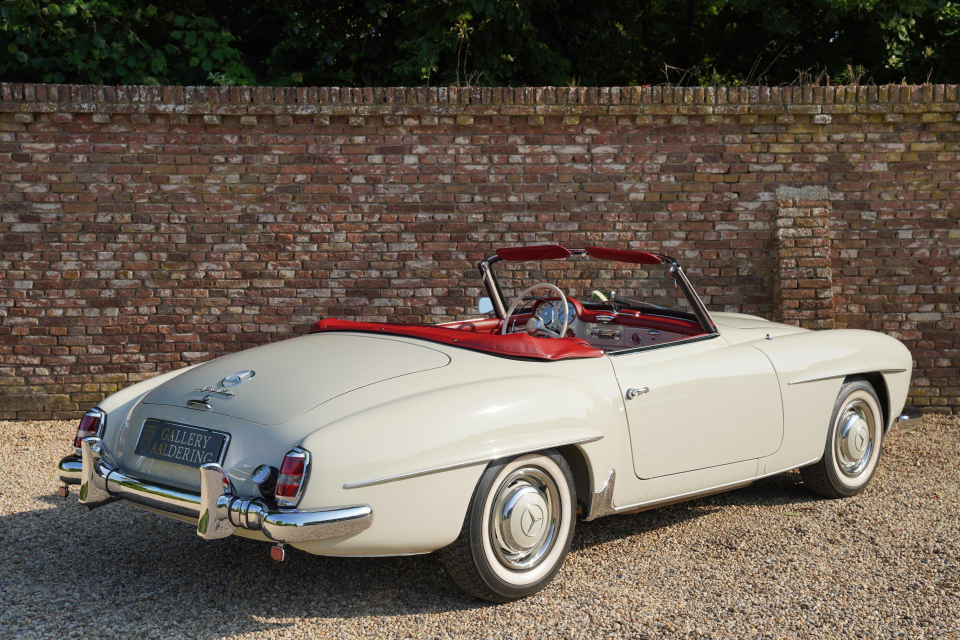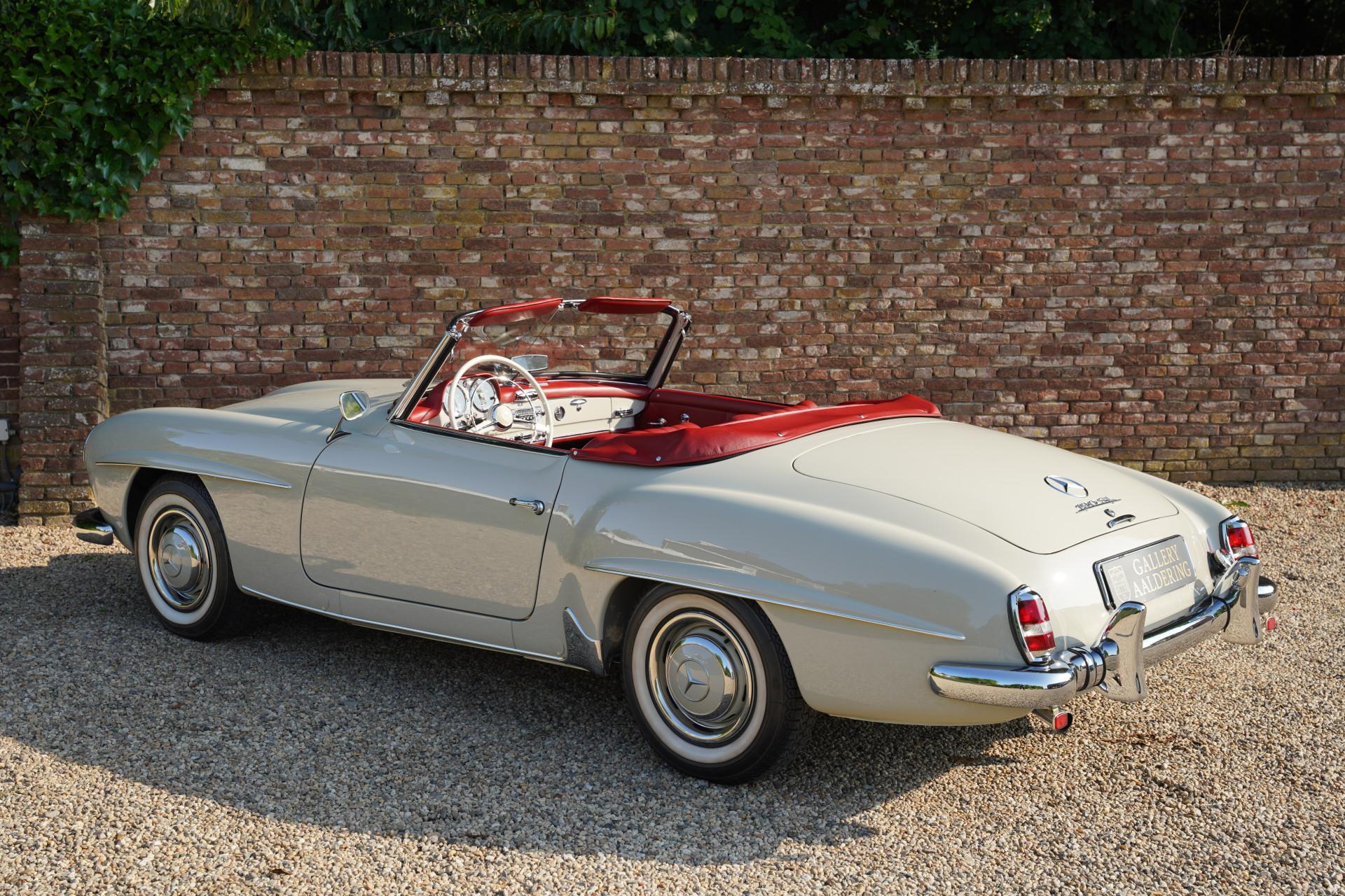 Mercedes-Benz introduced the 190 SL in 1955 as a stylish and more accessible counterpart to the legendary 300 SL. With its graceful lines, elegant detailing, and exceptional build quality, it quickly earned its place as the perfect companion for refined touring. Between 1955 and 1963, approximately 25,000 units were produced, and only a small fraction remain today in a condition like this.