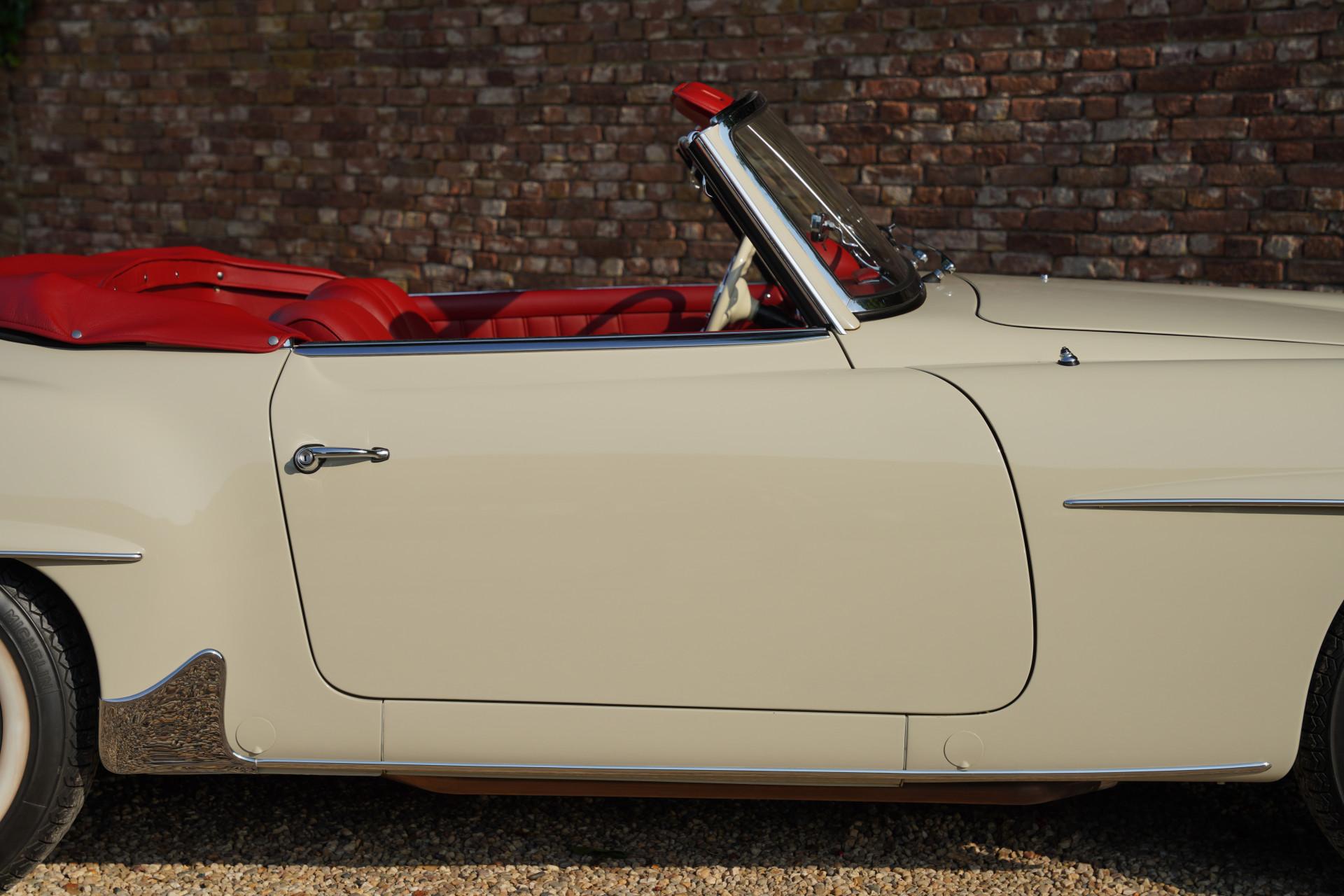 The restoration took several years and was commissioned by a collector with a highly exclusive car collection in Germany. No detail was overlooked: every component was carefully inspected, renewed, or restored in full accordance with the original factory specifications. This is a concours-level 190 SL, accompanied by extensive documentation, a full photo record, and the original Datenkarte. It's also matching numbers, exactly what you want from a 190 SL of this caliber.