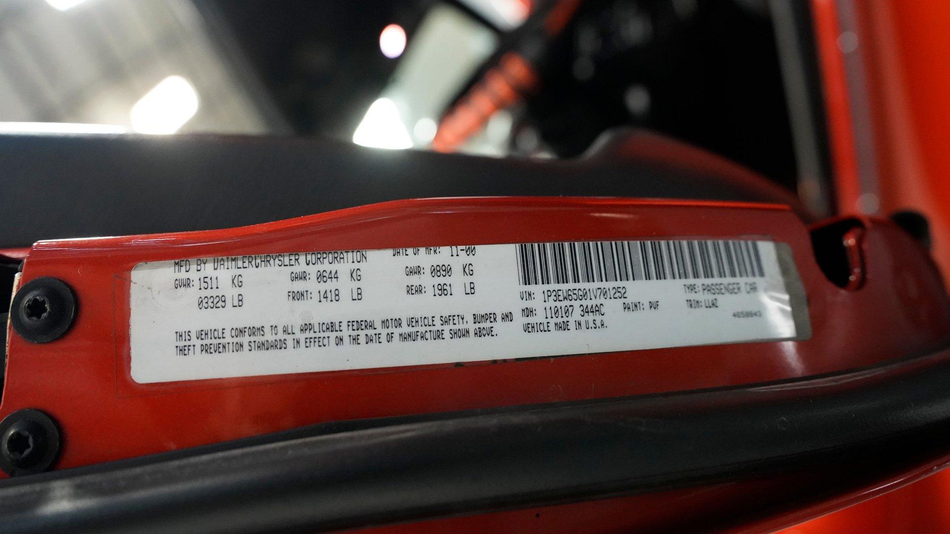 American hot rod legacy lives in this 2001 Plymouth Prowler finished in vibrant Prowler Orange Metallic. One of the most radical production vehicles ever launched by a major manufacturer, this Prowler features an added rear spoiler and chrome-style accenting on the grille that amplify its already dramatic appearance. Its distinctive aluminum frame construction and open-wheel design showcase 17" front and 20" rear wheels wrapped in 225/45R17 front and 295/40R20 rear tires. The black canvas convertible top with glass rear window tucks away cleanly, while subtle ghost flames on the hood add custom flair to this low-slung factory hot rod. Agate leather bucket seats anchor the black interior where form and function unite. The factory shifter sits prominently on the center console, giving the driver full control over the automatic transmission. Chrome accents spread throughout the cabin, adorning various switches and controls for a custom feel. Air conditioning keeps occupants cool during summer drives, while the AM/FM cassette player provides audio entertainment. The factory instrumentation displays all vital information clearly, maintaining the clean aesthetic of this purpose-built roadster. The freshly installed Jasper 3.5L V6 engine sends power through a 4-speed automatic transmission to the rear transaxle. This powertrain configuration gives this Prowler excellent balance and handling characteristics. Power disc brakes at all four corners provide ample stopping power, while the coilover suspension setup front and rear delivers precise road feel. Dual exhaust with factory mufflers produces a satisfying sound that matches the Prowler's aggressive styling without being overly loud or intrusive. HIGHLIGHTS: 3.5L V6 Jasper Replacement Engine 4-Speed Automatic Transmission Electronic Fuel Injection Transaxle Rear Axle Power Disc Brakes Front and Rear Coilover Suspension Front and Rear Dual Exhaust Prowler Orange Metallic Paint Ghost Flames on Hood Black Canvas Convertible Top with Glass Rear Window Added Rear Spoiler Chrome-Style Grille Accents 17" Front, 20" Rear Wheels 225/45R17 Front, 295/40R20 Rear Tires Agate Leather Bucket Seats with Console Power Steering Air Conditioning AM/FM Cassette Player Console Shifter Chrome Accents on Switches and HVAC Controls Spare Chrome Dress Up Bits in Trunk Unprogrammed Key Fob in Console Clear Plastic Windscreen for Convertible Top Storage With only 47,228 miles on the odometer, this 2001 Plymouth Prowler combines hot rod styling with modern reliability. Factory-built yet looking like a custom creation, this unique vehicle delivers the perfect blend of exclusivity and drivability. Call today!