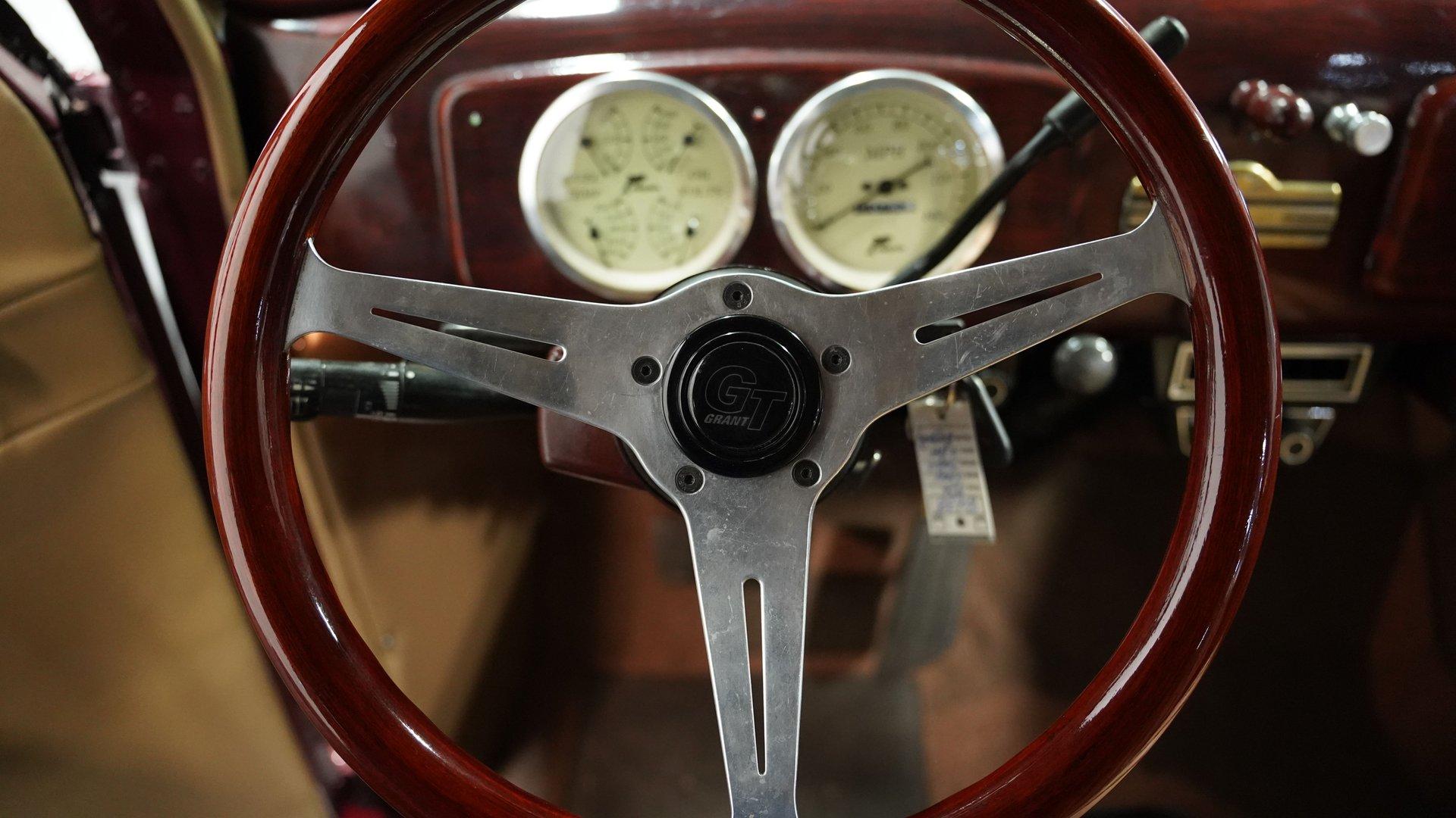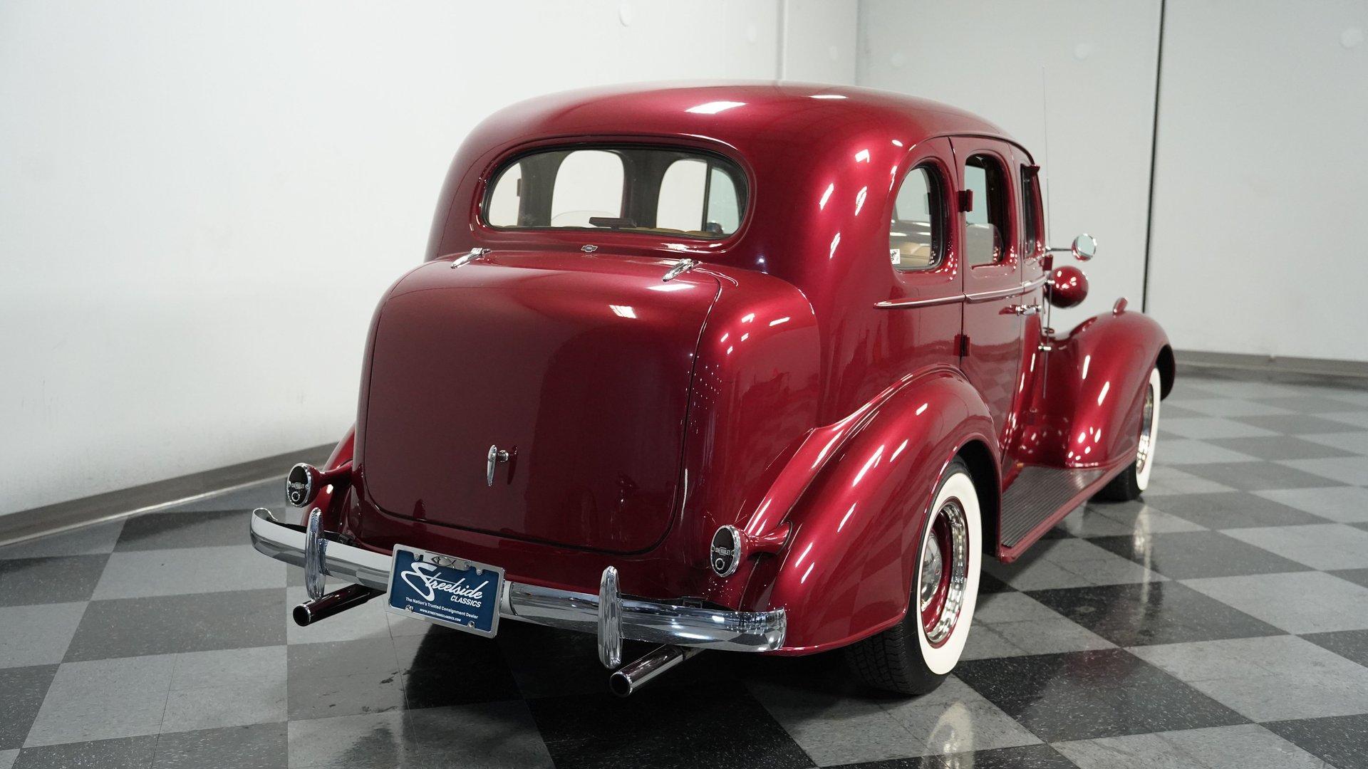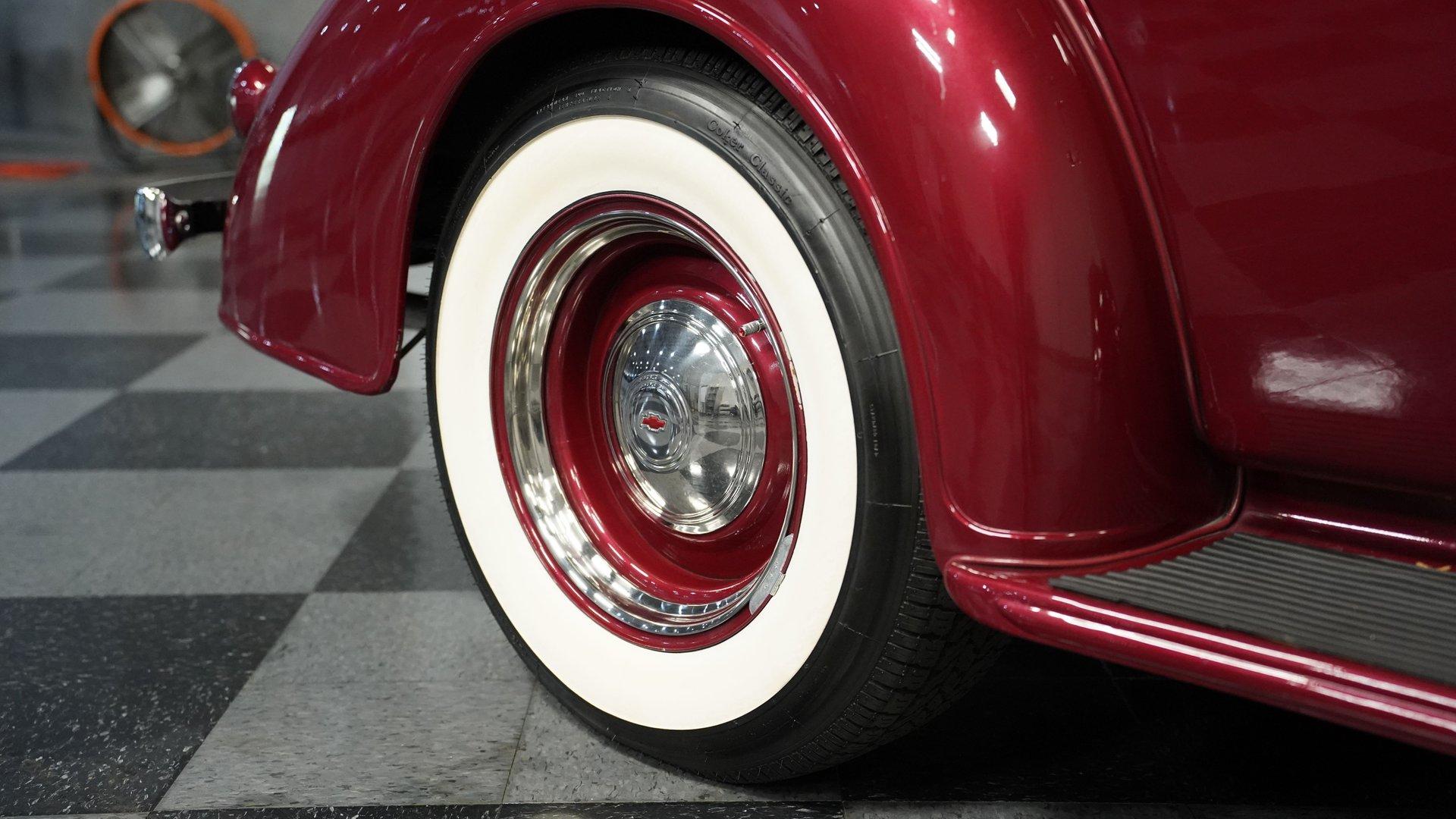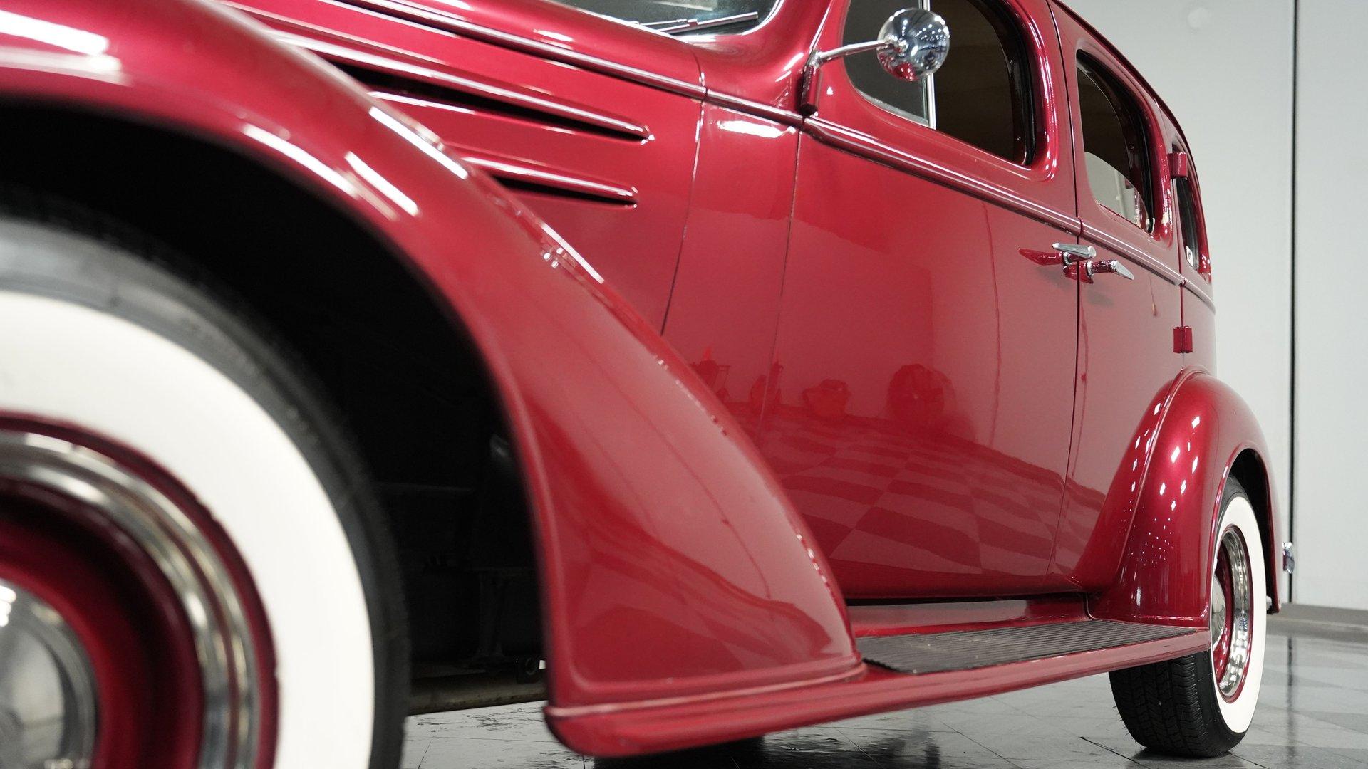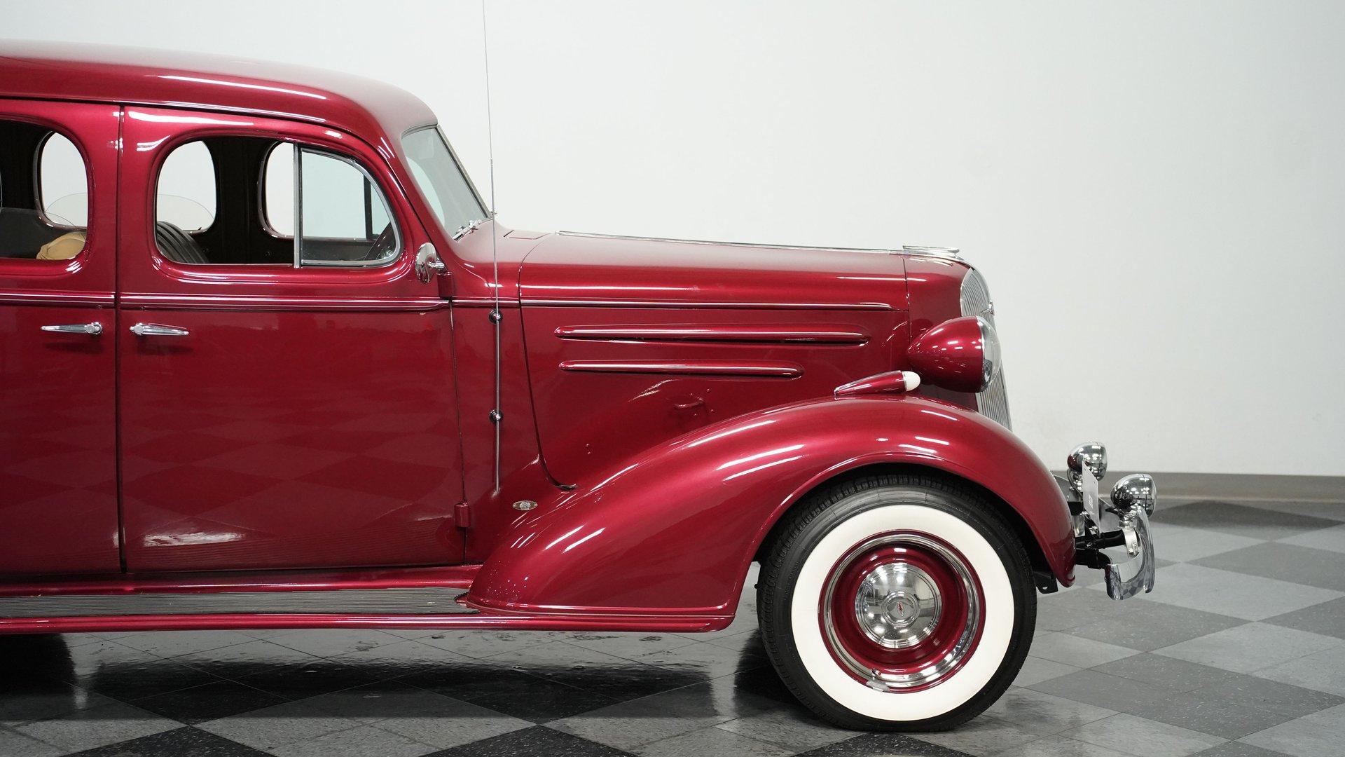 Sporting an all-steel body coated in rich burgundy paint accented by clean white pinstripes, this 1936 Chevrolet Standard Sedan carries a modified aesthetic that collectors appreciate. The Mustang-inspired front end geometry adds a unique flair to this four-door classic. Bright chrome trim runs throughout the exterior, outlining the body panels and window frames with period-correct detail. Those 15-inch wheels and 215/75R15 tires complete the look while maintaining the Chevy's stately proportions and authentic appeal. The tan leather interior creates an inviting atmosphere that complements the burgundy exterior. Bucket seats offer the ideal position for long drives, with quality upholstery showing excellent condition throughout. Dolphin gauges provide clear readouts while adding a custom touch to the dash. The column shifter falls naturally to hand for easy gear selection. Quality materials extend throughout from the clean carpet to the taut headliner, with the AM/FM single CD player adding modern audio capabilities to this classic cabin. A 350 V8 engine gives this Chevrolet plenty of motivation, working alongside a three-speed TH400 automatic transmission. An Edelbrock four-barrel carburetor sits atop an aluminum intake manifold for improved fuel delivery. Dual exhaust with glasspack-style mufflers produces a satisfying tone when accelerating. Power steering makes maneuvering effortless, while the power disc brakes provide excellent control. The independent front suspension and rear leaf springs with shocks absorb road imperfections for a solid driving feel. HIGHLIGHTS: 350 V8 Engine 3-Speed TH400 Automatic Transmission Single 4-Barrel Edelbrock Carburetor Aluminum Intake Manifold Power Front Disc Brakes Mustang-Inspired Front End Independent Front Suspension Leaf Spring Rear Suspension with Shocks Dual Exhaust with Glasspack Style Mufflers 10-Bolt Rear Axle Burgundy Paint with White Pinstripes 15" Wheels 215/75R15 Tires All Steel Body Tan Leather Bucket Seats Dolphin Gauges Power Steering Column Shifter AM/FM Single CD Player 12V Electrical System with Battery in Trunk Classic proportions with modern upgrades make this 1936 Chevrolet Standard Sedan a worthwhile addition to any collection. The burgundy and white exterior, comfortable leather interior, and strong V8 powerplant combine to create a vehicle that's equally at home at local shows or weekend cruises. Call today!