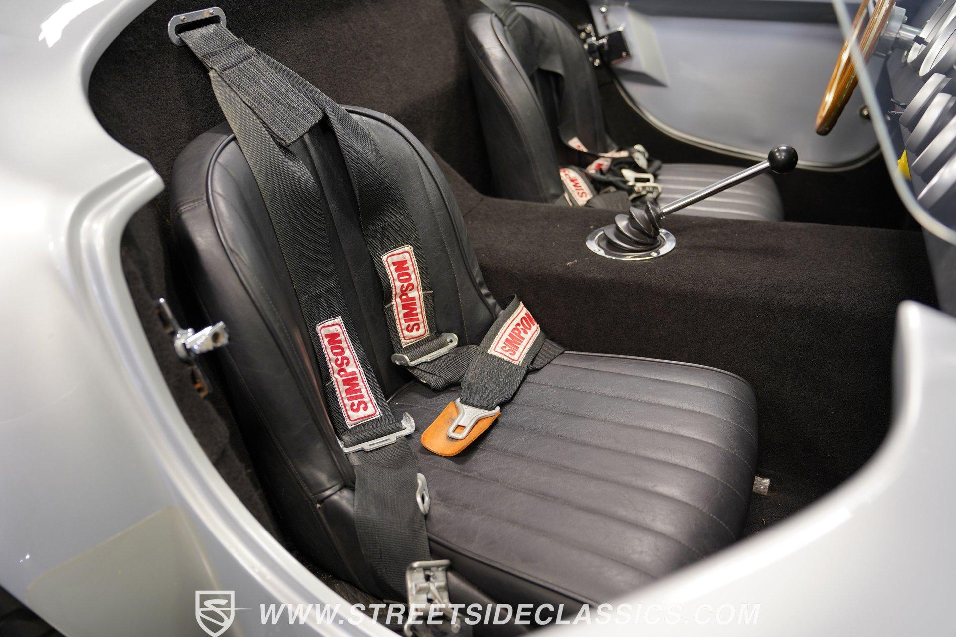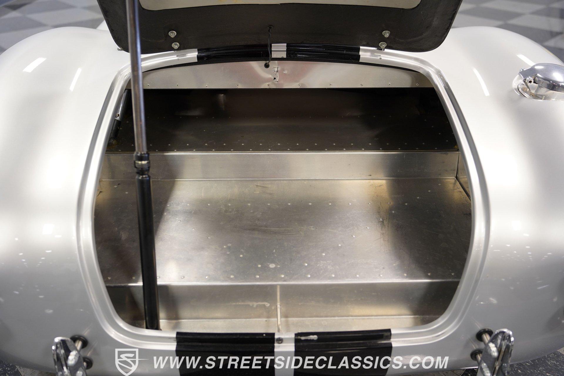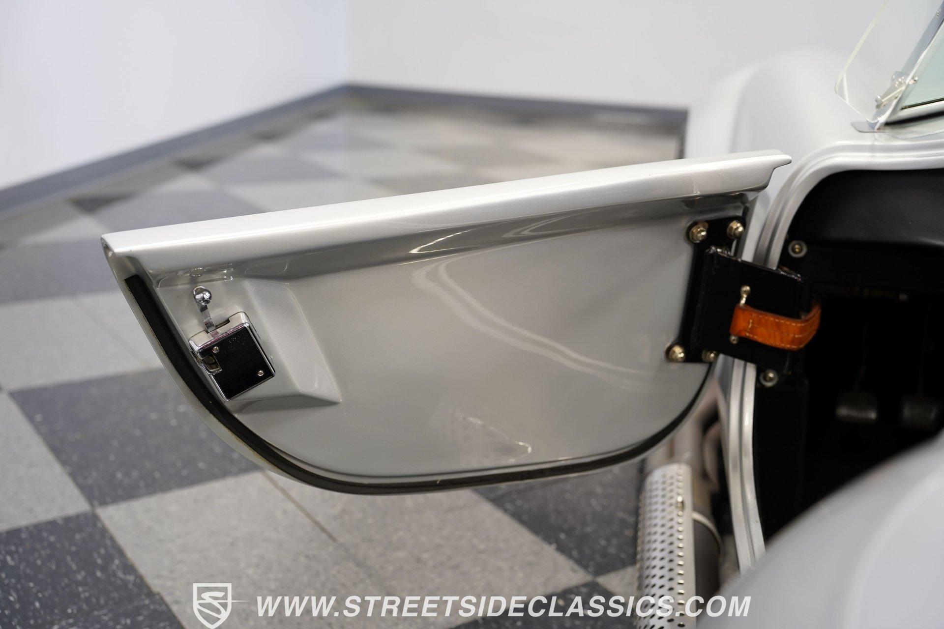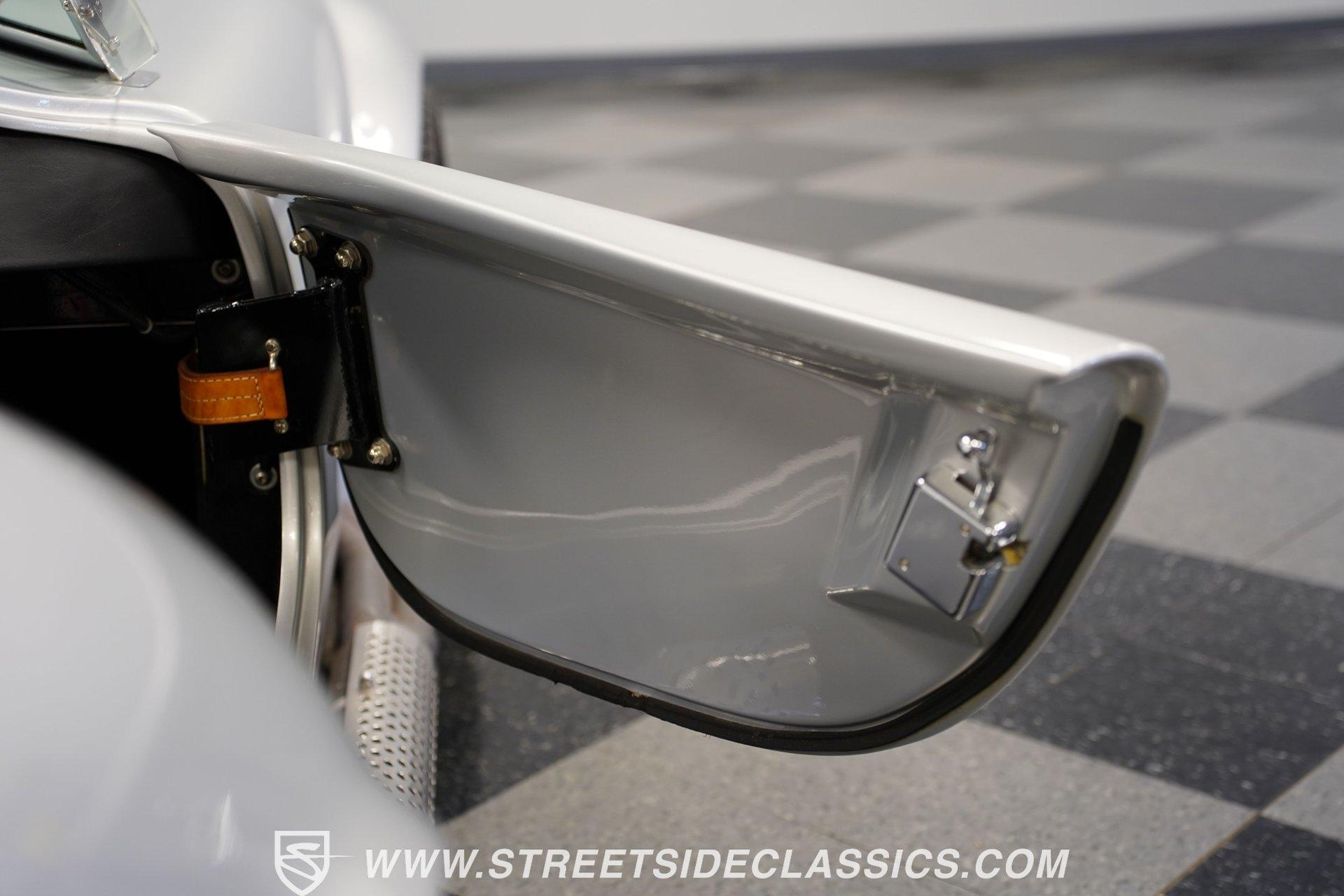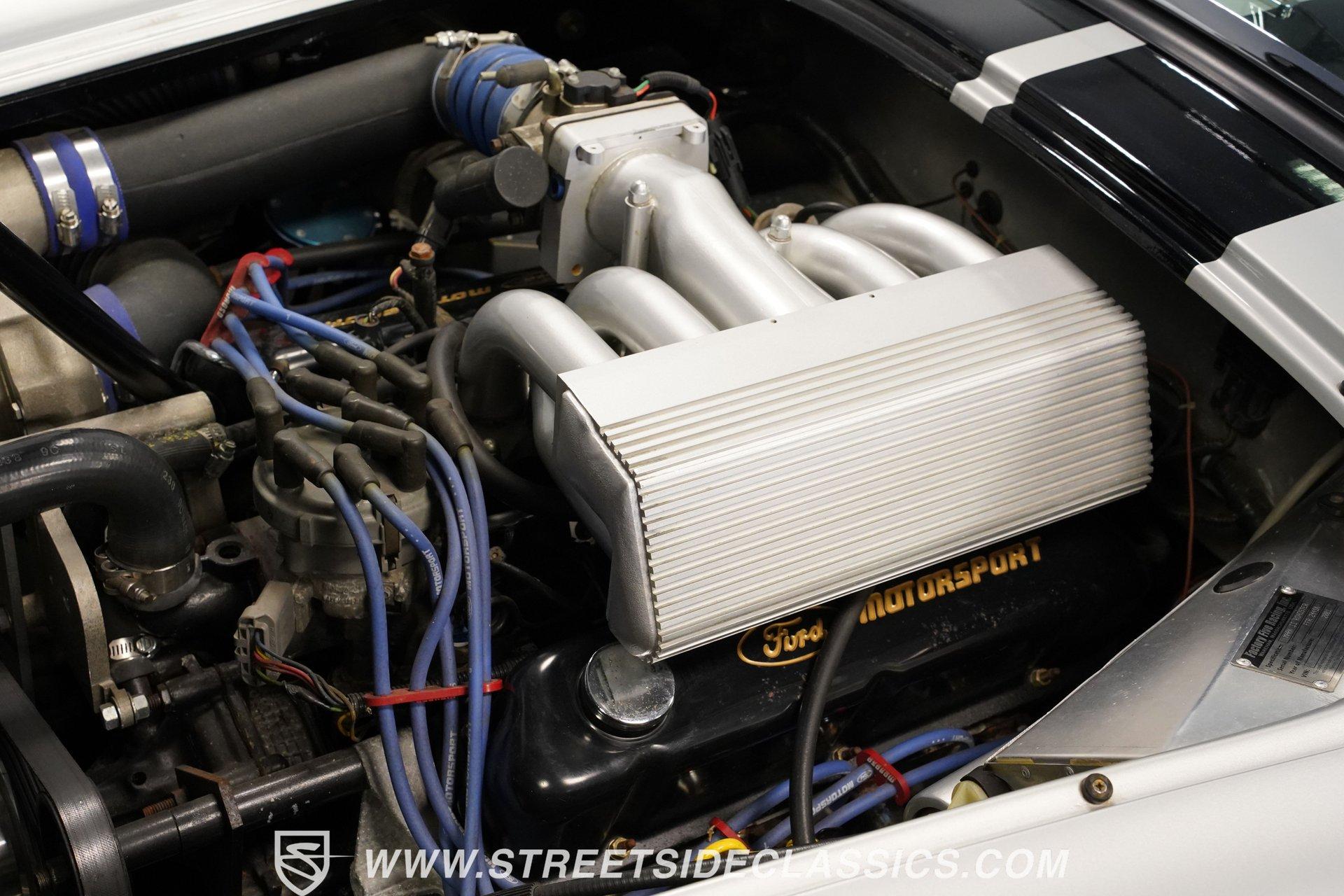 Legendary speed and style define the Shelby Cobra Factory Five, finished in a stunning Silver Metallic paint job with classic black racing stripes running along its body. The low-slung body sits perfectly on 17" American Racing wheels that fill out the wheel wells completely. A functional hood scoop adds motorsport flair to the front end while the side pipes add visual muscle to the overall appearance. The single chrome rollover bar behind the seats adds both safety and style. Yokohama tires (225/40ZR17 front, 285/40ZR17 rear) provide excellent grip. Minimalist racing inspiration shows throughout the black interior. The black vinyl bucket seats offer excellent lateral support during fast cornering. A wooden steering wheel gives a classic feel while modern Autometer gauges display vital information across the clean dash. Racing harnesses keep occupants firmly secured. The floor features clean carpet with minimal wear. For added safety, a battery cutoff switch is located conveniently behind the driver's seat. Generating massive power is a supercharged 5.0L V8 engine connected to a Borg Warner T5 5-speed manual transmission. Performance modifications include a BBK Power Plus 70mm supercharger, MSD ignition, BBK throttle body, aftermarket intake, aluminum intake manifold, and BBK shorty headers. An aluminum radiator with electric fan keeps temperatures controlled. The suspension consists of independent double wishbones up front and a coilover/trailing arm setup in back. Four-wheel disc brakes bring everything to a stop. HIGHLIGHTS: Supercharged 5.0L V8 Engine Borg Warner T5 5-Speed Manual Transmission Electronic Fuel Injection BBK Power Plus 70mm Supercharger MSD Ignition System Aftermarket Intake Aluminum Intake Manifold BBK Shorty Headers Aluminum Radiator with Electric Fan Independent Front Suspension Coilover/Trailing Arm Rear Suspension 4-Wheel Disc Brakes Silver Metallic Paint with Black Racing Stripes Side Pipe Exhaust Functional Hood Scoop Single Chrome Rollover Bar 17" American Racing Wheels 225/40ZR17 Front, 285/40ZR17 Rear Yokohama Tires Black Interior with Bucket Seats Racing Harnesses Wooden Steering Wheel Autometer Gauges Battery Cutoff Switch Combining classic styling with modern performance upgrades makes this 1965 Shelby Cobra Factory Five an incredible machine. The supercharged V8 and lightweight construction give amazing acceleration while the upgraded suspension keeps it planted in the curves. Call today!