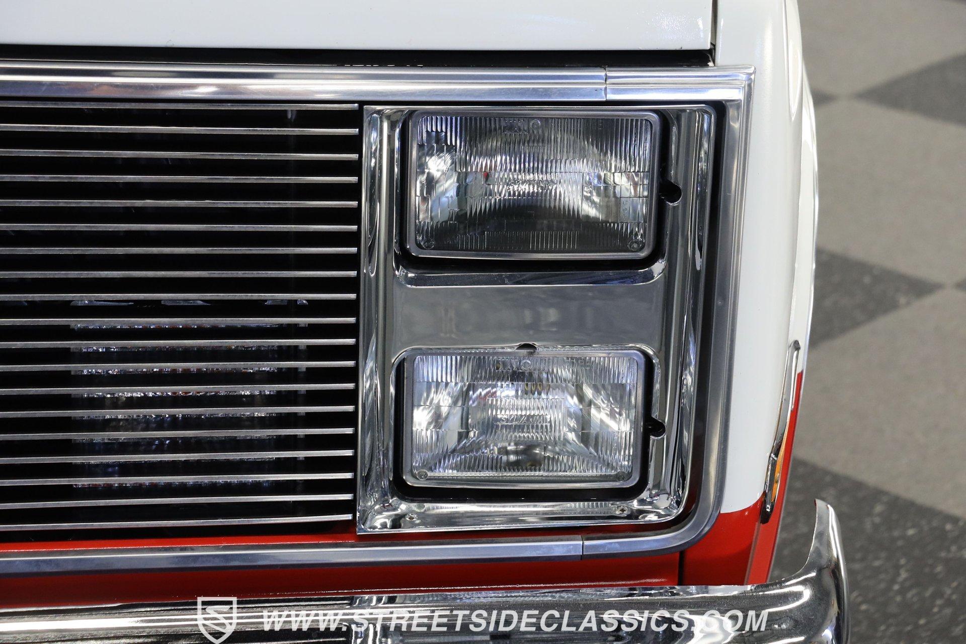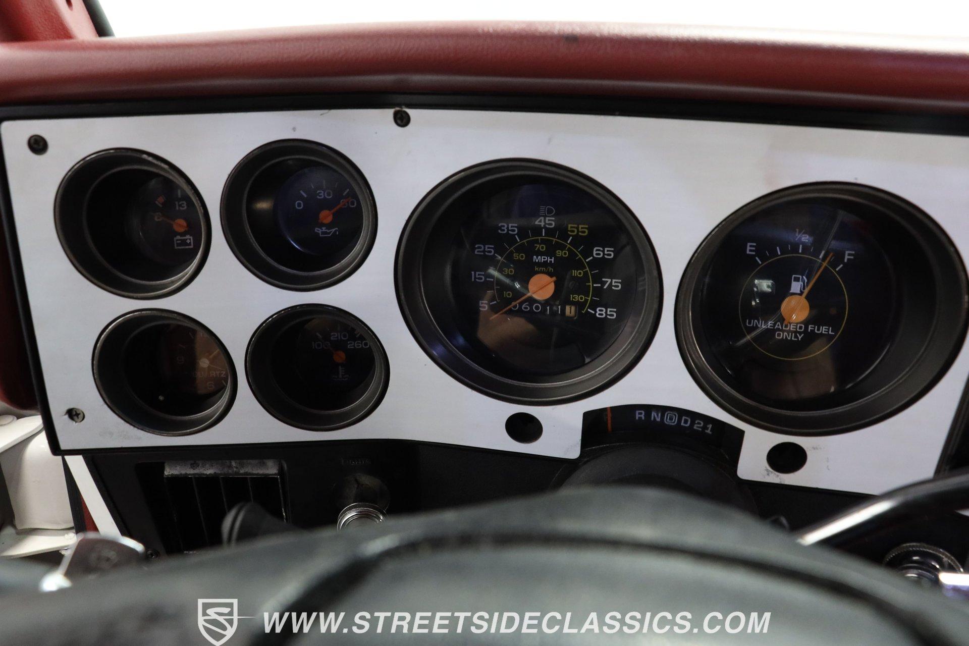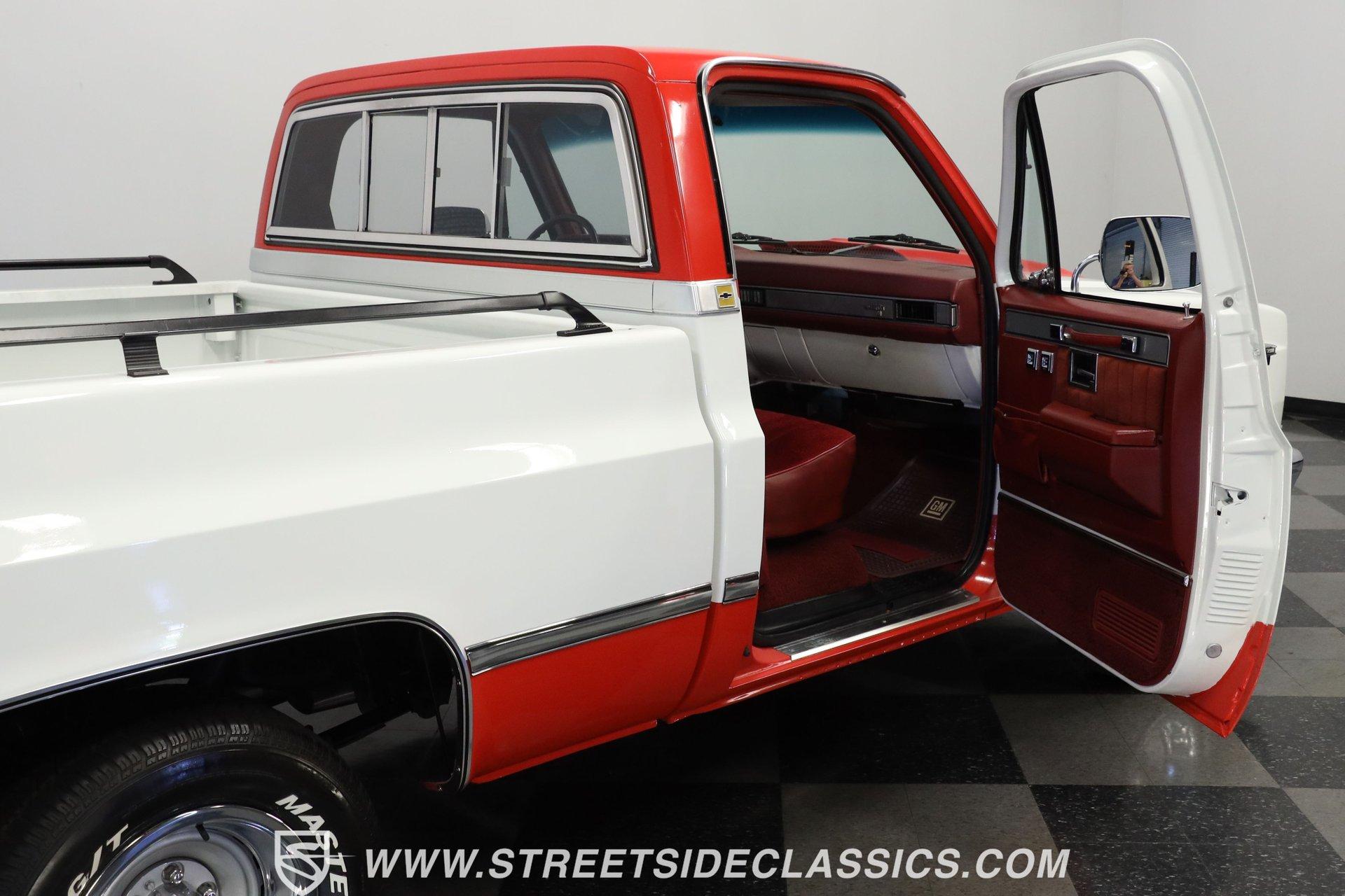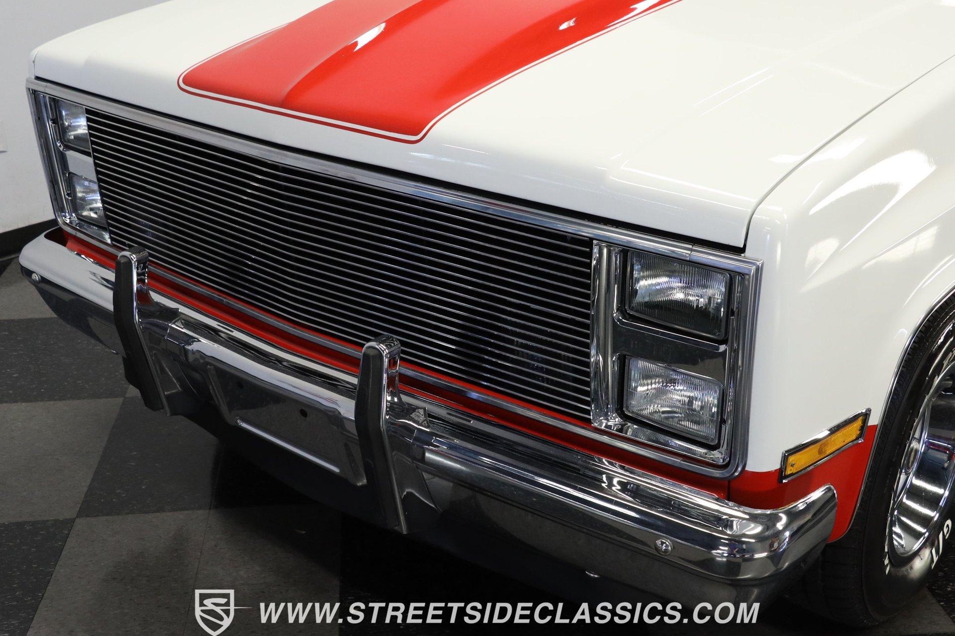 Chevy trucks from this era are arguably some of the best-looking trucks ever made, and this 1984 Chevrolet C10 Silverado Short Bed is an excellent example of why. This top-of-line Silverado has been resprayed in gloss white and red paint finish accented with chrome and moldings. Looking closely at the bed reveals that this truck has never seen use as work truck and has been exceptionally well cared for. The wide Chevrolet truck rally wheels have super-clean paint, center caps and trim rings, and are wrapped with Mastercraft Avenger G/T raised white lettered tires staggered 235/70R15 front and 275/60R15 rear for a confidant stance. The addition of a cowl hood, bed rails, front bumper guards, chrome rear step bumper and custom grill add to this truck handsome good looks. HIGHLIGHTS: 454 Big Block V8 Automatic Transmission Beautifully Restored Truck Chevrolet Truck Rally Wheels Cowl Hood Custom Grill Power Windows Power Door Locks Chrome Rear Step Bumper Front Bumper Guards Factory AM/FM Radio Upgraded Serpentine Belt System Aluminum Radiator Aluminum High-Rise Intake Edelbrock Carburetor Documentation showing 1 family owned! The luxurious Silverado red interior is clean with beautiful crack-free dash and plastic trim throughout. The seats, headliner and carpets are in excellent condition as well. This truck is highly optioned with power windows, power locks, air conditioning (not currently operational), tilt steering column, gauge package, cruise control and a rarely seen today factory AM/FM radio still in the dash. Under the hood is as clean as the rest of the truck, featuring a smooth-running 454 Big Block engine V8 mated to a TH350 automatic transmission. The engine features an aluminum high rise intake manifold, single Edelbrock 4-barrel carburetor, chrome Chevrolet logo valve covers, chrome Chevrolet logo open-element air cleaner, upgraded serpentine belt system, and an aluminum radiator with dual electric fans. This 1984 Chevrolet C10 Silverado it runs and drives nicely. It is rare to find a fully loaded Silverado Short Bed, especially one that has remained in the same family since new! Call today! We can assist you with getting an Extended Vehicle Service Plan from Freedom Warranty, which provides comprehensive coverage that can save thousands of dollars on unexpected repairs. Inquire for more details and pricing!