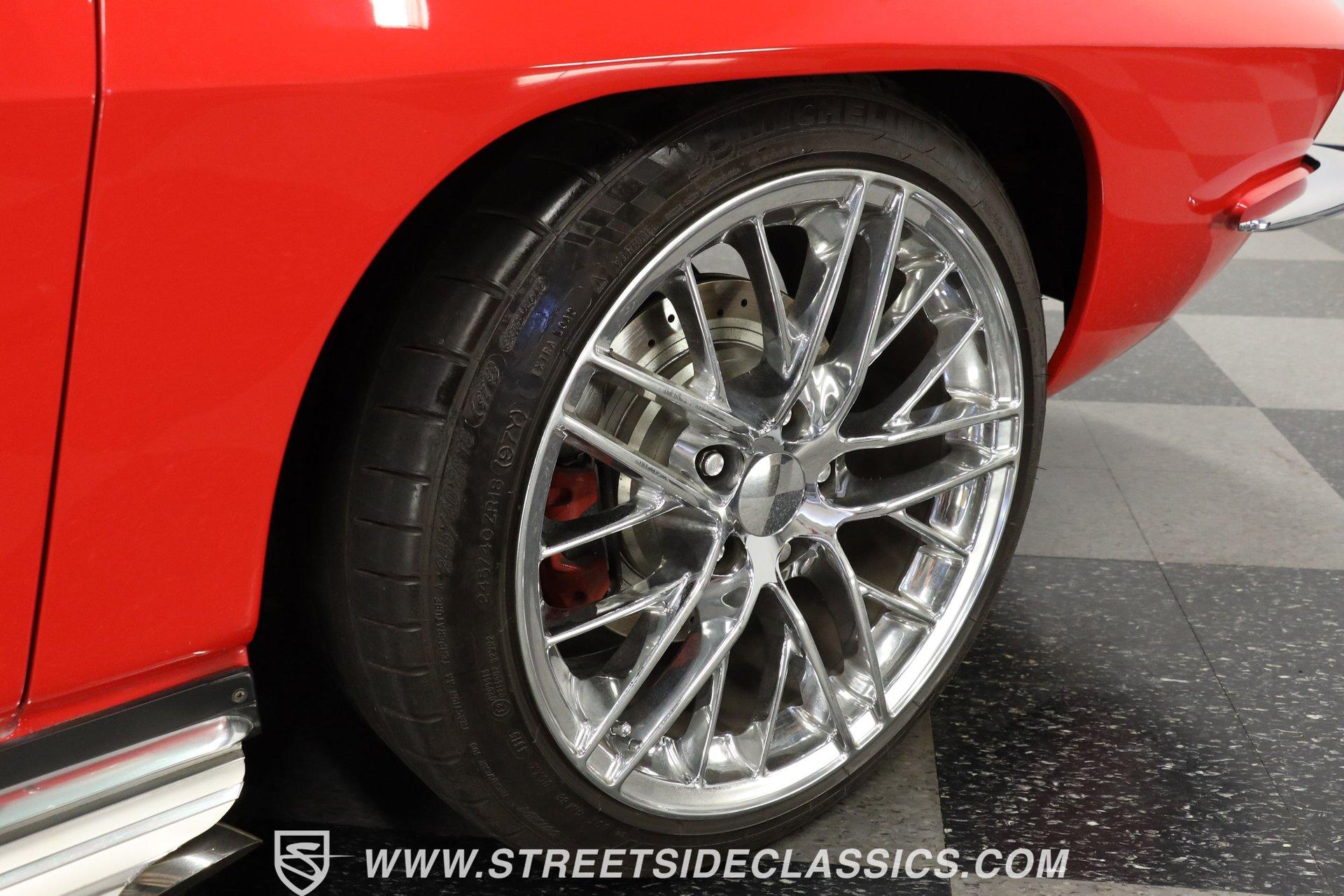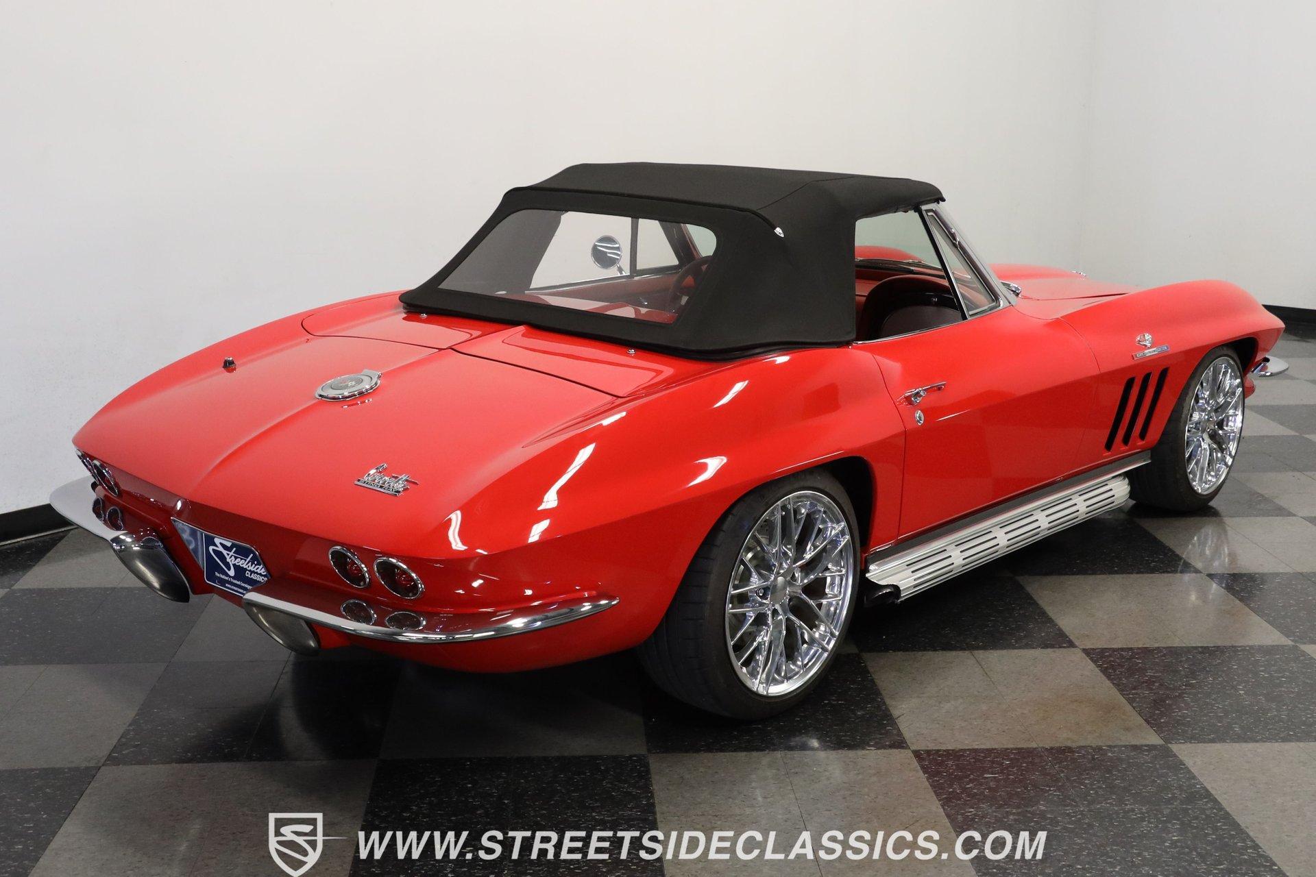 The Corvette was always America's only true sports car and the 1966 Corvette Convertible Restomod takes it to a new level! Everything in this Corvette restoration has been upgraded or modified to make it a superior from the rest. All body work and paint are professionally done in a gorgeous shade of red flowing over the svelte lines of the '66 body with a luxurious canvas black soft top, great chrome bumpers and trim, and factory-style side-pipes. Adding to the excitement are a set of chrome 18-inch C6 Corvette ZRl -style wheels with 245/40 ZR18 Michelin Pilot Super Sport Tires. The red interior includes the leather bucket seats, Dakota Digital VHX gauges and clock, Flaming River adjustable tilt steering column, leather wrapped steering wheel, power windows, red carpet and floor mats, remote battery shutoff switch, seatbelts, modern air conditioning, and a retro stereo system with AUX and Bluetooth. Power and performance come from a professionally tuned Corvette LS3 Crate Engine with 430 horsepower paired with a Tremec 5-Speed Transmission. Other upgrades include a March Performance serpentine system, Dewit aluminum radiator and electric fan, custom polished cold air intake and custom exhaust routed through factory-style side-pipe covers. This Corvette's ride and handling capabilities are greatly enhanced with a custom-built replacement chassis from the specialists at Street Shop Inc in Athens, Alabama, featuring C6-Z06 Corvette Suspension, four-wheel power slotted and drilled disc brakes, power steering, Viper 3rd member and upgraded adjustable coil overs and shocks. Corvette LS3 Crate Engine-430 Hp Tremec Tko-600 5-Speed Transmission Custom Red Painted Engine Covers C6-Z08 Corvette Suspension and Brakes Viper 3rd Member-Upgraded Adjustable Coil Overs & Shocks Professionally Tuned March Performance Serpentine system Power Windows Modern Air Conditioning Custom Polished fresh air induction system Dewit Radiator & Fan Custom Built Replacement Chassis from Street Shop Inc, Athens, Al C6 Corvette ZRl Style Wheels 245/40 ZR18 Michelin Pilot Super Sport Tires Red Leather Seats Factory Dash with Dakota Digital VHX Gauges and Clock Flaming River Adjustable Tilt Steering Column and Leather Wrapped Steering wheel Custom Looped Red carpet and floor mats Remote Battery Shutoff Switch Custom exhaust using factory side pipes Custom Canvas Black Soft Top This exceptional 1966 Corvette restomod is a high-quality build that not only looks amazing, but is a thrill to drive! Call today! We can assist you with getting an Extended Vehicle Service Plan from Freedom Warranty, which provides comprehensive coverage that can save thousands of dollars on unexpected repairs. Inquire for more details and pricing!