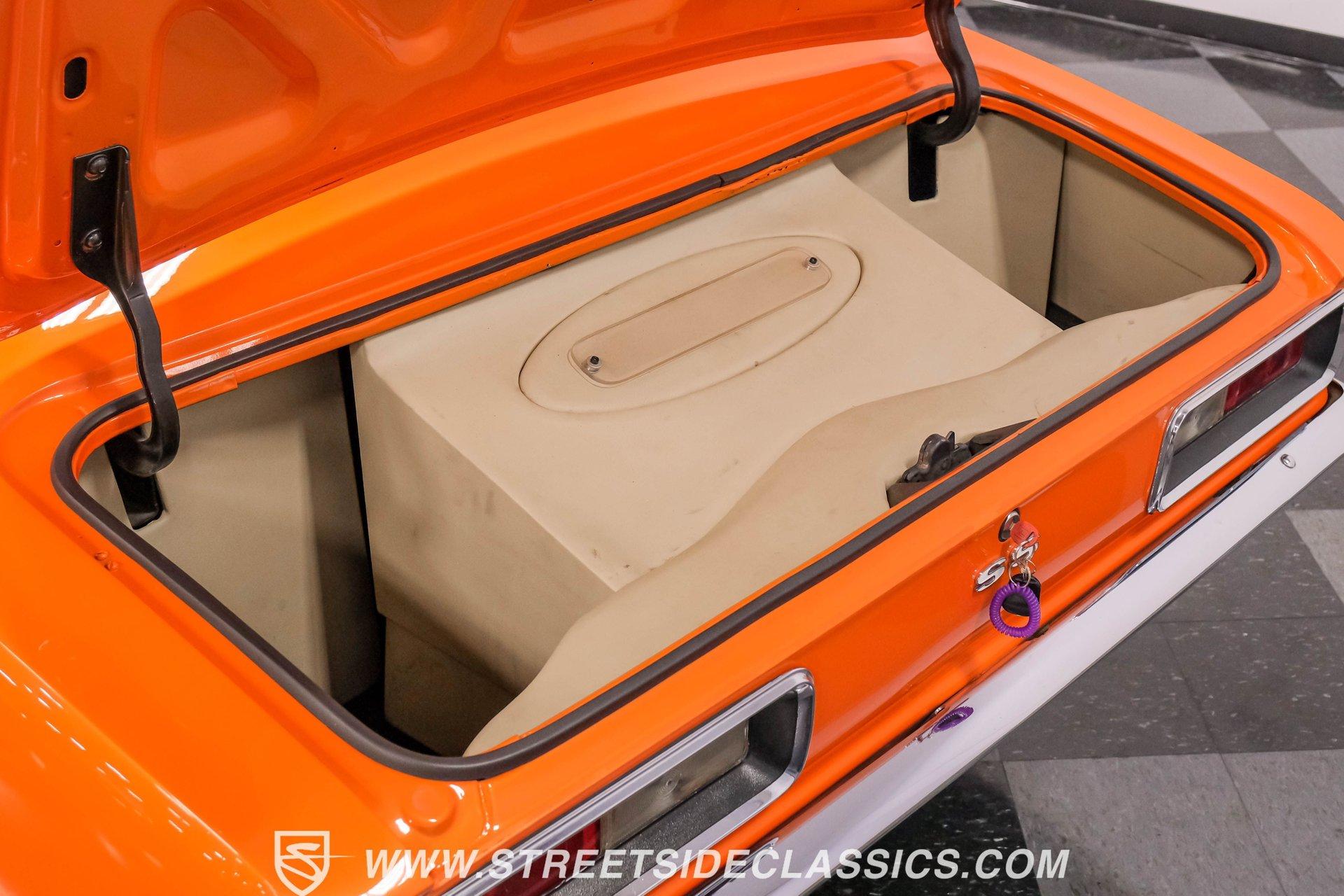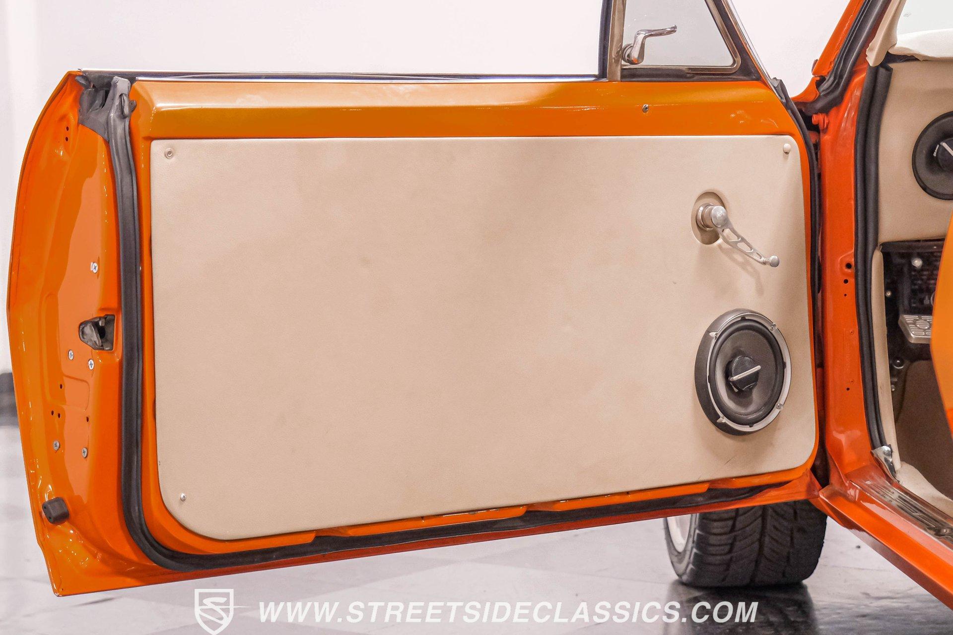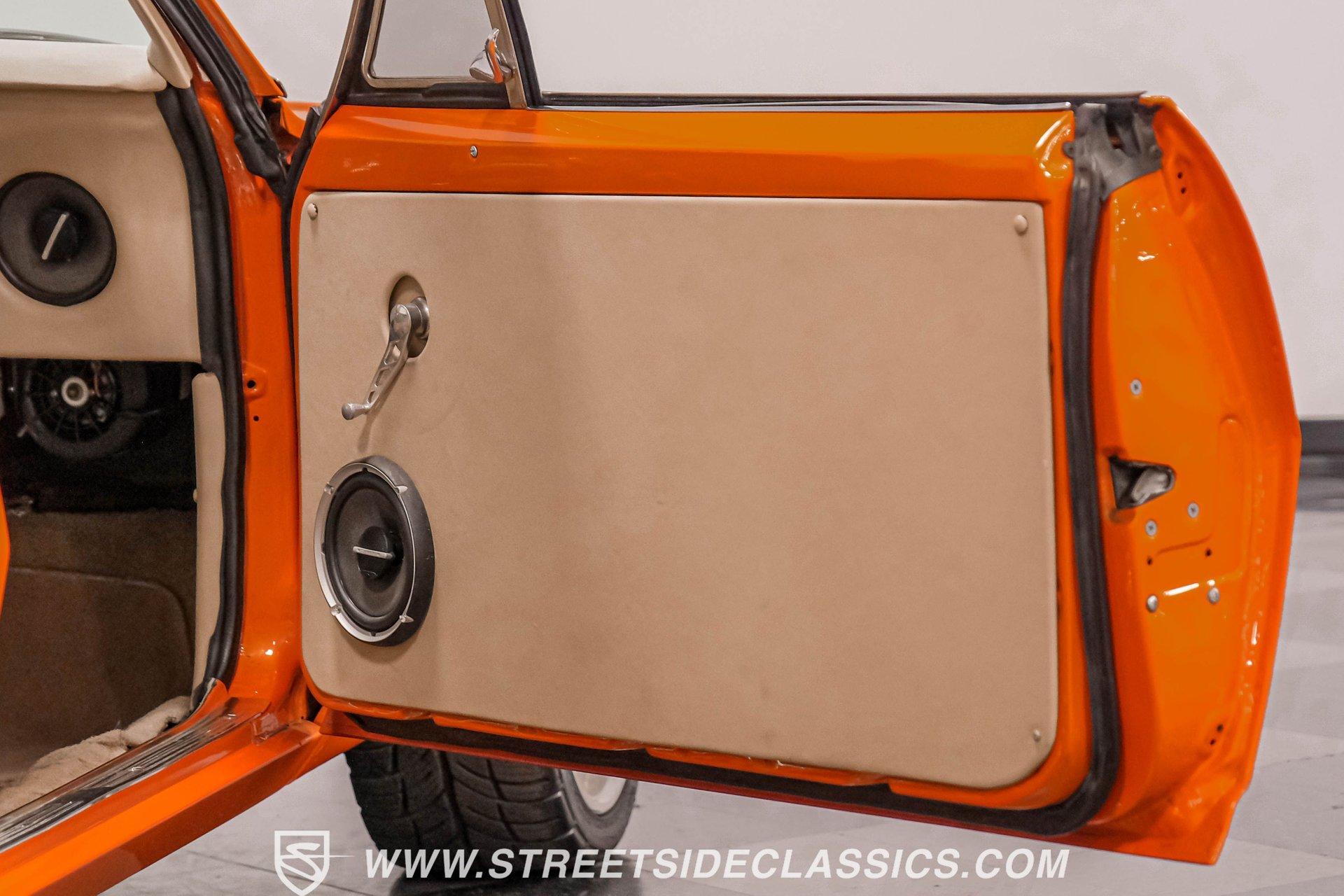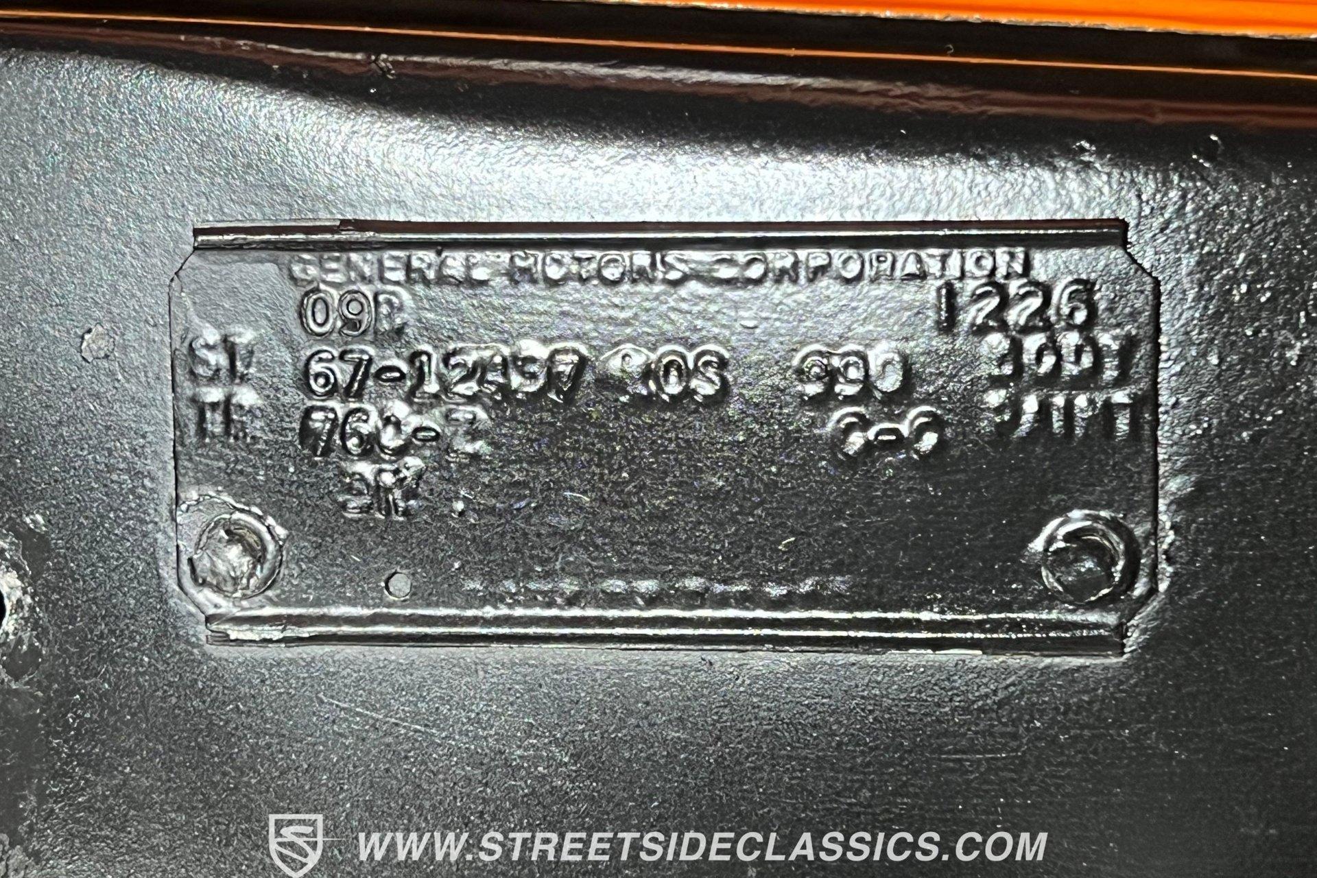 Sunburst Orange Metallic coats every inch of this fully customized 1967 Chevrolet Camaro Restomod, making it a vibrant icon of American muscle gone modern. Built with a tasteful Super Sport hood, front and rear spoilers, deleted side mirrors, and shaved door handles for a cleaner appearance, this Camaro displays custom craftsmanship in every curve. The aggressive stance comes courtesy of SpeedTech tubular upper control arms, while the 18" Bonspeed wheels wrapped in BFG rubber (235/40ZR18 front and 275/40ZR18 rear) anchor this beast firmly to the ground. The shaved drip rails gives this Camaro a sleek, custom profile unlike anything else on the road. The beige leather interior features custom later model bucket seats and a full custom console with cup holders - pure comfort blended with style. The completely custom-built dash houses AutoMeter gauges and a Pioneer head unit connected to JBL speakers and amplifiers throughout (check out what used to be the back seat!). A B&M floor shifter sits ready on the console while the Budnick custom billet steering wheel crowns a tilt billet steering column. Modern amenities include air conditioning, power windows disguised as window cranks, keyless ignition with turn knob to start, and remote door poppers. The trunk has been completely finished out and combines with the back seat equipment for maximum audio impact. Generating power is a GM Goodwrench 350 V8 crate engine equipped with performance aluminum heads and a performance cam. The motor breathes through a Holley Sniper EFI system mounted on an Edelbrock air-gap intake manifold. Power flows through a TH350 3-speed automatic transmission to the 12-bolt rear end. The braking system features Wilwood master cylinder with front disc brakes using Baer calipers and slotted/cross-drilled rotors. Mid-length headers feed into a FlowMaster dual exhaust system, creating the perfect soundtrack. A BeCool radiator keeps temperatures in check during spirited driving sessions. HIGHLIGHTS: GM Goodwrench 350 V8 Crate Engine Performance Aluminum Heads Performance Cam Holley Sniper Electronic Fuel Injection Edelbrock Air-Gap Intake Manifold TH350 3-Speed Automatic Transmission 12-Bolt Rear End Headers with FlowMaster Dual Exhaust Wilwood Master Cylinder Front Disc Brakes Featuring Baer Calipers & Slotted/Cross-Drilled Rotors SpeedTech Tubular Upper Control Arms BeCool Radiator Sunburst Orange Metallic Paint Super Sport Hood 18" Bonspeed Wheels with 235/40ZR18 Front, 275/40ZR18 Rear BFG Tires Beige Interior with Leather Bucket Seats Full Custom Console with Cup Holders B&M Floor Shifter AutoMeter Gauges Pioneer Head Unit JBL Speakers and Amplifiers Budnick Custom Billet Steering Wheel Tilt Billet Steering Column Power Windows Keyless Ignition with Turn Knob Air Conditioning Power Steering A true masterpiece of American muscle with modern comfort and performance, this 1967 Chevrolet Camaro Restomod blends classic style with contemporary technology. With its 350 V8 engine, custom interior, and striking Sunburst Orange Metallic exterior, this Camaro offers an unmatched driving package. Call today!
