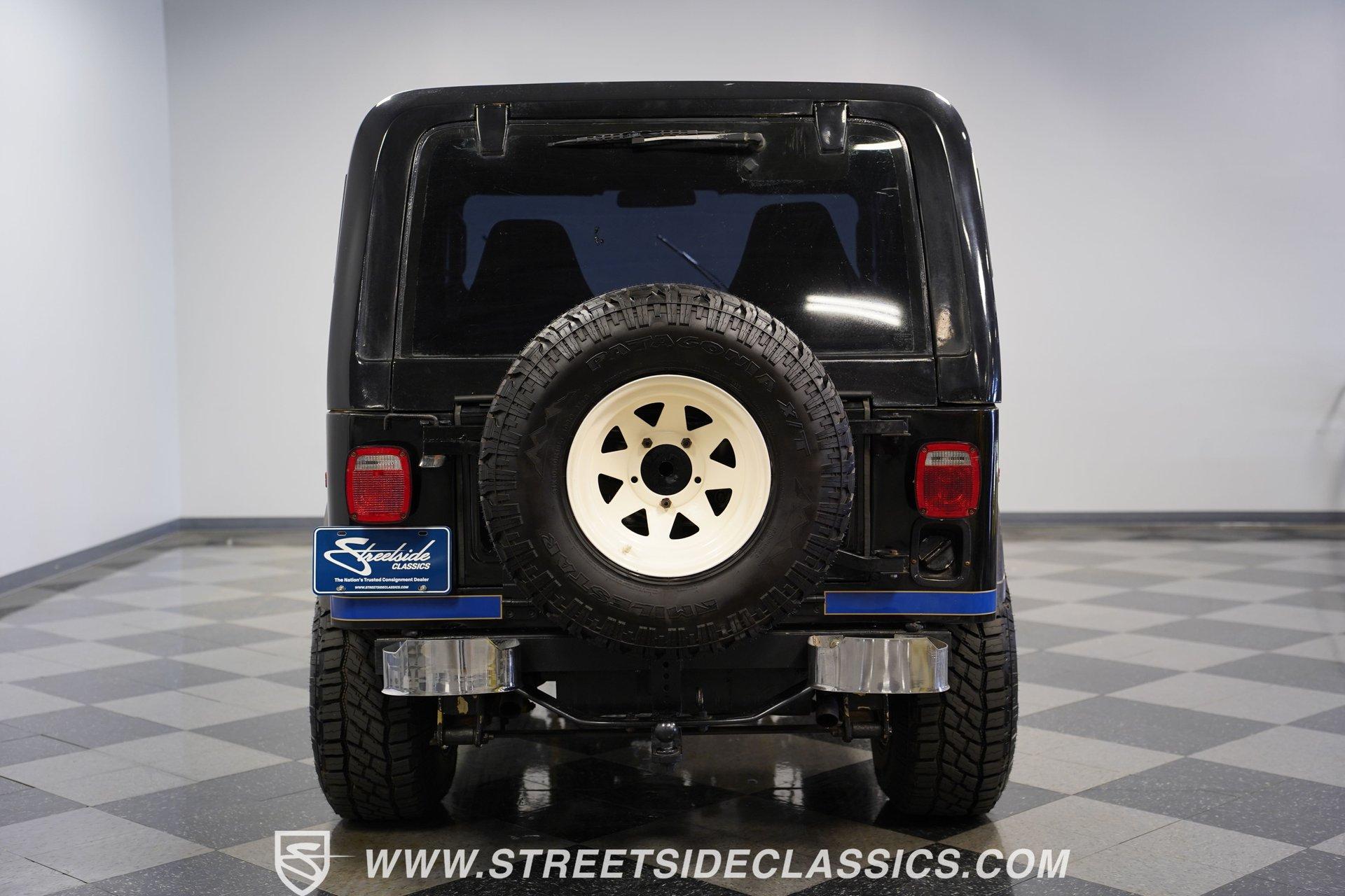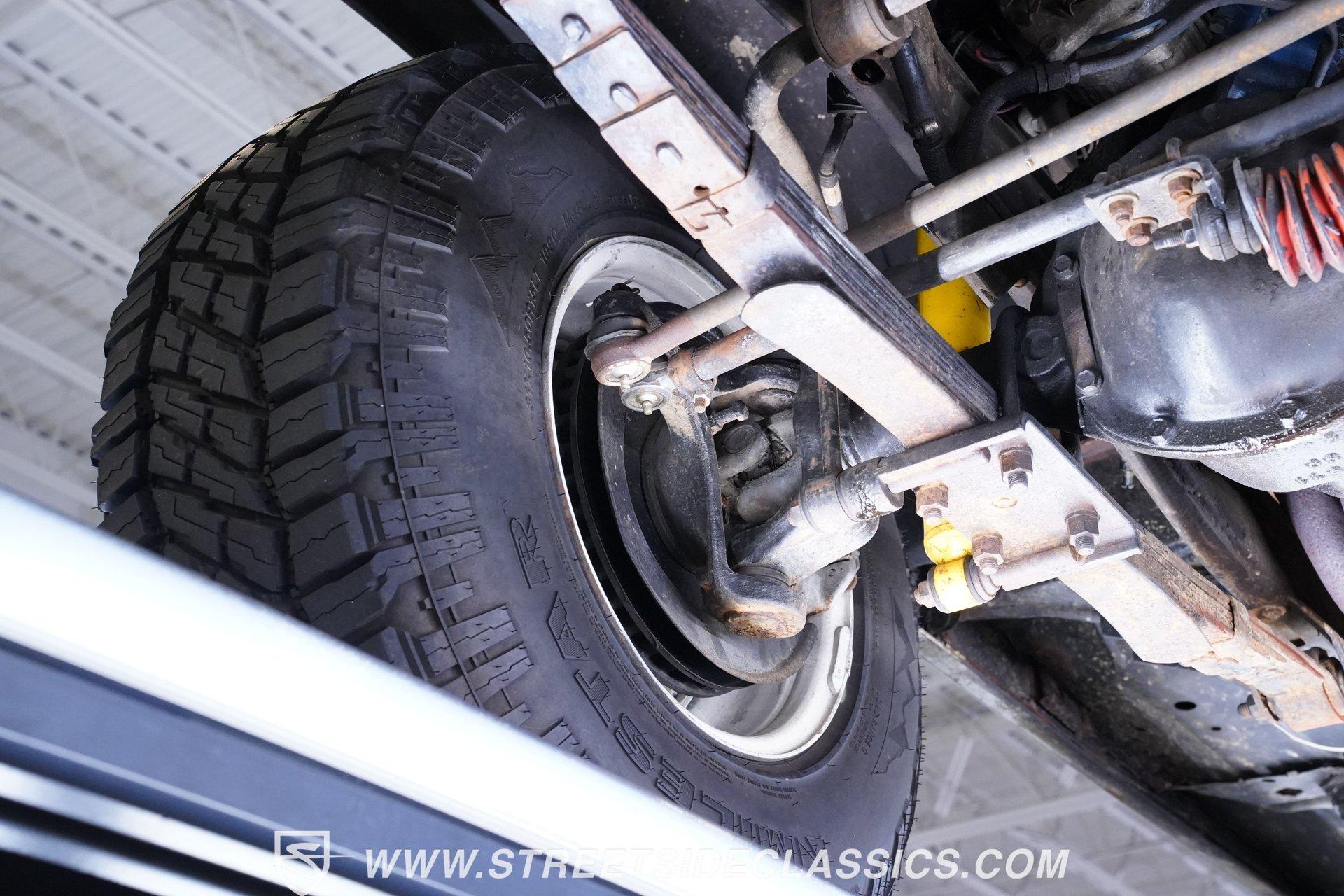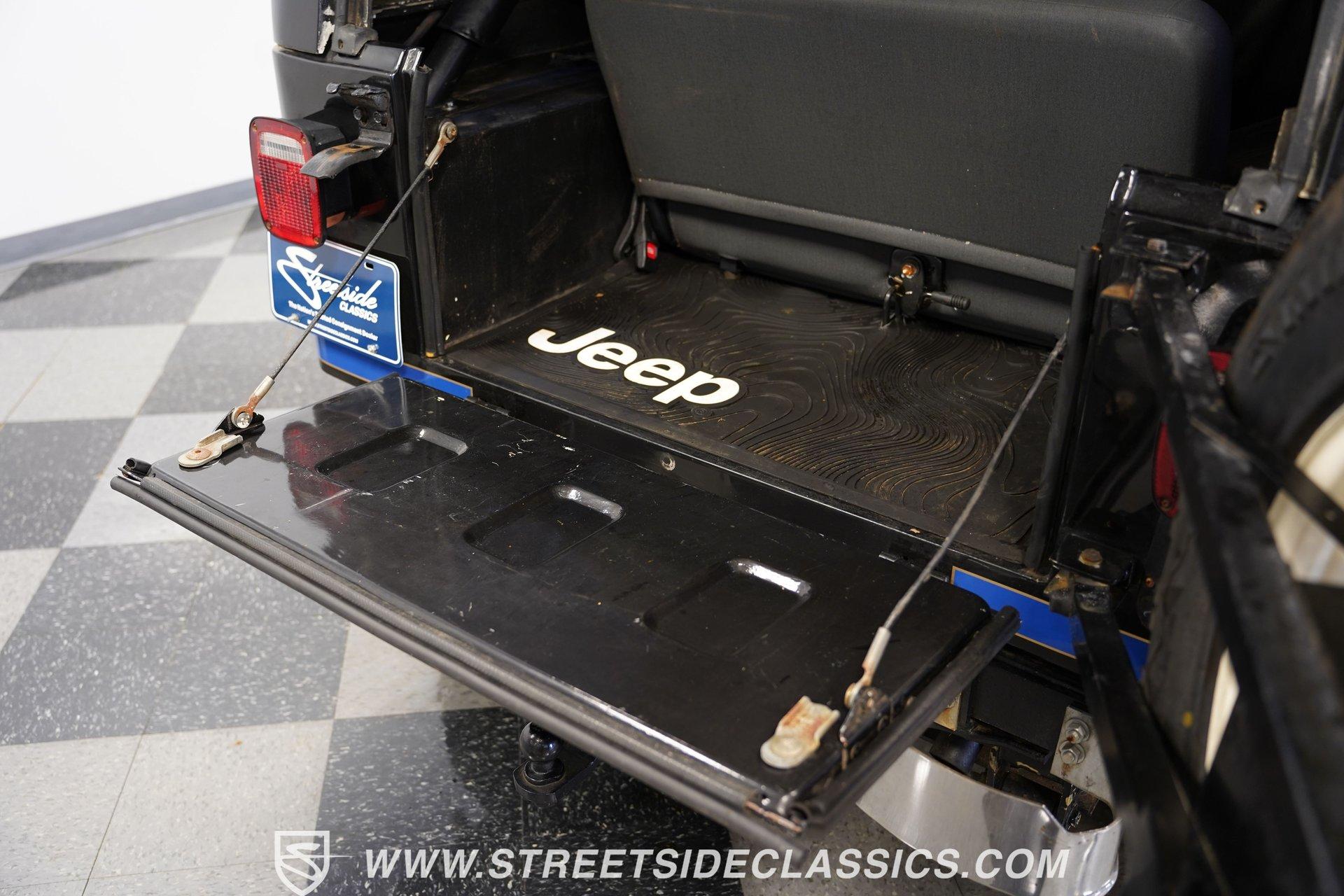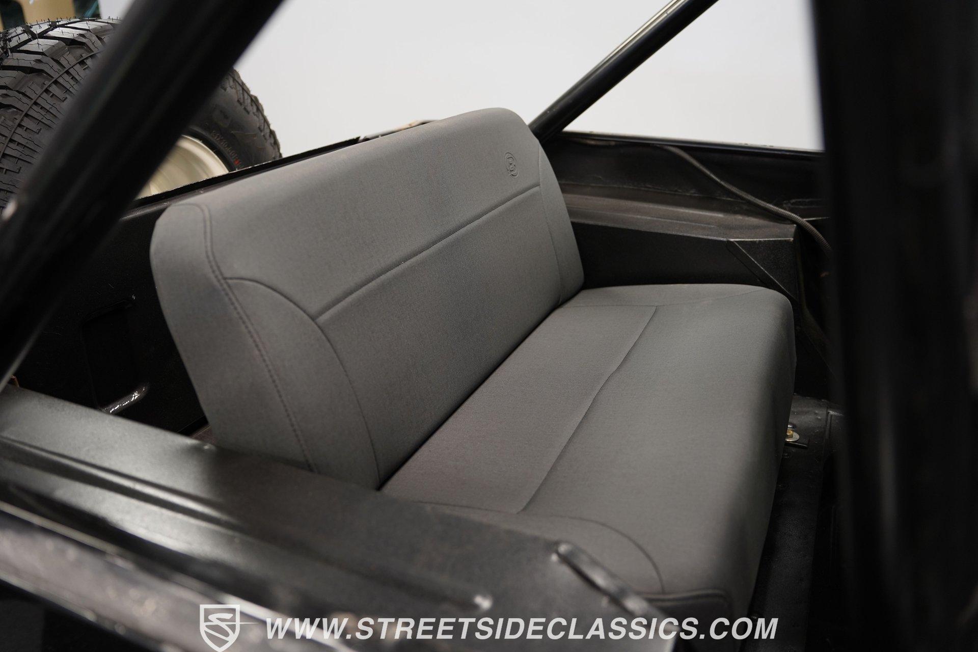 Taken from the army and made for the masses, few trucks can compare with the iconic status of the Civilian Jeep (CJ) series of one of America's favorite vehicles. This 1977 Jeep CJ7 Renegade comes decked out in a deep black exterior paint featuring blue hood and trim graphics to give it even more charisma. Keep its removable hardtop on, and you're ready to take on any weather conditions that come your way. Or, take the top off and enjoy the fun and leisurely side of this off-roading warrior. Inside, this CJ retains its military no-frills personality with the exception of a redone set of front bucket seats that offer far more lateral and lumbar support than its military predecessor. A three-spoke tilt wheel sits before a column-mounted shifter and gear selector. Offset to the wheel's right sits a 6,000-rpm tach, while the larger speedometer and corresponding ancillary gauges sit mid-dashboard. HVAC controls consist of a series of push/pull and twist knobs, making it easy to keep your eyes focused out the upright fold-down windshield. A chrome expletive bar gives the front passenger something to grab onto when the road disappears and their center of gravity begins to shift outside of their comfort zone. Under the hood, we find a big 360 cubic-inch V-8 engine, which has received a new ignition switch to go along with a new single two-barrel carburetor. A set of long tube headers feeds into a true dual exhaust to give this truck a bit more power and sound than its enlisted forebearers. That power is funneled through an AMC version of a TH400 three-speed automatic transmission on its way to all four wheels to give this truck maximum traction. HIGHLIGHTS: *CJ7 Renegade *Removable Hardtop *Removable Soft Top *Four Wheel Drive *360 CID V8 *New Carb *New Ignition Switch *Long Tubes *Dual Exhaust *TH400 Three Speed Auto *Power Brakes *Front Disc Brakes *Power Steering *31 Inch Milstar Tires *Full Sized Spare This 1977 Jeep CJ7 Renegade keeps its authentic feel thanks to leaf springs at the front and rear. Deep fifteen-inch white rims are covered by 31-inch Milstar all-terrain tires, with a fifth full-sized spare mounted just above the rear tow-hitch. If you want to participate in the famous Jeep Wave and also enjoy driving one of the most respected trucks ever made, then don't wait another second; this CJ7 is the one you've been waiting for. Call today!