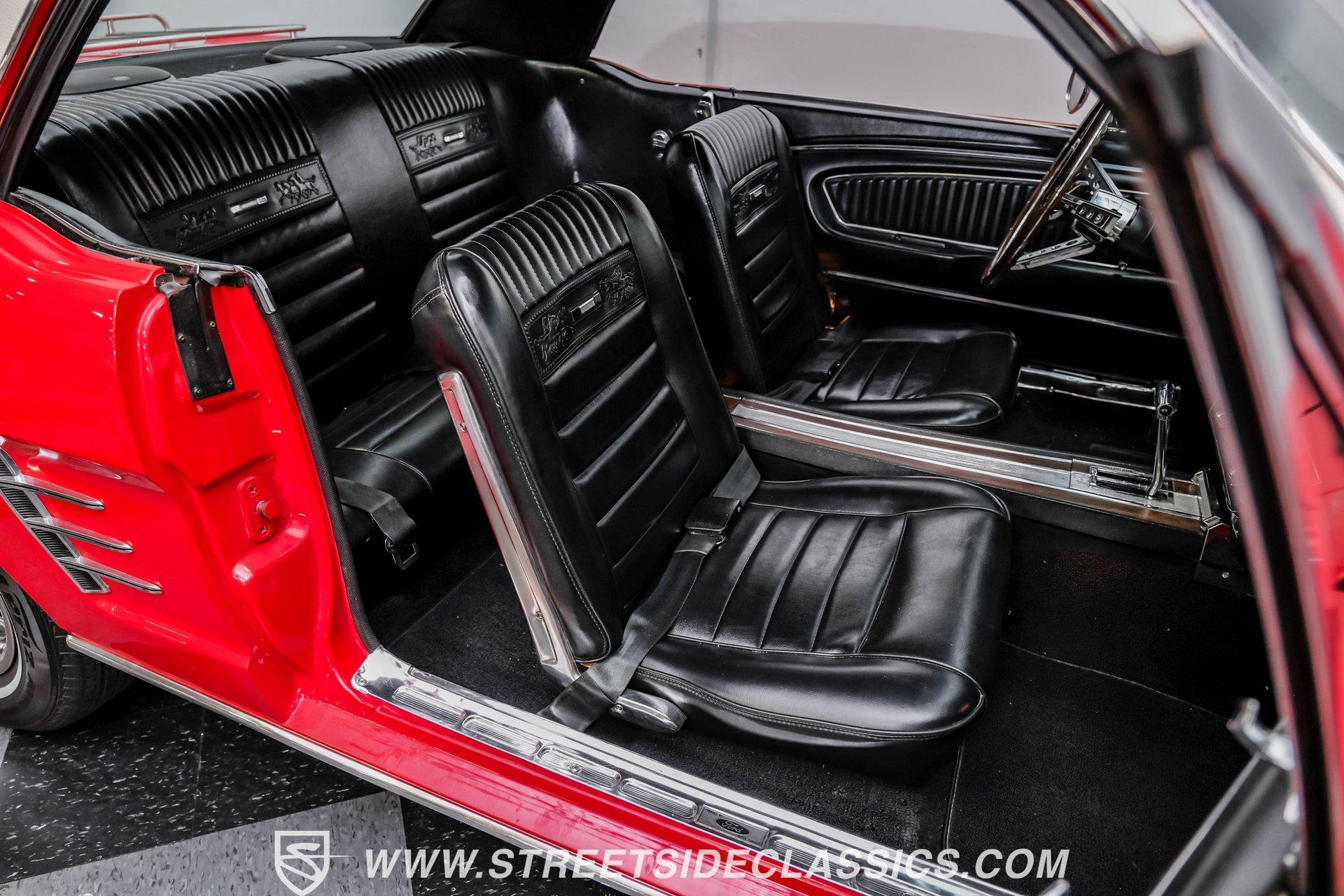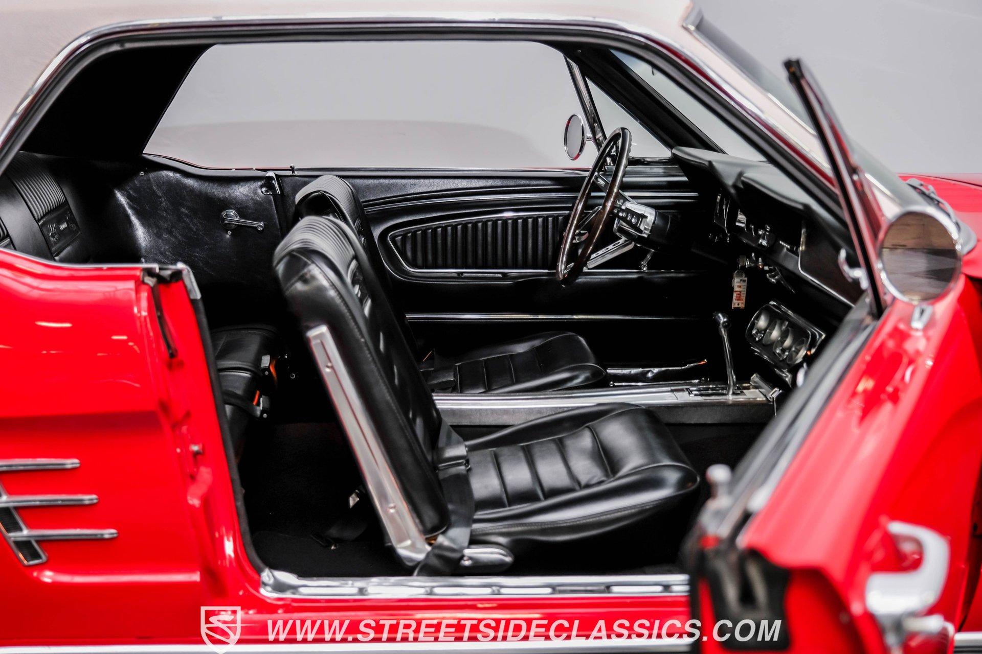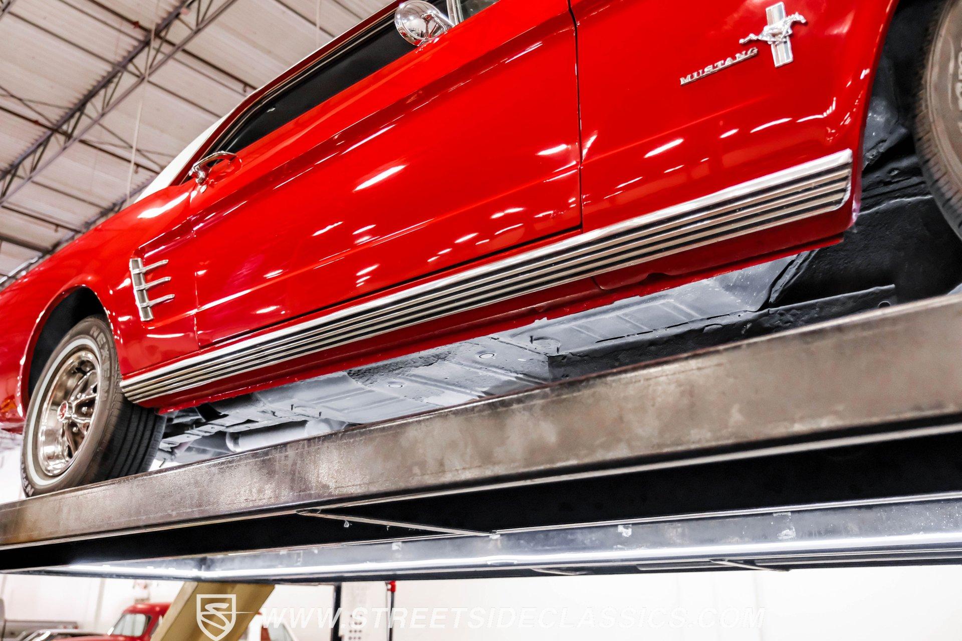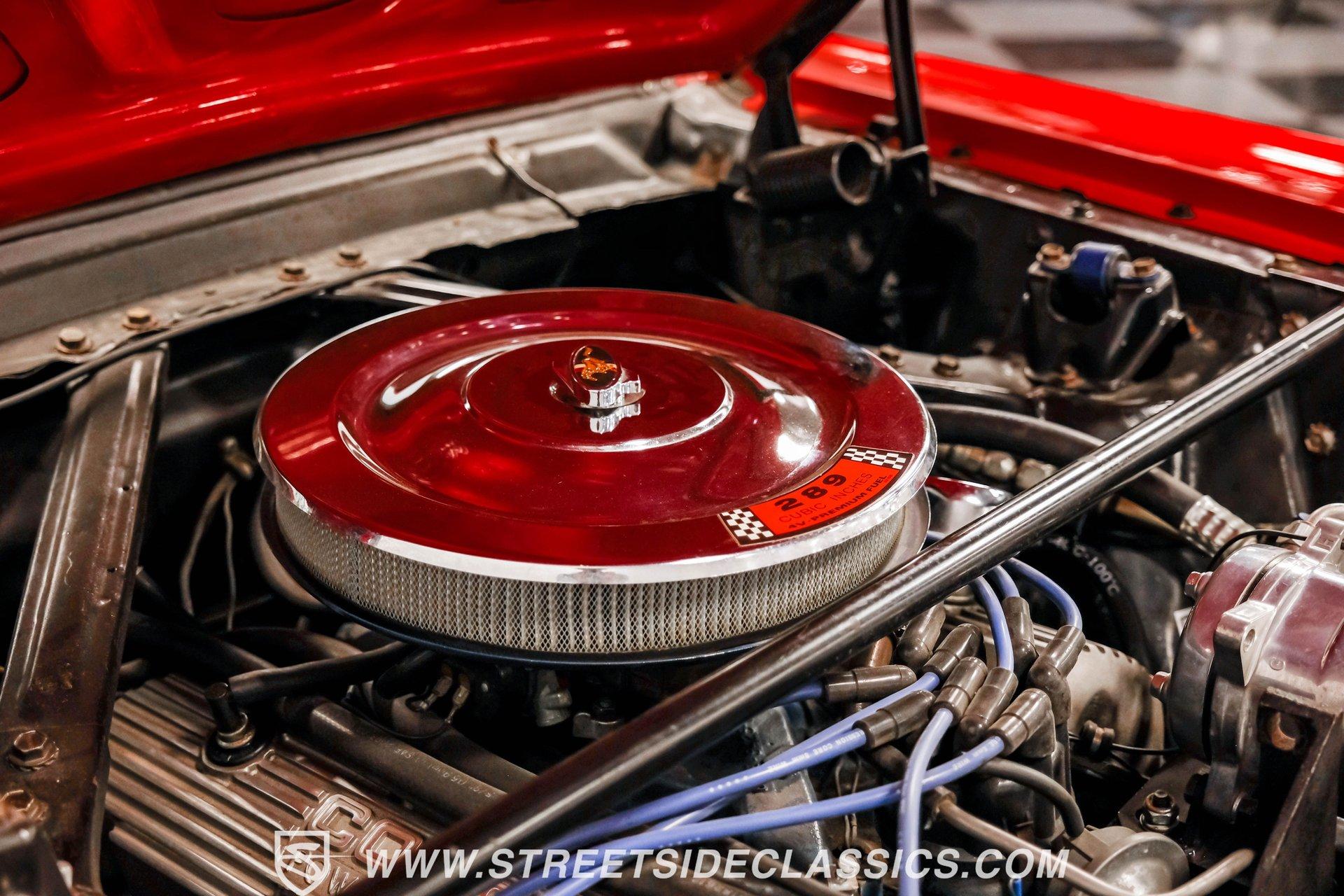 Born in San Jose as a C-code machine, this 1966 Ford Mustang presents a bold red paint job complemented by a contrasting white vinyl top. The combination creates a two-tone visual effect that amplifies the car's classic proportions and flowing lines. Riding on 14-inch wheels wrapped in 205/75R14 Nexen tires, this Mustang maintains both period-correct aesthetics and modern road manners. The functional trunk rack installed on the rear deck provides extra cargo capacity for longer trips without compromising the car's clean silhouette. The black pony interior offers a sporty atmosphere with its bucket seats and center console. A wood-grip steering wheel and digital Retro Sounds AM/FM/AUX radio add both classic aesthetics and modern audio capabilities. The under-dash air conditioning keeps occupants cool during summer drives and factory-style gauges with wood grain trim fill the dash panel. Front and rear seatbelts provide added safety without taking away from the authentic 60s vibe. The 289 cubic inch V8 engine works in tandem with a C4 3-speed automatic transmission for solid acceleration and highway cruising. The Holley four-barrel carburetor improves throttle response while dual exhaust creates that unmistakable V8 sound. Additional mechanical features include power brakes, power steering, and an 8-inch rear end. The engine compartment includes a useful bracer bar for added structural rigidity and Cobra valve covers for a custom look. Floor pan repairs were completed with quality workmanship, creating a solid, road-ready classic. HIGHLIGHTS: 289 V8 Engine 3-Speed Automatic Transmission (C4) Holley 4-Barrel Carburetor Power Brakes Power Steering 8-Inch Rear End Dual Exhaust Cobra Valve Covers Engine Bay Bracer Bar Red Exterior Paint w/ White Vinyl Top 14" Wheels 205/75R14 Nexen Tires Black Interior with Bucket Seats & Center Console Air Conditioning Wood Grip Steering Wheel Digital Retro Sounds AM/FM/AUX Radio Factory-Style Gauges with Wood Grain Trim This 1966 Ford Mustang has long been considered an excellent gateway into classic car ownership. With its 289 V8, automatic transmission, air conditioning, and power options, this example gives you all the right ingredients for weekend drives and car shows. Call today!