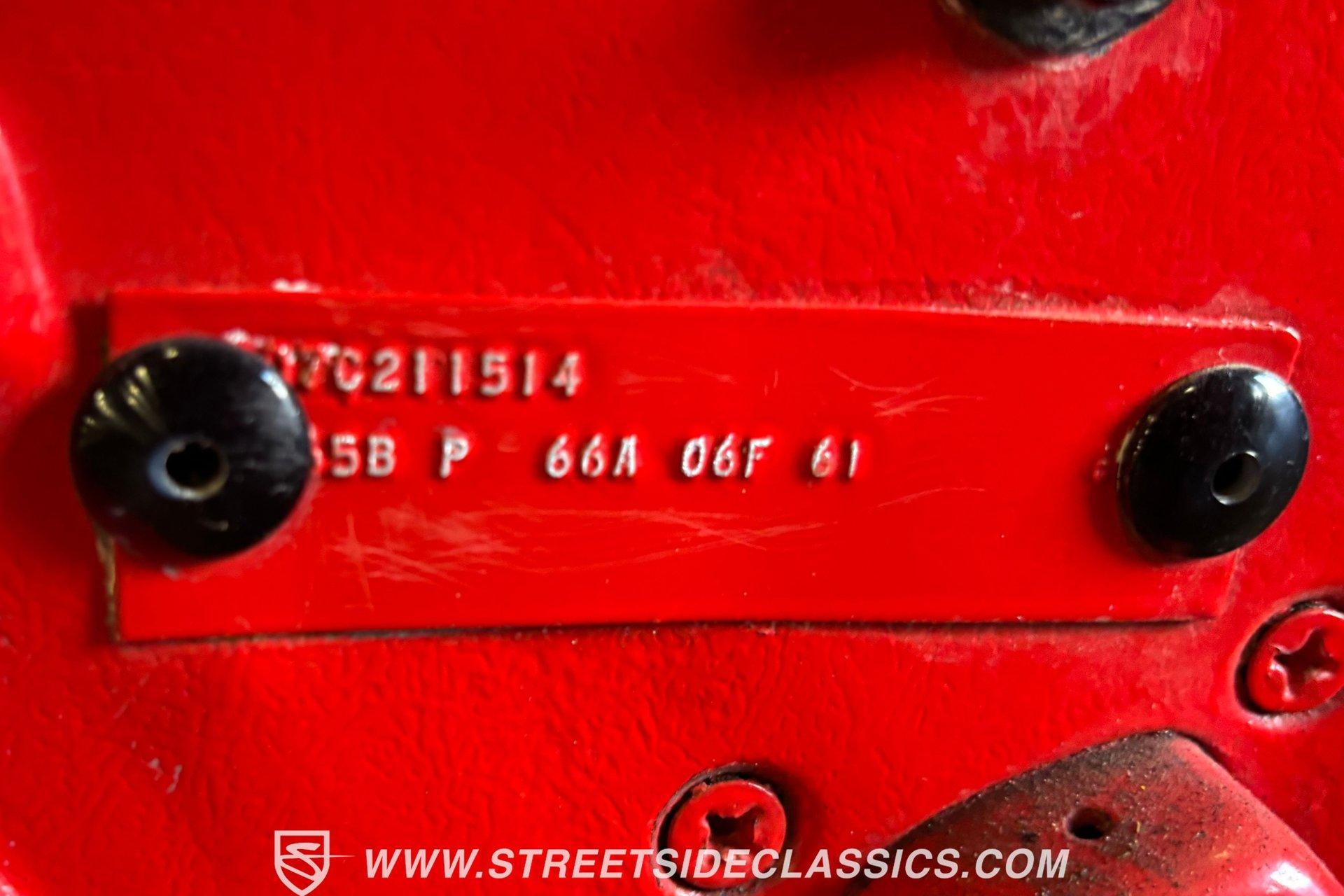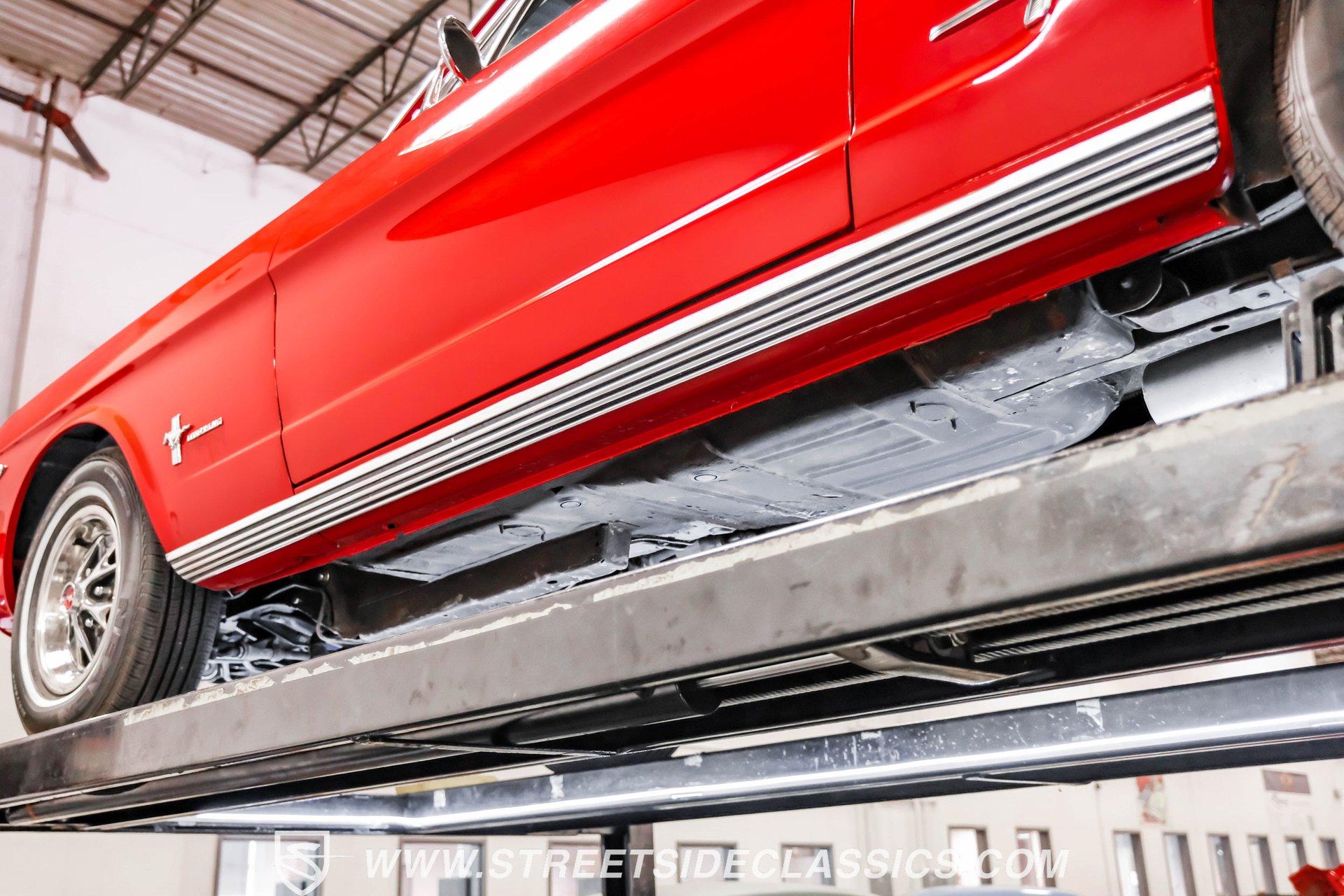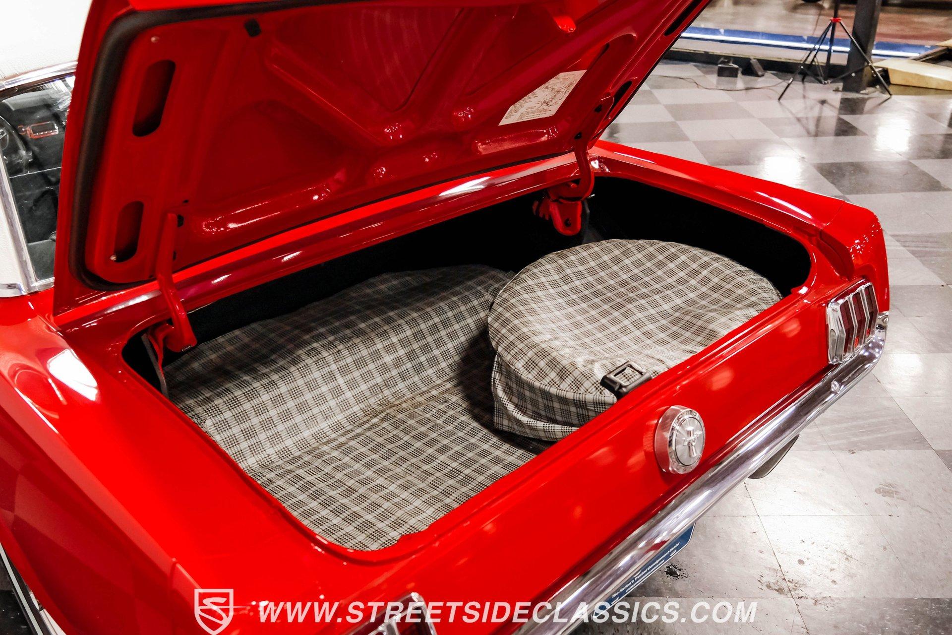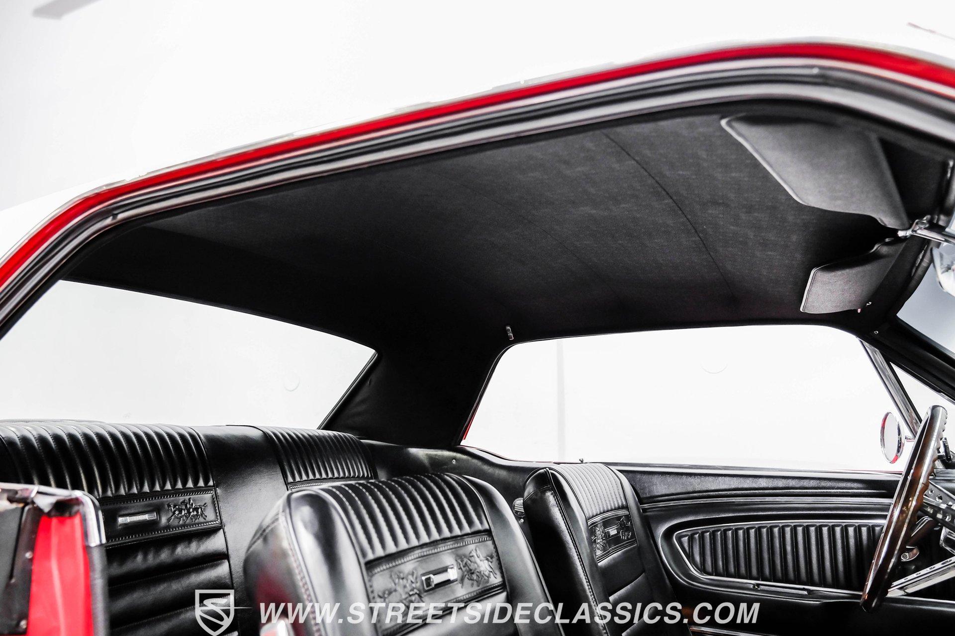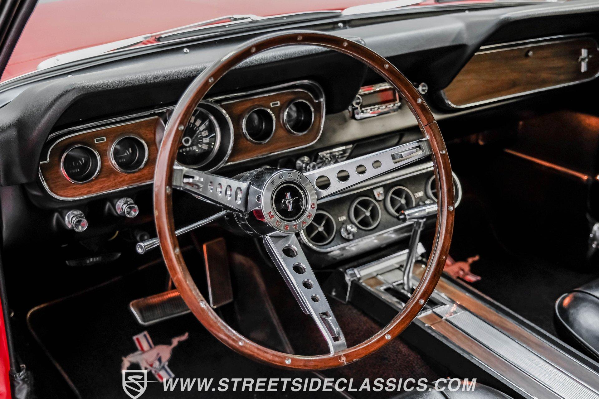 Born in San Jose as a C-code machine, this 1966 Ford Mustang presents a bold red paint job complemented by a contrasting white vinyl top. The combination creates a two-tone visual effect that amplifies the car's classic proportions and flowing lines. Riding on 14-inch wheels wrapped in 205/75R14 Nexen tires, this Mustang maintains both period-correct aesthetics and modern road manners. The functional trunk rack installed on the rear deck provides extra cargo capacity for longer trips without compromising the car's clean silhouette. The black pony interior offers a sporty atmosphere with its bucket seats and center console. A wood-grip steering wheel and digital Retro Sounds AM/FM/AUX radio add both classic aesthetics and modern audio capabilities. The under-dash air conditioning keeps occupants cool during summer drives and factory-style gauges with wood grain trim fill the dash panel. Front and rear seatbelts provide added safety without taking away from the authentic 60s vibe. The 289 cubic inch V8 engine works in tandem with a C4 3-speed automatic transmission for solid acceleration and highway cruising. The Holley four-barrel carburetor improves throttle response while dual exhaust creates that unmistakable V8 sound. Additional mechanical features include power brakes, power steering, and an 8-inch rear end. The engine compartment includes a useful bracer bar for added structural rigidity and Cobra valve covers for a custom look. Floor pan repairs were completed with quality workmanship, creating a solid, road-ready classic. HIGHLIGHTS: 289 V8 Engine 3-Speed Automatic Transmission (C4) Holley 4-Barrel Carburetor Power Brakes Power Steering 8-Inch Rear End Dual Exhaust Cobra Valve Covers Engine Bay Bracer Bar Red Exterior Paint w/ White Vinyl Top 14" Wheels 205/75R14 Nexen Tires Black Interior with Bucket Seats & Center Console Air Conditioning Wood Grip Steering Wheel Digital Retro Sounds AM/FM/AUX Radio Factory-Style Gauges with Wood Grain Trim This 1966 Ford Mustang has long been considered an excellent gateway into classic car ownership. With its 289 V8, automatic transmission, air conditioning, and power options, this example gives you all the right ingredients for weekend drives and car shows. Call today!