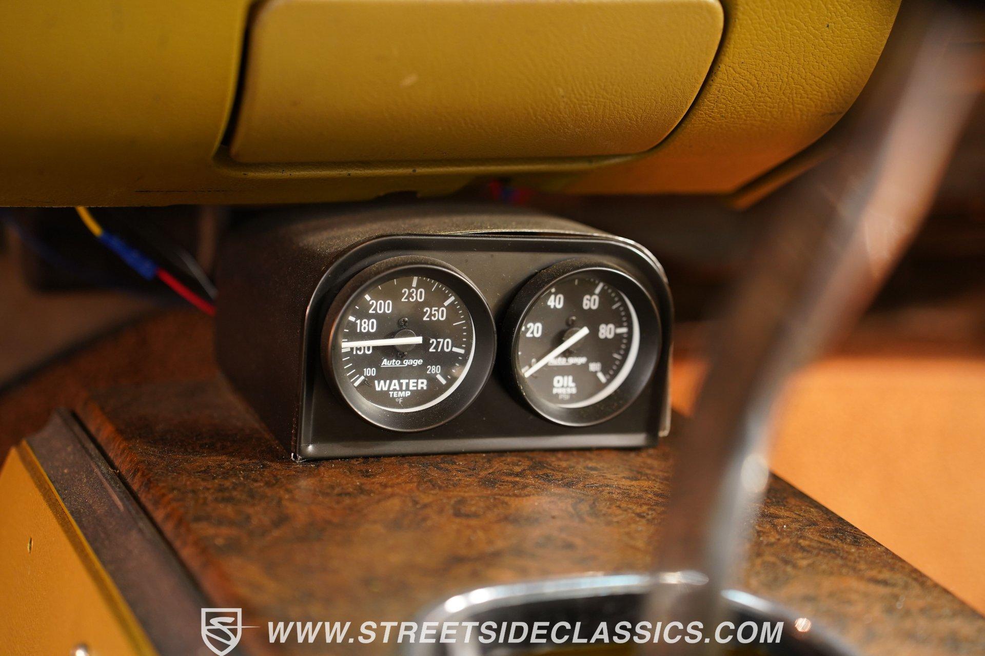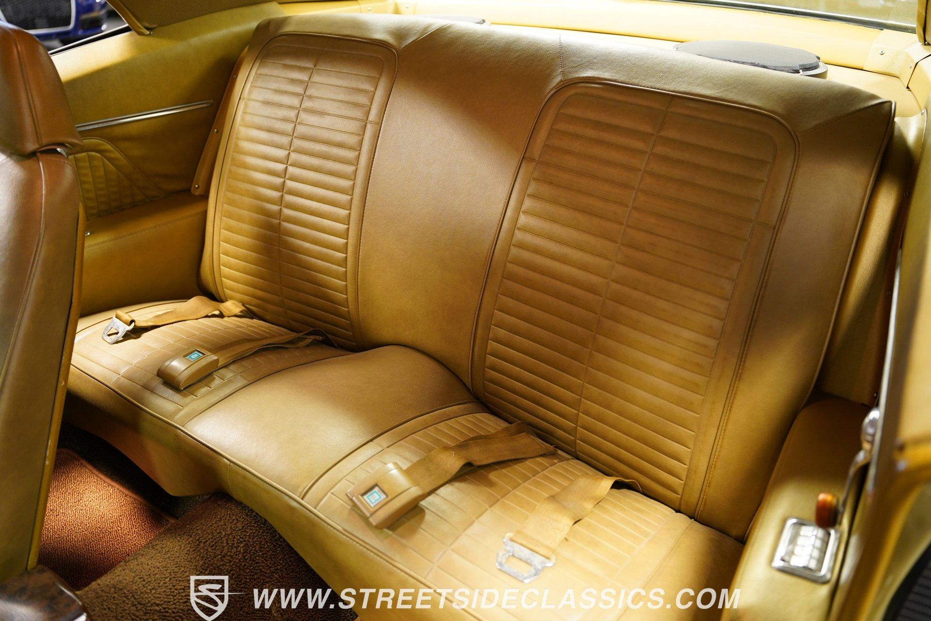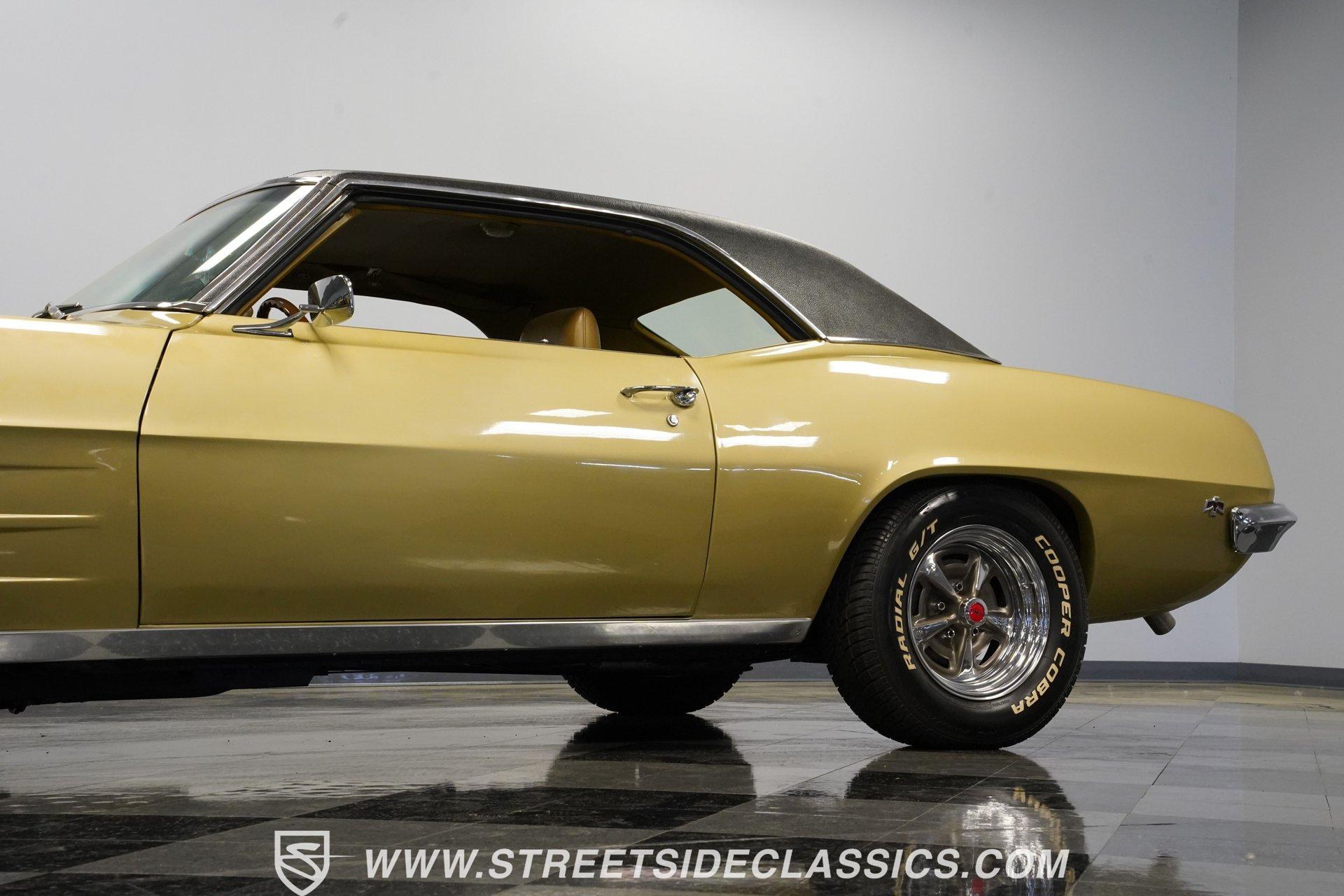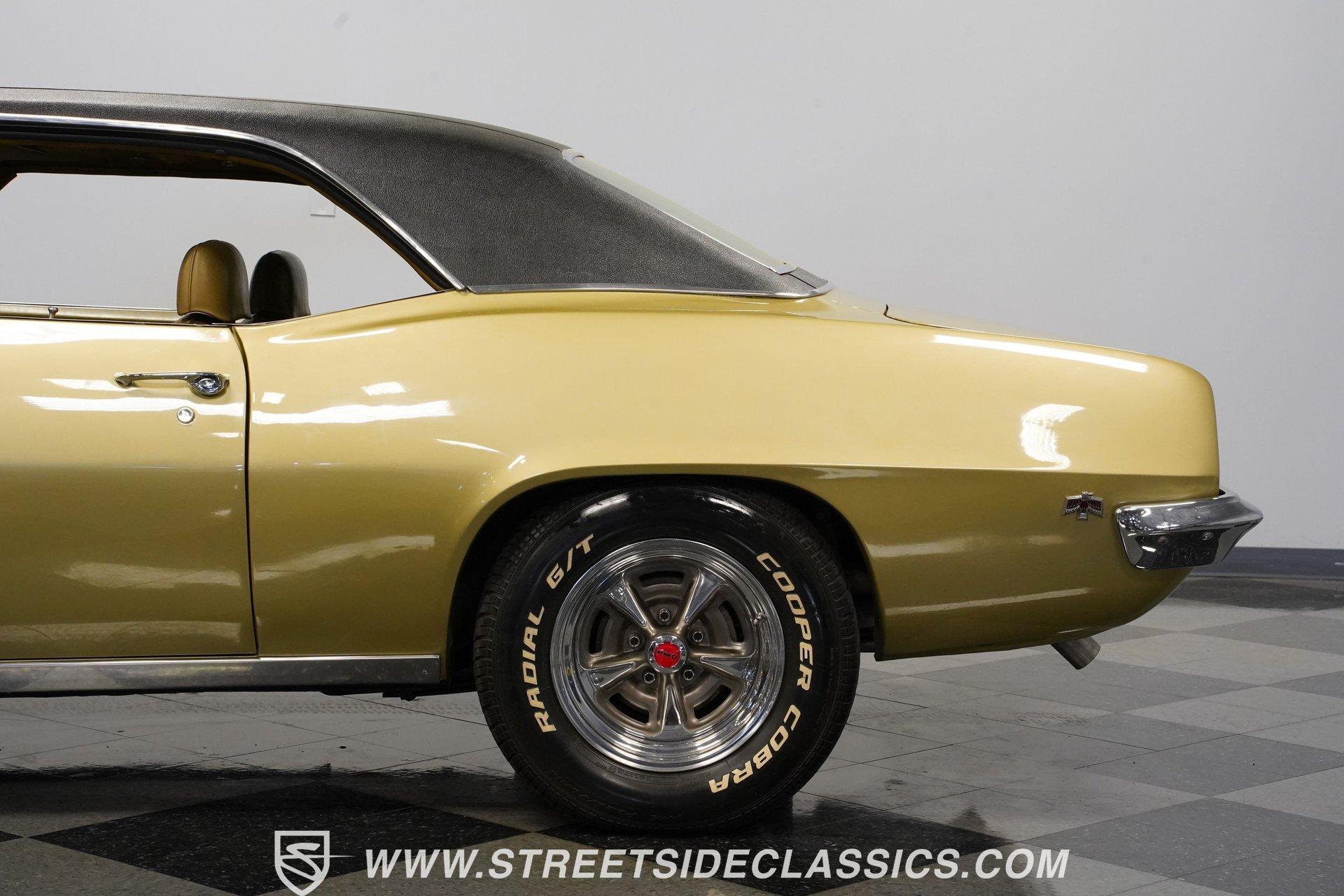 When American muscle flexed in 1969, this Pontiac Firebird came out swinging. The Antique Gold finish displays a measured amount of metal flake that adds dimension without overwhelming the eyes. From the distinctive split-grille nose to the clean rear deck, this Firebird shows off the pure aesthetic that made these cars icons. The vinyl top provides perfect contrast against the gold exterior, completing the look of a true performance machine. Set on 15-inch wheels with 215/65R15 front and 225/70R15 rear tires, this Firebird maintains an ideal stance that suggests speed even when parked. The gold vinyl interior matches the exterior for a complete package. The bucket seats flank a center console where the shifter sits ready for action. A wood steering wheel gives the driver a tactile connection to the road while adding visual flair to the cabin. The dash houses a newer pad along with original-style gauges that allow quick monitoring of vital statistics. The AM/FM radio with aux input provides musical options while cruising. Defroster and heater systems stand ready to make driving comfortable regardless of outside conditions. The 350 cubic inch V8 sits inside a well-organized engine bay, fitted with a Holley four-barrel carburetor and electric choke mounted on a high-rise intake manifold. Chrome valve covers and air cleaner give it extra visual punch. The Muncie M20 4-speed manual transmission connects to a solid 10-bolt rear end. Performance upgrades include tubular front arms and a Hotchkis rear sway bar for improved handling. The braking system features power disc brakes for strong stopping ability. The exhaust flows through long tube manifolds and a dual-to-single-to-dual system with aftermarket mufflers for an appropriate exhaust note. HIGHLIGHTS: 350 V8 Engine Muncie M20 4-Speed Manual Transmission Holley Four Barrel Carburetor with Electric Choke High Rise Intake Manifold Chrome Valve Covers Chrome Air Cleaner 10-Bolt Rear End Tubular Front Arms Hotchkis Rear Sway Bar Power Front Disc Brakes Long Tube Manifolds Dual to Single to Dual Exhaust System Aftermarket Mufflers Aluminum Radiator with Electric Fan Antique Gold Paint Vinyl Top 15" Wheels 215/65R15 Front & 225/70R15 Rear Tires Gold Interior with Bucket Seats and Console Console Shifter Power Steering Wood Steering Wheel AM/FM Radio with Aux Input Newer Dash Pad This 1969 Pontiac Firebird 400 combines V8 power with the control of a manual transmission and wrapped in a classic design. The upgraded suspension components enhance handling while the exhaust system provides an appropriate soundtrack for such a capable machine. Call today!