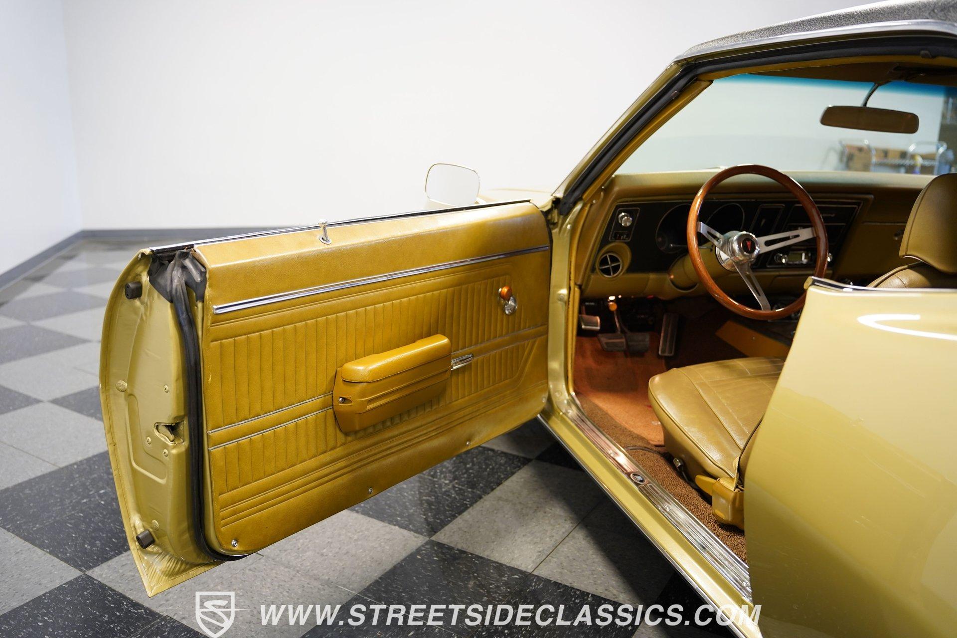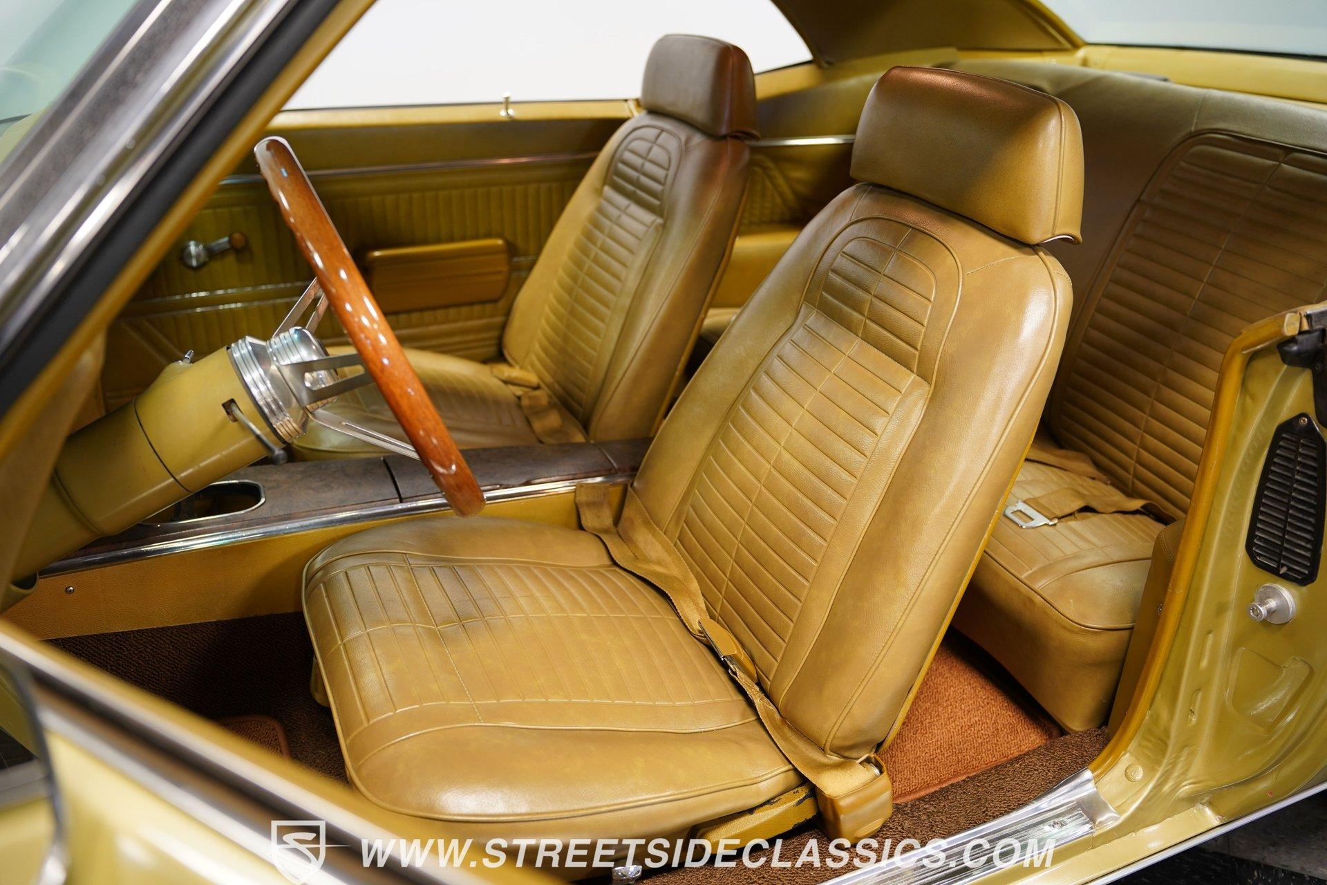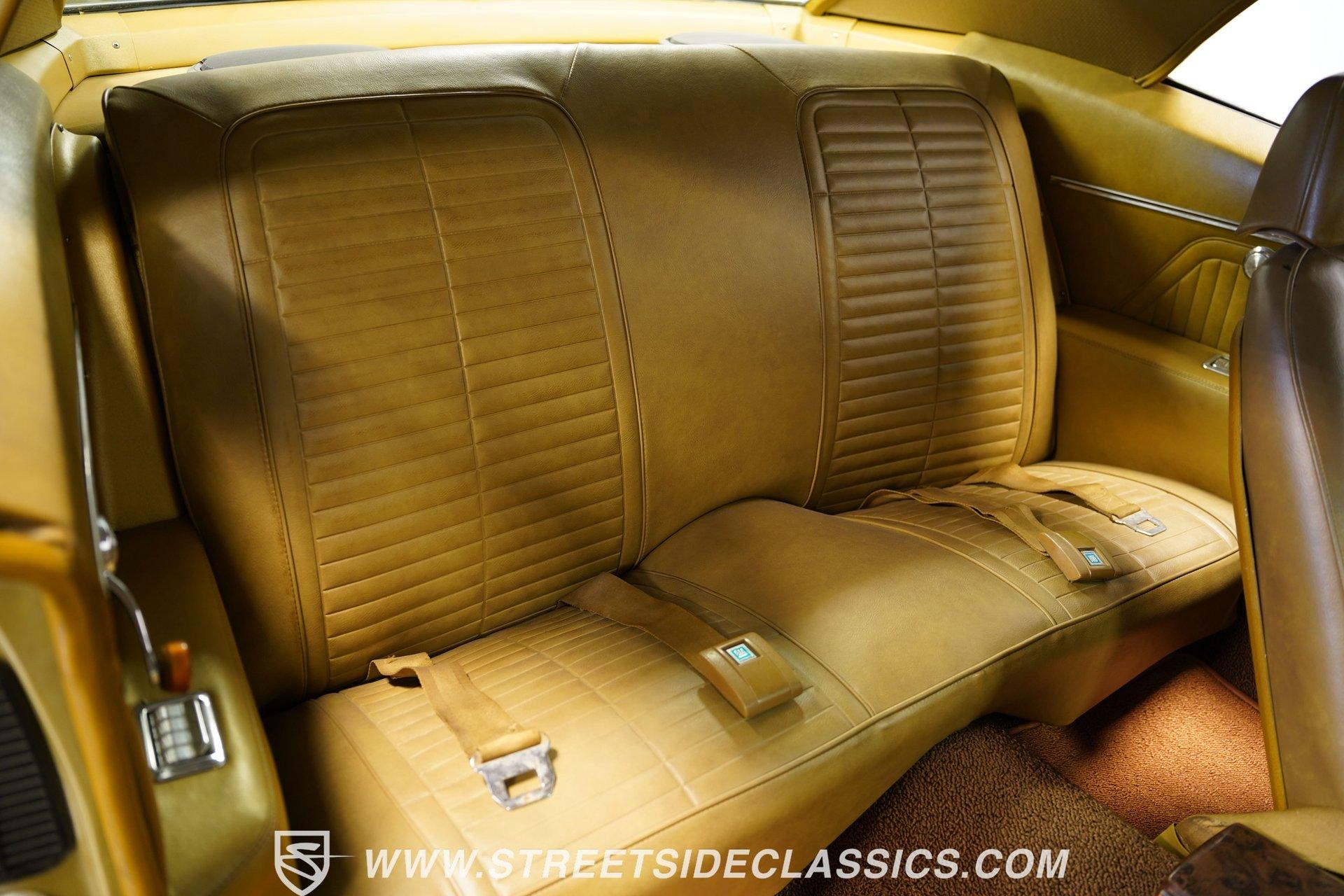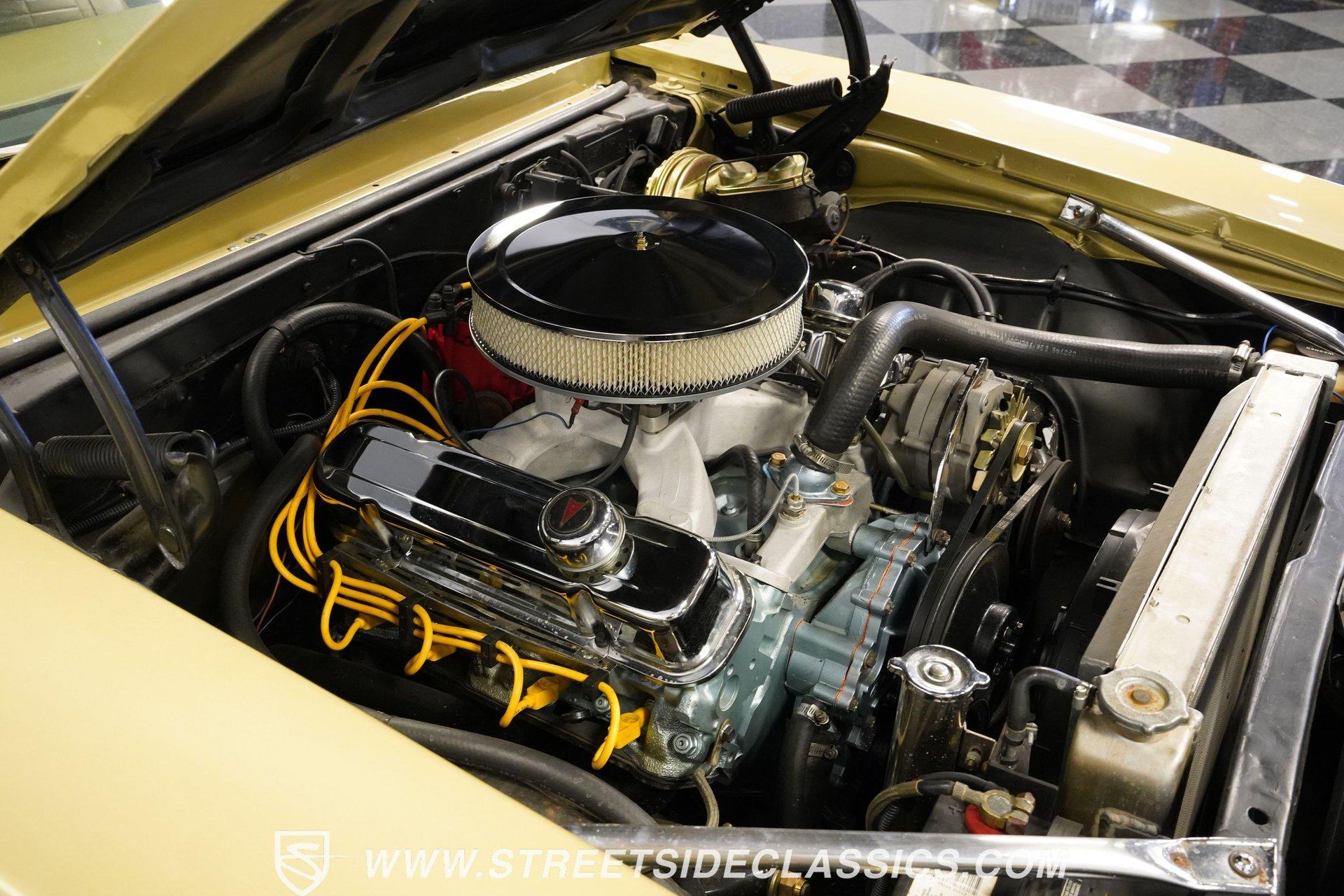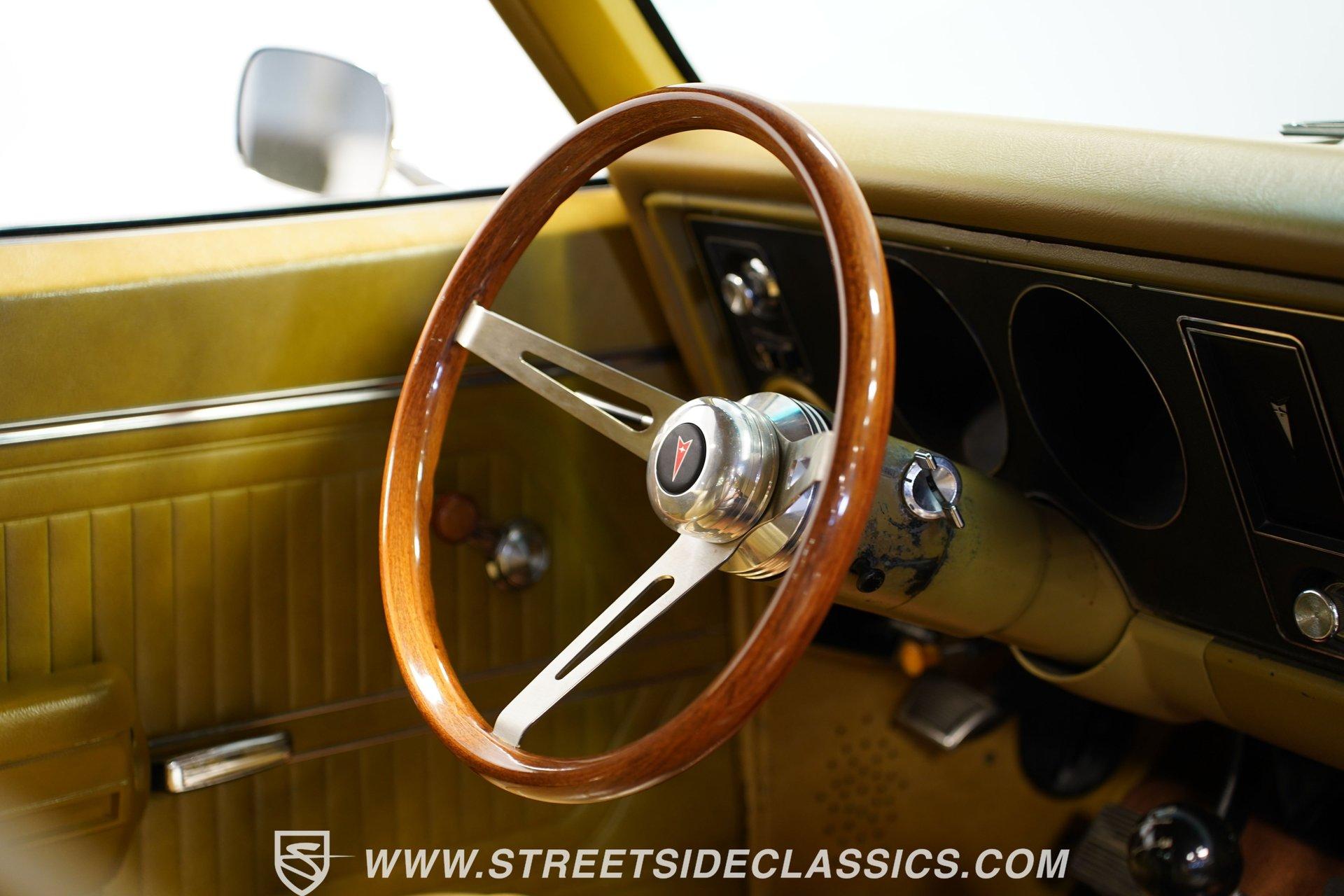When American muscle flexed in 1969, this Pontiac Firebird came out swinging. The Antique Gold finish displays a measured amount of metal flake that adds dimension without overwhelming the eyes. From the distinctive split-grille nose to the clean rear deck, this Firebird shows off the pure aesthetic that made these cars icons. The vinyl top provides perfect contrast against the gold exterior, completing the look of a true performance machine. Set on 15-inch wheels with 215/65R15 front and 225/70R15 rear tires, this Firebird maintains an ideal stance that suggests speed even when parked. The gold vinyl interior matches the exterior for a complete package. The bucket seats flank a center console where the shifter sits ready for action. A wood steering wheel gives the driver a tactile connection to the road while adding visual flair to the cabin. The dash houses a newer pad along with original-style gauges that allow quick monitoring of vital statistics. The AM/FM radio with aux input provides musical options while cruising. Defroster and heater systems stand ready to make driving comfortable regardless of outside conditions. The 350 cubic inch V8 sits inside a well-organized engine bay, fitted with a Holley four-barrel carburetor and electric choke mounted on a high-rise intake manifold. Chrome valve covers and air cleaner give it extra visual punch. The Muncie M20 4-speed manual transmission connects to a solid 10-bolt rear end. Performance upgrades include tubular front arms and a Hotchkis rear sway bar for improved handling. The braking system features power disc brakes for strong stopping ability. The exhaust flows through long tube manifolds and a dual-to-single-to-dual system with aftermarket mufflers for an appropriate exhaust note. HIGHLIGHTS: 350 V8 Engine Muncie M20 4-Speed Manual Transmission Holley Four Barrel Carburetor with Electric Choke High Rise Intake Manifold Chrome Valve Covers Chrome Air Cleaner 10-Bolt Rear End Tubular Front Arms Hotchkis Rear Sway Bar Power Front Disc Brakes Long Tube Manifolds Dual to Single to Dual Exhaust System Aftermarket Mufflers Aluminum Radiator with Electric Fan Antique Gold Paint Vinyl Top 15" Wheels 215/65R15 Front & 225/70R15 Rear Tires Gold Interior with Bucket Seats and Console Console Shifter Power Steering Wood Steering Wheel AM/FM Radio with Aux Input Newer Dash Pad This 1969 Pontiac Firebird 400 combines V8 power with the control of a manual transmission and wrapped in a classic design. The upgraded suspension components enhance handling while the exhaust system provides an appropriate soundtrack for such a capable machine. Call today!