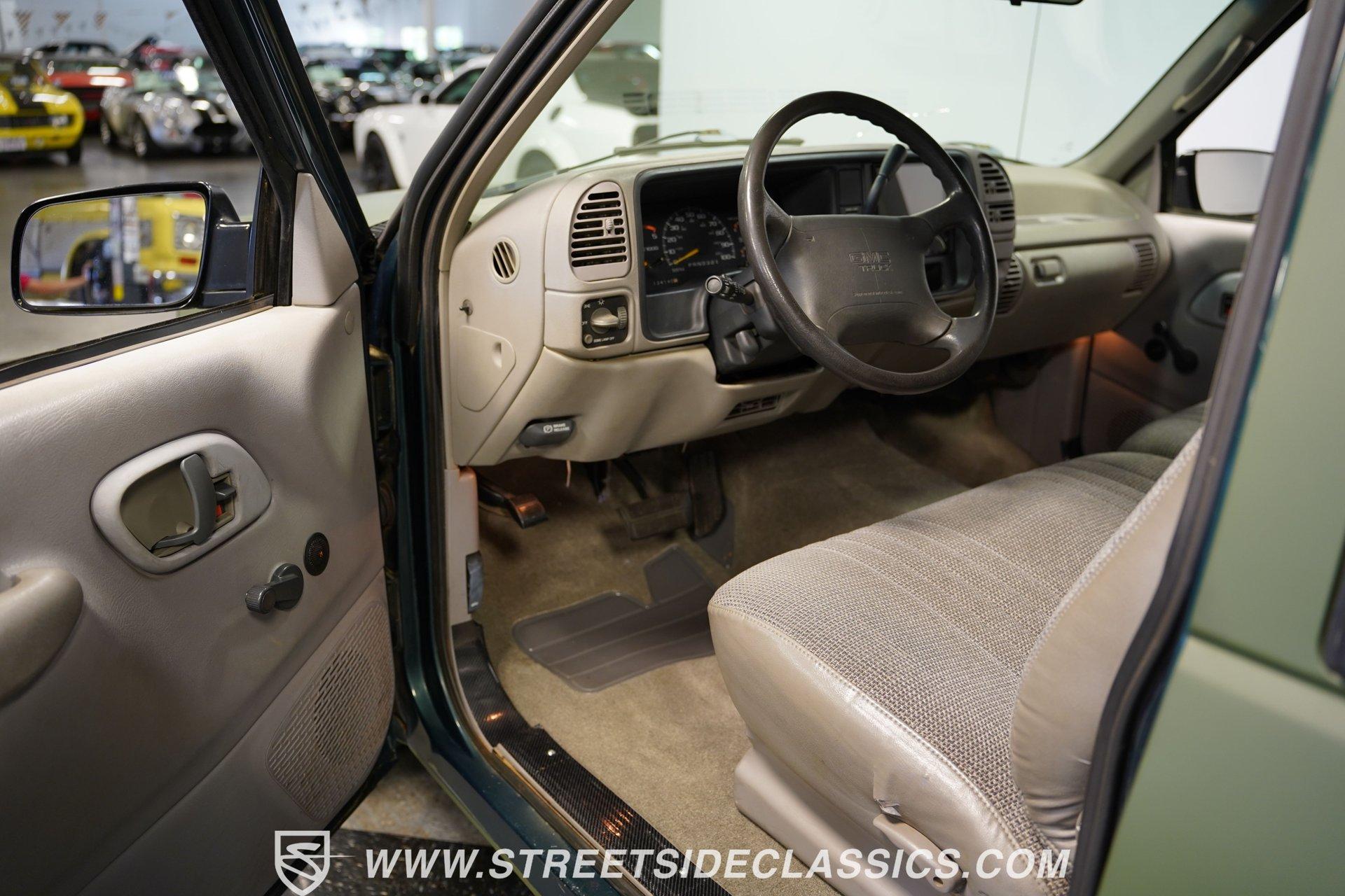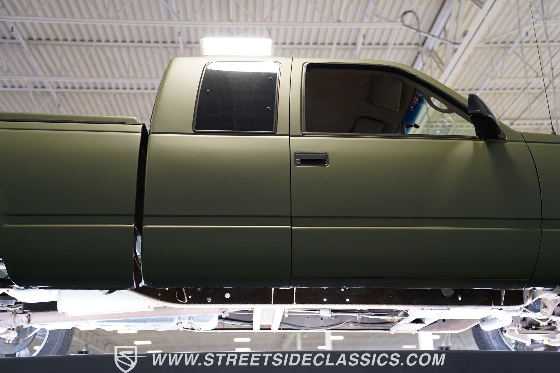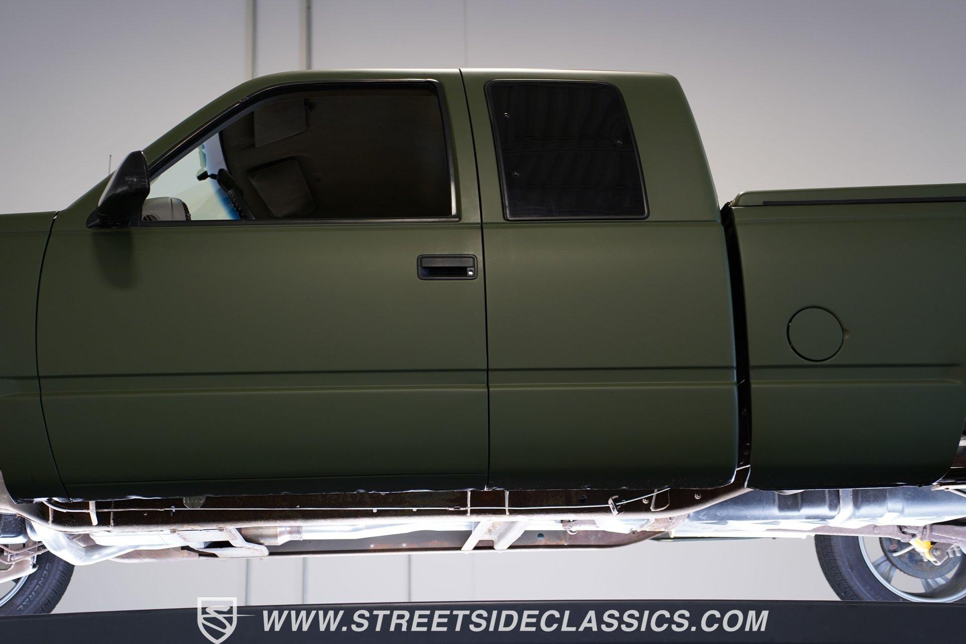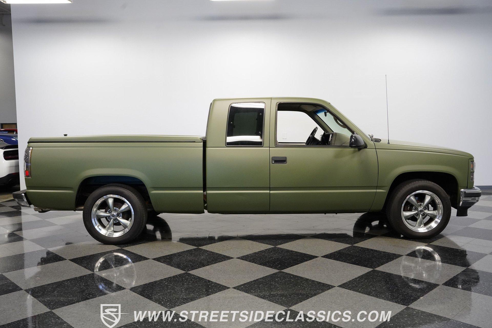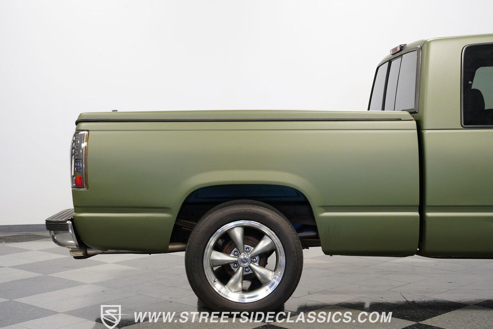 Military-inspired matte green vinyl wrap gives this 1995 GMC Sierra 1500 Extended Cab an unmistakable presence on the street or job site. The bold color choice works exceptionally well with the truck's angular body lines and extended cab profile. American Racing 18-inch wheels provide an upgraded stance, wrapped in meaty 245/55R18 tires for improved grip and visual appeal. The hard bed cover adds practicality for hauling gear while maintaining clean lines from front to back. Aftermarket headlights and taillights bring modern lighting technology, while dual chrome exhaust tips peek out from under the rear, hinting at the V8 soundtrack this truck produces when you push the accelerator. Jump into the gray cloth split-bench seat and you'll find yourself in a straightforward, no-nonsense workspace built for getting things done. The SONY touchscreen radio breaks up the classic dashboard with modern tech, offering Bluetooth connectivity and auxiliary inputs for your music. Long drives are made more comfortable with air conditioning to keep you cool, cruise control for highway stretches, and a tilt wheel for proper driving position. Carbon fiber door seal accents add a custom touch that contrasts nicely with the gray interior theme. The doors shut with a satisfying thunk that only solid American trucks can deliver. Muscle matters in a proper work truck, and the rebuilt 5.7 Liter V8 under the hood delivers with only 4,000 miles on the clock since its overhaul. The electronic fuel injection system fires up reliably in all weather conditions, while the equally fresh 4L60E 4-speed automatic transmission shifts with authority. Dual exhaust with aftermarket mufflers produces a growl worthy of a truck this size, and shorty manifolds help that V8 breathe more efficiently. The 10-bolt rear axle puts the power down when you need it, while the coil spring front and leaf spring rear suspension setup handles both empty highway cruising and loaded work duties with equal capability. HIGHLIGHTS: 5.7 Liter V8 Engine Engine Rebuilt (4,000 miles ago) 4 Speed Automatic 4L60E Transmission Transmission Rebuilt (4,000 miles ago) Electronic Fuel Injection Power Front Disc Brakes Dual Exhaust with Aftermarket Mufflers Shorty Manifolds 10 Bolt Rear Axle Coil Spring/Shock/Sway Bar Front Suspension Leaf Springs with Shocks Rear Suspension Matte Green Vinyl Wrap Hard Bed Cover 18" American Racing Wheels with 245/55R18 Tires Aftermarket Headlights Aftermarket Taillights Dual Chrome Exhaust Tips Gray Interior with Split-Bench Seat Air Conditioning Cruise Control Power Steering Tilt Wheel SONY Bluetooth, Auxiliary, Satellite Radio Backup Camera Original Window Sticker Service Receipts HD Trailering Package This 1995 GMC Sierra 1500 combines raw V8 power with modern upgrades for both style and function. With a freshly rebuilt drivetrain, tactical matte green exterior, and tech-updated interior, this truck is ready to tackle your daily duties and weekend adventures with equal skill. Call today!