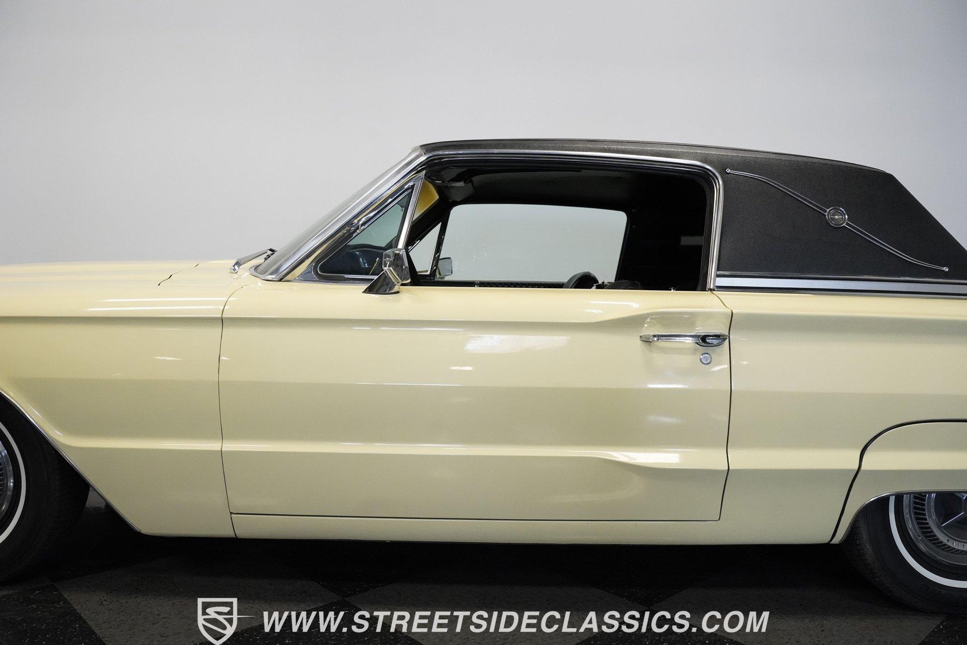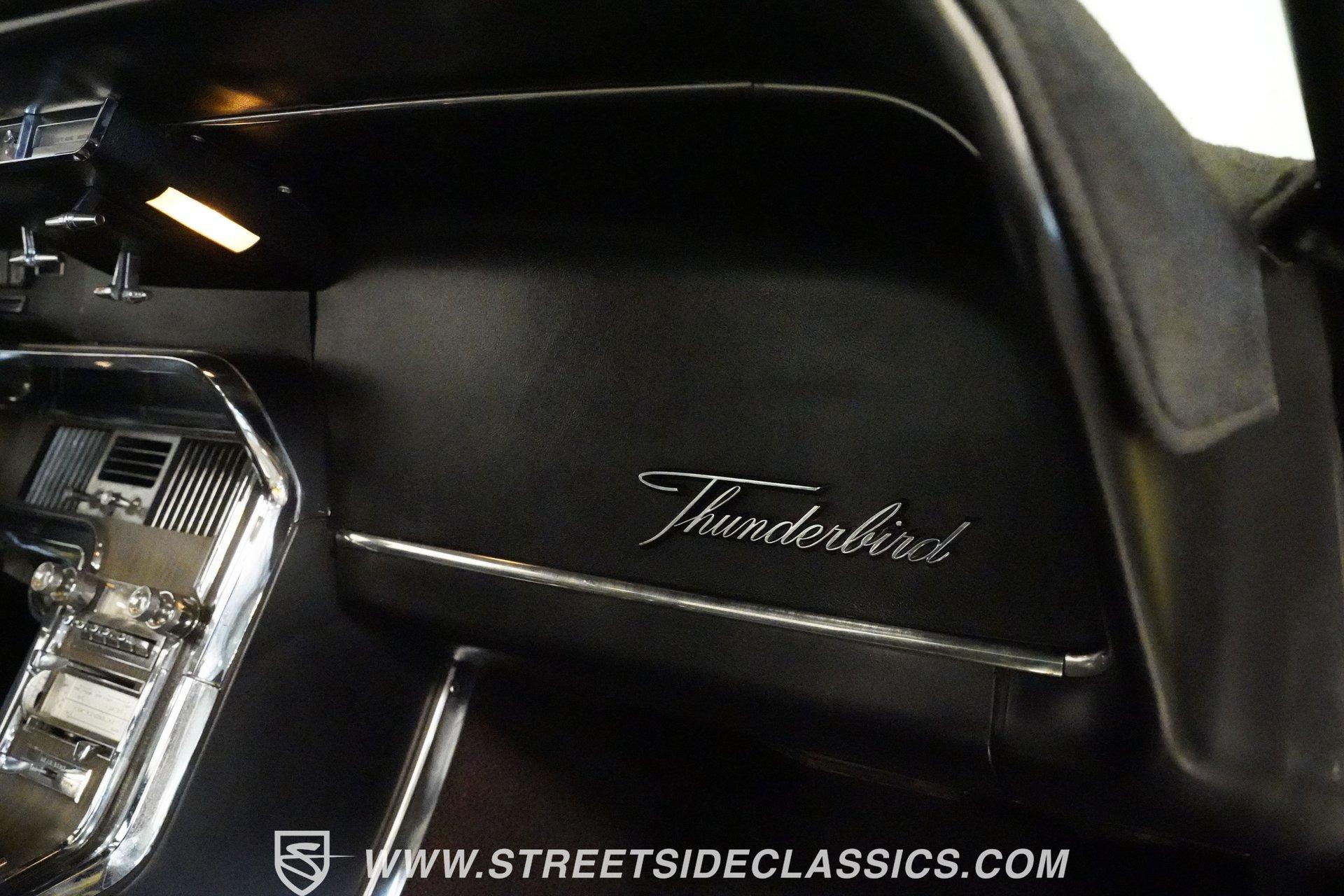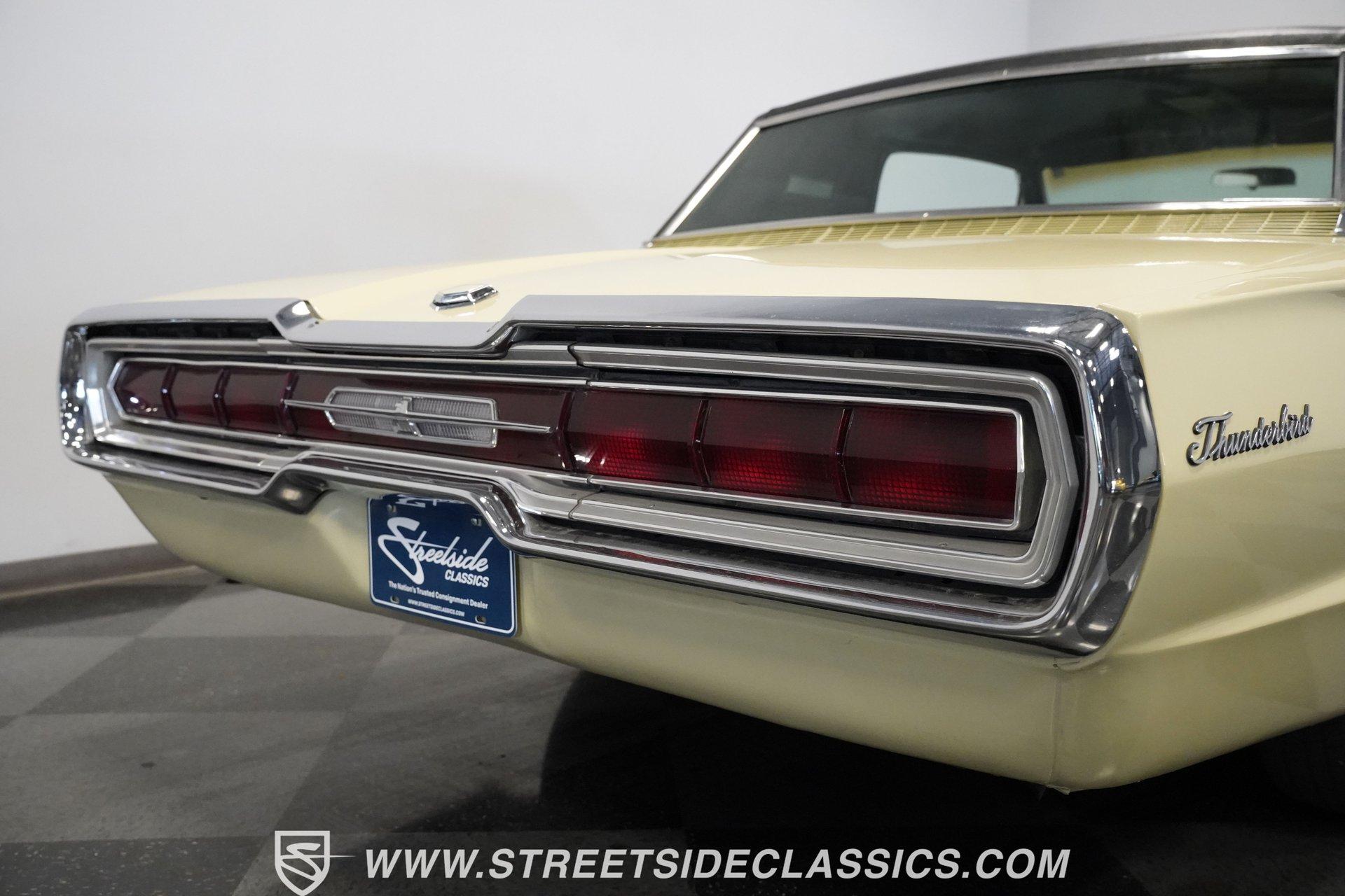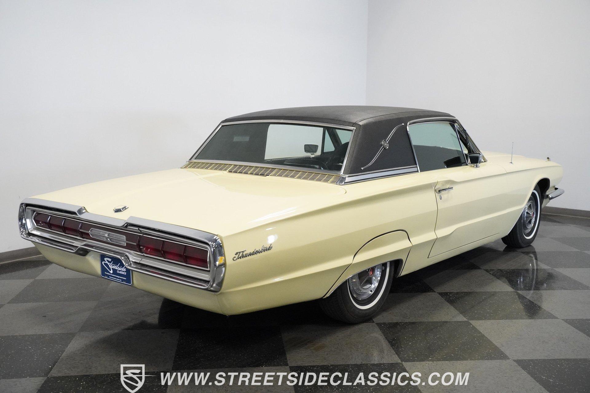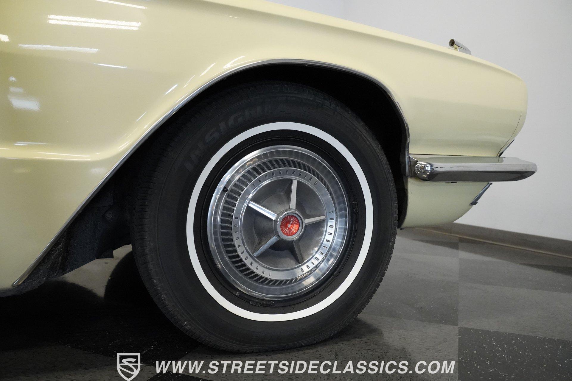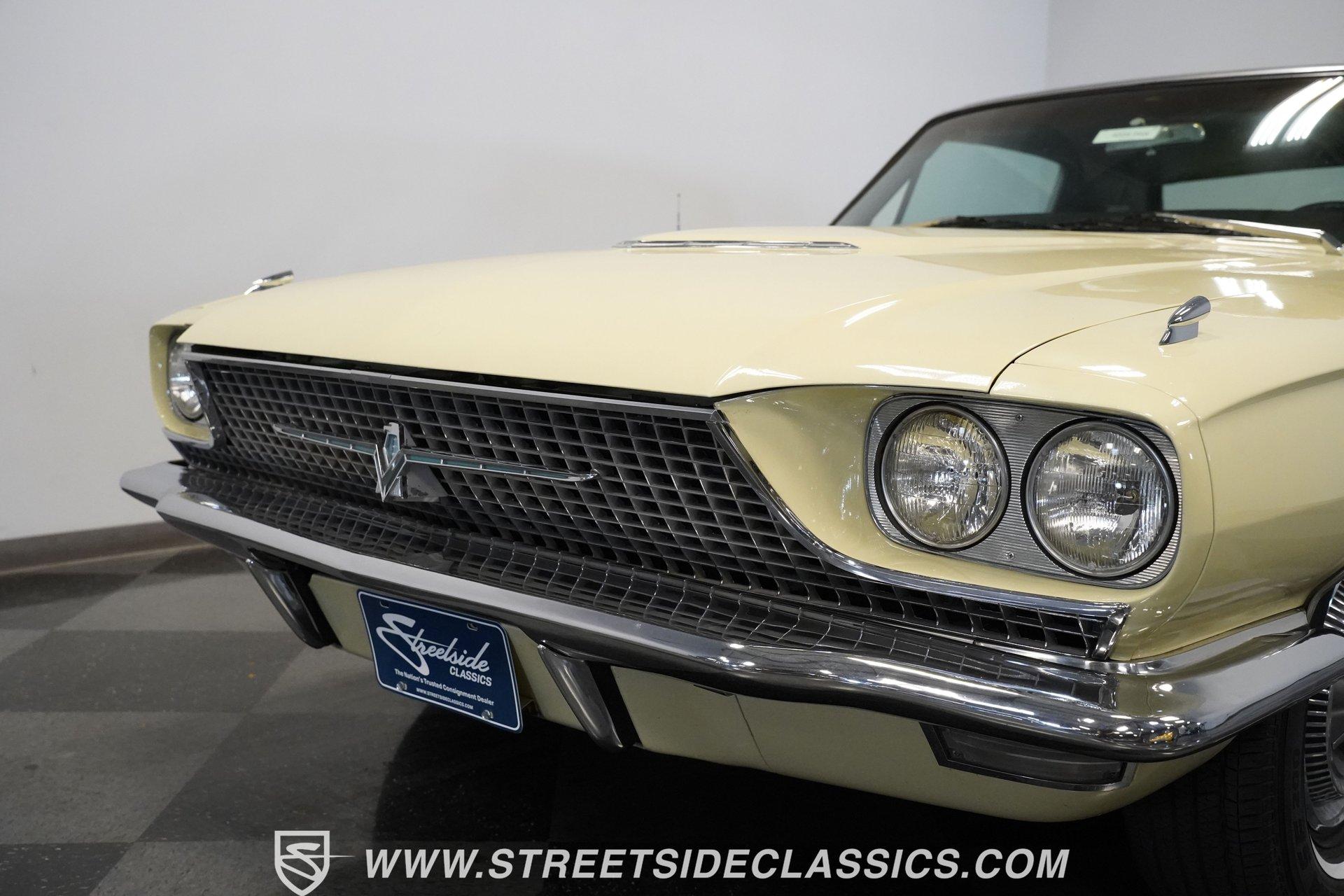 4225-PHX 1966 FORD THUNDERBIRD LANDAU Ford's elite personal luxury coupe shines in Ivy Yellow, a rare factory color choice that makes this 1966 Thunderbird Landau stand out from typical examples. The distinctive black vinyl Landau roof creates a striking two-tone effect against the vibrant yellow exterior. This special town roof body style features no rear quarter windows, giving it a cleaner, more exclusive silhouette. The classic lines flow seamlessly from the imposing front grille back to the horizontal taillights. Rolling on 15" steel wheels with factory wheel covers and Bridgestone Insignia SE200 215/75R15 tires, this Thunderbird balances luxury and presence. Black vinyl interior creates a sophisticated atmosphere inside this Thunderbird. The bucket seats provide excellent support, while the overhead console adds an exclusive touch unique to the Landau package. A column-mounted shifter maintains the clean cabin layout, complemented by a functional center console. The instrument cluster presents clear readouts behind the factory steering wheel. Air conditioning, power windows, power locks, and power seats deliver expected Thunderbird luxury features, while the AM radio provides period-correct entertainment. The dash, carpet, and headliner maintain their classic Ford design. The 390 V8 engine delivers authoritative power through the smooth-operating 3-speed FMX automatic transmission. An Autolite 4-barrel carburetor manages fuel delivery efficiently. The independent front suspension with control arms and coil springs pairs with a solid 9-inch rear axle with leaf springs for a solid foundation. Power steering makes navigating this substantial luxury coupe effortless. Power brakes with front discs provide superior stopping capability. The dual exhaust with aftermarket mufflers produces a refined exhaust note fitting of this luxury model. HIGHLIGHTS: 390 V8 Engine 3 Speed FMX Automatic Transmission Single 4-Barrel Autolite Carburetor Power Steering Power Front Disc Brakes Independent Front Suspension with Control Arms and Coil Springs Solid Axle Rear Suspension with Leaf Springs 9-inch Rear Axle Dual Exhaust with Aftermarket Mufflers Ivy Yellow Paint Black Vinyl Landau Roof 15" Steel Wheels with Thunderbird Wheel Covers 215/75R15 Bridgestone Insignia SE200 Tires Black Interior with Bucket Seats Power Seats Column Shifter Center Console Air Conditioning Power Windows Power Locks AM Radio Among Ford's most distinctive luxury designs, this 1966 Thunderbird Landau combines the rare Ivy Yellow paint, black vinyl roof, comfortable black interior, and reliable 390 V8 power. A true personal luxury coupe from the golden age of American automotive design. Call today!