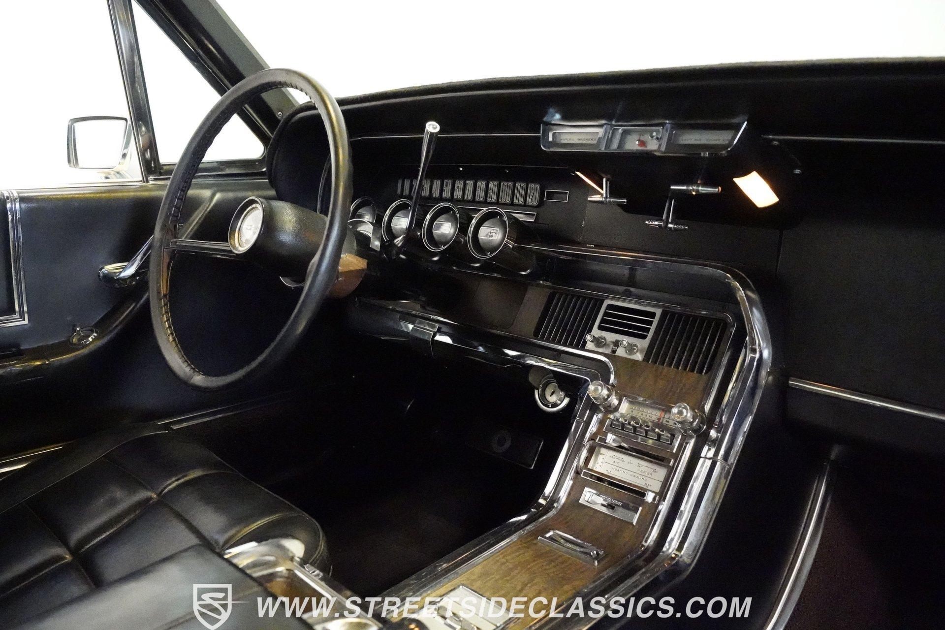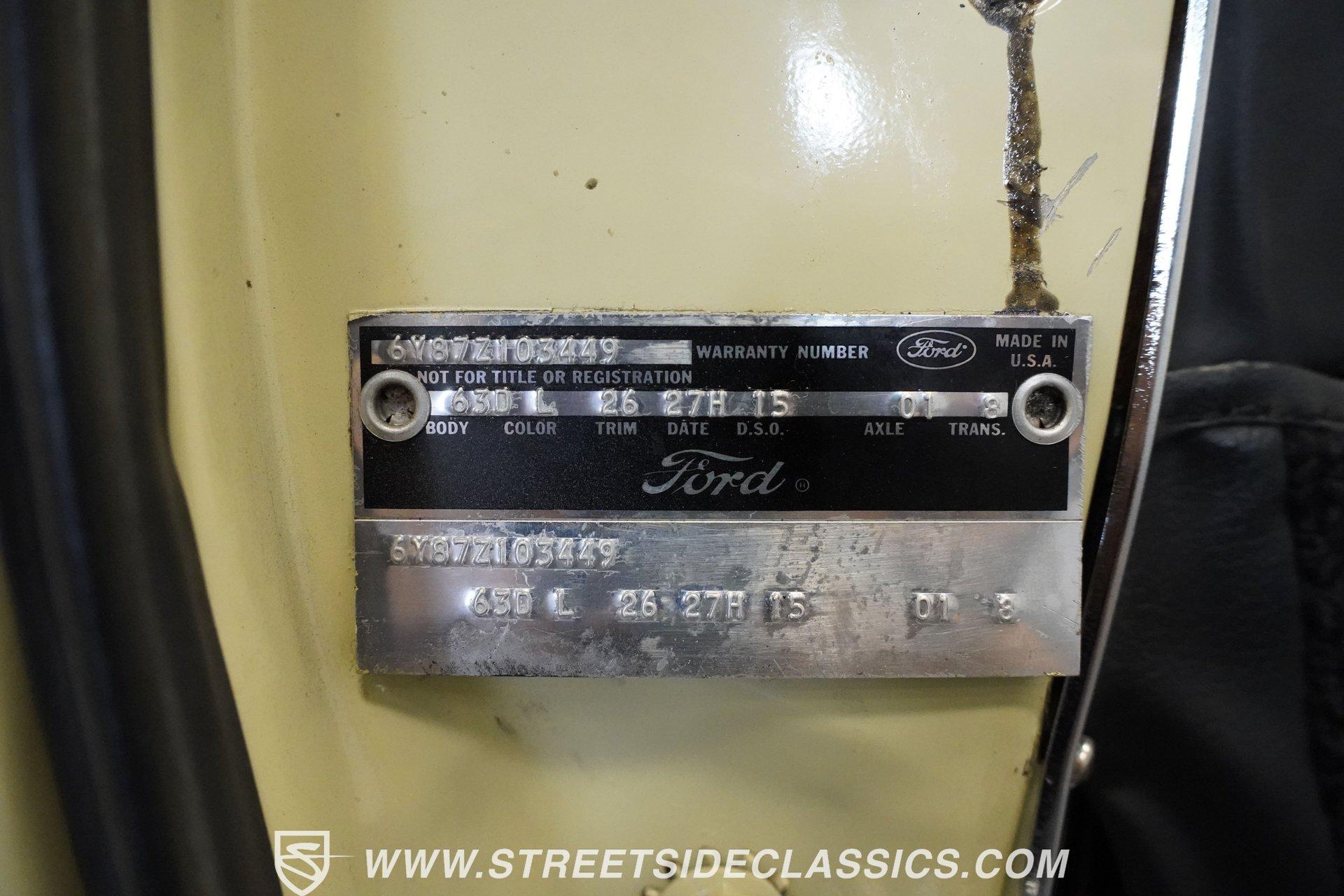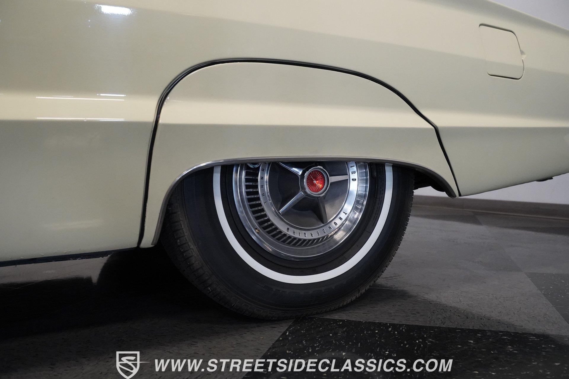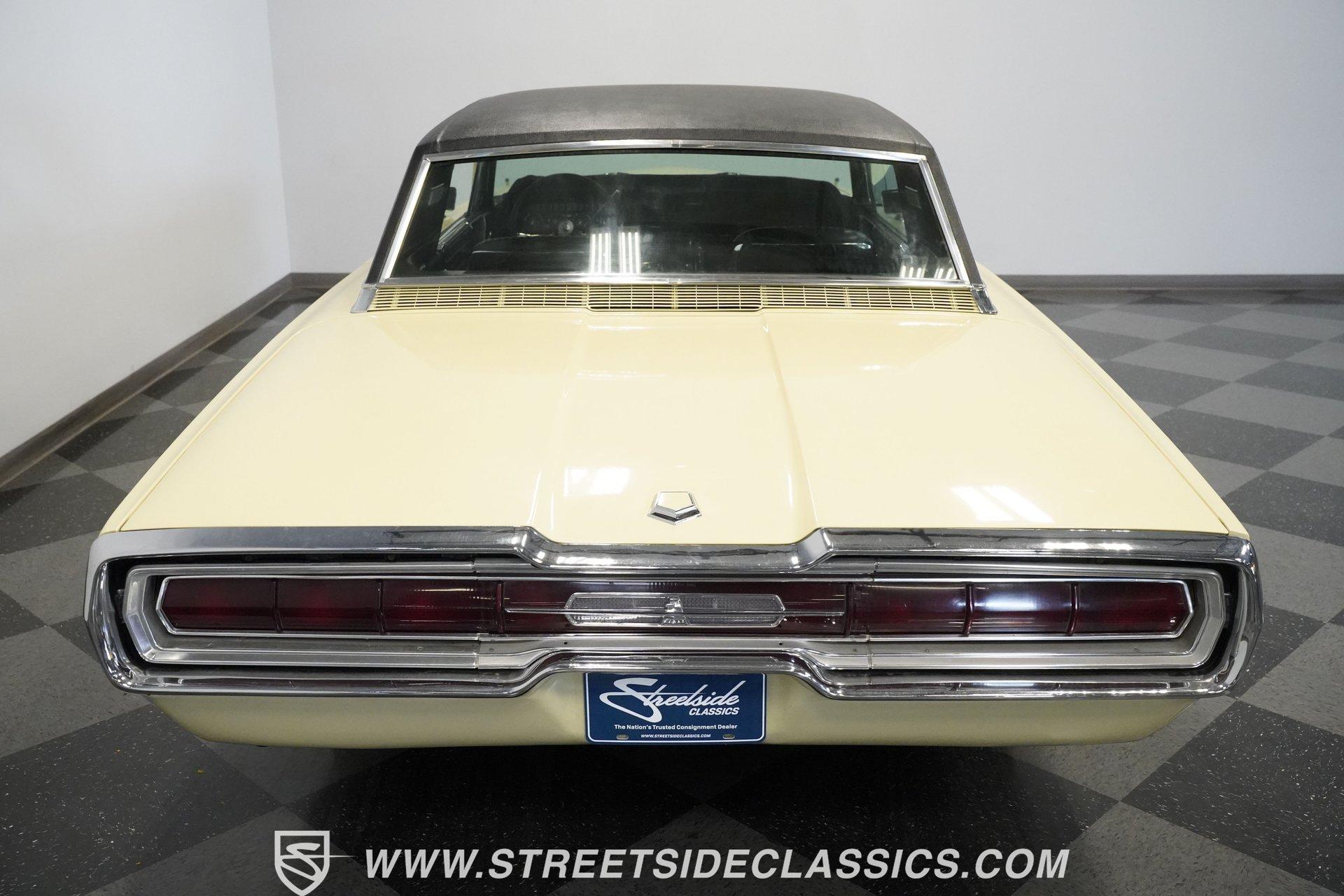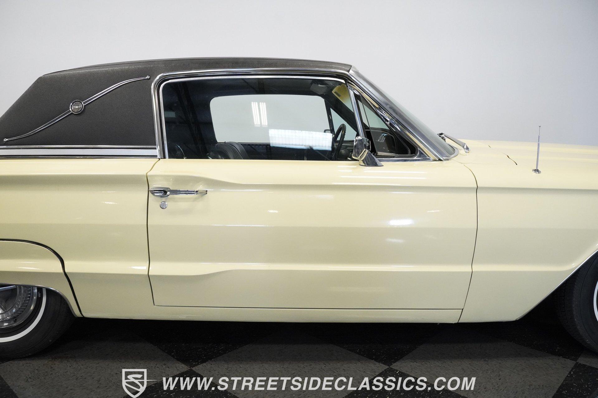 4225-PHX 1966 FORD THUNDERBIRD LANDAU Ford's elite personal luxury coupe shines in Ivy Yellow, a rare factory color choice that makes this 1966 Thunderbird Landau stand out from typical examples. The distinctive black vinyl Landau roof creates a striking two-tone effect against the vibrant yellow exterior. This special town roof body style features no rear quarter windows, giving it a cleaner, more exclusive silhouette. The classic lines flow seamlessly from the imposing front grille back to the horizontal taillights. Rolling on 15" steel wheels with factory wheel covers and Bridgestone Insignia SE200 215/75R15 tires, this Thunderbird balances luxury and presence. Black vinyl interior creates a sophisticated atmosphere inside this Thunderbird. The bucket seats provide excellent support, while the overhead console adds an exclusive touch unique to the Landau package. A column-mounted shifter maintains the clean cabin layout, complemented by a functional center console. The instrument cluster presents clear readouts behind the factory steering wheel. Air conditioning, power windows, power locks, and power seats deliver expected Thunderbird luxury features, while the AM radio provides period-correct entertainment. The dash, carpet, and headliner maintain their classic Ford design. The 390 V8 engine delivers authoritative power through the smooth-operating 3-speed FMX automatic transmission. An Autolite 4-barrel carburetor manages fuel delivery efficiently. The independent front suspension with control arms and coil springs pairs with a solid 9-inch rear axle with leaf springs for a solid foundation. Power steering makes navigating this substantial luxury coupe effortless. Power brakes with front discs provide superior stopping capability. The dual exhaust with aftermarket mufflers produces a refined exhaust note fitting of this luxury model. HIGHLIGHTS: 390 V8 Engine 3 Speed FMX Automatic Transmission Single 4-Barrel Autolite Carburetor Power Steering Power Front Disc Brakes Independent Front Suspension with Control Arms and Coil Springs Solid Axle Rear Suspension with Leaf Springs 9-inch Rear Axle Dual Exhaust with Aftermarket Mufflers Ivy Yellow Paint Black Vinyl Landau Roof 15" Steel Wheels with Thunderbird Wheel Covers 215/75R15 Bridgestone Insignia SE200 Tires Black Interior with Bucket Seats Power Seats Column Shifter Center Console Air Conditioning Power Windows Power Locks AM Radio Among Ford's most distinctive luxury designs, this 1966 Thunderbird Landau combines the rare Ivy Yellow paint, black vinyl roof, comfortable black interior, and reliable 390 V8 power. A true personal luxury coupe from the golden age of American automotive design. Call today!