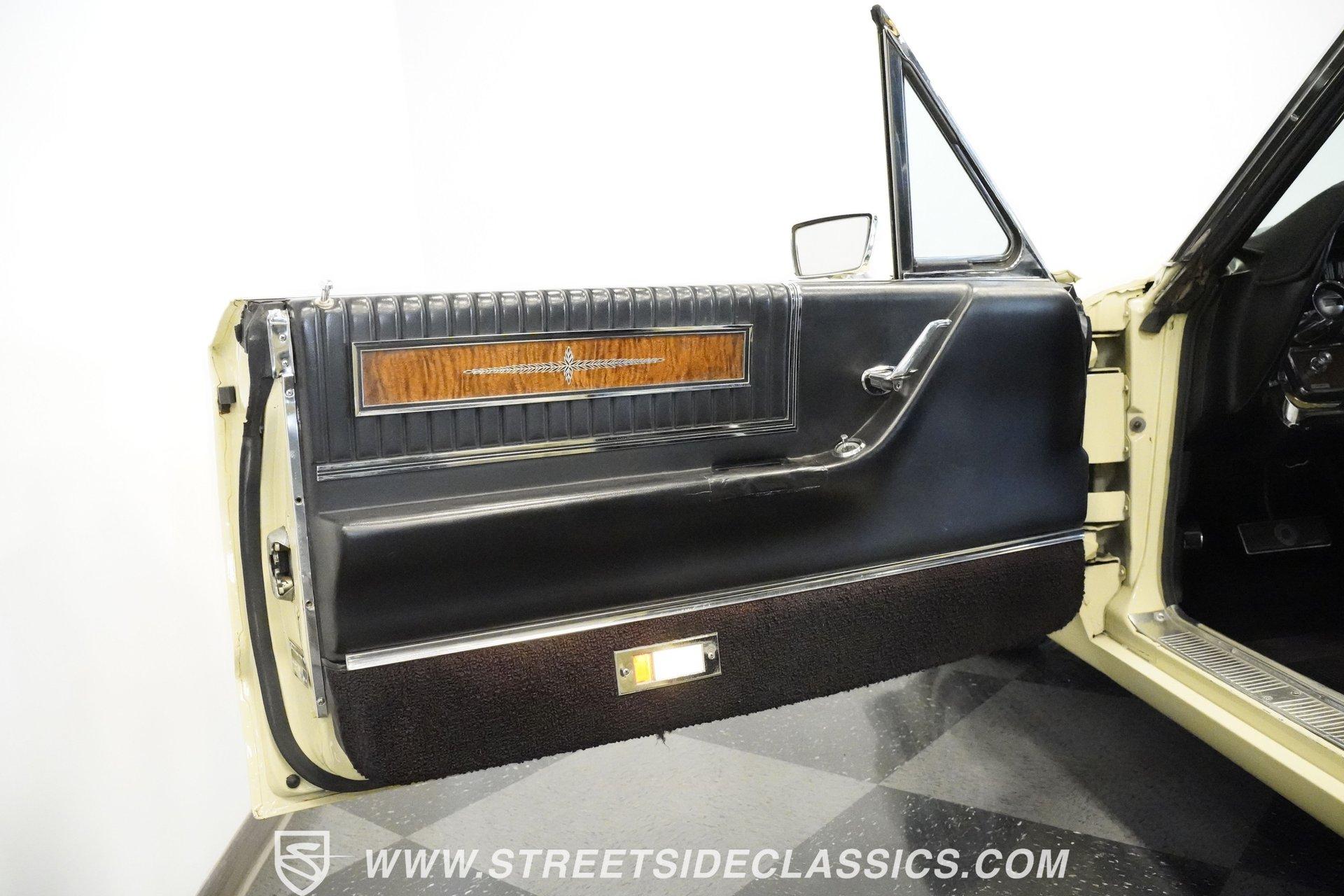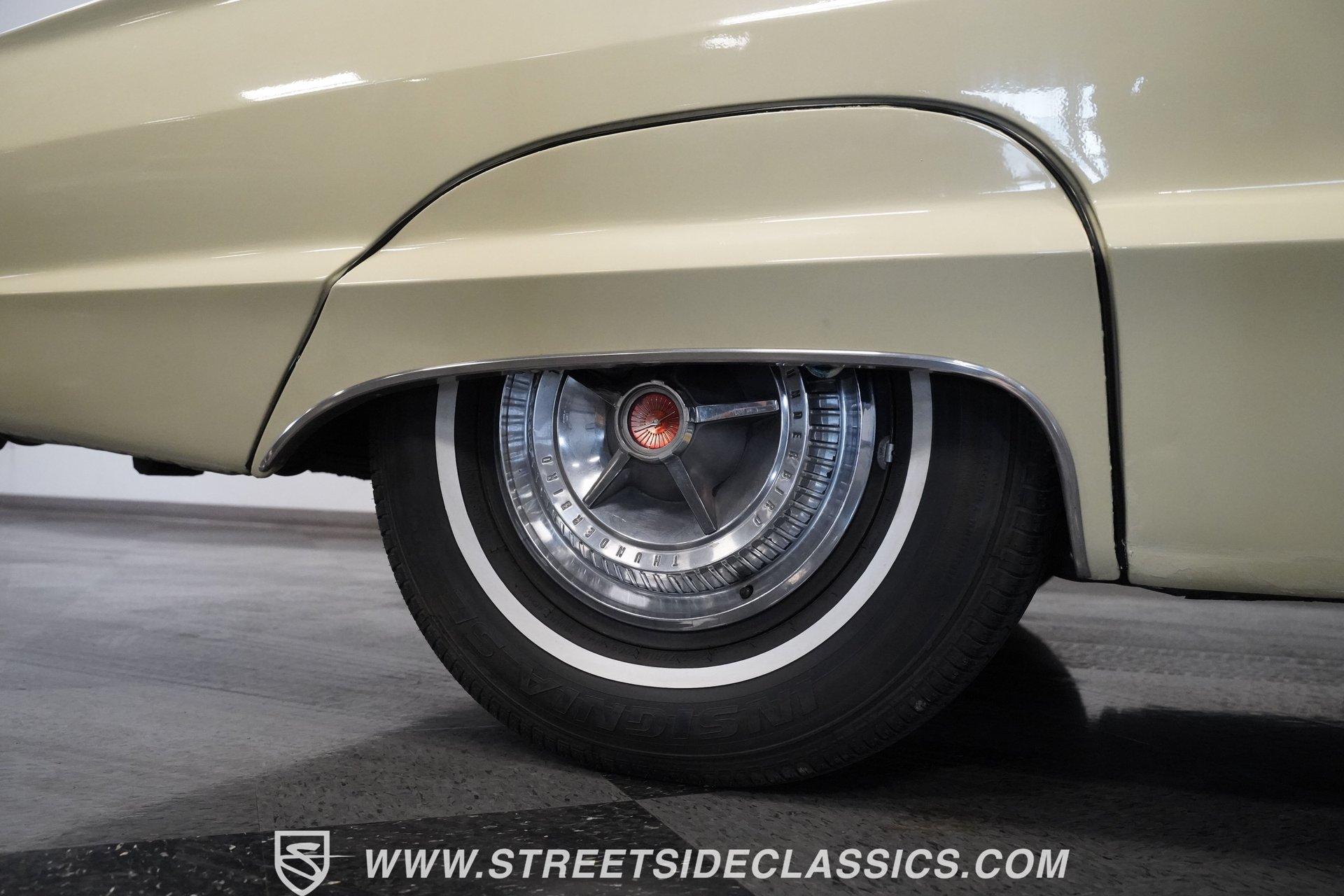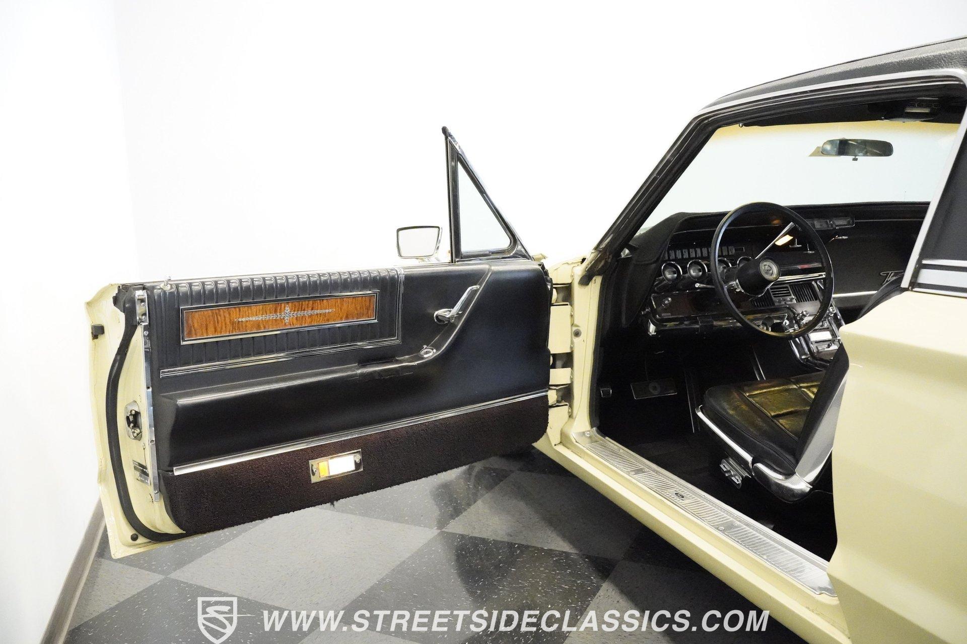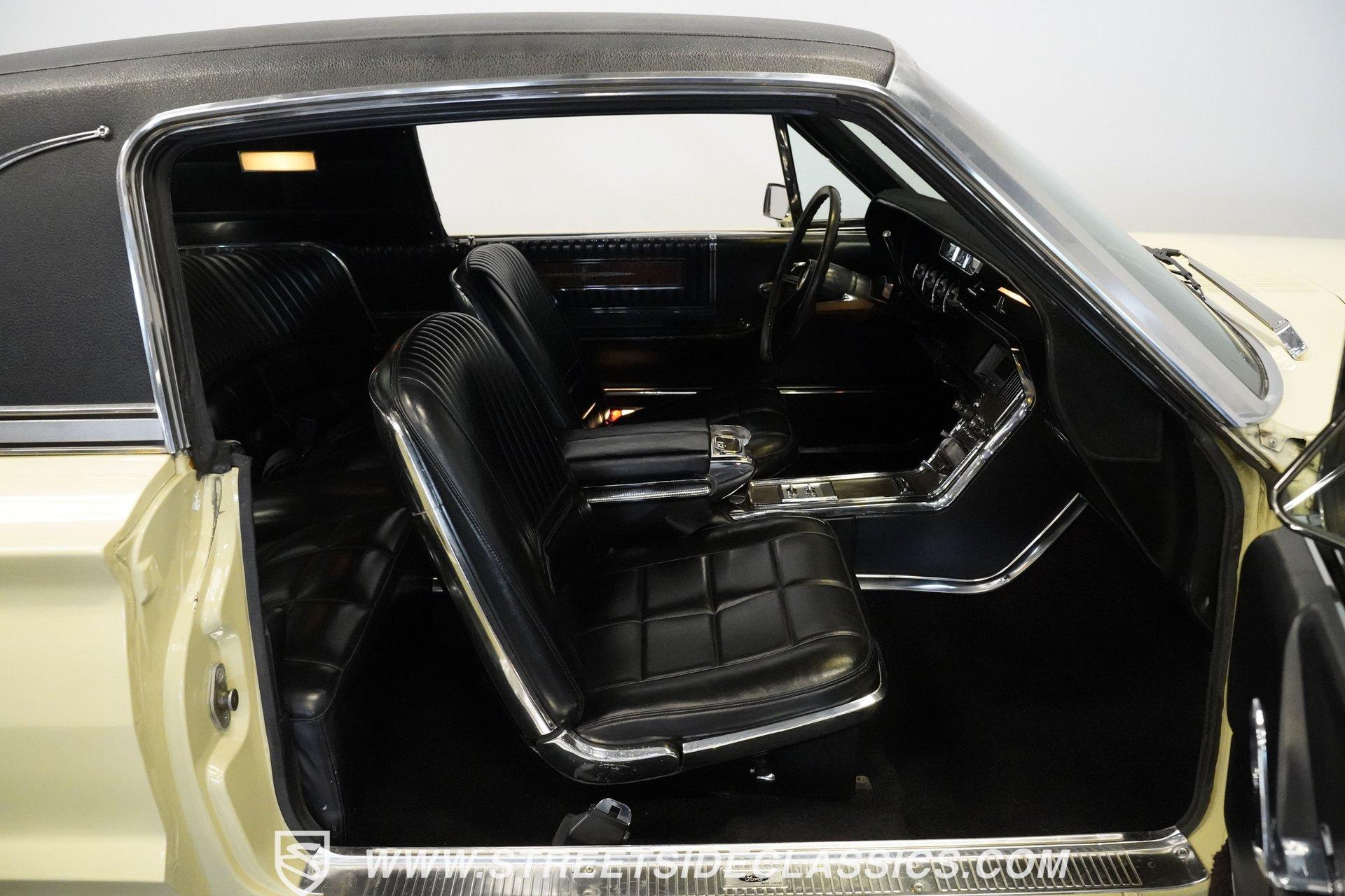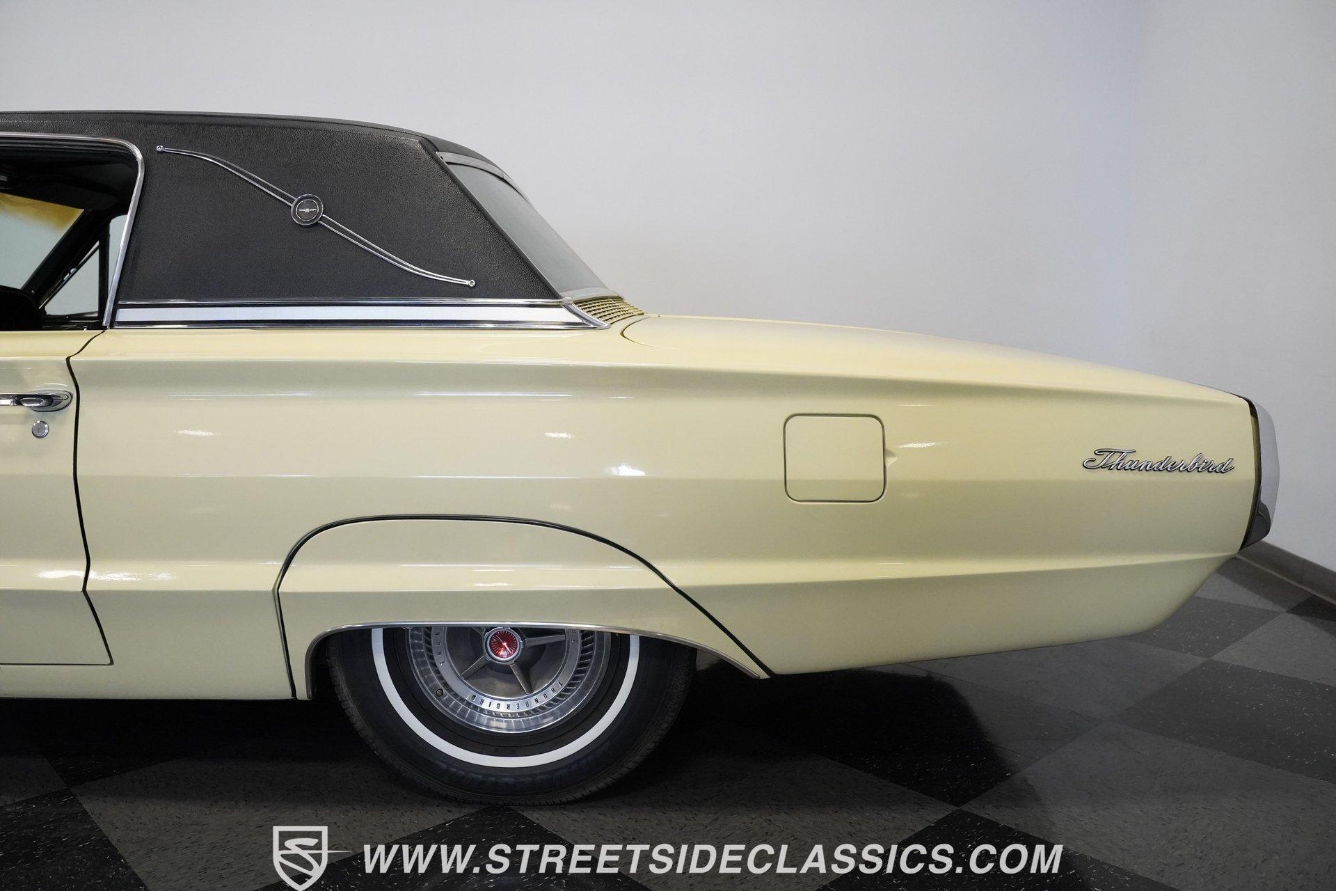 4225-PHX 1966 FORD THUNDERBIRD LANDAU Ford's elite personal luxury coupe shines in Ivy Yellow, a rare factory color choice that makes this 1966 Thunderbird Landau stand out from typical examples. The distinctive black vinyl Landau roof creates a striking two-tone effect against the vibrant yellow exterior. This special town roof body style features no rear quarter windows, giving it a cleaner, more exclusive silhouette. The classic lines flow seamlessly from the imposing front grille back to the horizontal taillights. Rolling on 15" steel wheels with factory wheel covers and Bridgestone Insignia SE200 215/75R15 tires, this Thunderbird balances luxury and presence. Black vinyl interior creates a sophisticated atmosphere inside this Thunderbird. The bucket seats provide excellent support, while the overhead console adds an exclusive touch unique to the Landau package. A column-mounted shifter maintains the clean cabin layout, complemented by a functional center console. The instrument cluster presents clear readouts behind the factory steering wheel. Air conditioning, power windows, power locks, and power seats deliver expected Thunderbird luxury features, while the AM radio provides period-correct entertainment. The dash, carpet, and headliner maintain their classic Ford design. The 390 V8 engine delivers authoritative power through the smooth-operating 3-speed FMX automatic transmission. An Autolite 4-barrel carburetor manages fuel delivery efficiently. The independent front suspension with control arms and coil springs pairs with a solid 9-inch rear axle with leaf springs for a solid foundation. Power steering makes navigating this substantial luxury coupe effortless. Power brakes with front discs provide superior stopping capability. The dual exhaust with aftermarket mufflers produces a refined exhaust note fitting of this luxury model. HIGHLIGHTS: 390 V8 Engine 3 Speed FMX Automatic Transmission Single 4-Barrel Autolite Carburetor Power Steering Power Front Disc Brakes Independent Front Suspension with Control Arms and Coil Springs Solid Axle Rear Suspension with Leaf Springs 9-inch Rear Axle Dual Exhaust with Aftermarket Mufflers Ivy Yellow Paint Black Vinyl Landau Roof 15" Steel Wheels with Thunderbird Wheel Covers 215/75R15 Bridgestone Insignia SE200 Tires Black Interior with Bucket Seats Power Seats Column Shifter Center Console Air Conditioning Power Windows Power Locks AM Radio Among Ford's most distinctive luxury designs, this 1966 Thunderbird Landau combines the rare Ivy Yellow paint, black vinyl roof, comfortable black interior, and reliable 390 V8 power. A true personal luxury coupe from the golden age of American automotive design. Call today!