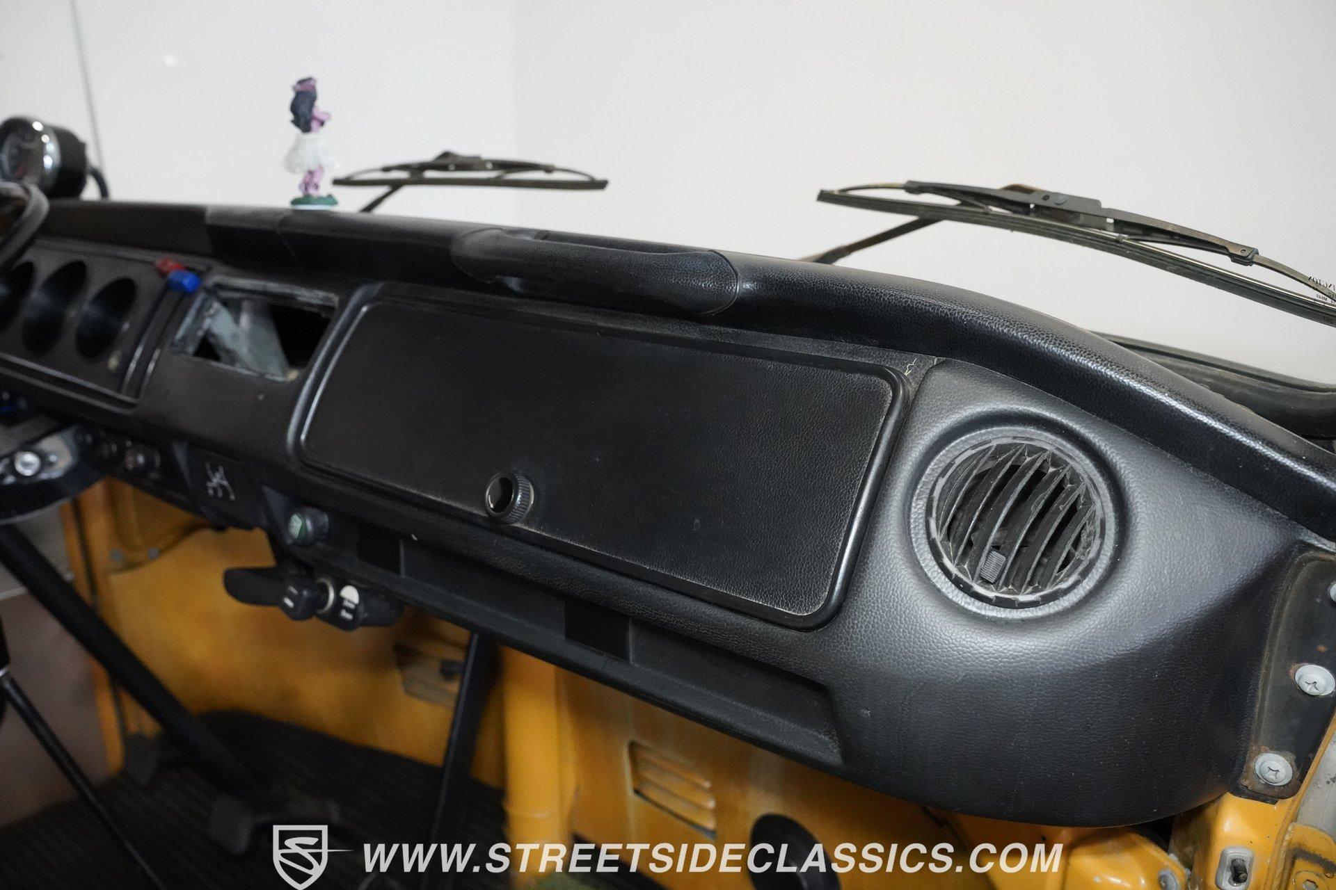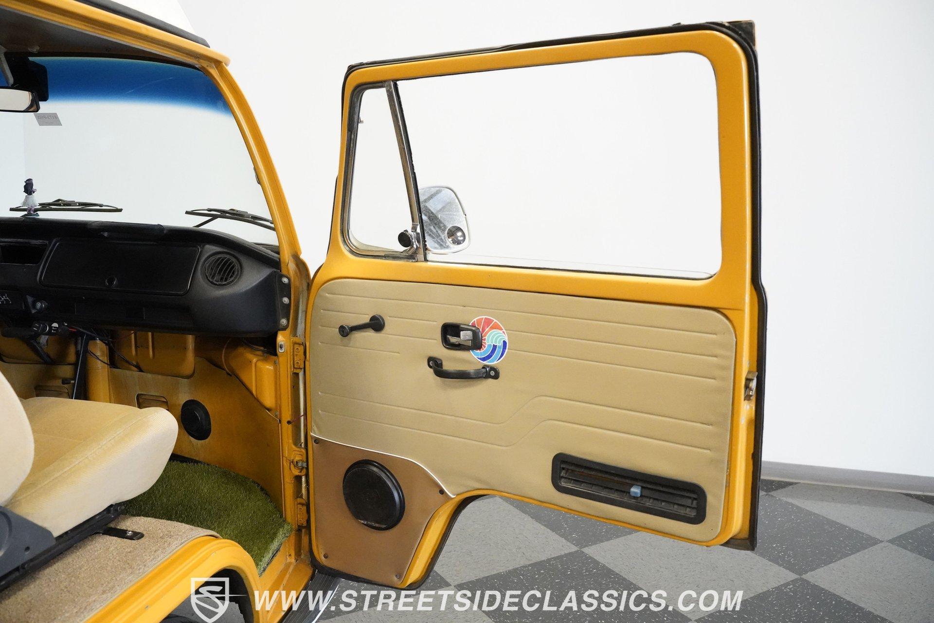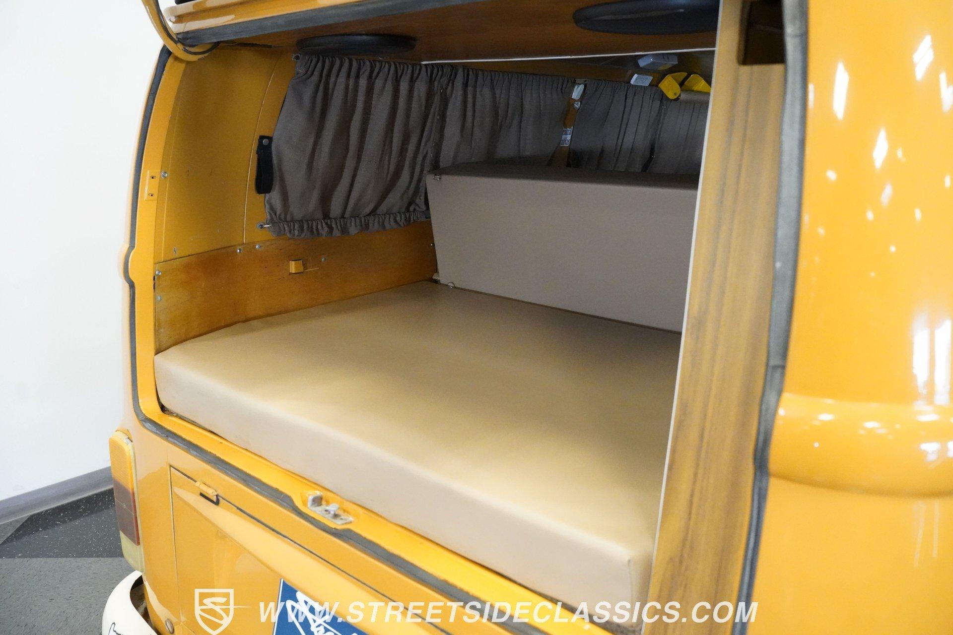 4173-PHX 1972 VOLKSWAGEN WESTFALIA CAMPER Adventure-ready and built for the open road, the 1972 Volkswagen Westfalia Camper comes in Mustard Yellow with a distinctive boxy profile. A large, functional roof rack sits atop this German classic, complete with solar panels for off-grid capability. The exterior features 14-inch steel wheels with beauty rings and center caps, along with 185R14 Hancook tires that give this van its authentic road-going stance. Three doors provide easy access to both cabin and storage areas. Inside, the well-thought-out layout maximizes space with cloth front seats and a vinyl-upholstered rear bench that converts to a bed. A compact built-in sink and refrigerator demonstrate the intelligent design that made these vehicles popular among travelers. Additional features include household electrical plugs and a functional tachometer on the dash that tracks engine RPMs while maintaining the straightforward, utilitarian feel of this mobile living space. A freshly replaced 2.0-liter gasoline engine, rebuilt in 2024 with only 396 miles on the clock, forms the mechanical foundation. The engine works through a single 2-barrel Weber carburetor and mates to an equally fresh 4-speed manual transmission. The front disc brakes provide solid stopping ability, while the torsion bar front suspension and swing axle rear design give this Volkswagen its characteristic handling on the open road. HIGHLIGHTS: 2.0 Liter Gasoline Engine (Replaced in 2024, 396 miles since rebuild) 4 Speed Manual Transmission (396 miles since rebuild) 2 Barrel Weber Carburetor Power Front Disc Brakes Torsion Bar Front Suspension Swing Axle Rear Suspension Dual Exhaust with Aftermarket Muffler Stock Style Manifold Mustard Yellow Exterior 14" Steel Wheels with Beauty Rings and Center Caps 185R14 Hancook Tires Roof Rack Solar Panels and Equipment in Roof Box 3 Doors Tan Interior with Front Bucket Seats Rear Seat/Bed Built-in Sink Refrigerator Household Electrical Plugs Tachometer Engine Rebuild Receipt Transmission Rebuild Receipt $8,840 in Service Receipts This classic Volkswagen Westfalia represents German engineering at its most versatile. With its newly rebuilt engine and transmission, this 1972 Camper offers the perfect blend of nostalgic travel and practical functionality for weekend getaways or cross-country adventures. Call today!