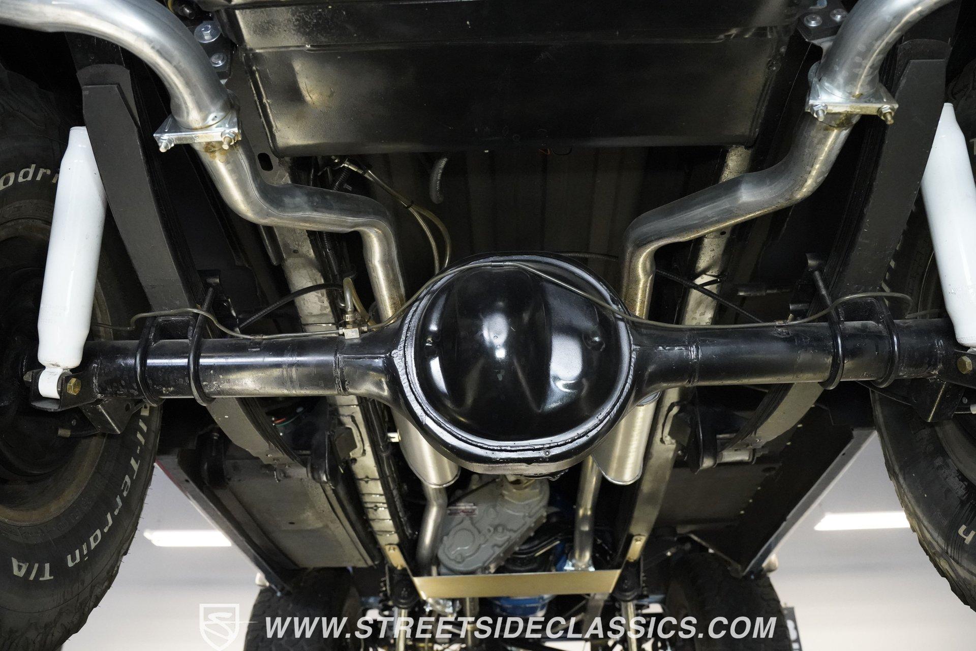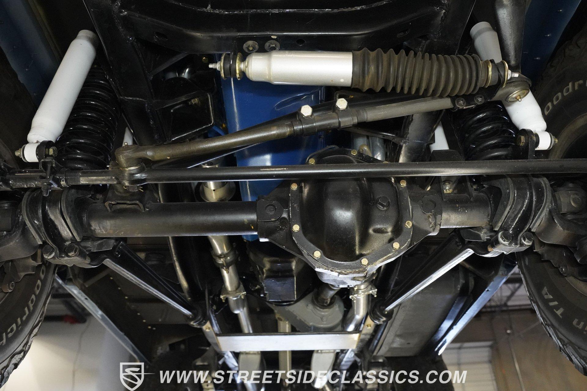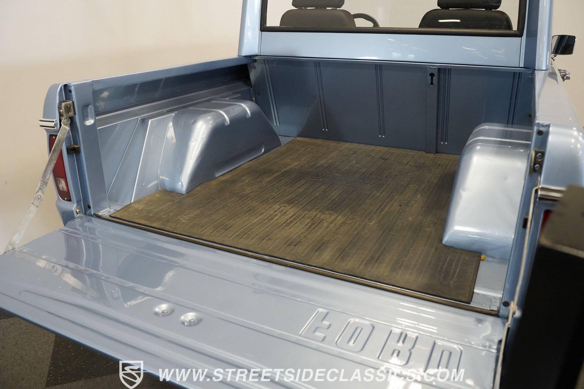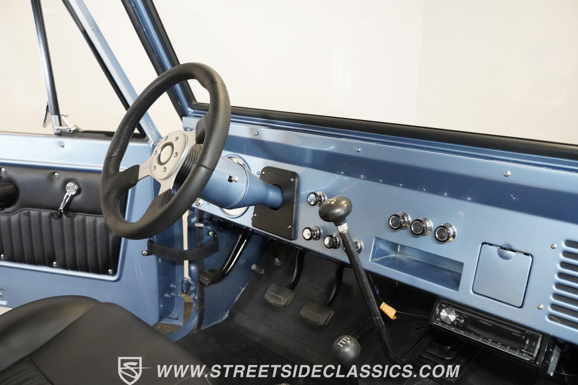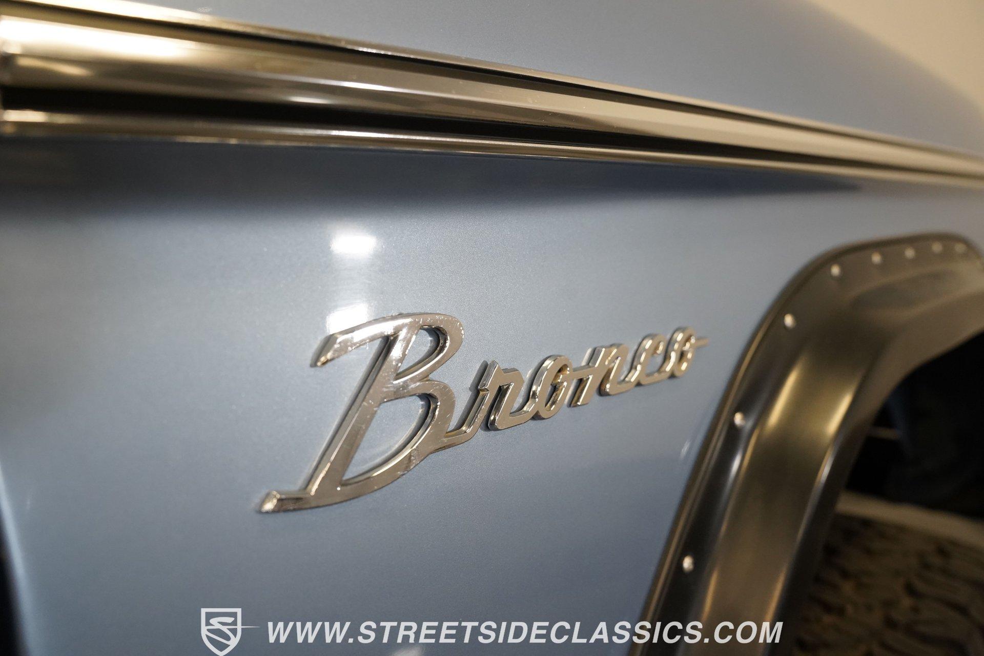 4113-PHX 1970 FORD BRONCO HALF-CAB 4X4 Forged for the wild, this 1970 Ford Bronco Half-Cab 4x4 comes coated in Brittany Blue paint. Ford created something special with the sought-after half-cab configuration - a rugged blend of open-air utility and all-terrain capability. A 3.5-inch suspension lift combined with a 1-inch body lift gives this American classic its tall and mighty profile. Aluminum 15-inch wheels sit at all four corners, wrapped in massive 33/12.50/15 BFGoodrich KO2 all-terrain tires for ultimate traction. Aftermarket fender flares accommodate the wider rubber while the custom rear bumper houses a full-size matching spare, ever-ready for backcountry exploration. The black vinyl interior serves as your off-road control station. Bucket seats hold you in place across uneven ground, while the custom center console with floor shifter puts the 4-speed manual right where you need it. A blue-painted dash matches the exterior color, creating visual harmony throughout the cabin. The Pioneer radio with Bluetooth and satellite capability adds modern audio to your wilderness runs. Power steering makes handling manageable on tight mountain trails, allowing you to focus on conquering whatever terrain lies ahead. A 302 V8 engine sits front and center, enhanced with GT40 heads and Summit intake manifold, fed by a Holley Truck Avenger 4-barrel carburetor. The NP435 4-speed manual transmission works alongside a Dana 20 transfer case to distribute power. A Dana 44 front axle with Auburn locker and a Ford 9-inch rear axle with Detroit locker provide traction in all conditions. Both axles run 31-spline axles with 4.11 gears for excellent crawling ability. Ceramic-coated long-tube headers connect to a dual exhaust system for improved exhaust flow. Power disc brakes with hydroboost offer solid stopping power, complemented by dual front shocks for improved control. HIGHLIGHTS: 302 V8 Engine GT40 Heads with Summit Intake Holley Truck Avenger 4-Barrel Carburetor NP435 4-Speed Manual Transmission Dana 20 Transfer Case Dana 44 Front Axle with Auburn Locker 9-inch Rear Axle with Detroit Locker Ceramic Coated Long Tube Headers Dual Exhaust Power Disc Brakes with Hydroboost Dual Front Shocks 3.5-Inch Suspension Lift 1-Inch Body Lift Brittany Blue Paint Aftermarket Fender Flares Aftermarket Front, Rear Bumper with Spare Tire Mount 15-Inch Aluminum Wheels 33/12.50/15 BFGoodrich KO2 All-Terrain Tires Black Interior with Bucket Seats Custom Center Console Floor-Mounted Shifter Power Steering Blue Painted Dashboard Pioneer AM/FM/AUX Stereo with Bluetooth and Satellite Black Headliner Book of Restoration Photos 1,788 Miles Since Built Made for adventure, this 1970 Ford Bronco Half-Cab 4x4 mixes classic Ford 4x4 capability with thoughtfully selected upgrades. The 302 V8, heavy-duty drivetrain, and distinctive Brittany Blue exterior come together in a package that's ready to tackle any trail or mountain pass. Call today!