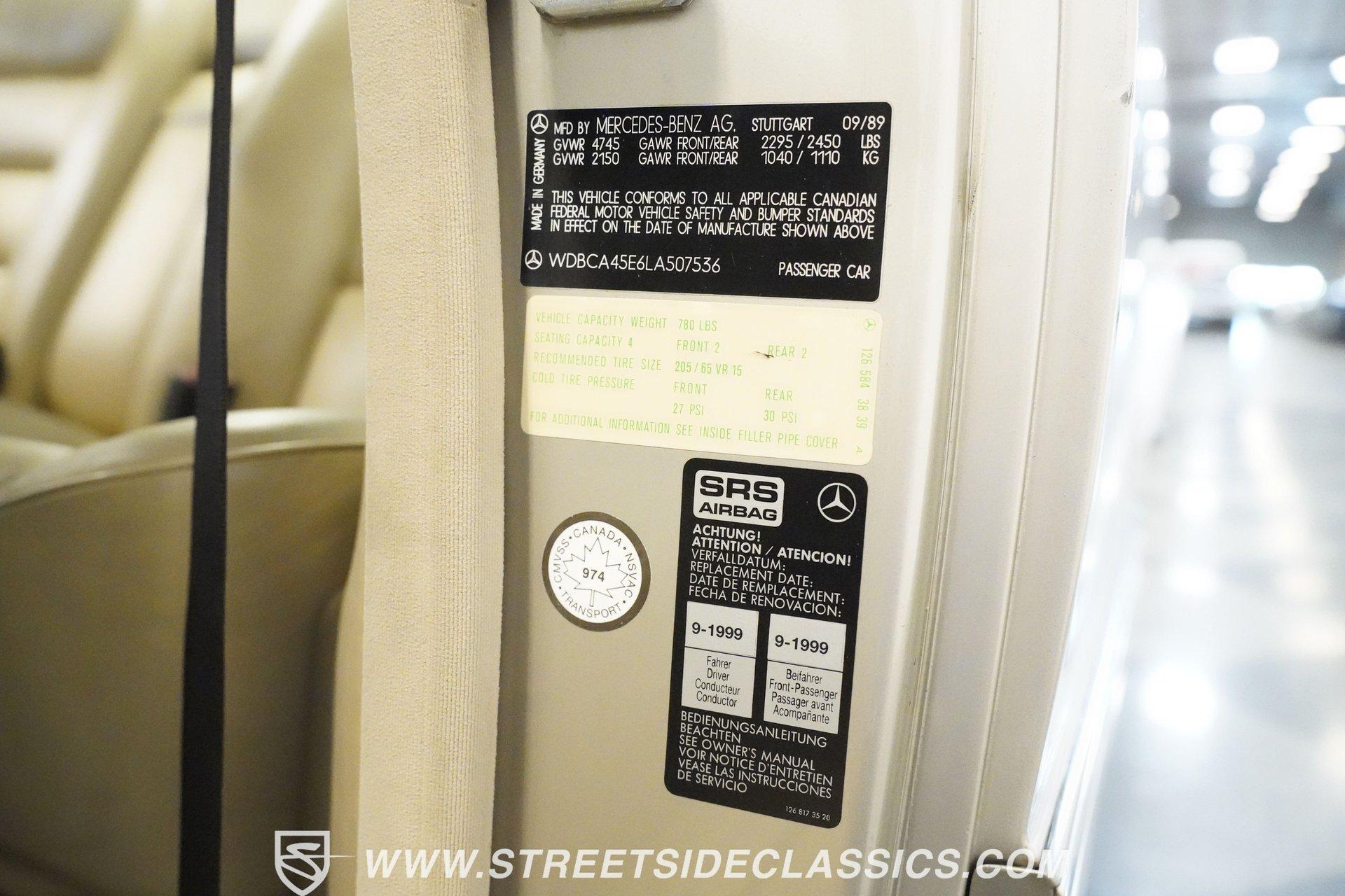 4186-PHX 1990 MERCEDES-BENZ 560SEC Owned for 34 years by a single Vancouver enthusiast, this 1990 Mercedes-Benz 560SEC coupe wears Havana Brown paint with European sophistication. The pillarless coupe design features clean, disciplined lines that showcase classic 80s-era Mercedes aesthetics. Four headlights flank the iconic grille up front while the sleek profile rolls back to a well-proportioned rear end. Factory 15-inch alloy wheels with 205/60R15 Advanta ER-800 tires complete the look of this grand touring machine, giving it the correct stance that made the 560SEC a benchmark among luxury coupes. Tan leather covers the bucket seats in a cabin built for long-distance travel. The floor-mounted shifter and well-laid-out center console put essential controls within easy reach. An AM/FM/AUX stereo with single CD player supplies audio for the miles ahead. The speedometer indicates 229,469 kilometers (approximately 142,600 miles) accumulated during its three decades with the original owner. Power steering makes for light handling while the air conditioning keeps occupants cool regardless of outside temperatures. A 5.6-liter V8 SOHC engine powers this German luxury coupe through a Daimler-Benz W4A028 4-speed automatic transmission. This combination gives the SEC effortless acceleration and cruising ability. Four-wheel power disc brakes provide stopping power when needed. The independent suspension system uses control arms and coil springs on all four corners, balancing comfort with road feel in true Mercedes fashion. A single exhaust system maintains the refined character expected of a top-tier Mercedes-Benz vehicle. HIGHLIGHTS: 5.6L V8 Engine 4-Speed Automatic Transmission (Daimler-Benz W4A028) Electronic Fuel Injection Independent Suspension with Control Arms and Coil Springs Power Disc Brakes Single Exhaust Havana Brown Paint 15" Factory Alloy Wheels 205/60R15 Advanta ER-800 Tires Quad Headlights Tan Interior with Leather Bucket Seats Power Steering Air Conditioning AM/FM/AUX Stereo with Single CD Player Center Console Floor Shifter One Owner for 34 Years Originally Purchased in Vancouver Acquired new in 1990 and maintained for over three decades by its original Vancouver owner, this Mercedes-Benz 560SEC offers authentic German luxury. With V8 power, classic styling, and luxury appointments, this grand touring coupe remains an excellent example of Mercedes engineering. Call today!