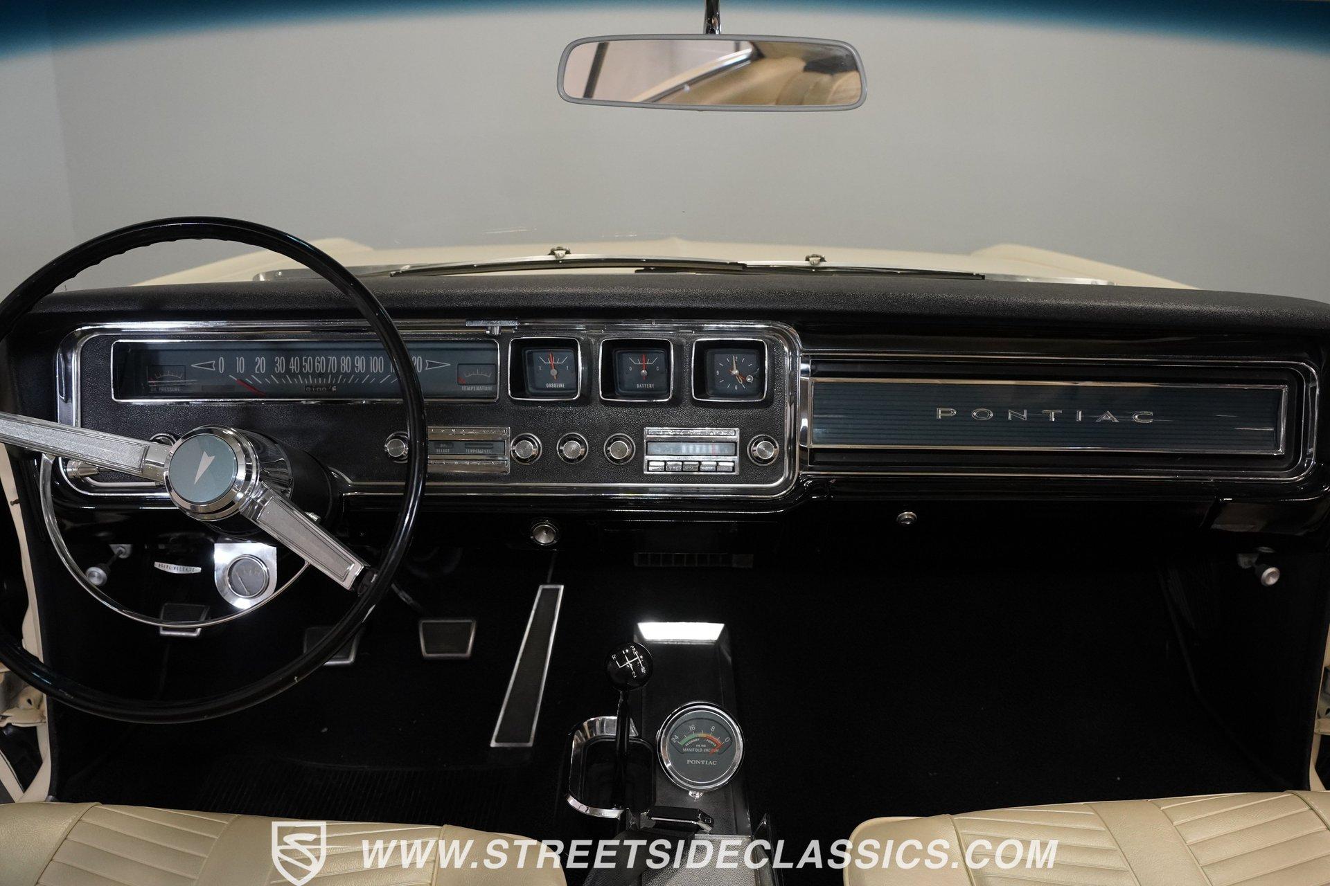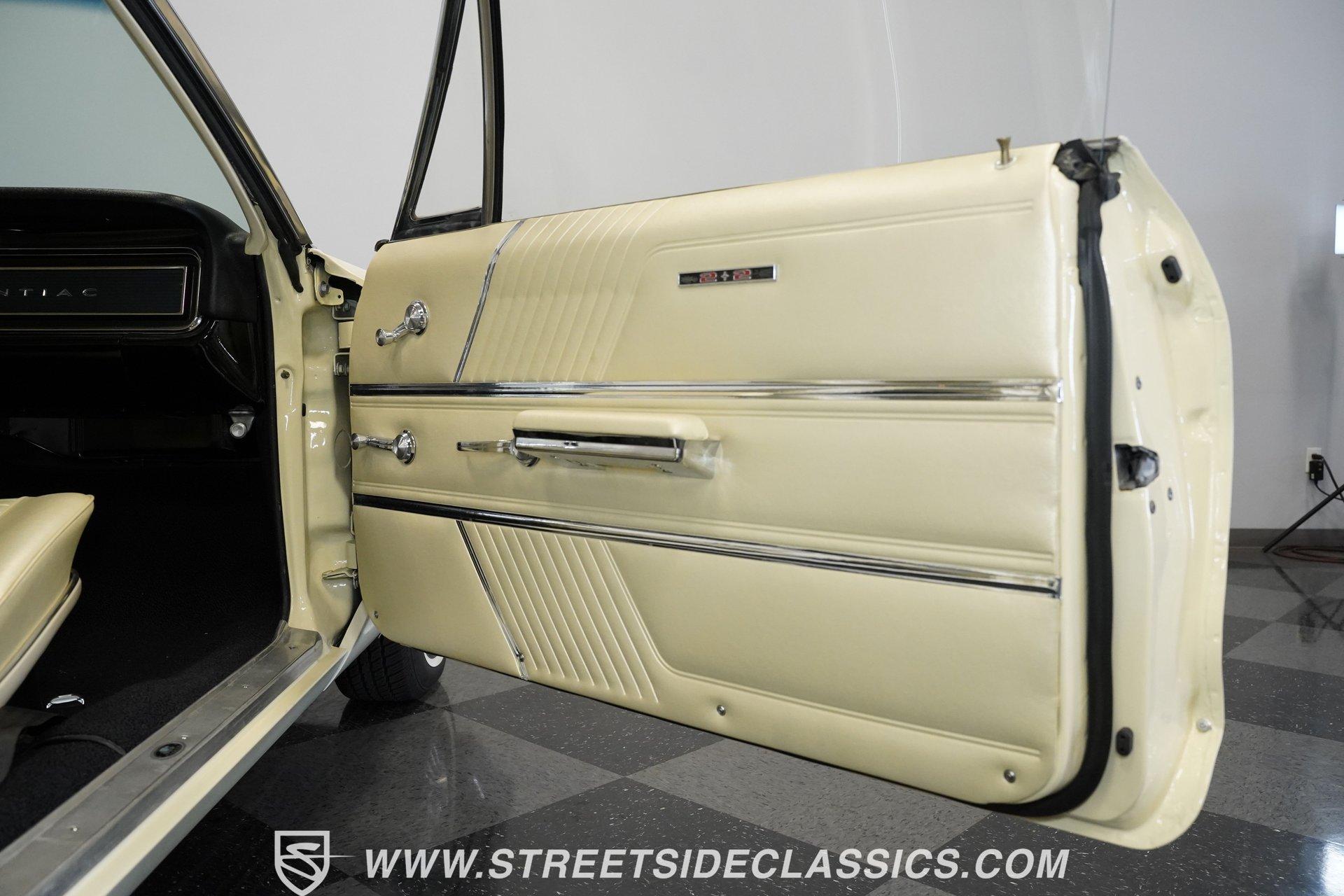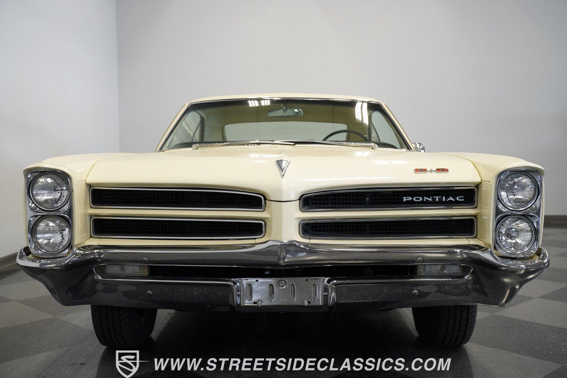 4204-PHX 1966 PONTIAC 2+2 HARDTOP Finished in gorgeous Candlelight Cream, the 1966 Pontiac 2+2 Hardtop stands as a true American muscle icon. Long, low, and wide, the body lines flow smoothly from the distinctive split grille to the sleek rear end. Chrome accents adorn the exterior from bumper to bumper, perfectly contrasting the rich cream paint. The factory 14" steel wheels with original wheel covers complete the look, wrapped in 215/70R14 whitewall tires that roll with authority without sacrificing comfort. All emblems remain crisp and clear, maintaining the authentic Pontiac identity that made these cars so popular. The Champagne vinyl interior offers a perfect balance of luxury and sportiness. Substantial bucket seats flank the center console where the 4-speed shifter sits within easy reach of the driver. The factory vacuum gauge functions correctly, adding both utility and a touch of 60s style. The dash presents all gauges in clear view, while the AM/FM radio provides audio entertainment for those long drives. Every aspect of the interior shows careful attention to detail, from the door panels to the headliner, creating an authentic environment that takes you back to 1966. A formidable 421 V8 engine with triple dual-carb setup provides impressive acceleration and top-end speed. The Muncie 4-speed manual transmission shifts with precision through each gear, while power steering makes maneuvering this full-size coupe surprisingly easy. Power brakes bring everything to a controlled stop. The dual exhaust system with aftermarket mufflers produces a deep, rich sound that announces your arrival without being excessive. The independent front suspension and solid rear axle with factory trailing arms create a balance of comfort and handling that works well on today's roads. HIGHLIGHTS: 421 V8 Engine Triple Dual-Carb Manifold Setup Muncie 4-Speed Manual Transmission Power Drum Brakes 10-Bolt Rear Axle Dual Exhaust with Aftermarket Mufflers Independent Front Suspension with Control Arms and Coil Springs Solid Rear Axle with Factory Trailing Arms, Springs and Shocks Candlelight Cream Exterior 14" Steel Wheels with Wheel Covers 215/70R14 Whitewall Tires Chrome Bumpers and Trim Champagne Interior with Bucket Seats Center Console with Vacuum Gauge AM/FM Radio Power Steering Some Original Parts Included Car Cover Included Spare Trim Included Fully Restored in 2017 This 1966 Pontiac 2+2 Hardtop combines authentic 60s style with genuine muscle car performance. With its 421 V8 triple-carb setup, manual transmission, and full restoration completed in 2017, this classic Pontiac makes an impression wherever it goes. Call today!