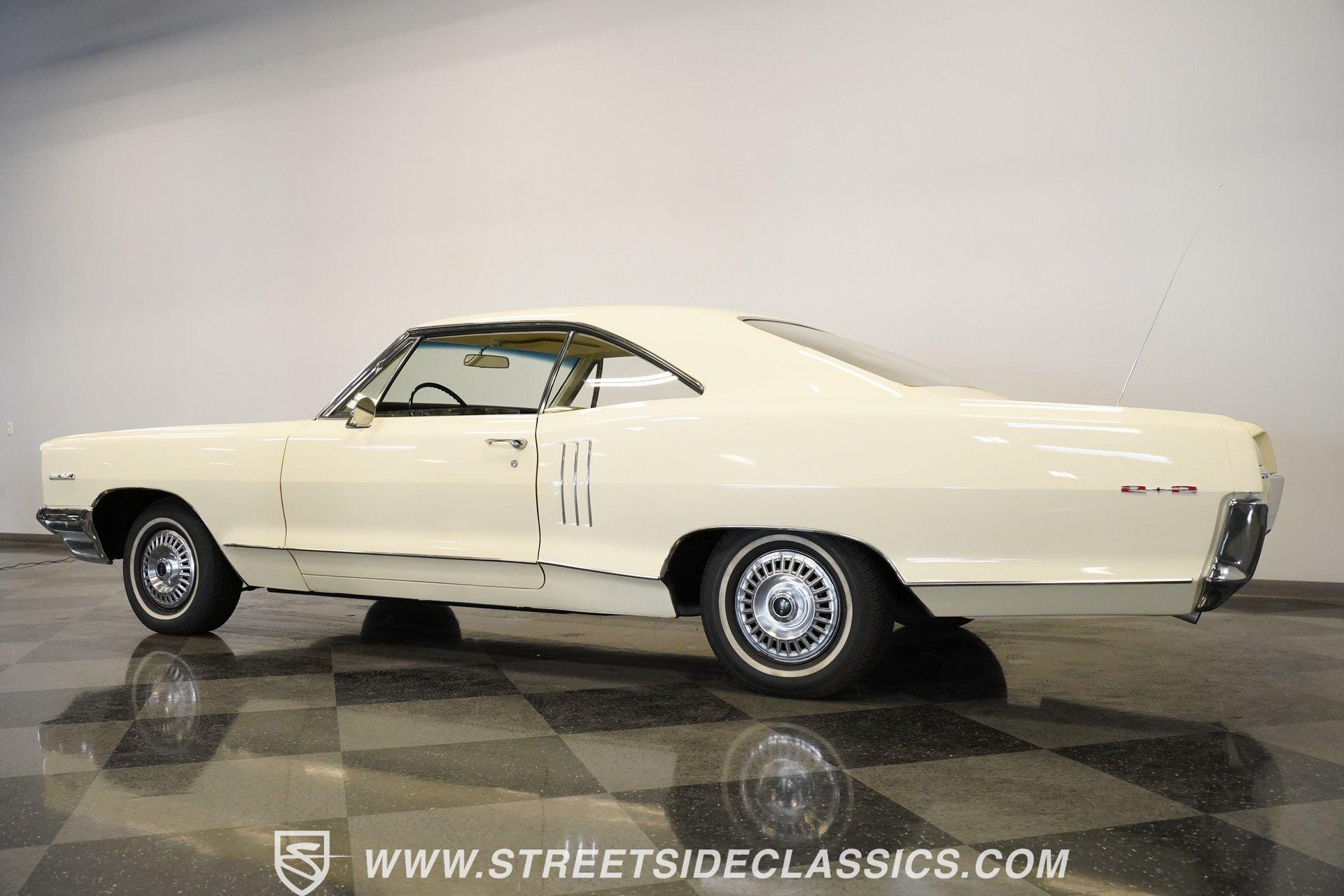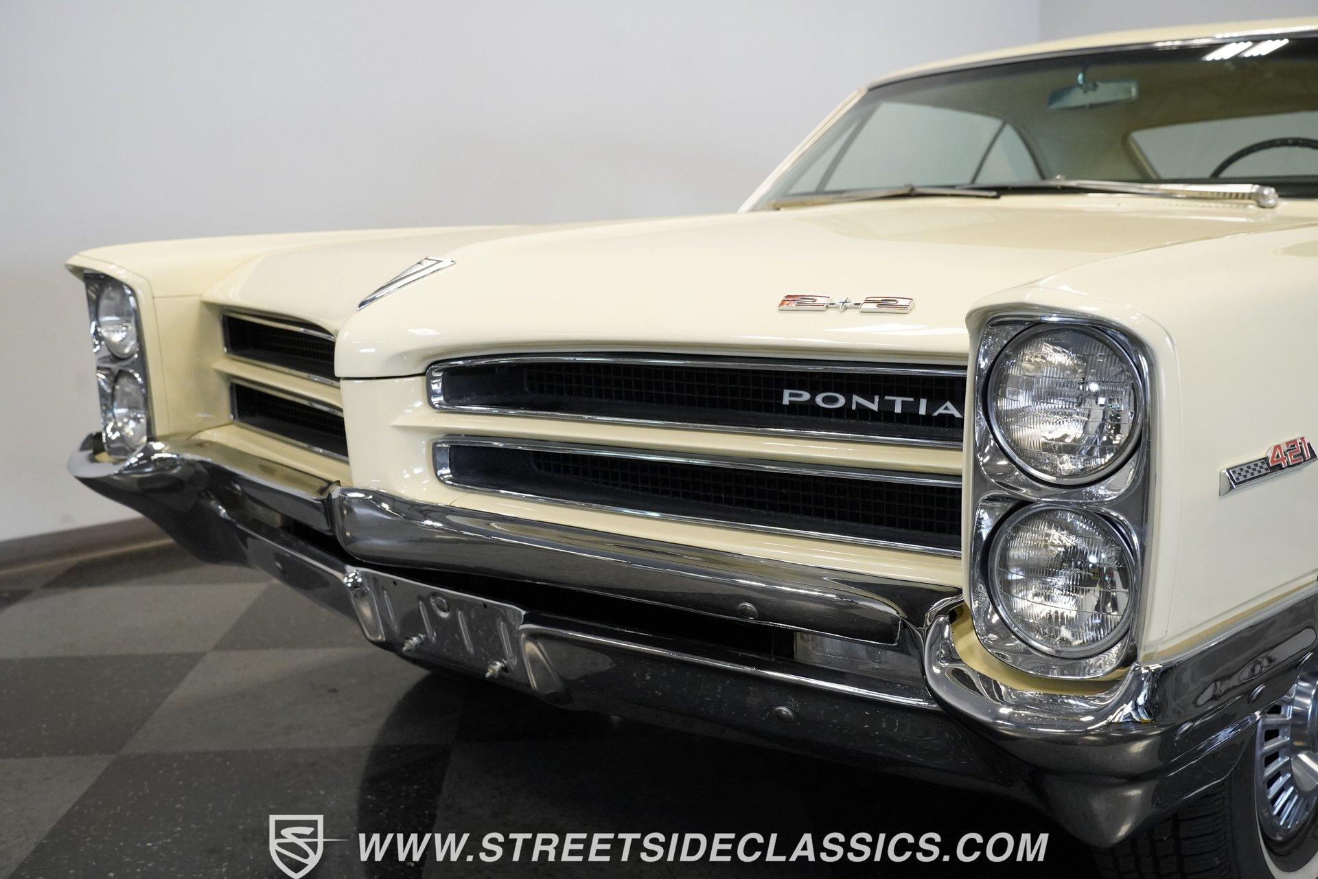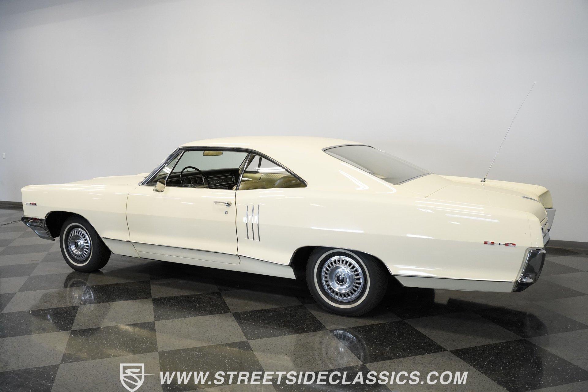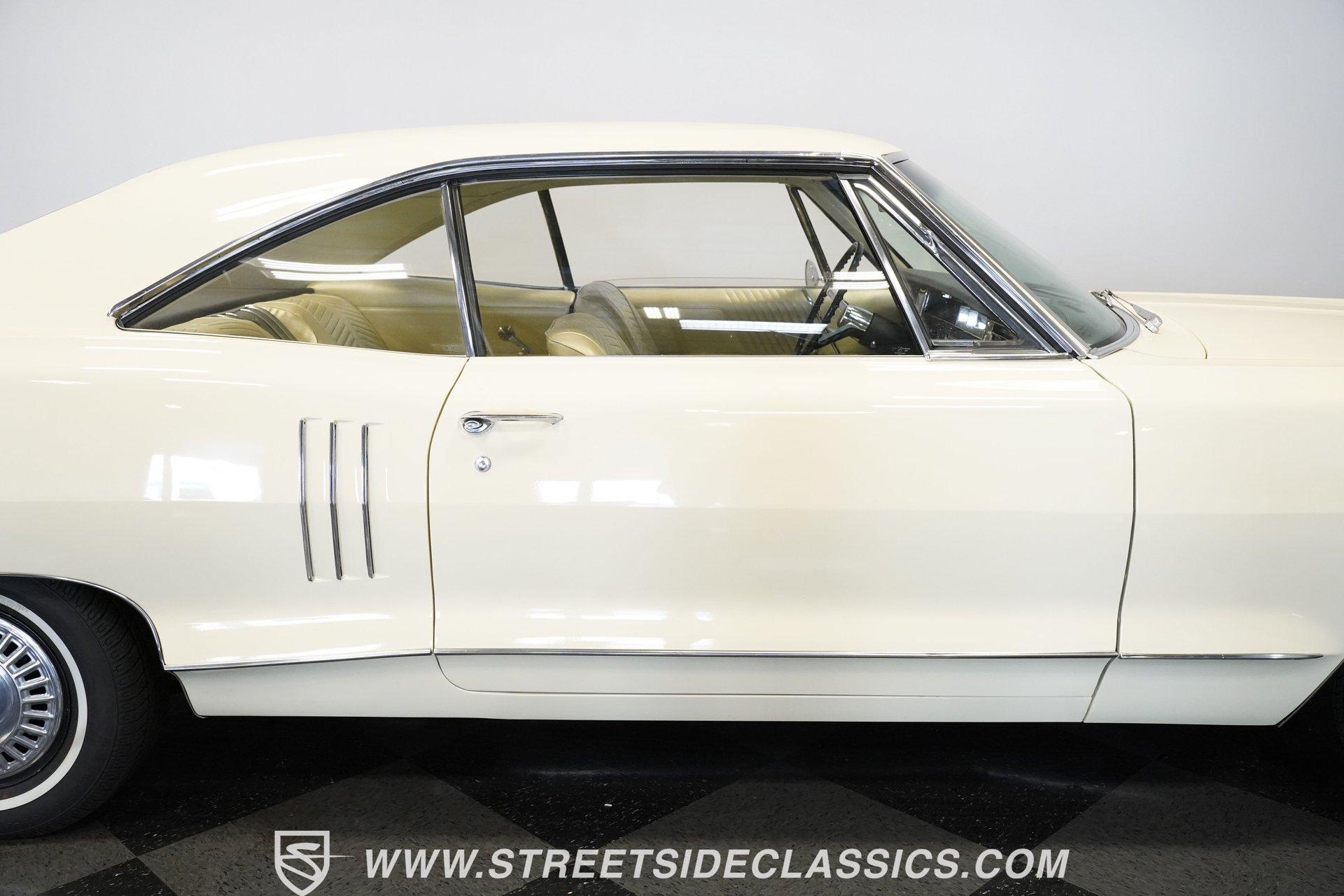 4204-PHX 1966 PONTIAC 2+2 HARDTOP Finished in gorgeous Candlelight Cream, the 1966 Pontiac 2+2 Hardtop stands as a true American muscle icon. Long, low, and wide, the body lines flow smoothly from the distinctive split grille to the sleek rear end. Chrome accents adorn the exterior from bumper to bumper, perfectly contrasting the rich cream paint. The factory 14" steel wheels with original wheel covers complete the look, wrapped in 215/70R14 whitewall tires that roll with authority without sacrificing comfort. All emblems remain crisp and clear, maintaining the authentic Pontiac identity that made these cars so popular. The Champagne vinyl interior offers a perfect balance of luxury and sportiness. Substantial bucket seats flank the center console where the 4-speed shifter sits within easy reach of the driver. The factory vacuum gauge functions correctly, adding both utility and a touch of 60s style. The dash presents all gauges in clear view, while the AM/FM radio provides audio entertainment for those long drives. Every aspect of the interior shows careful attention to detail, from the door panels to the headliner, creating an authentic environment that takes you back to 1966. A formidable 421 V8 engine with triple dual-carb setup provides impressive acceleration and top-end speed. The Muncie 4-speed manual transmission shifts with precision through each gear, while power steering makes maneuvering this full-size coupe surprisingly easy. Power brakes bring everything to a controlled stop. The dual exhaust system with aftermarket mufflers produces a deep, rich sound that announces your arrival without being excessive. The independent front suspension and solid rear axle with factory trailing arms create a balance of comfort and handling that works well on today's roads. HIGHLIGHTS: 421 V8 Engine Triple Dual-Carb Manifold Setup Muncie 4-Speed Manual Transmission Power Drum Brakes 10-Bolt Rear Axle Dual Exhaust with Aftermarket Mufflers Independent Front Suspension with Control Arms and Coil Springs Solid Rear Axle with Factory Trailing Arms, Springs and Shocks Candlelight Cream Exterior 14" Steel Wheels with Wheel Covers 215/70R14 Whitewall Tires Chrome Bumpers and Trim Champagne Interior with Bucket Seats Center Console with Vacuum Gauge AM/FM Radio Power Steering Some Original Parts Included Car Cover Included Spare Trim Included Fully Restored in 2017 This 1966 Pontiac 2+2 Hardtop combines authentic 60s style with genuine muscle car performance. With its 421 V8 triple-carb setup, manual transmission, and full restoration completed in 2017, this classic Pontiac makes an impression wherever it goes. Call today!
