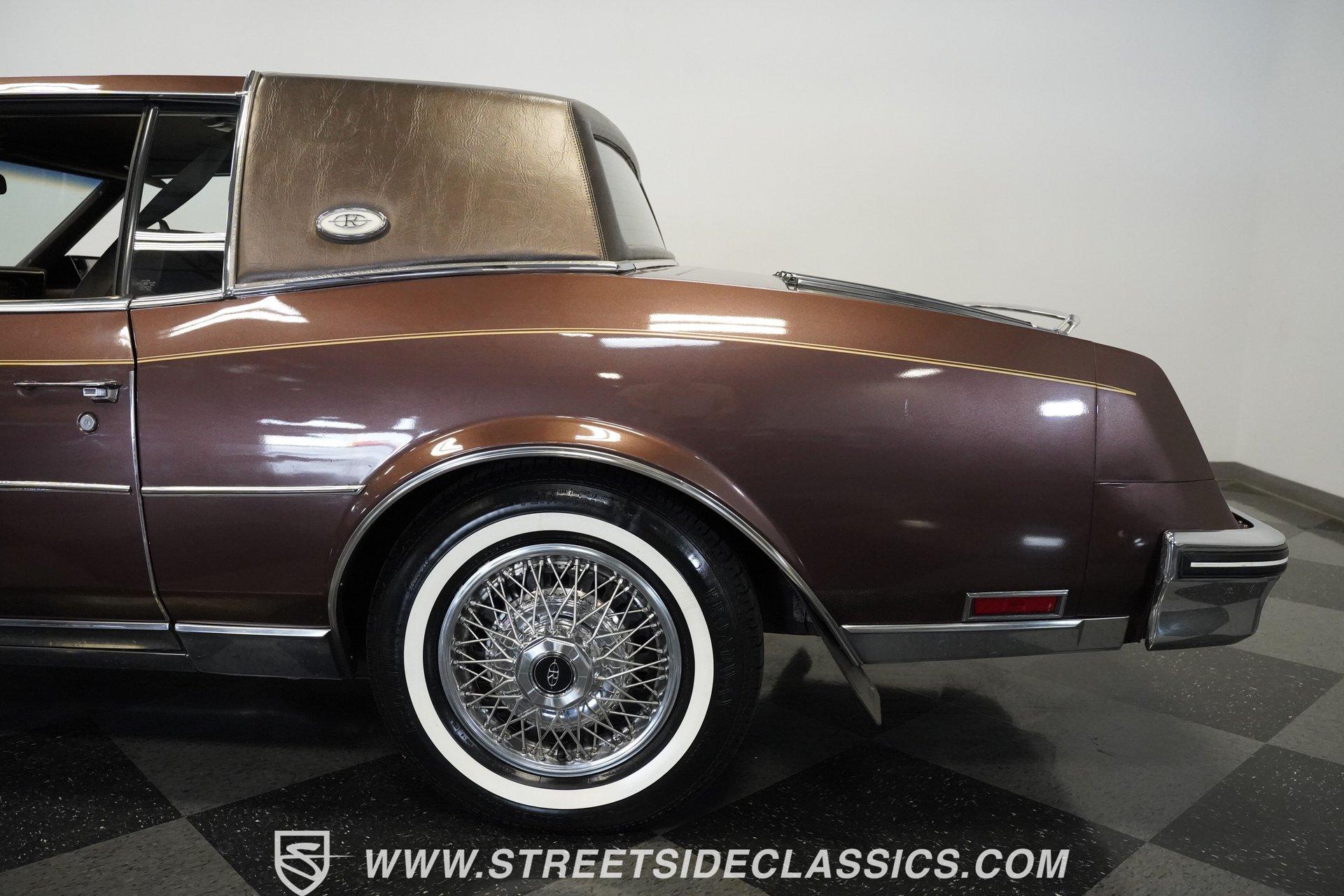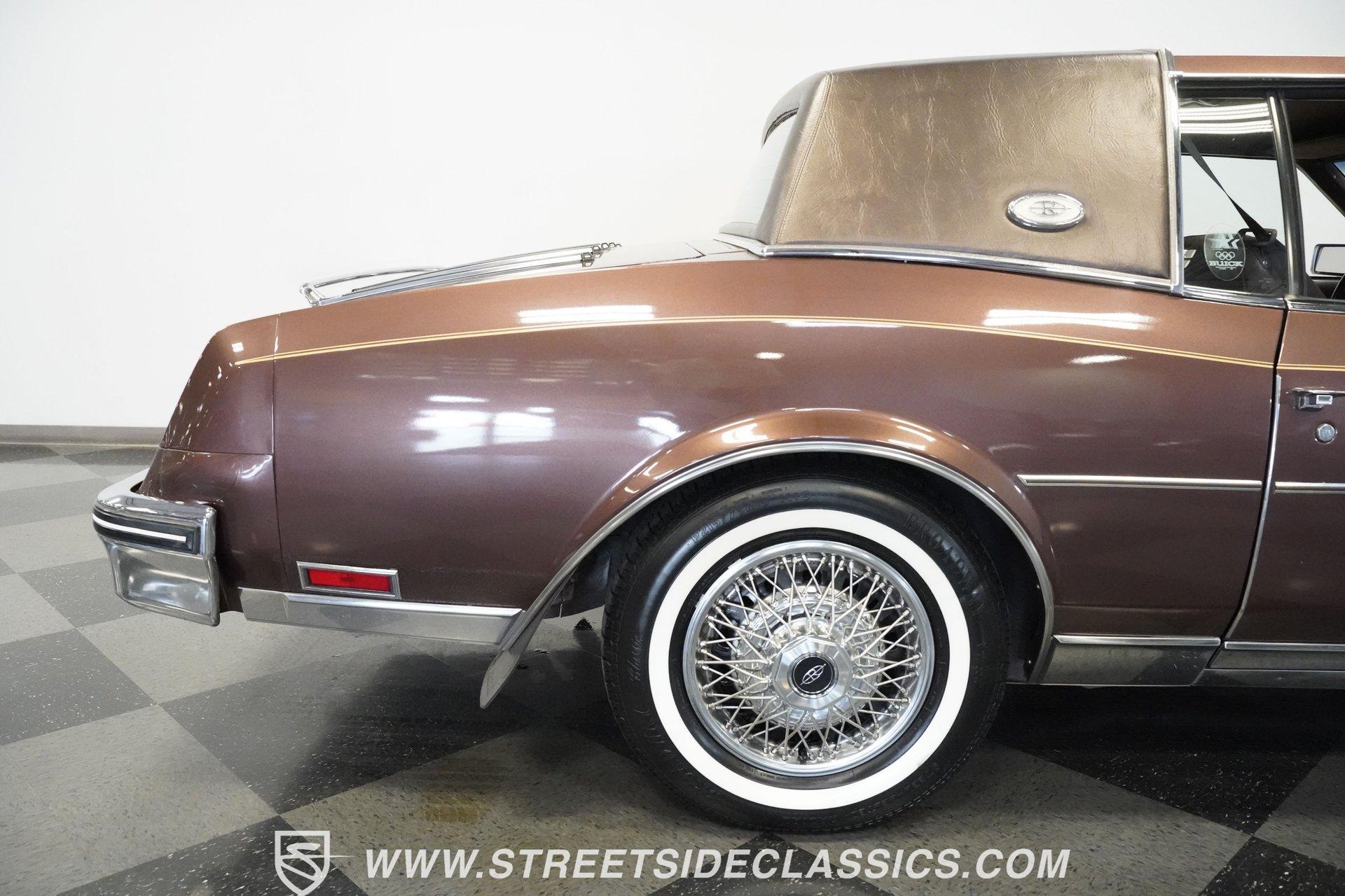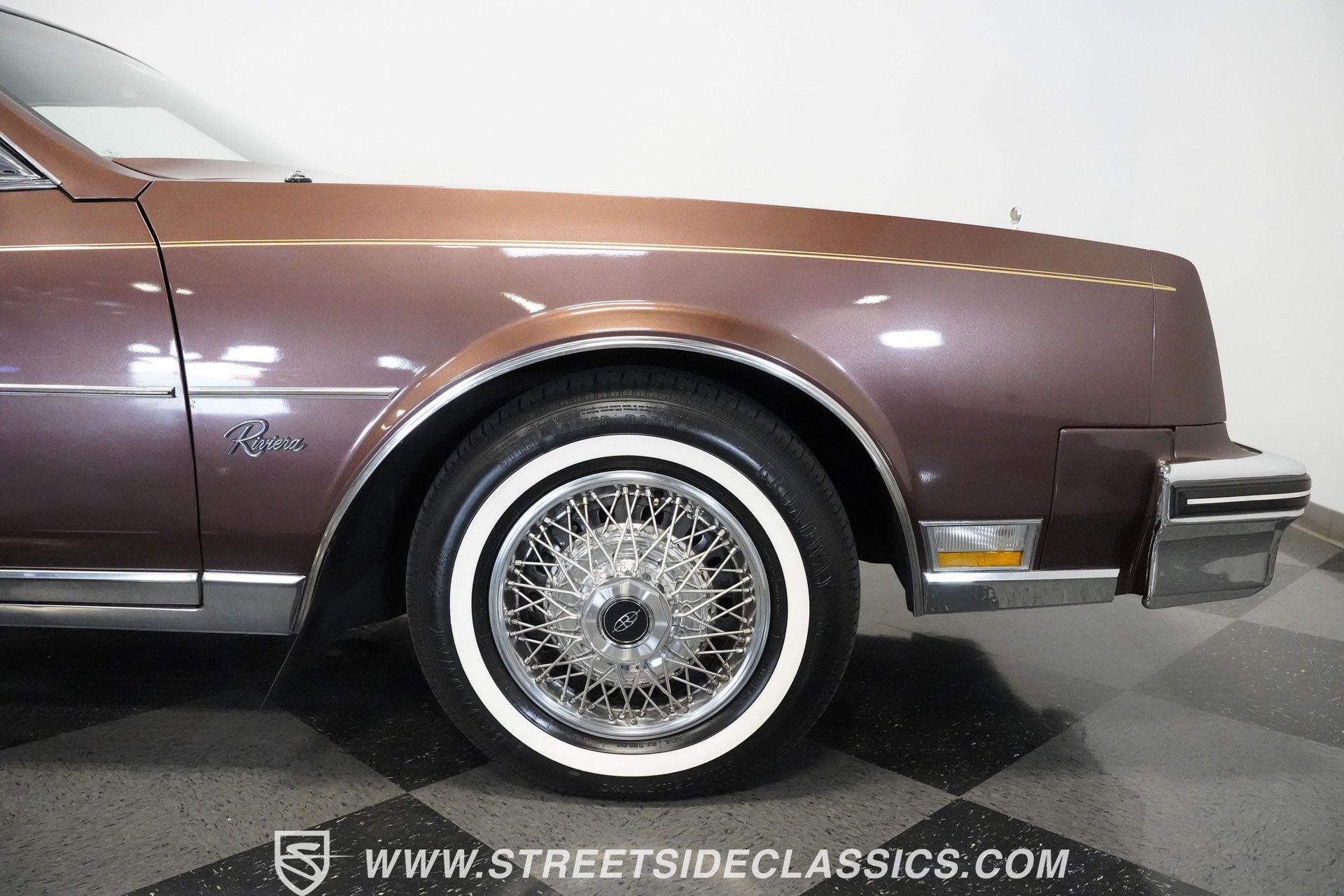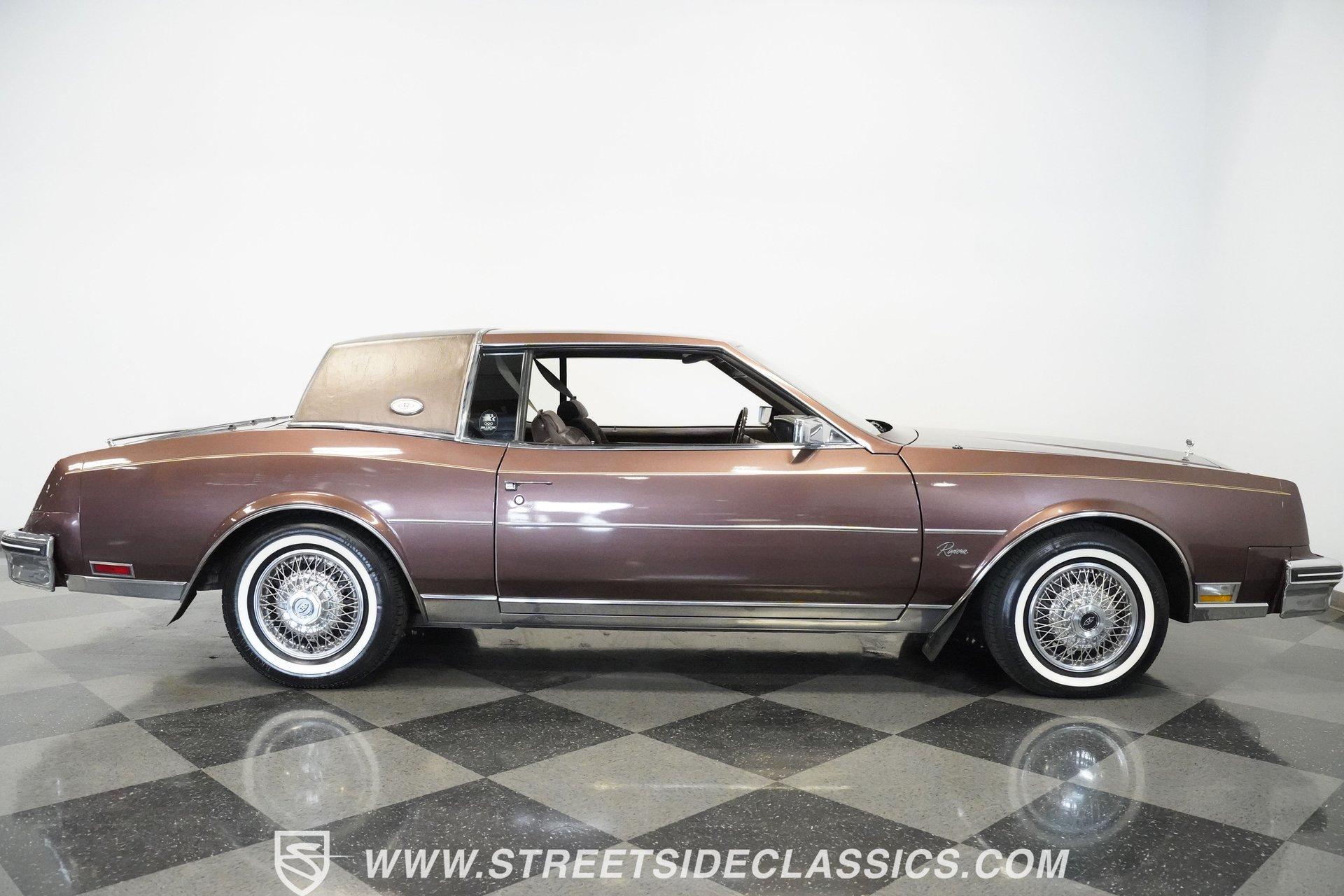 Finished in brown with a matching brown vinyl top, this 1983 Buick Riviera carries its factory styling with clean proportions and crisp detailing. Chrome trim outlines the grille, bumpers, and window surrounds, tying the look together without distraction. It sits on 15-inch steel wheels with wire wheel covers, wrapped in 215/75R15 whitewall tires that complete the original appearance. Every line stays true to the Riviera's design language-confident, composed, and unmistakably Buick. Luxury awaits inside with brown velour bucket seats that offer generous support for long drives. The dashboard puts controls within easy reach, featuring clear gauges that monitor vital functions. Amenities abound with power windows, locks, and seats that adjust at the touch of a button. A center console provides storage while the column shifter keeps the cabin uncluttered. The AM/FM cassette player delivers your favorite tunes, while air conditioning keeps temperatures perfect regardless of weather. Additional convenience features include cruise control for highway driving and defrost systems for both front and rear windows. Performance comes from a 307 cubic inch V8 engine that sends power through a 4-speed automatic transmission. This front-wheel-drive layout was innovative for American V8 luxury coupes in the early 80s, creating excellent traction in various conditions. A single 4-barrel carburetor manages fuel delivery with good throttle response. The independent suspension with torsion bars up front absorbs road imperfections, maintaining stability through corners while delivering a smooth ride. Power steering makes directional changes effortless, while power disc brakes provide confident stopping power when needed. HIGHLIGHTS: 307 V8 Engine 4 Speed Automatic Transmission Front-Wheel Drive Independent Suspension with Torsion Bars 4 Barrel Carburetor Power Disc Brakes Single Exhaust Brown Paint Brown Vinyl Top 15" Steel Wheels with Wire Wheel Covers 215/75R15 Tires Brown Interior with Power Bucket Seats Power Windows Power Locks Center Console Column Shifter Air Conditioning Cruise Control Tilt Wheel AM/FM Cassette Player Combining classic American V8 power with forward-thinking front-wheel-drive engineering, this 1983 Buick Riviera represents a fascinating evolution in domestic luxury cars. With its comfortable interior, distinctive styling, and smooth driving characteristics, this Riviera delivers genuine Buick luxury. Call today!
