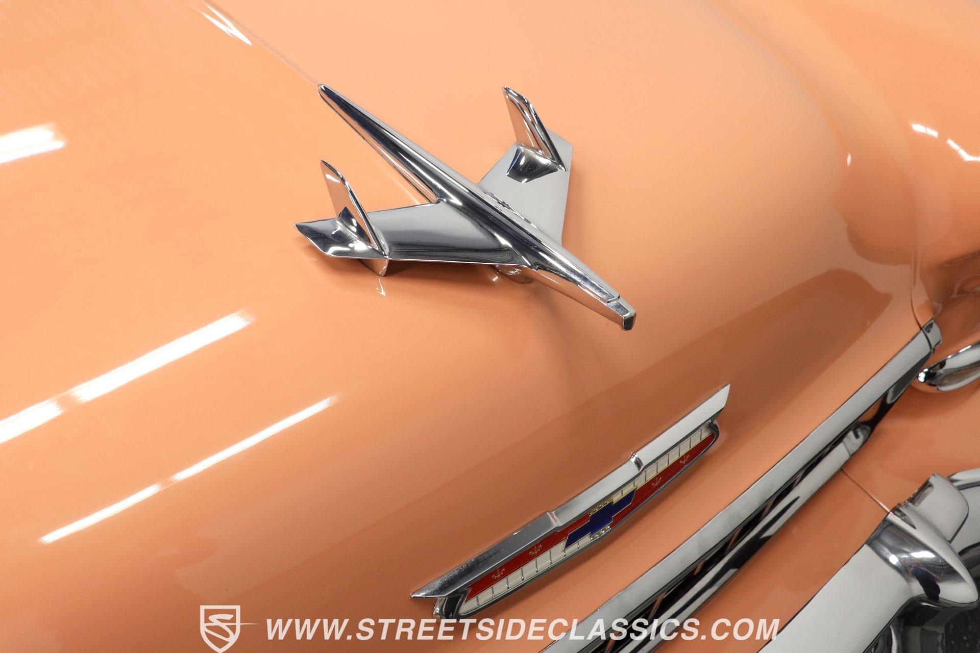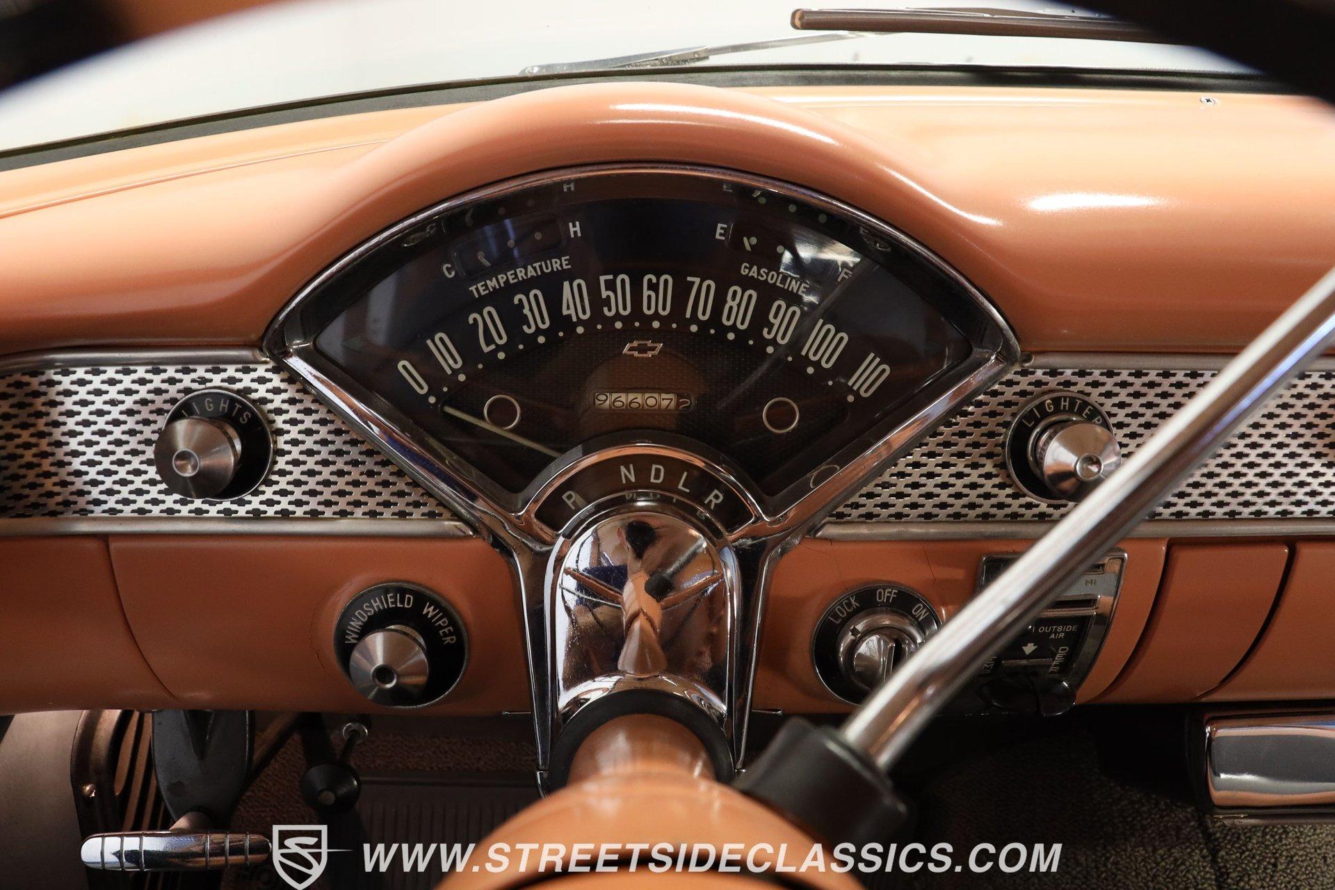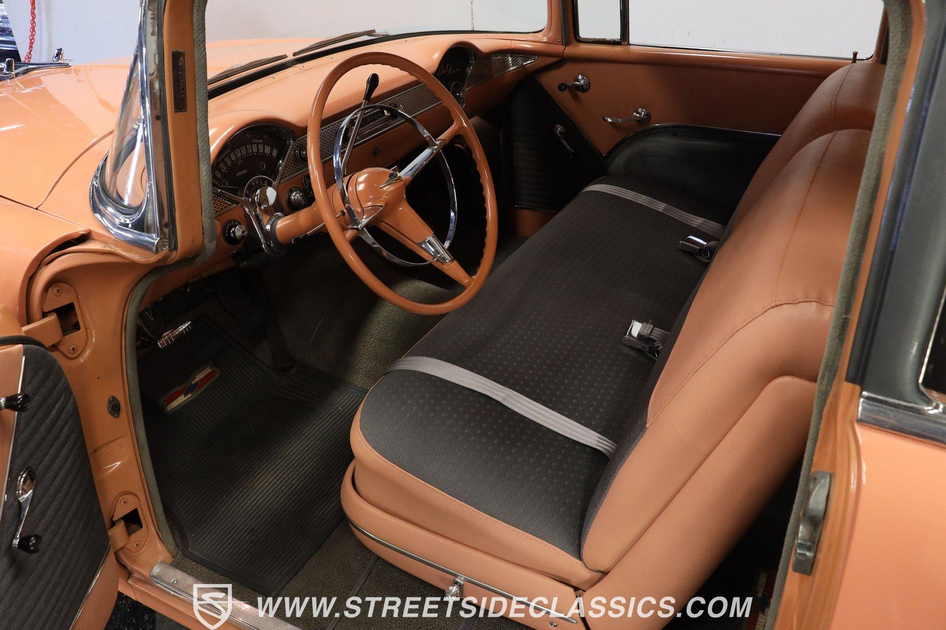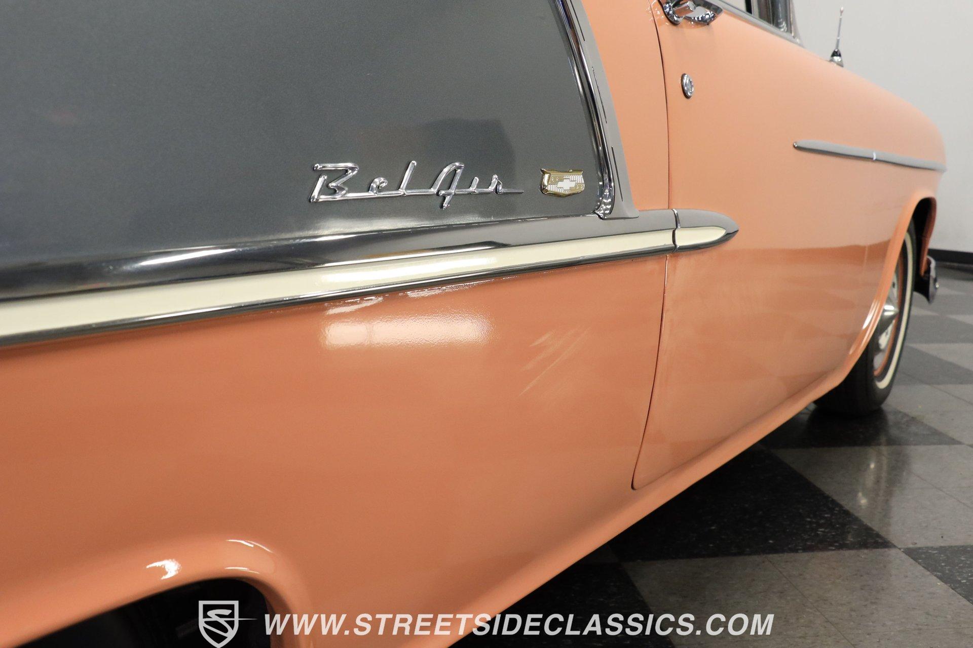 The 1955 Chevrolet was one of the most popular cars of the 1950's when new and it is equally as popular today. One look at this beautiful 1955 Chevrolet Bel Air two-door sedan and it is easy to see why. This is a very early production car built on October 5th, 1954. Finished attractively in two-toned factory colors Coral and Shadow Gray, this Bel Air has been tastefully upgraded in just the right places. With its glossy paint finish, accessory front bumper guard, back up lights, bow-tie shaped chrome exhaust tip and whitewall radial tires, this top-of-the-line trim level Bel Air is full of 1950's flair and character. Inside, the upholstery is restored to original specifications with a comfortable two-tone pattern that matches the exterior paint scheme. The interior features a factory wonderbar radio, optional heater/defroster, electric wipers, seat belts, an AM/FM/cassette player hidden in the below-dash mounted tissue dispenser, plus a removable center armrest console with cup holders. HIGHLIGHTS: Early Production Car Built in October of 1954 265 Cubic Inch Engine Powerglide Transmission Power Steering Upgraded Front Disc Brakes Attractive Factory Color Scheme of Coral and Shadow Gray Factory Wonderbar Radio Additional Hidden AM/FM Stereo Radio Factory Front Grill Guard Factory Optional Electric Wipers Removable Center Armrest Console with Cup Holders Under the hood the correct 265 cubic inch V8 engine and 2-speed Powerglide transmission has been preserved and runs smoothly. The bay appears mostly stock and features power steering. This classic Bel Air drives exceptionally well thanks to upgraded front disc brakes with dual master cylinder that combine to deliver a comfortable and confidant driving experience. Thoughtfully upgraded to enhance comfort and drivability, this classic 1955 Chevrolet Bel Air is ready to enjoy. Call today! We can assist you with getting an Extended Vehicle Service Plan from Freedom Warranty, which provides comprehensive coverage that can save thousands of dollars on unexpected repairs. Inquire for more details and pricing!