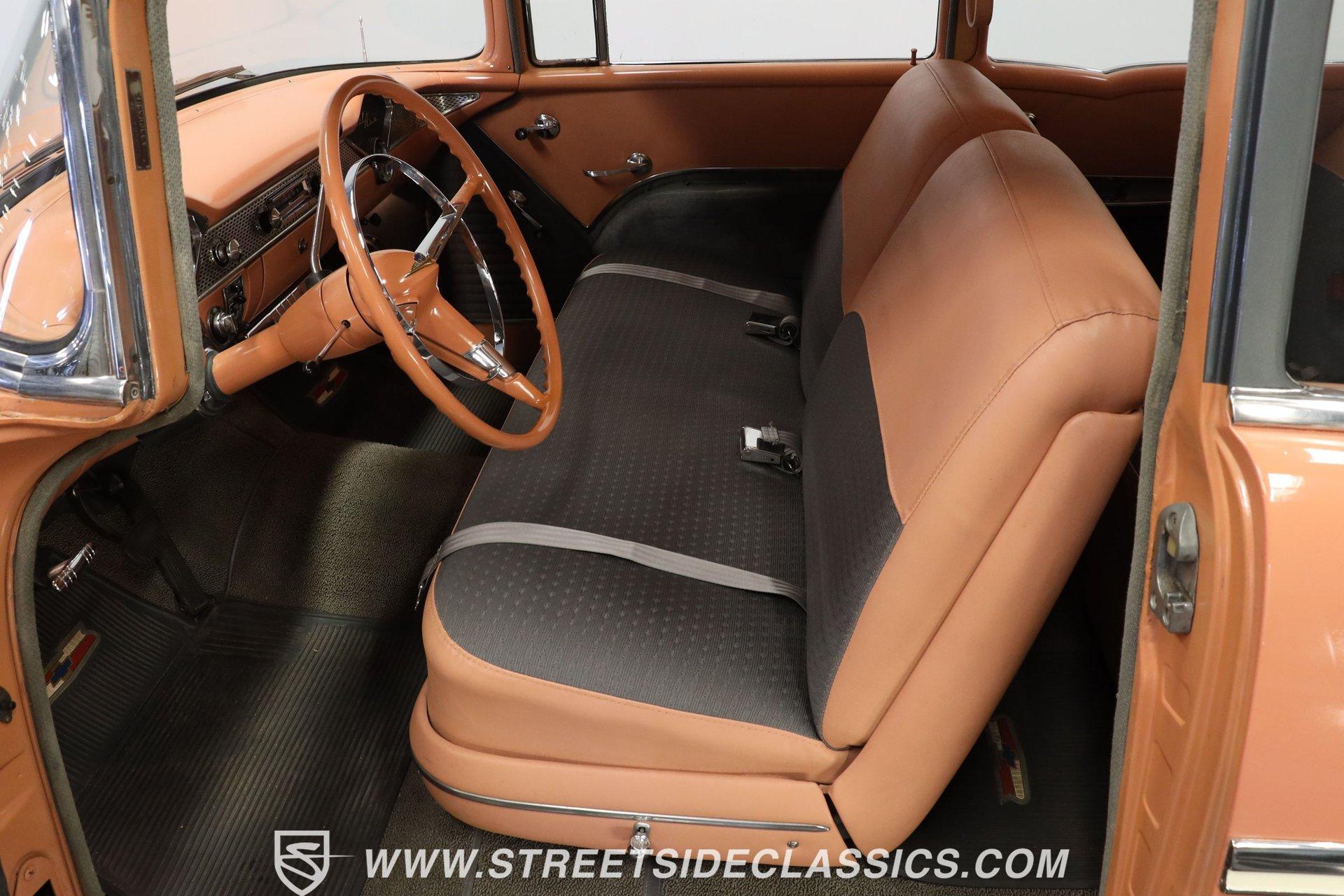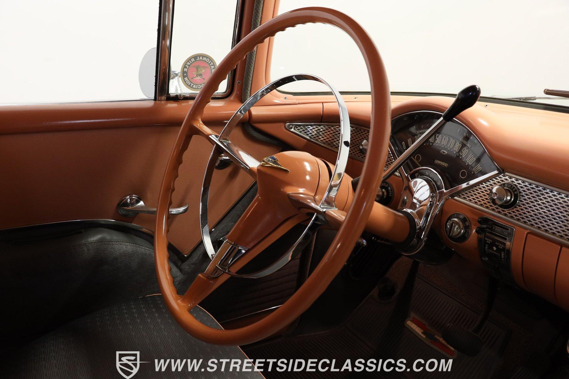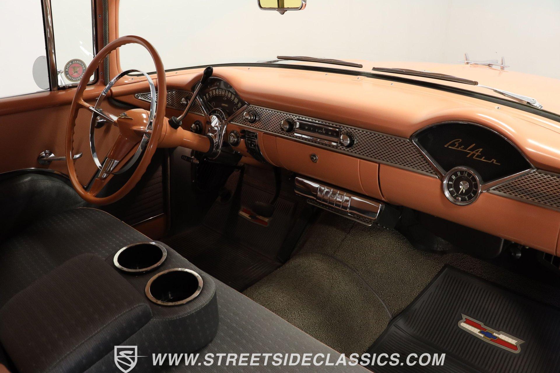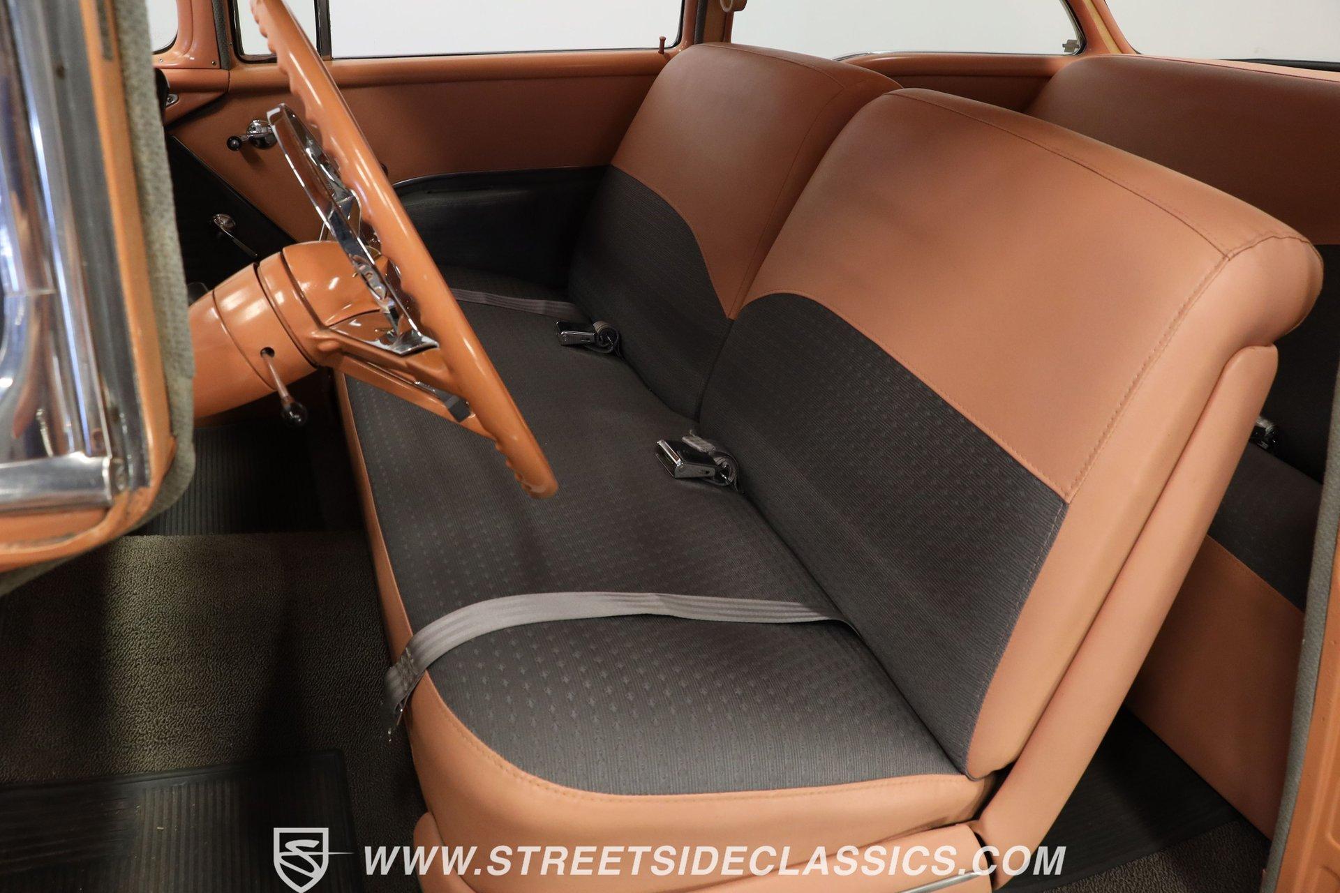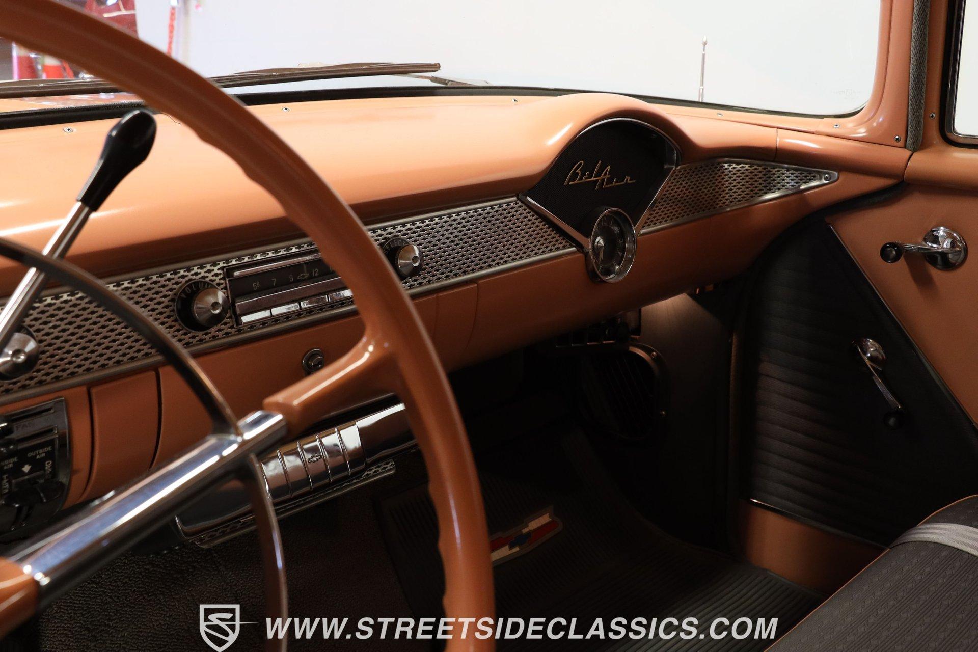 The 1955 Chevrolet was one of the most popular cars of the 1950's when new and it is equally as popular today. One look at this beautiful 1955 Chevrolet Bel Air two-door sedan and it is easy to see why. This is a very early production car built on October 5th, 1954. Finished attractively in two-toned factory colors Coral and Shadow Gray, this Bel Air has been tastefully upgraded in just the right places. With its glossy paint finish, accessory front bumper guard, back up lights, bow-tie shaped chrome exhaust tip and whitewall radial tires, this top-of-the-line trim level Bel Air is full of 1950's flair and character. Inside, the upholstery is restored to original specifications with a comfortable two-tone pattern that matches the exterior paint scheme. The interior features a factory wonderbar radio, optional heater/defroster, electric wipers, seat belts, an AM/FM/cassette player hidden in the below-dash mounted tissue dispenser, plus a removable center armrest console with cup holders. HIGHLIGHTS: Early Production Car Built in October of 1954 265 Cubic Inch Engine Powerglide Transmission Power Steering Upgraded Front Disc Brakes Attractive Factory Color Scheme of Coral and Shadow Gray Factory Wonderbar Radio Additional Hidden AM/FM Stereo Radio Factory Front Grill Guard Factory Optional Electric Wipers Removable Center Armrest Console with Cup Holders Under the hood the correct 265 cubic inch V8 engine and 2-speed Powerglide transmission has been preserved and runs smoothly. The bay appears mostly stock and features power steering. This classic Bel Air drives exceptionally well thanks to upgraded front disc brakes with dual master cylinder that combine to deliver a comfortable and confidant driving experience. Thoughtfully upgraded to enhance comfort and drivability, this classic 1955 Chevrolet Bel Air is ready to enjoy. Call today! We can assist you with getting an Extended Vehicle Service Plan from Freedom Warranty, which provides comprehensive coverage that can save thousands of dollars on unexpected repairs. Inquire for more details and pricing!