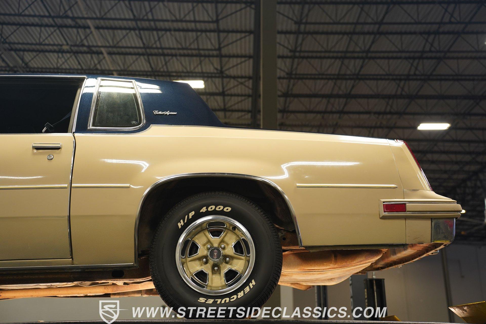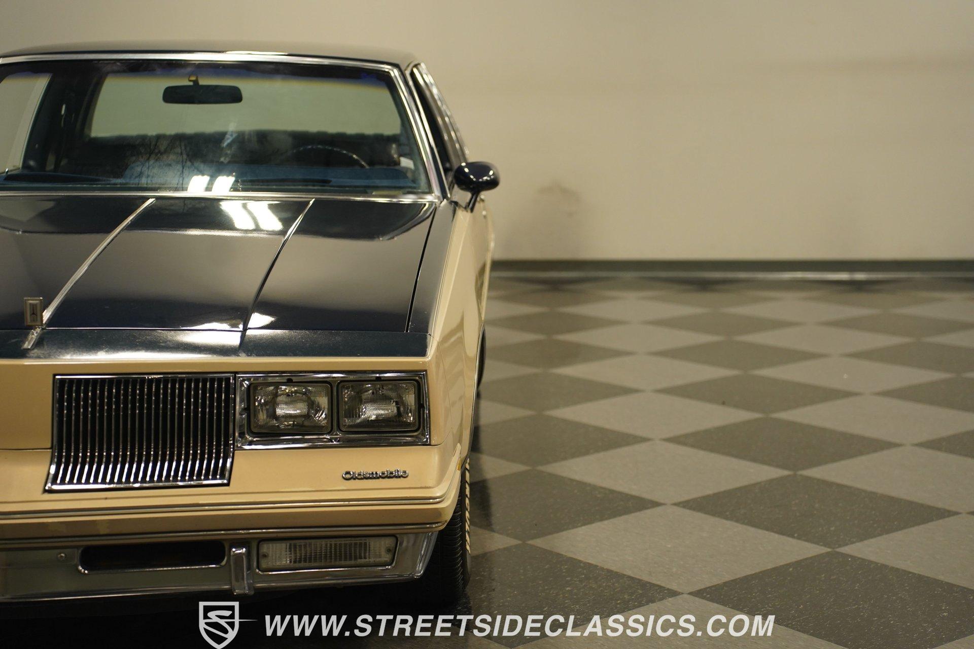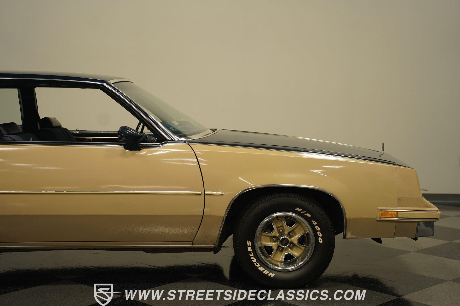 An authentic American G-body - this 1981 Oldsmobile Cutlass wears a dual-tone blue and tan color combination that perfectly fits the era. The two-door body shape offers classic 80s styling with clean lines and just the right proportions. Dual stripes add extra visual appeal to the exterior design. The 14" factory wheels with P225/70R14 tires round out the genuine look of this Cutlass. Fresh paint on the hood, roof, and trunk lid gives additional visual depth to this true GM classic. Blue cloth interior gives off that perfect 80s GM feel with plenty of comfort. The bench seat offers generous room in typical American fashion. Column-mounted shifter maintains an open floor area while giving that authentic GM driving position. The factory AM/FM cassette stereo is ready for your favorite tunes. Blue dashboard and door panels complete the interior color scheme. The layout follows the classic GM design that made these Cutlass models so popular during their production run. The 4.3L V8 engine offers solid performance for this classic Cutlass. Paired with a TH350 3-speed automatic transmission, acceleration is smooth and direct. Recent work including valve seal replacement keeps this V8 running strong. Coil springs with shocks on all four corners give a classic American car ride quality. Power front disc brakes provide solid stopping ability. The dual to single exhaust with factory muffler produces a proper V8 sound without being too loud. HIGHLIGHTS: 4.3L V8 Engine 3-Speed Automatic Transmission TH350 Transmission Power Front Disc Brakes 10-Bolt Rear Axle Dual to Single Exhaust Factory Muffler Recent Valve Seal Replacement Blue and Tan Exterior 14" Wheels P225/70R14 Tires Dual Stripes Blue Interior with Bench Seat Column Shifter AM/FM Cassette Player Power Steering Found in limited numbers today, this 1981 Oldsmobile Cutlass offers GM's popular 4.3L V8 power and comfortable blue interior. The blue and tan color combination gives this Cutlass an authentic 80s look that many fans of the era appreciate. Call today!