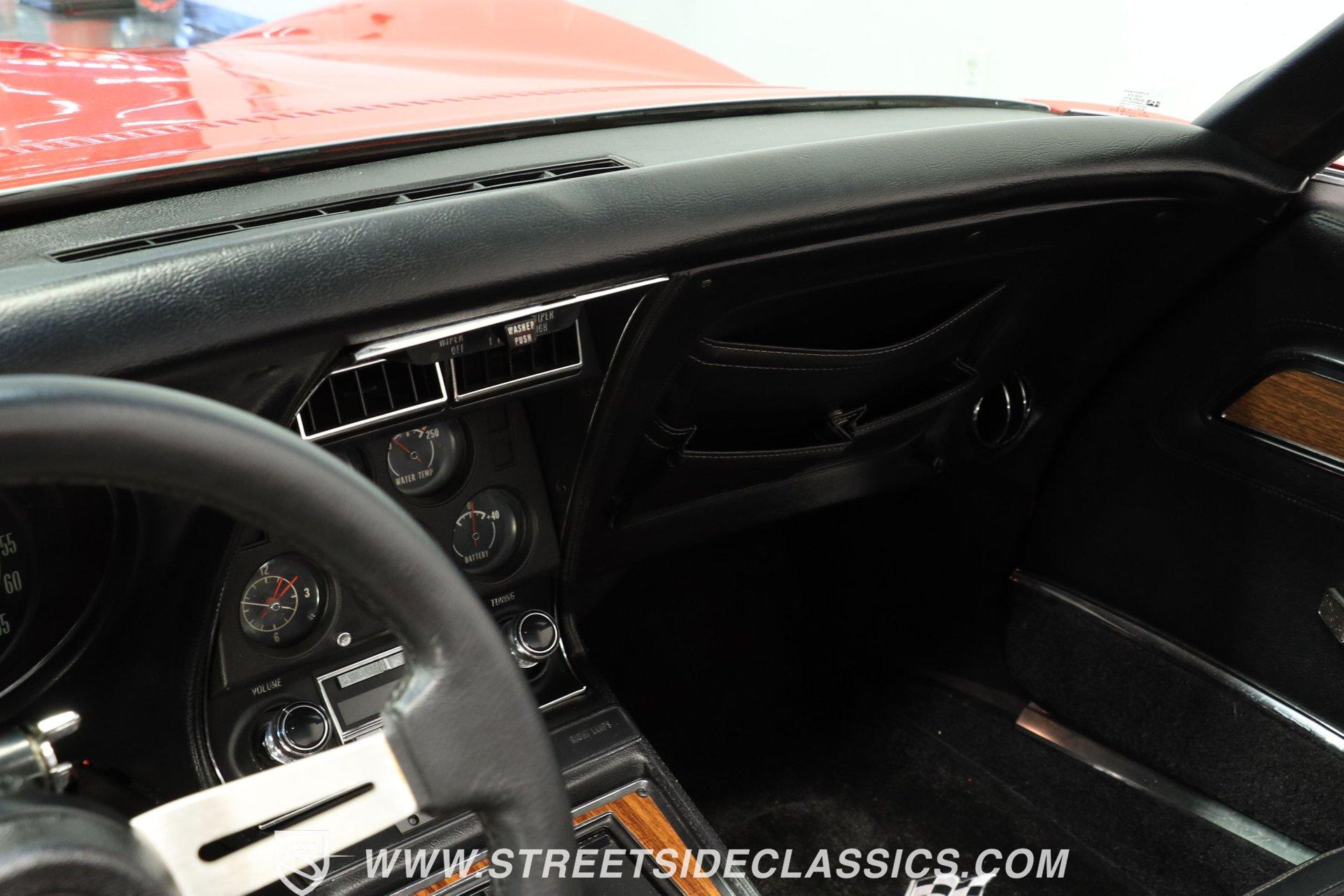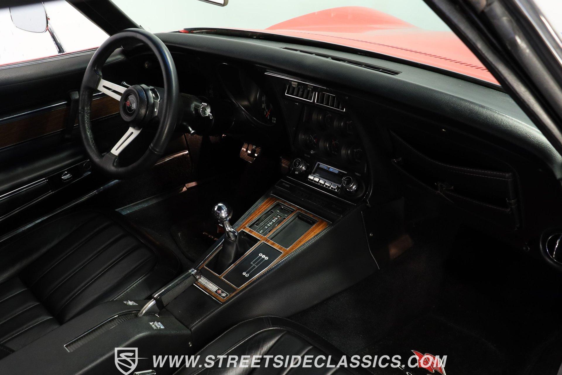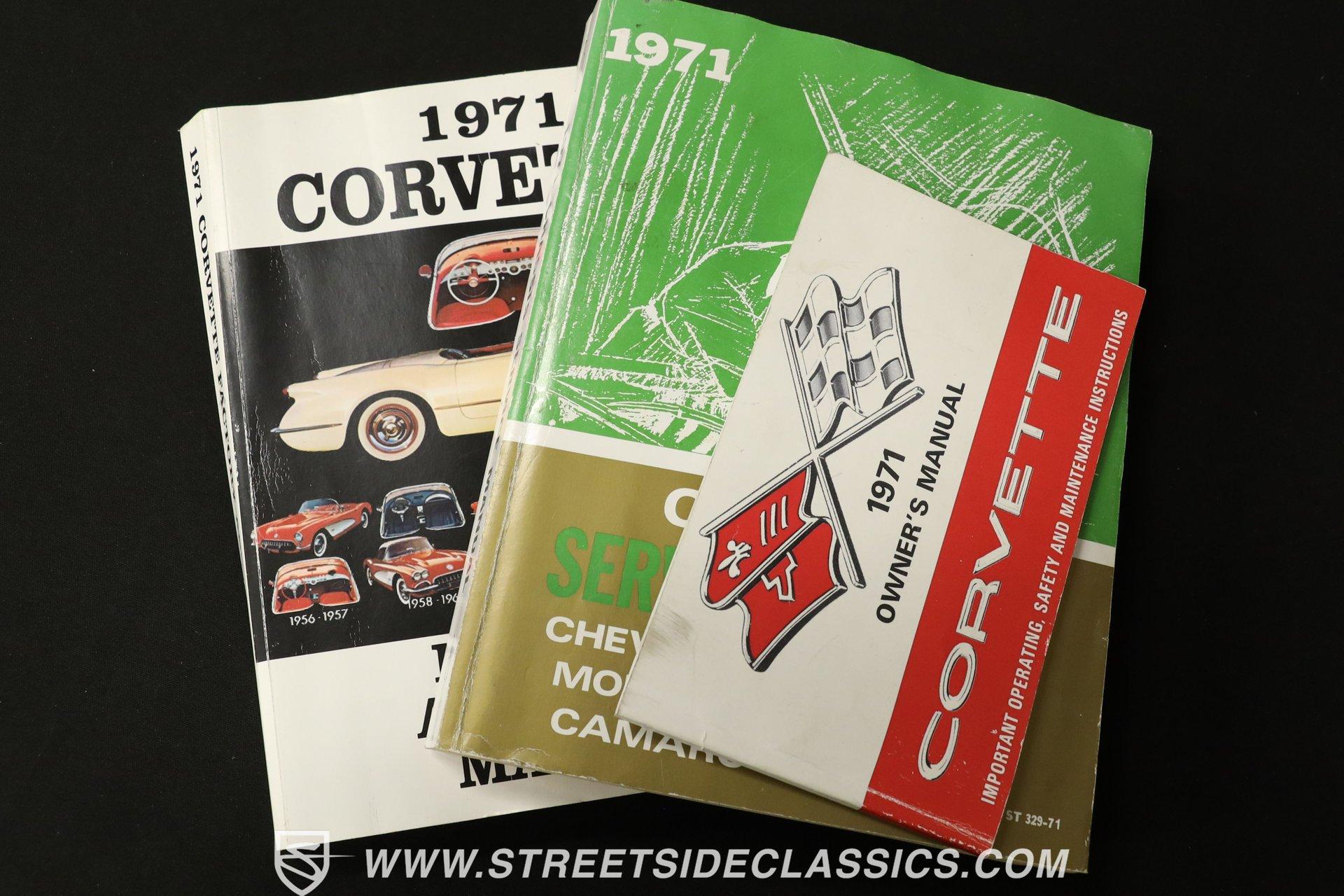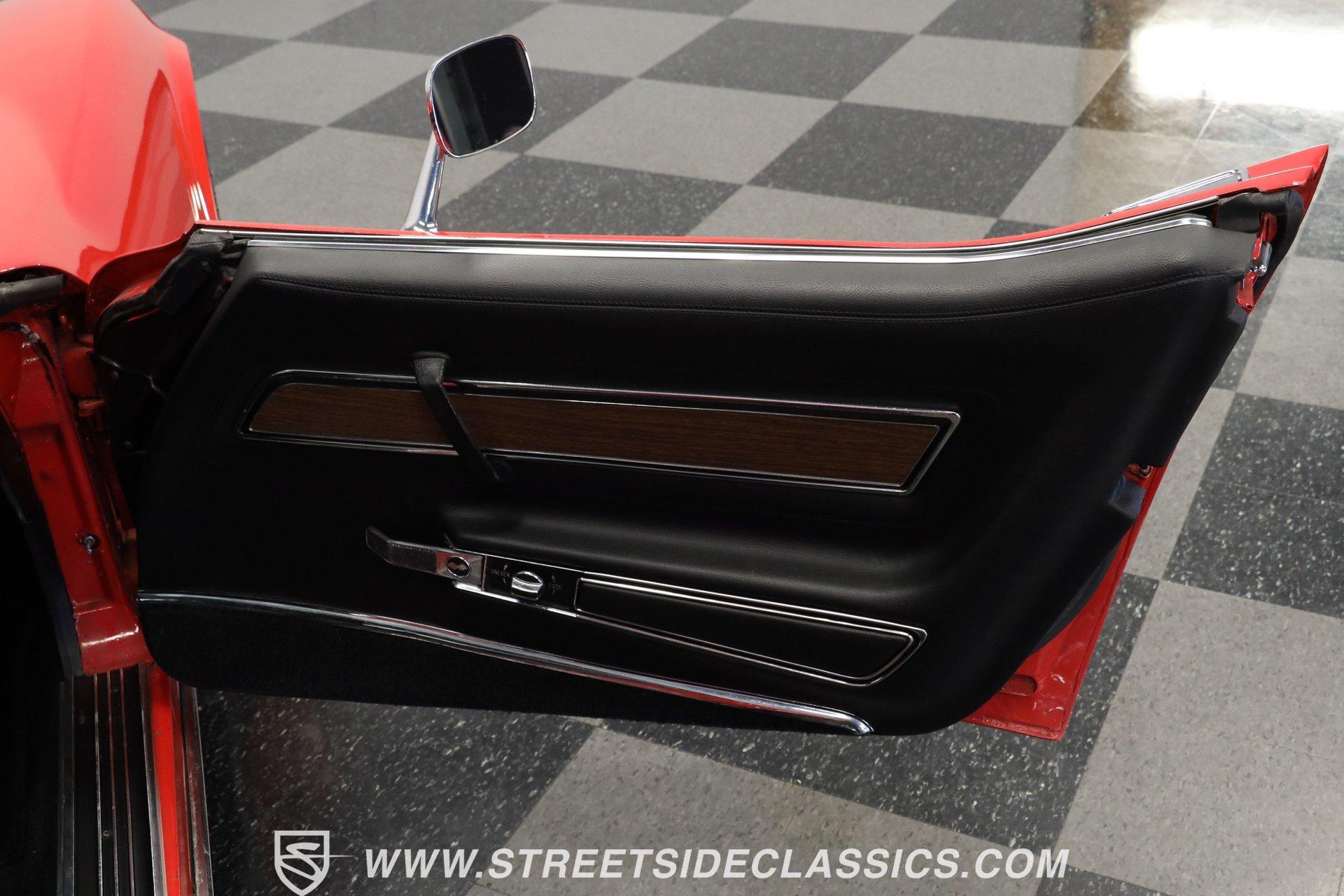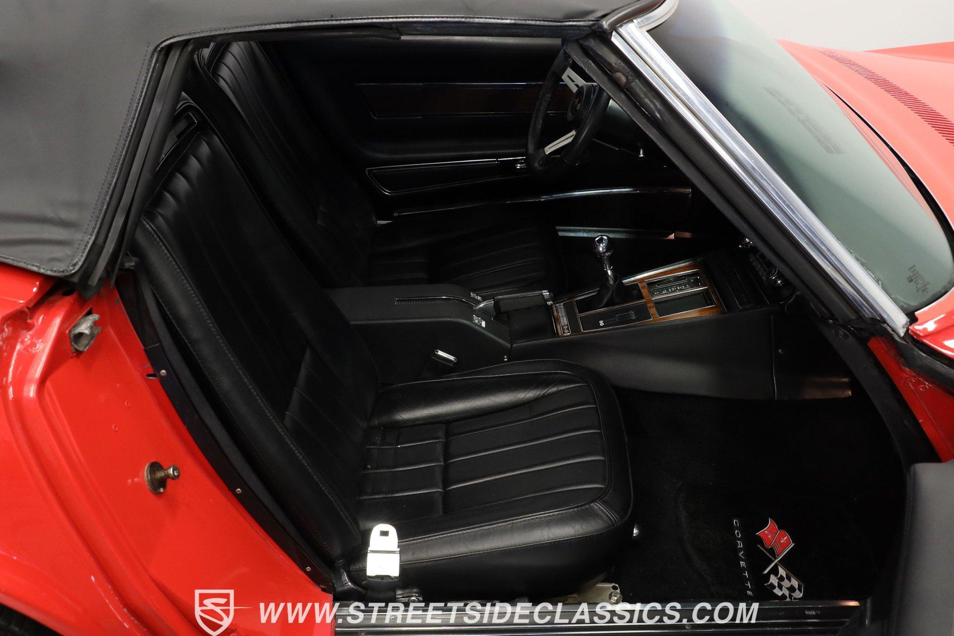 5112-TPA 1971 CHEVROLET CORVETTE CONVERTIBLE Sculpted curves and aggressive lines dominate this 1971 Chevrolet Corvette Convertible painted in brilliant red. The classic C3 styling features that unmistakable low-slung profile and wide stance that made these early Stingrays automotive icons. Chrome bumpers add flash to the front and rear, while the functional luggage rack offers both style and utility. The manual black canvas top folds neatly away for true open-air motoring. Those 15" chrome wheels complete the package with 235/60R15 front and 245/60R15 rear tires providing proper grip and visual balance to this legendary American sports car. The black vinyl interior offers a driver-focused environment with bucket seats positioned low in the cabin. The dash layout wraps around the driver with clear, legible gauges that monitor all vital functions. A tilt steering wheel allows for custom positioning while the floor-mounted shifter for the Muncie 4-speed sits perfectly at hand. The center console houses controls for the air conditioning system, keeping occupants cool during summer drives. The AM/FM radio provides soundtrack options while power windows add convenience to this classic Corvette's cabin. Powering this American legend is the numbers-matching 350 cubic inch V8 engine-a perfect balance of performance and reliability. The Muncie M20 4-speed manual transmission allows for complete control over the V8's power delivery. An Edelbrock intake manifold topped with an Edelbrock 4-barrel carburetor enhances throttle response and acceleration. The A-arm front suspension with coil springs works in harmony with the upgraded mono-leaf rear setup for balanced handling. Power disc brakes at all four corners provide substantial stopping ability to match the powertrain's capabilities. HIGHLIGHTS: Numbers-Matching 350 V8 Engine Muncie M20 4-Speed Manual Transmission Edelbrock Intake Manifold Edelbrock 4-Barrel Carburetor Factory Style Exhaust Headers Power 4-Wheel Disc Brakes Power Steering A-Arm Front Suspension with Coil Springs Mono-Leaf Rear Suspension Red Exterior Paint 15" Chrome Wheels in 235/60R15 Front, 245/60R15 Rear Tires Black Canvas Manual Convertible Top Chrome Bumpers Chrome Luggage Rack Black Interior with Bucket Seats Tilt Steering Wheel R134 Air Conditioning Power Windows AM/FM Radio Center Console with Floor Shifter Owner's Manual Service Manuals Receipts The unmistakable appeal of a classic American drop-top, combined with the numbers-matching V8, manual transmission, and four-wheel disc brakes makes this 1971 Chevrolet Corvette Convertible a true collector's prize. Authentic performance and style await. Call today! We can assist you with getting an Extended Vehicle Service Plan from Freedom Warranty, which provides comprehensive coverage that can save thousands of dollars on unexpected repairs. Inquire for more details and pricing!
