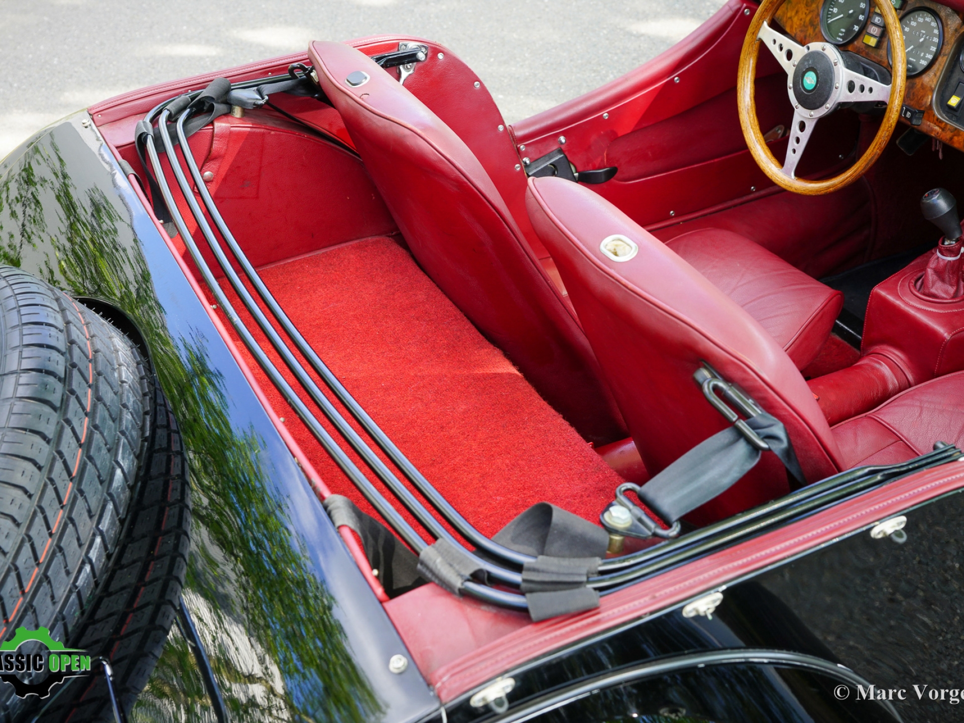 Chassis (VIN) number R10660. Black body colour combined with a red leather interior.