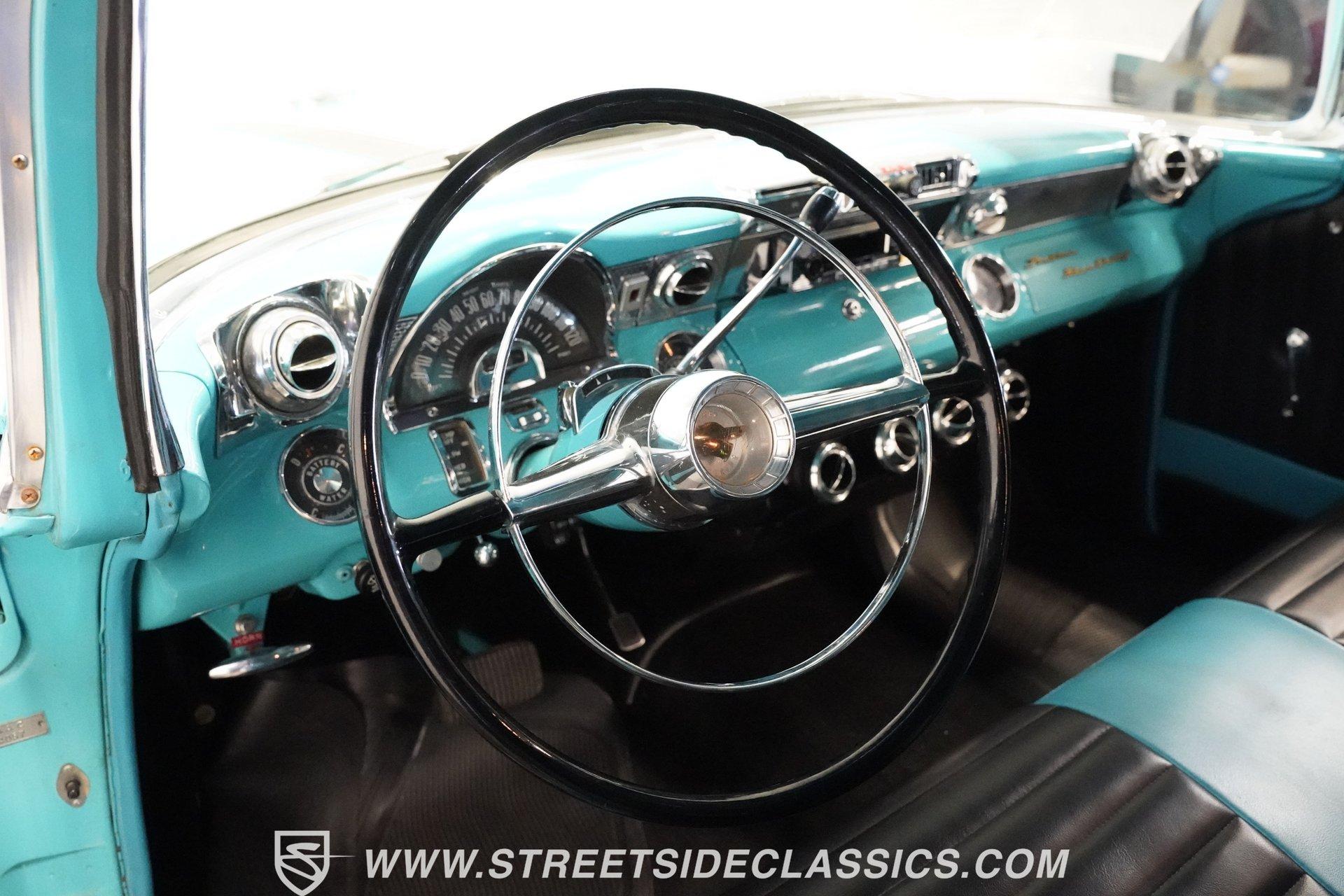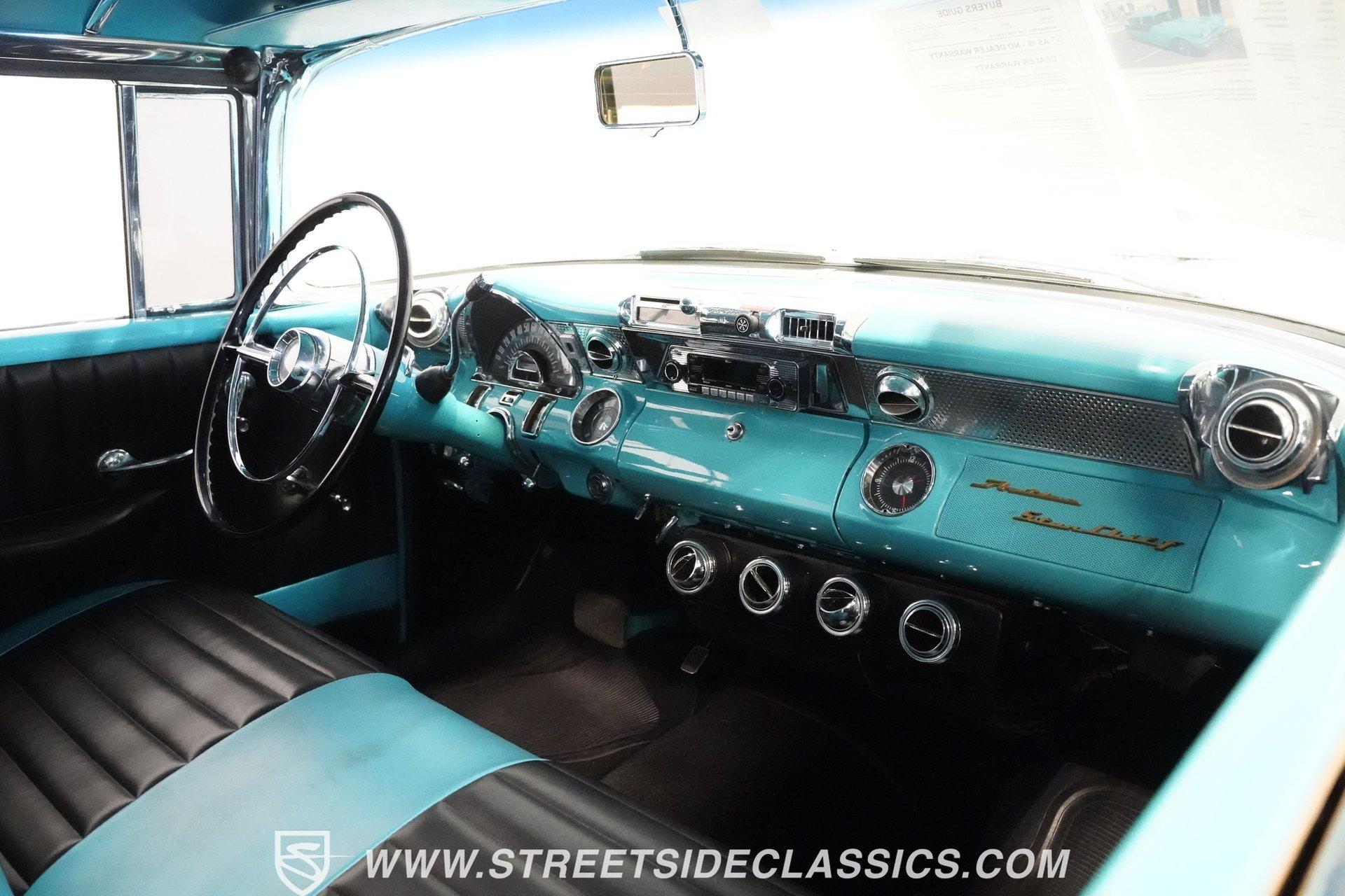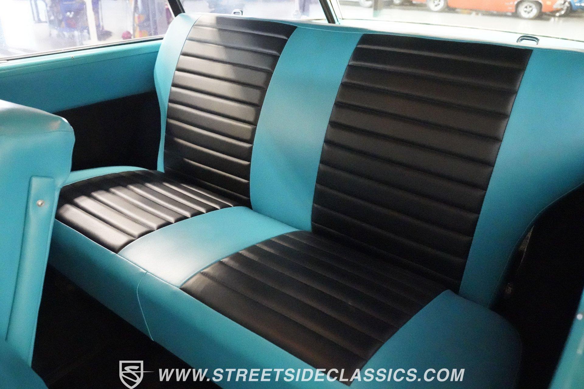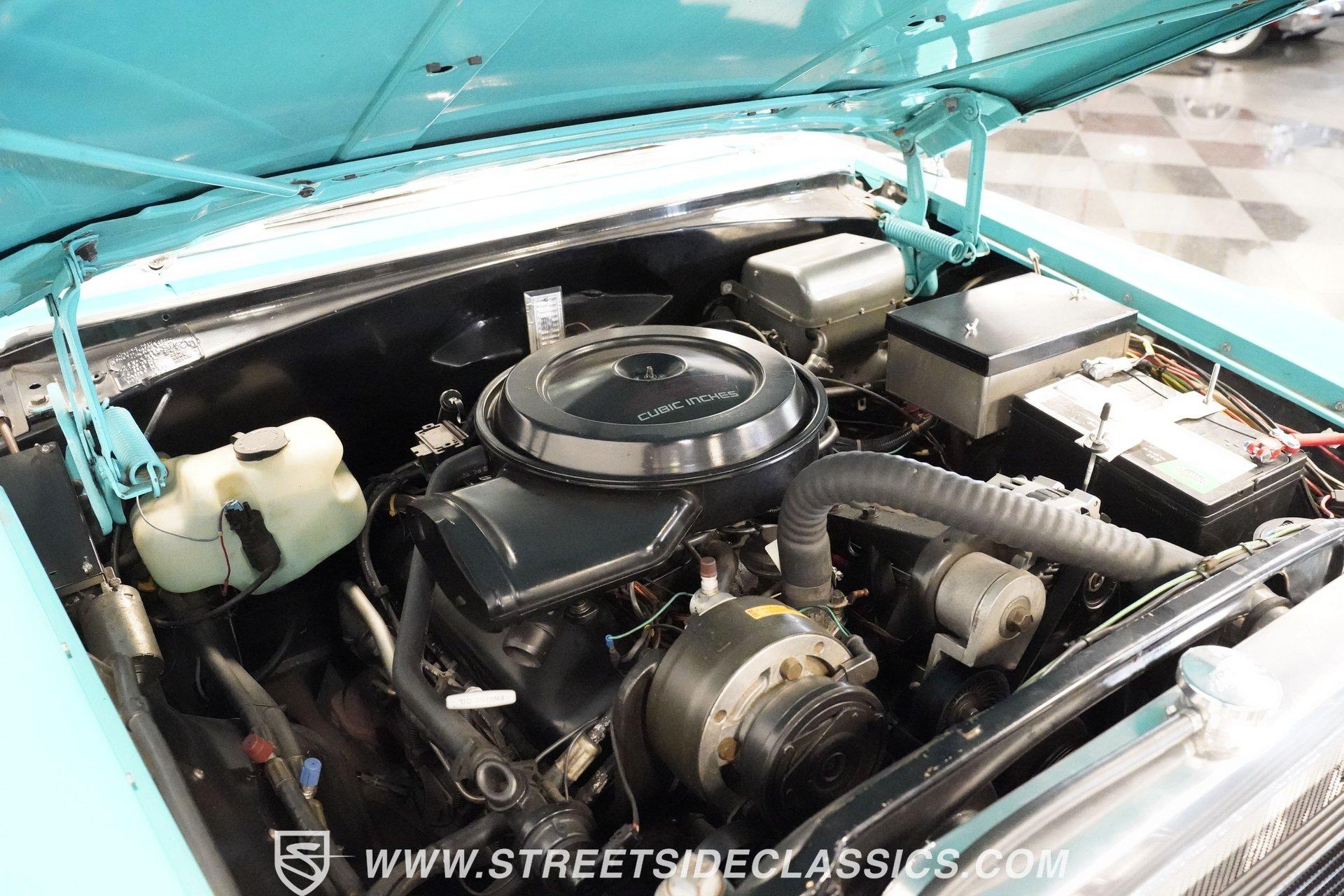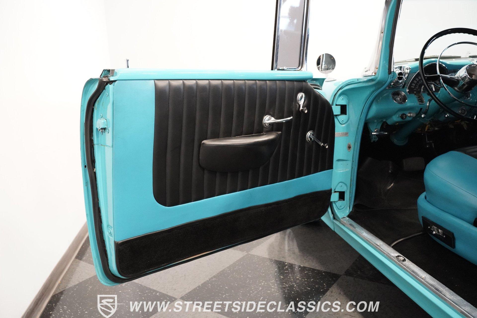 4354-PHX 1955 PONTIAC SAFARI Exceptionally rare with only 3,760 produced, this 1955 Pontiac Safari displays a spectacular two-tone Teal and Black paint scheme that highlights its distinctive wagon profile. The exterior lines pay homage to Chevy's Nomad styling while maintaining Pontiac's unique identity. Chrome Riddler 17-inch wheels add to this Safari's appearance, wrapped in Hercules 215/65R17 tires. Additional exterior features include an illuminating hood ornament, front bumper overrider, and dual exhaust outlets that exit beneath the rear bumper – all adding to this Safari's road presence. Black and Teal vinyl upholstery fills the interior, expertly matching the exterior color scheme. The split bench seat offers comfortable seating while maintaining the period-correct look. A column-mounted shifter keeps the cabin open, while modern additions improve the driving setup. The dash contains an AM/FM stereo with Bluetooth and auxiliary input options. Power steering allows for easy maneuvering, and strategically placed vents mounted below the dash allow for climate adjustment. A formidable 454 cubic inch V8 engine with electronic fuel injection sits in this classic wagon. The TH400 3-speed automatic transmission handles gear changes, making this Safari great for cruising or daily use. Power disc brakes up front, a 9-inch rear axle, and a tuned suspension system with independent front control arms with coil springs and a solid rear axle with leaf springs and air shocks improve handling. A custom aluminum radiator keeps temperatures in check, while Flowmaster mufflers create an ideal exhaust tone. HIGHLIGHTS: 454 V8 Engine Electronic Fuel Injection TH400 3-Speed Automatic Transmission Custom Aluminum Radiator Power Disc Brakes 9-Inch Rear Axle Independent Front Suspension with Coil Springs Solid Rear Axle with Leaf Springs and Air Shocks Dual Exhaust with Flowmaster Mufflers Ron Francis Wiring Kit Two-Tone Teal and Black Paint 17" Chrome Riddler Wheels with 215/65R17 Hercules Tires Illuminating Hood Ornament Front Bumper Overrider Custom Two-Tone Paint Job Black and Teal Interior with Split Bench Seat Column Shifter Power Steering AM/FM Stereo with Bluetooth and Auxiliary Input Digital Gear Indicator Display This 1955 Pontiac Safari gives you classic 50s design with upgraded performance. The 454 V8 engine, comfortable vinyl interior, and attractive two-tone exterior make this rare wagon a genuine collector's vehicle. Call today!