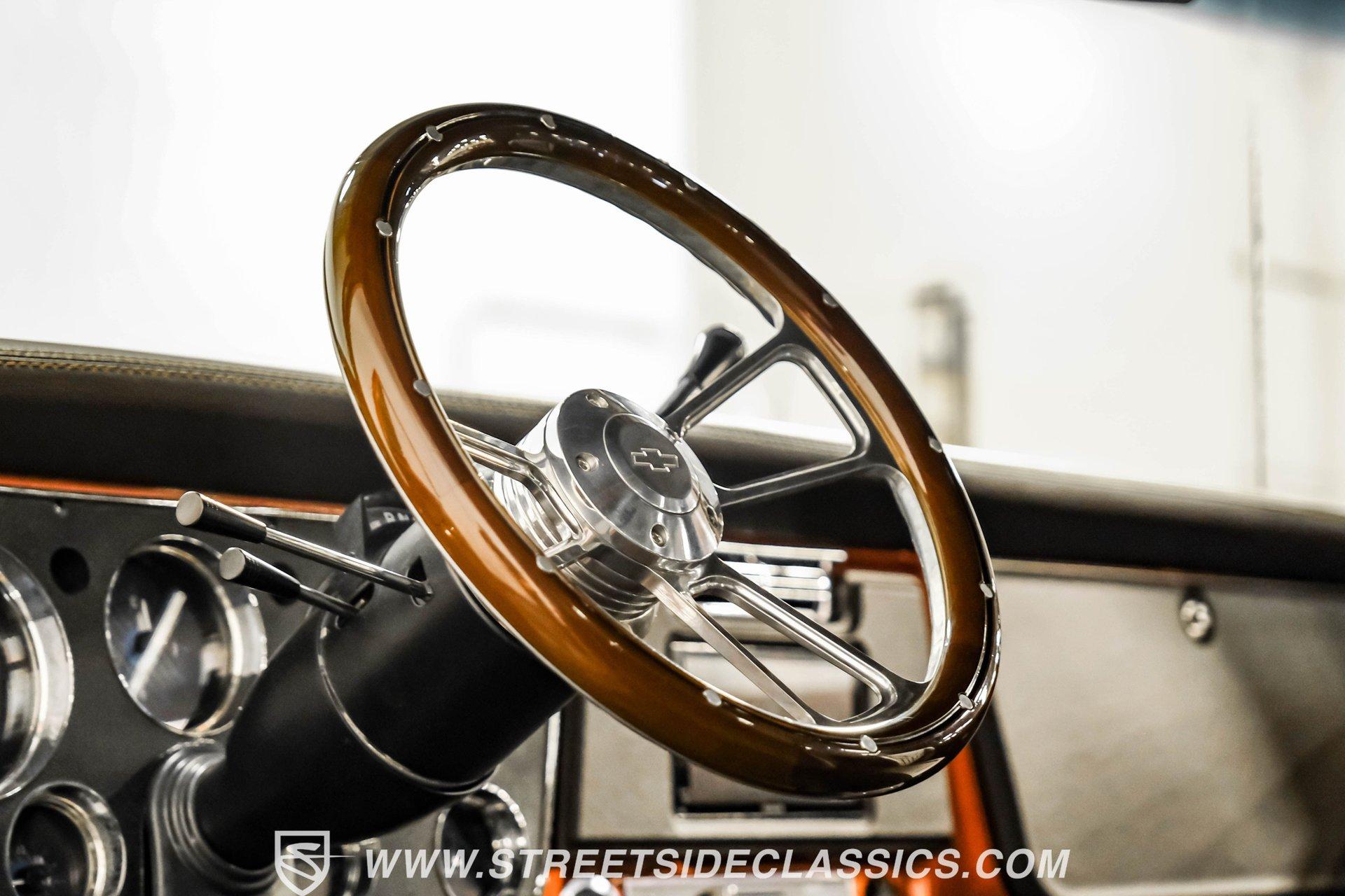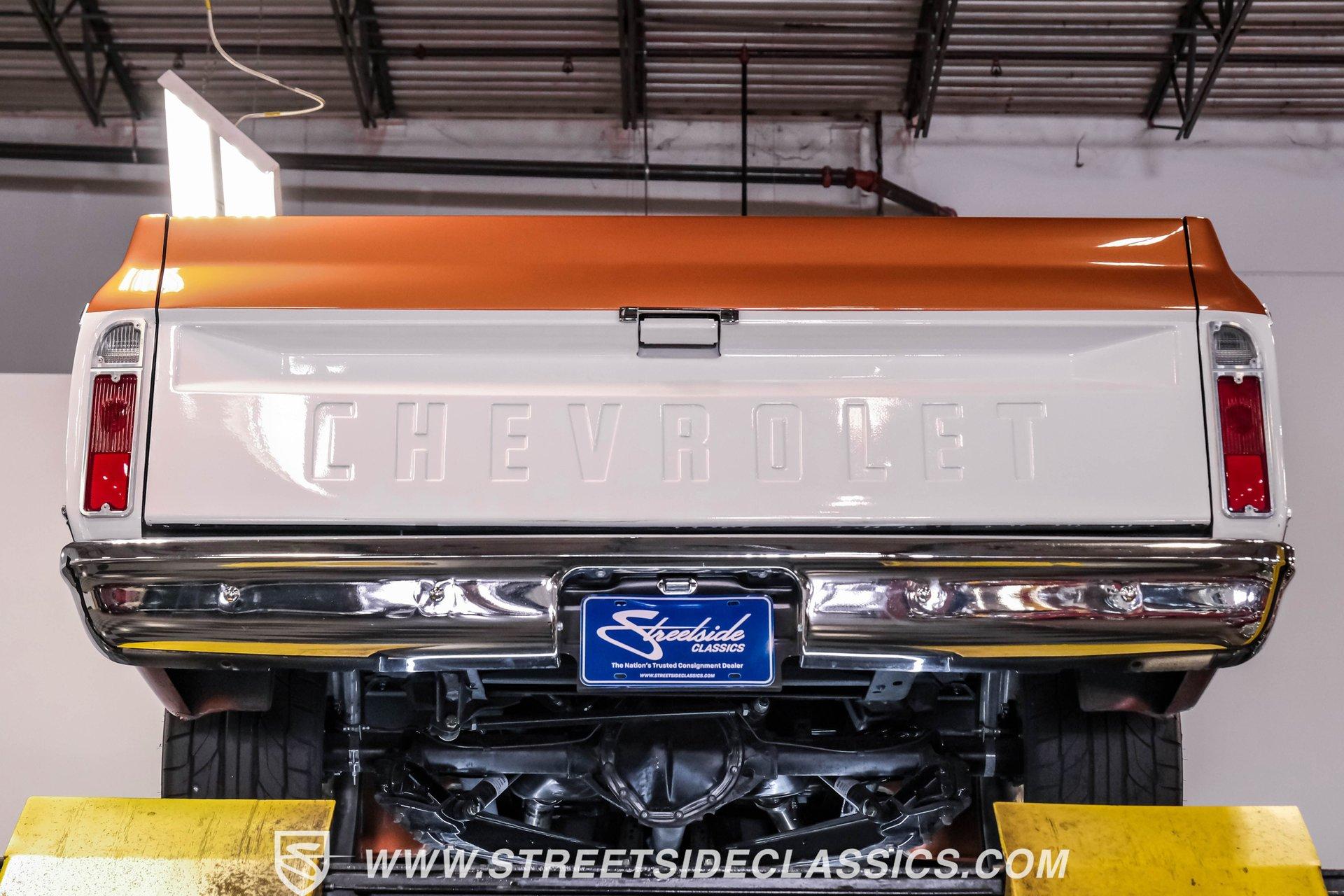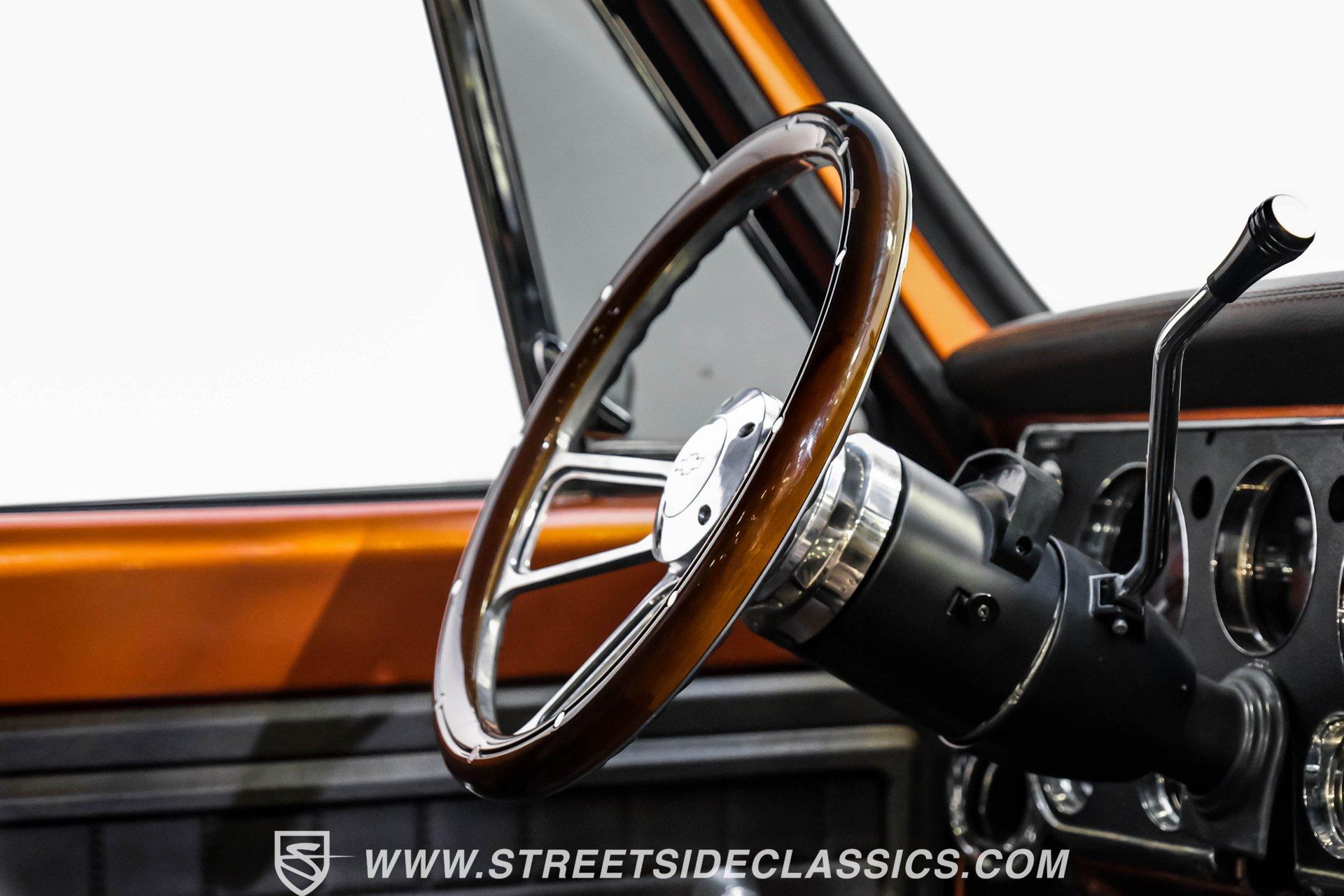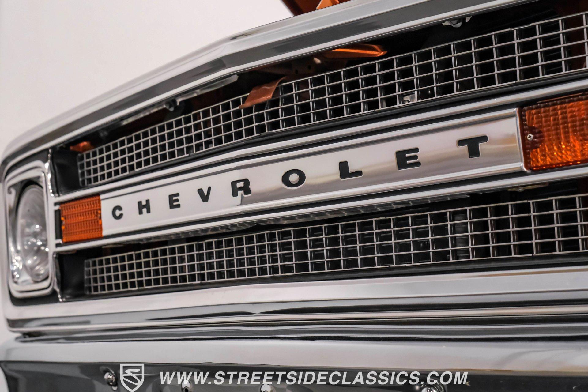 Forged from automotive passion and extreme attention to detail, this 1969 Chevrolet C10 Supercharged LS Restomod displays a carefully crafted two-tone Bronze Metallic and White exterior finish that radiates custom quality. The subtle metallic flake in the bronze paint adds visual depth while the clean white accents create perfect contrast across the body lines. Lowered to an aggressive stance, this C10's profile is amplified by massive 22" Forgiato wheels wrapped in 265/35ZR22 Nitto tires that fill the wheel wells with precision. LSX emblems on the sides give subtle clues to the extraordinary power underneath, while the tinted windows add a touch of modern style to this classic truck's silhouette. The brown leather interior rivals luxury vehicles with its complete custom treatment by local specialist PG. Custom-built door panels and headliner demonstrate exceptional craftsmanship, complemented by the billet window cranks and door handles that blend vintage styling with modern execution. Dakota Digital VHX gauges provide crucial information in a clean, classic presentation while the tilt column and wood-grip billet steering wheel offer precise control. The custom center console houses convenient cup holders and a wireless phone charger, while the Kenwood touchscreen head unit delivers modern audio technology alongside the Old Air AC system for ultimate comfort. Beneath the smooth custom hood lies a 6.0 Liter Gen 4 LS engine crowned with an LSA supercharger setup generating an estimated 600 horsepower. This powerhouse connects to a 6L80E six-speed automatic transmission with Circle D billet 3,400 stall converter for outstanding acceleration and highway cruising capability. Long-tube headers flow into an X-pipe dual exhaust system with FlowFX mufflers for an aggressive exhaust note. The fully upgraded suspension features coil springs with shocks and a sway bar up front, while truck arms with a panhard bar control the rear. Power four-wheel disc brakes provide ample stopping power for this high-performance truck. HIGHLIGHTS: 6.0 Liter Gen 4 LS Engine with LSA Supercharger (600 est HP) Fuel Injection 6L80E Six-Speed Automatic Transmission Circle D Billet 3,400 Stall Converter X-Pipe Dual Exhaust System FlowFX Mufflers 12 Bolt Rear with Posi-Traction Four-Wheel Power Disc Brakes BeСool Radiator with Dual Electric Fans Lowered Suspension Front Coil Springs with Shocks and Sway Bar Rear Truck Arms with Panhard Bar Bronze Metallic and White Two-Tone Paint 22" Forgiato Wheels with 265/35ZR22 Nitto Tires Tinted Windows Brown Custom Leather Interior with Bucket Seats and Custom Console Dakota Digital VHX Gauges Custom-Built Headliner and Door Panels Billet Window Cranks and Door Handles Tilt Column with Custom Billet and Wood-Grip Steering Wheel Air Conditioning Power Steering Kenwood Touchscreen Head Unit 329 Miles Since Built Masterfully built with supercharged LS power and attention to detail, this 1969 Chevrolet C10 combines classic pickup styling with modern performance and comfort. From its high-quality two-tone exterior to its custom leather interior and performance-built drivetrain, this truck delivers on every level. Call today!