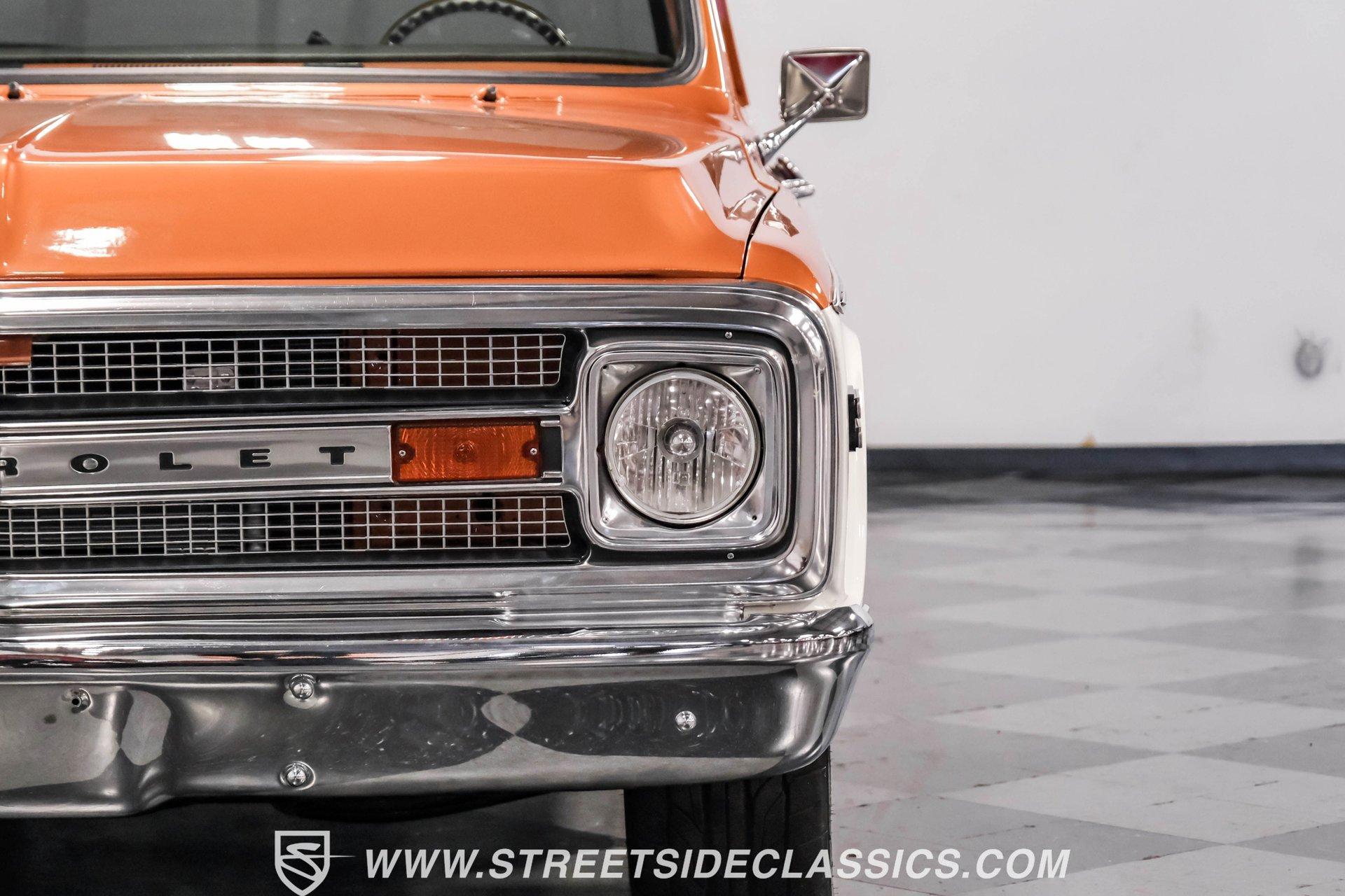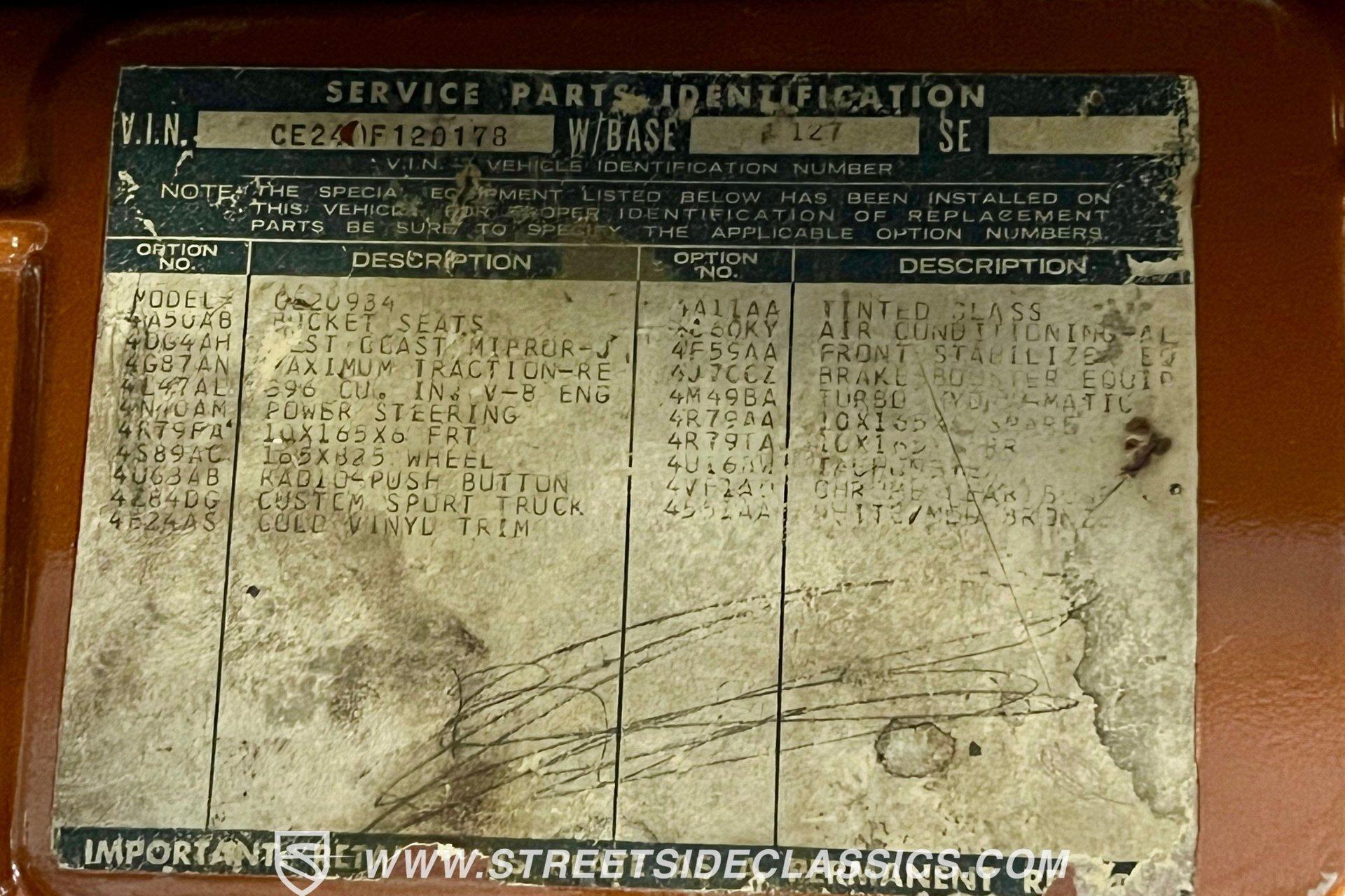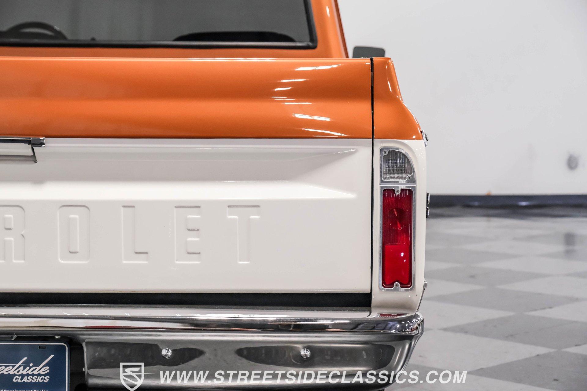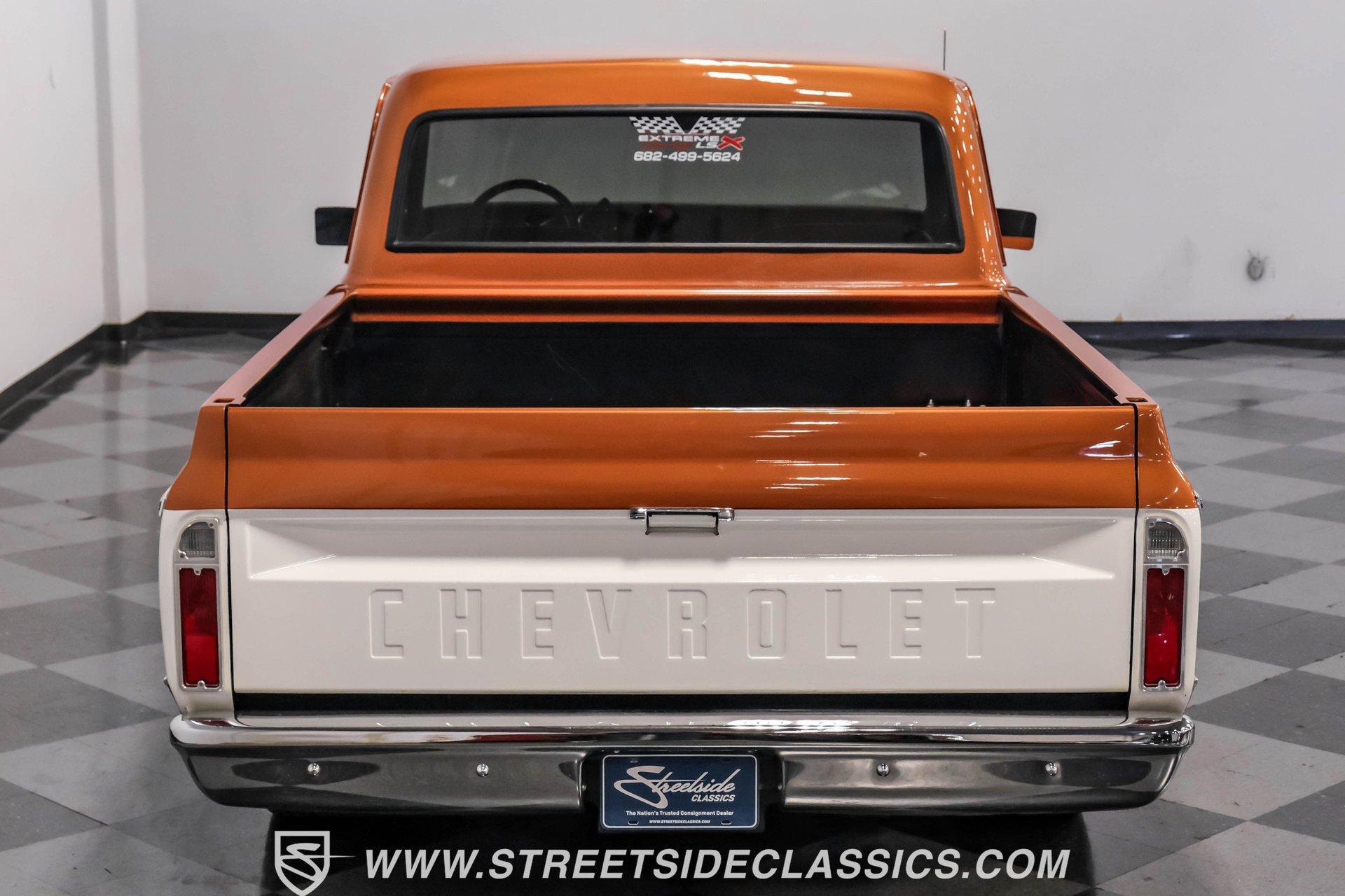 Forged from automotive passion and extreme attention to detail, this 1969 Chevrolet C10 Supercharged LS Restomod displays a carefully crafted two-tone Bronze Metallic and White exterior finish that radiates custom quality. The subtle metallic flake in the bronze paint adds visual depth while the clean white accents create perfect contrast across the body lines. Lowered to an aggressive stance, this C10's profile is amplified by massive 22" Forgiato wheels wrapped in 265/35ZR22 Nitto tires that fill the wheel wells with precision. LSX emblems on the sides give subtle clues to the extraordinary power underneath, while the tinted windows add a touch of modern style to this classic truck's silhouette. The brown leather interior rivals luxury vehicles with its complete custom treatment by local specialist PG. Custom-built door panels and headliner demonstrate exceptional craftsmanship, complemented by the billet window cranks and door handles that blend vintage styling with modern execution. Dakota Digital VHX gauges provide crucial information in a clean, classic presentation while the tilt column and wood-grip billet steering wheel offer precise control. The custom center console houses convenient cup holders and a wireless phone charger, while the Kenwood touchscreen head unit delivers modern audio technology alongside the Old Air AC system for ultimate comfort. Beneath the smooth custom hood lies a 6.0 Liter Gen 4 LS engine crowned with an LSA supercharger setup generating an estimated 600 horsepower. This powerhouse connects to a 6L80E six-speed automatic transmission with Circle D billet 3,400 stall converter for outstanding acceleration and highway cruising capability. Long-tube headers flow into an X-pipe dual exhaust system with FlowFX mufflers for an aggressive exhaust note. The fully upgraded suspension features coil springs with shocks and a sway bar up front, while truck arms with a panhard bar control the rear. Power four-wheel disc brakes provide ample stopping power for this high-performance truck. HIGHLIGHTS: 6.0 Liter Gen 4 LS Engine with LSA Supercharger (600 est HP) Fuel Injection 6L80E Six-Speed Automatic Transmission Circle D Billet 3,400 Stall Converter X-Pipe Dual Exhaust System FlowFX Mufflers 12 Bolt Rear with Posi-Traction Four-Wheel Power Disc Brakes BeСool Radiator with Dual Electric Fans Lowered Suspension Front Coil Springs with Shocks and Sway Bar Rear Truck Arms with Panhard Bar Bronze Metallic and White Two-Tone Paint 22" Forgiato Wheels with 265/35ZR22 Nitto Tires Tinted Windows Brown Custom Leather Interior with Bucket Seats and Custom Console Dakota Digital VHX Gauges Custom-Built Headliner and Door Panels Billet Window Cranks and Door Handles Tilt Column with Custom Billet and Wood-Grip Steering Wheel Air Conditioning Power Steering Kenwood Touchscreen Head Unit 329 Miles Since Built Masterfully built with supercharged LS power and attention to detail, this 1969 Chevrolet C10 combines classic pickup styling with modern performance and comfort. From its high-quality two-tone exterior to its custom leather interior and performance-built drivetrain, this truck delivers on every level. Call today!