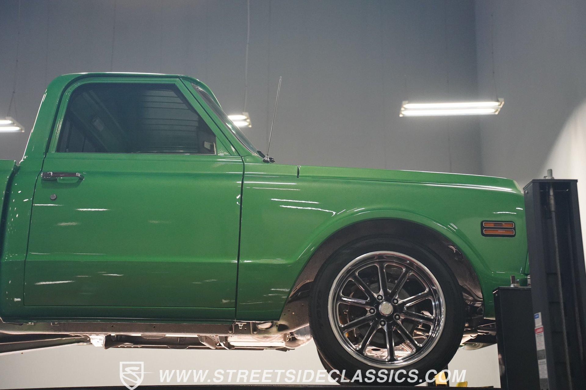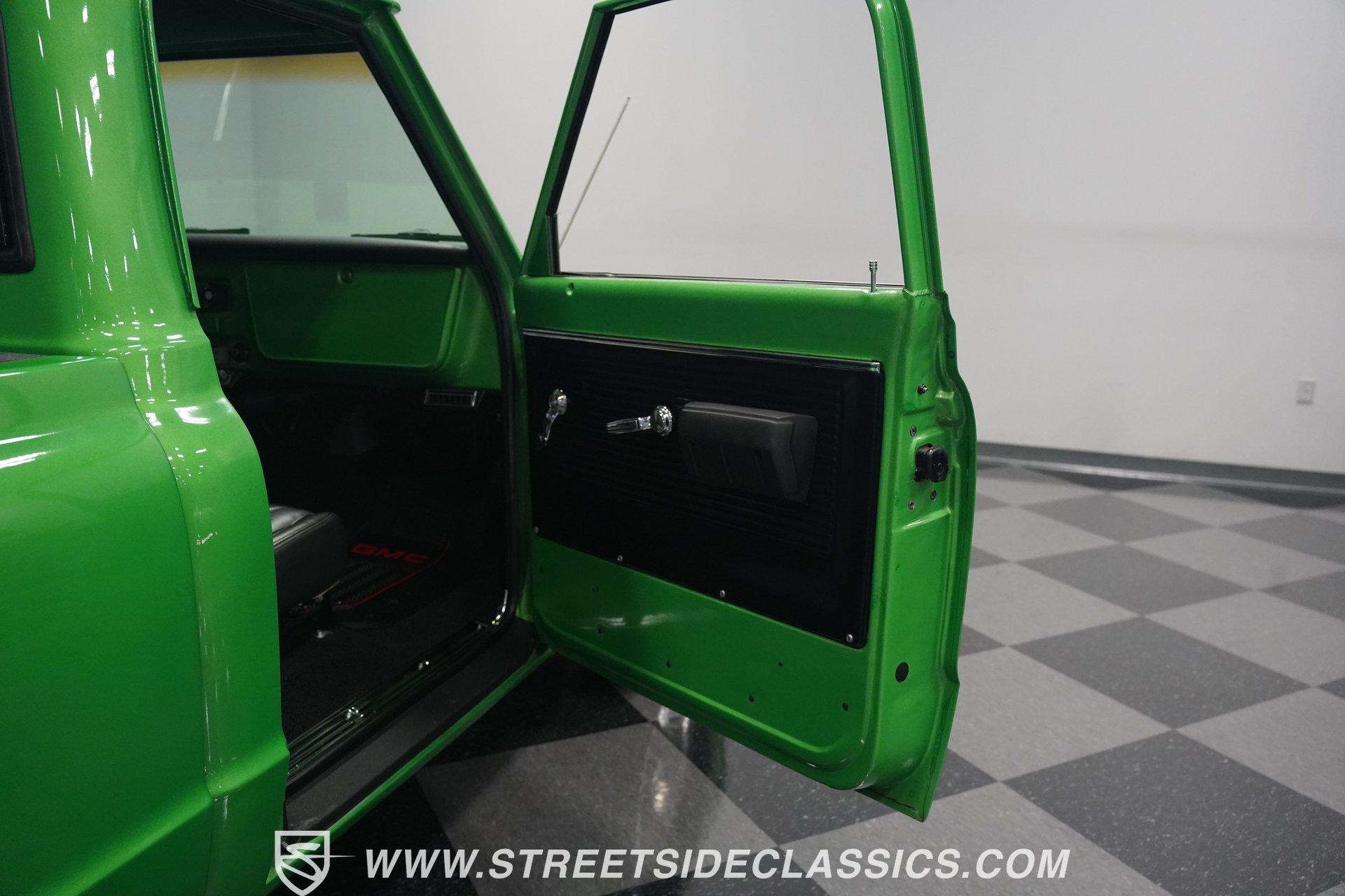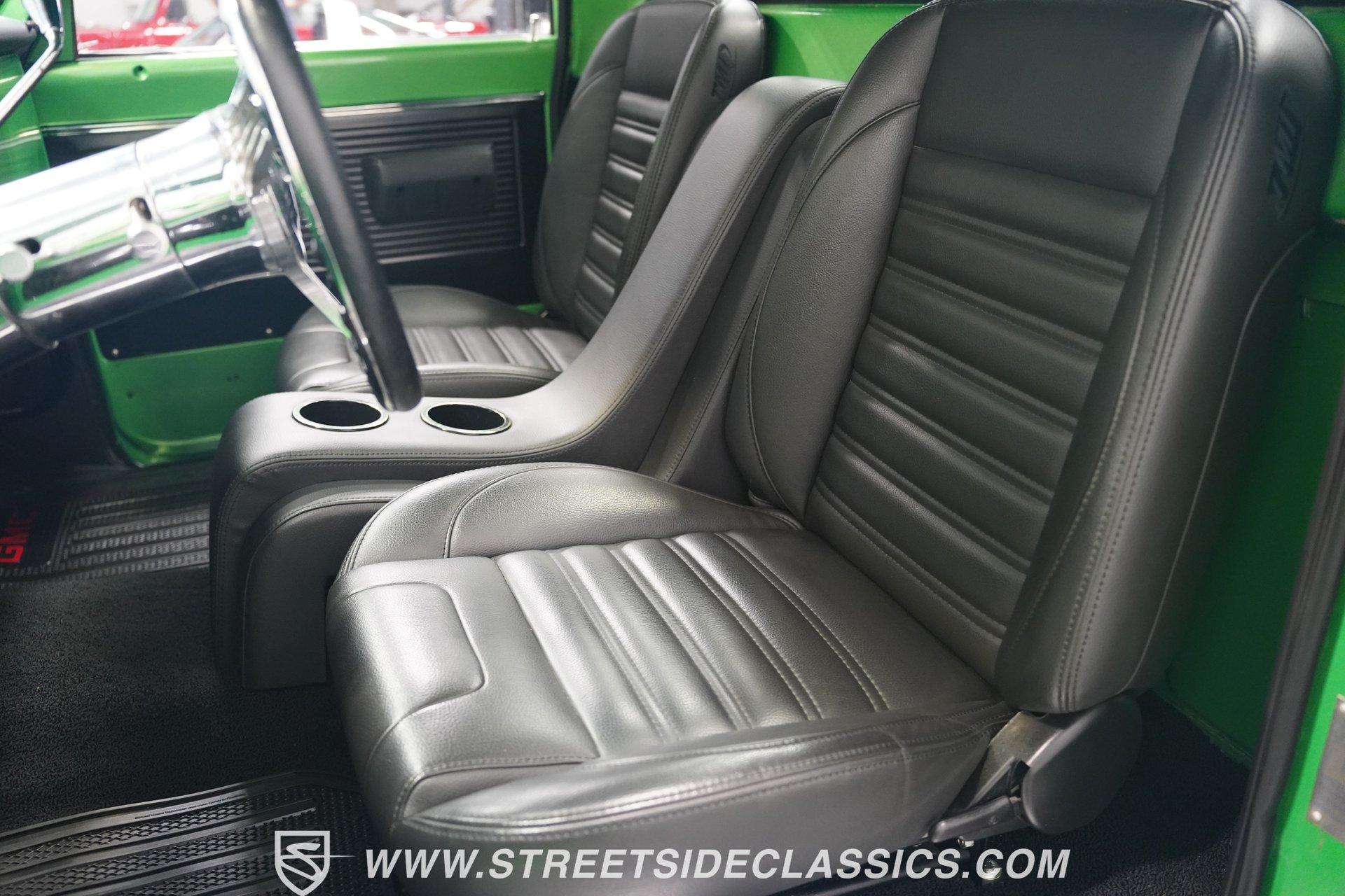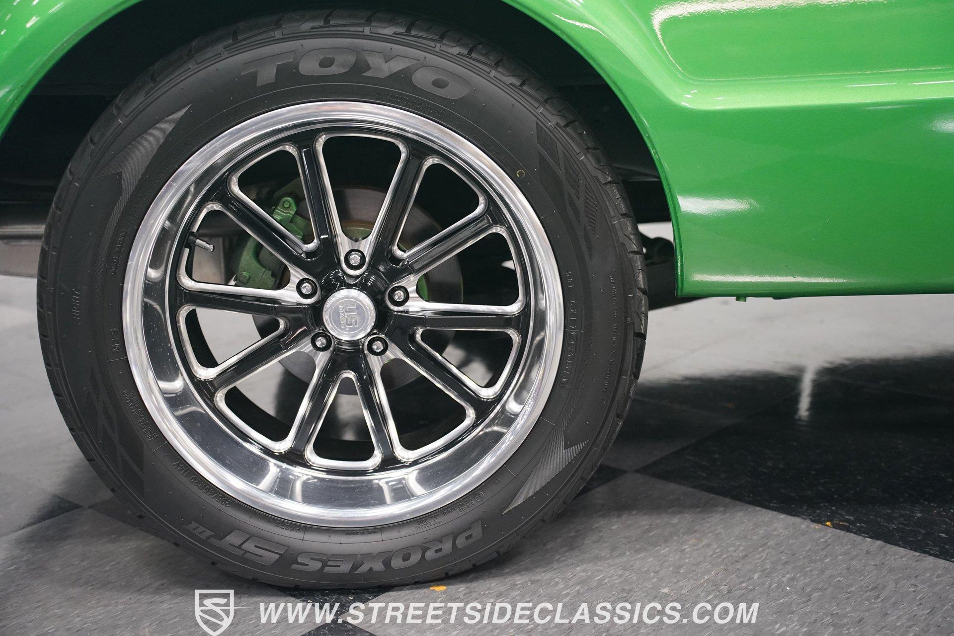 Fully restored and upgraded for modern performance, this 1971 GMC C1500 brings together old-school truck character and contemporary enhancements. Finished in a rich green color, the exterior features a custom cowl hood for a more aggressive look. The elimination of vent windows and addition of a roll pan create cleaner lines throughout. Chrome accents contrast nicely against the green paint, while the aftermarket lighting package adds a current touch. The bed comes equipped with a spray-in liner and rubber mat for durability. Those massive 20" U.S. Mags wheels with 255/40R20 front and 295/45R20 rear tires give the truck a substantial road presence. The black vinyl interior has received a full overhaul with custom bucket seats that provide excellent support. A specially designed center console adds both convenience and style to the cabin. The upgraded dash features modern digital instrumentation that clearly displays all essential information. Driving comfort is enhanced by the billet tilt steering column topped with a matching wheel for precise control. The climate is regulated by an effective under-dash air conditioning system, while entertainment comes via an advanced audio unit with Bluetooth capability. Every element inside works together for a cohesive, updated feel. Power comes from a Target Master/Goodwrench 350 V8 crate motor that looks as good as it runs. For improved drivability, a FiTech electronic fuel injection system replaces the original carburetor. A 700R4 four-speed automatic transmission handles gear changes efficiently. The upgraded suspension system uses front coil springs with shocks and rear coilovers with trailing arms and sway bar for superior handling characteristics. Four-wheel power disc brakes provide strong stopping performance. The truck steers with minimal effort thanks to its power steering system. Hedman headers contribute to better exhaust flow and engine output. HIGHLIGHTS: 350 V8 Crate Engine 4 Speed Automatic Transmission FiTech Electronic Fuel Injection Four-Wheel Power Disc Brakes Hedman Headers 12 Bolt Rear Axle Front Coil Spring with Shocks Rear Coilovers with Trailing Arm and Sway Bar Green Paint Cowl Hood Roll Pan Chrome Brightwork Spray-in Bed Liner with Rubber Mat 20" U.S. Mags Wheels 255/40R20 Front, 295/45R20 Rear Tires Aftermarket Headlights and Taillights Chrome Mirrors Black Interior with Custom Bucket Seats Center Console Billet Tilt Steering Column Billet Steering Wheel Power Steering Digital Dash Air Conditioning AM/FM Radio Bluetooth Radio Updated mechanics and thoughtful exterior and interior modifications, this 1971 GMC C1500 combines the best of vintage truck appeal with modern drivability. The custom touches, quality components, and attention to detail make this pickup stand out among its peers. Call today!