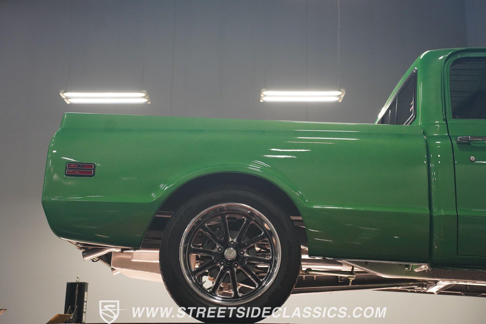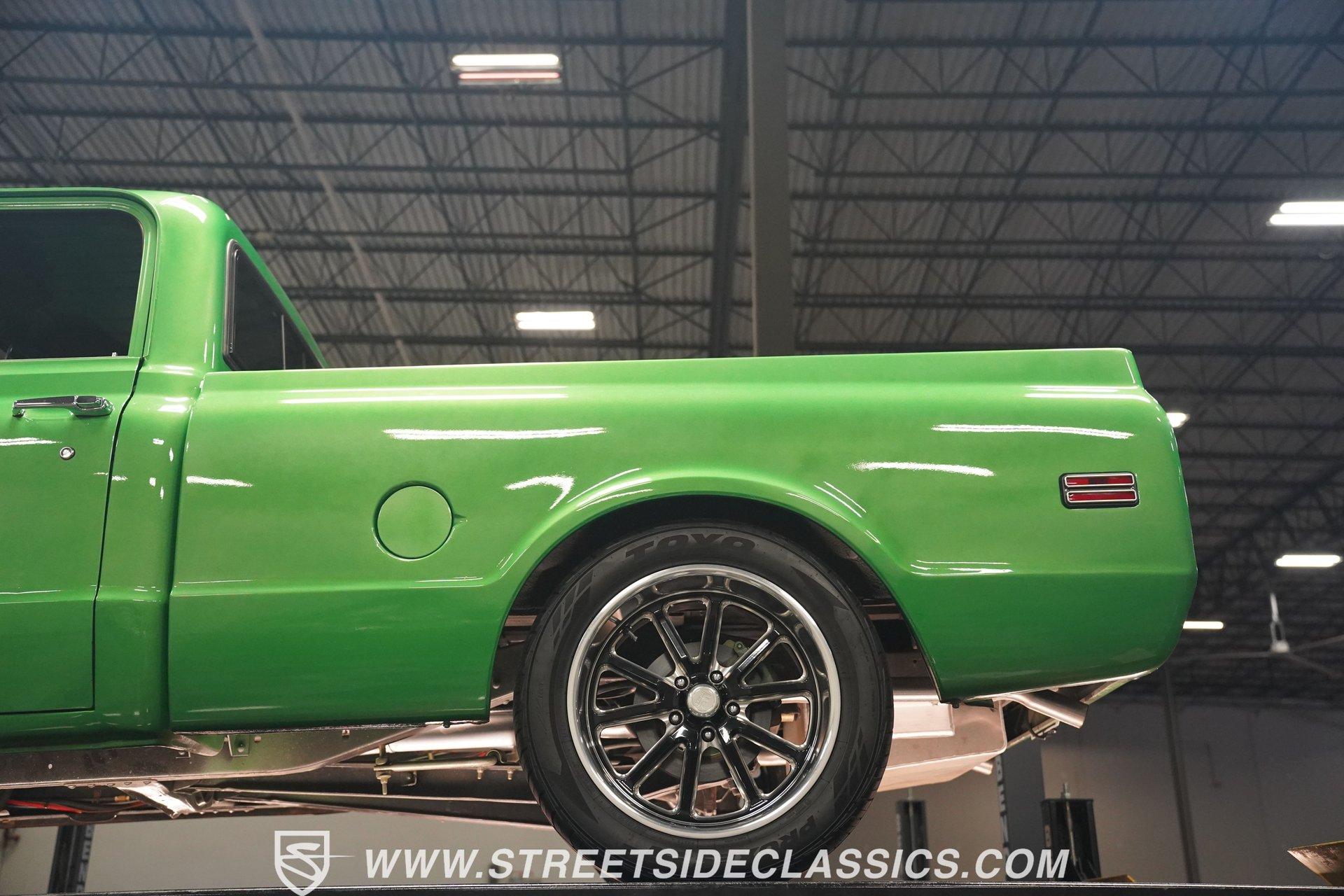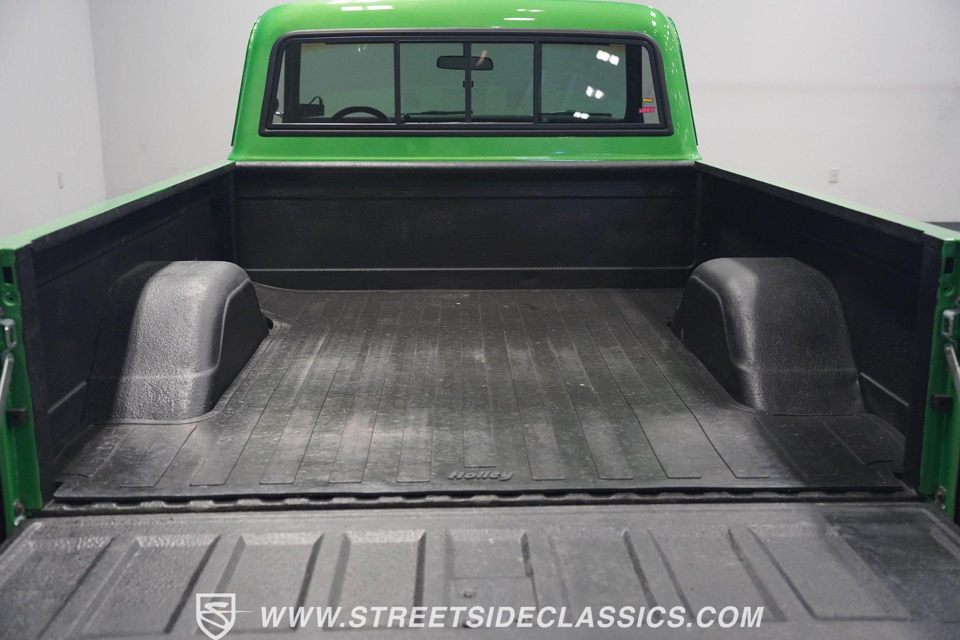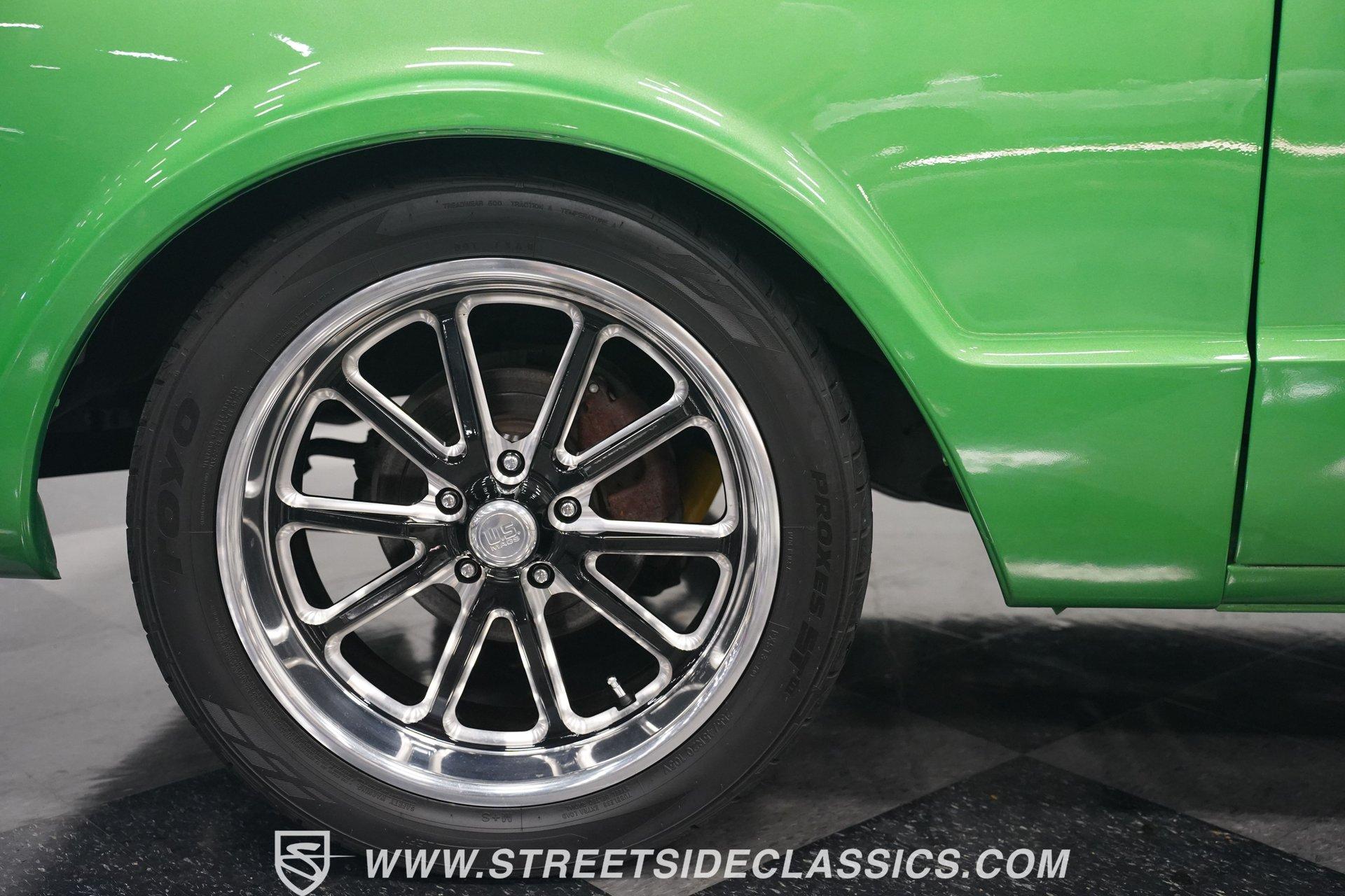 Fully restored and upgraded for modern performance, this 1971 GMC C1500 brings together old-school truck character and contemporary enhancements. Finished in a rich green color, the exterior features a custom cowl hood for a more aggressive look. The elimination of vent windows and addition of a roll pan create cleaner lines throughout. Chrome accents contrast nicely against the green paint, while the aftermarket lighting package adds a current touch. The bed comes equipped with a spray-in liner and rubber mat for durability. Those massive 20" U.S. Mags wheels with 255/40R20 front and 295/45R20 rear tires give the truck a substantial road presence. The black vinyl interior has received a full overhaul with custom bucket seats that provide excellent support. A specially designed center console adds both convenience and style to the cabin. The upgraded dash features modern digital instrumentation that clearly displays all essential information. Driving comfort is enhanced by the billet tilt steering column topped with a matching wheel for precise control. The climate is regulated by an effective under-dash air conditioning system, while entertainment comes via an advanced audio unit with Bluetooth capability. Every element inside works together for a cohesive, updated feel. Power comes from a Target Master/Goodwrench 350 V8 crate motor that looks as good as it runs. For improved drivability, a FiTech electronic fuel injection system replaces the original carburetor. A 700R4 four-speed automatic transmission handles gear changes efficiently. The upgraded suspension system uses front coil springs with shocks and rear coilovers with trailing arms and sway bar for superior handling characteristics. Four-wheel power disc brakes provide strong stopping performance. The truck steers with minimal effort thanks to its power steering system. Hedman headers contribute to better exhaust flow and engine output. HIGHLIGHTS: 350 V8 Crate Engine 4 Speed Automatic Transmission FiTech Electronic Fuel Injection Four-Wheel Power Disc Brakes Hedman Headers 12 Bolt Rear Axle Front Coil Spring with Shocks Rear Coilovers with Trailing Arm and Sway Bar Green Paint Cowl Hood Roll Pan Chrome Brightwork Spray-in Bed Liner with Rubber Mat 20" U.S. Mags Wheels 255/40R20 Front, 295/45R20 Rear Tires Aftermarket Headlights and Taillights Chrome Mirrors Black Interior with Custom Bucket Seats Center Console Billet Tilt Steering Column Billet Steering Wheel Power Steering Digital Dash Air Conditioning AM/FM Radio Bluetooth Radio Updated mechanics and thoughtful exterior and interior modifications, this 1971 GMC C1500 combines the best of vintage truck appeal with modern drivability. The custom touches, quality components, and attention to detail make this pickup stand out among its peers. Call today!