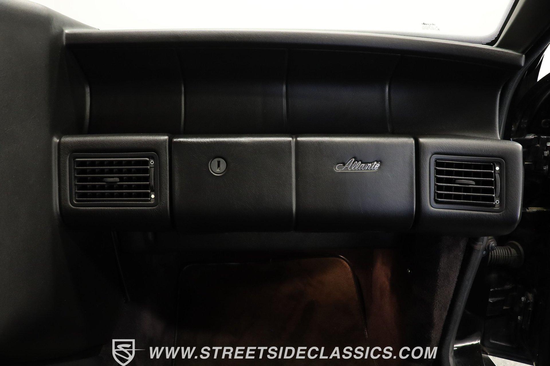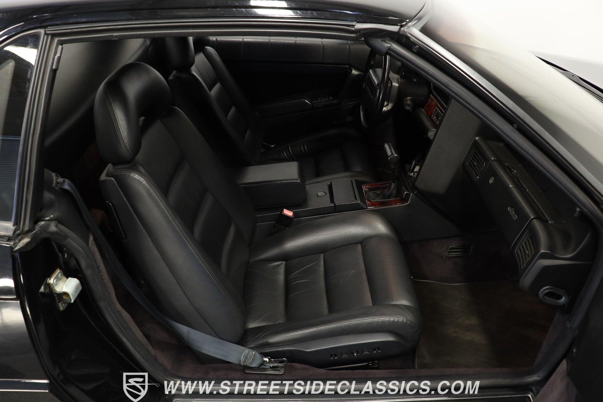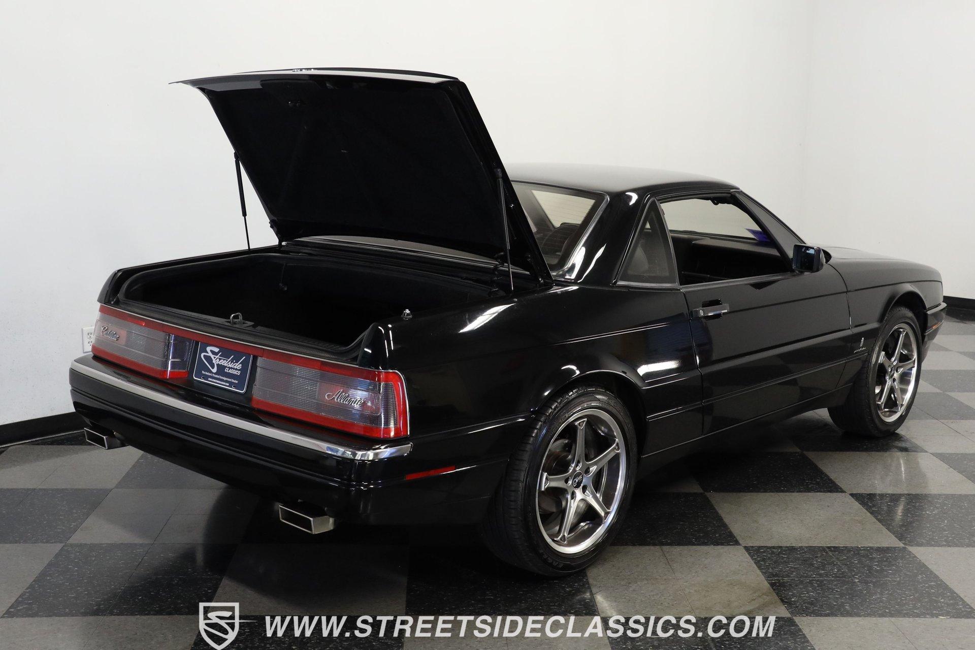 Hand-built in Italy by Pininfarina for its first six years of production, this 1991 Cadillac Allante in black comes equipped with both a black cloth convertible soft top and rarely optioned removable black hardtop. The 18" Enkei alloy wheels are mounted with 245/45R18 tires, while power trunk operation and tinted window glass add to the luxury roadster's appeal. Clean door jambs and properly functioning doors and hood complete the exterior package. Charcoal leather bucket seats dominate the interior space, complemented by clean faux wood trim accents throughout the cabin. Power seats, power windows, power locks, and power mirrors provide modern convenience, while air conditioning and tilt wheel add to driver comfort. The AM/FM radio includes both cassette player and CD player functionality, with an additional CD changer located in the carpeted trunk. Recently added Sirius satellite radio brings contemporary connectivity to the luxury cabin. The fuel-injected 4.5 Liter V8 engine connects to a 4-speed automatic transmission with overdrive. Power steering and power brakes handle the driving duties, while four-wheel disc brakes with anti-lock capability provide stopping power. Independent suspension front and rear, combined with the dual exhaust system, complete the mechanical package in the well-maintained engine bay. HIGHLIGHTS: 4.5 Liter V8 Engine Electronic Fuel Injection 4 Speed Automatic Transmission with Overdrive Four Wheel Disc Brakes Anti-Lock Brake System Independent Front and Rear Suspension Dual Exhaust Serpentine Belt System Black Paint Black Cloth Convertible Soft Top Removable Black Hardtop 18" Enkei Alloy Wheels with 245/45R18 Tires Power Trunk Tinted Window Glass Charcoal Leather Interior with Power Bucket Seats Faux Wood Trim Power Windows Power Locks Power Mirrors Air Conditioning Tilt Wheel Power Steering Console Shifter AM/FM Satellite Radio, Cassette, CD CD Changer in Trunk Original Window Sticker Service Receipts With its triple black configuration, 4.5L V8 power, and dual-top versatility, this 1991 Cadillac Allante provides luxury roadster motoring with Italian craftsmanship and American comfort. Call today! We can assist you with getting an Extended Vehicle Service Plan from Freedom Warranty, which provides comprehensive coverage that can save thousands of dollars on unexpected repairs. Inquire for more details and pricing!