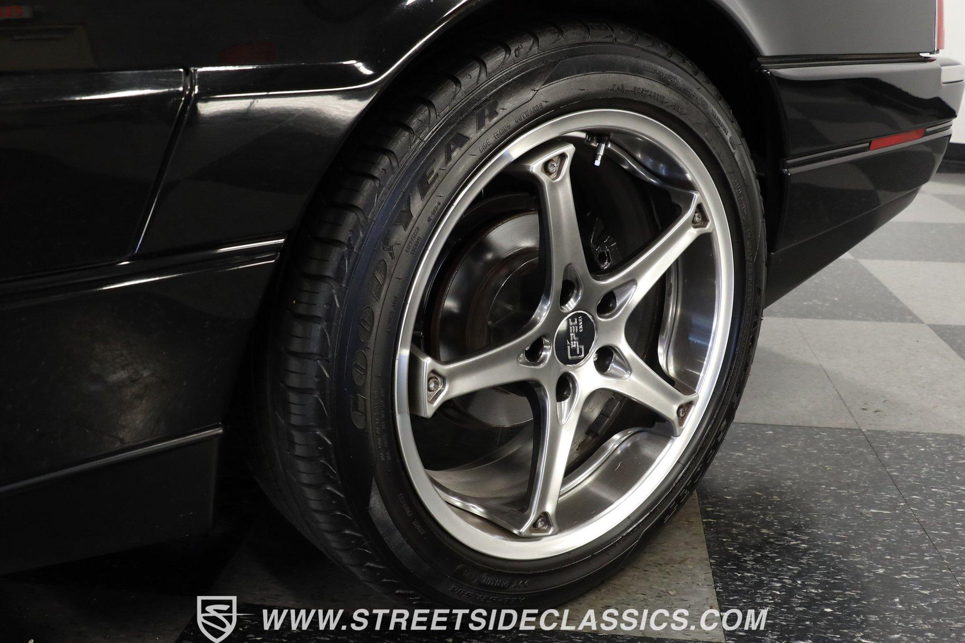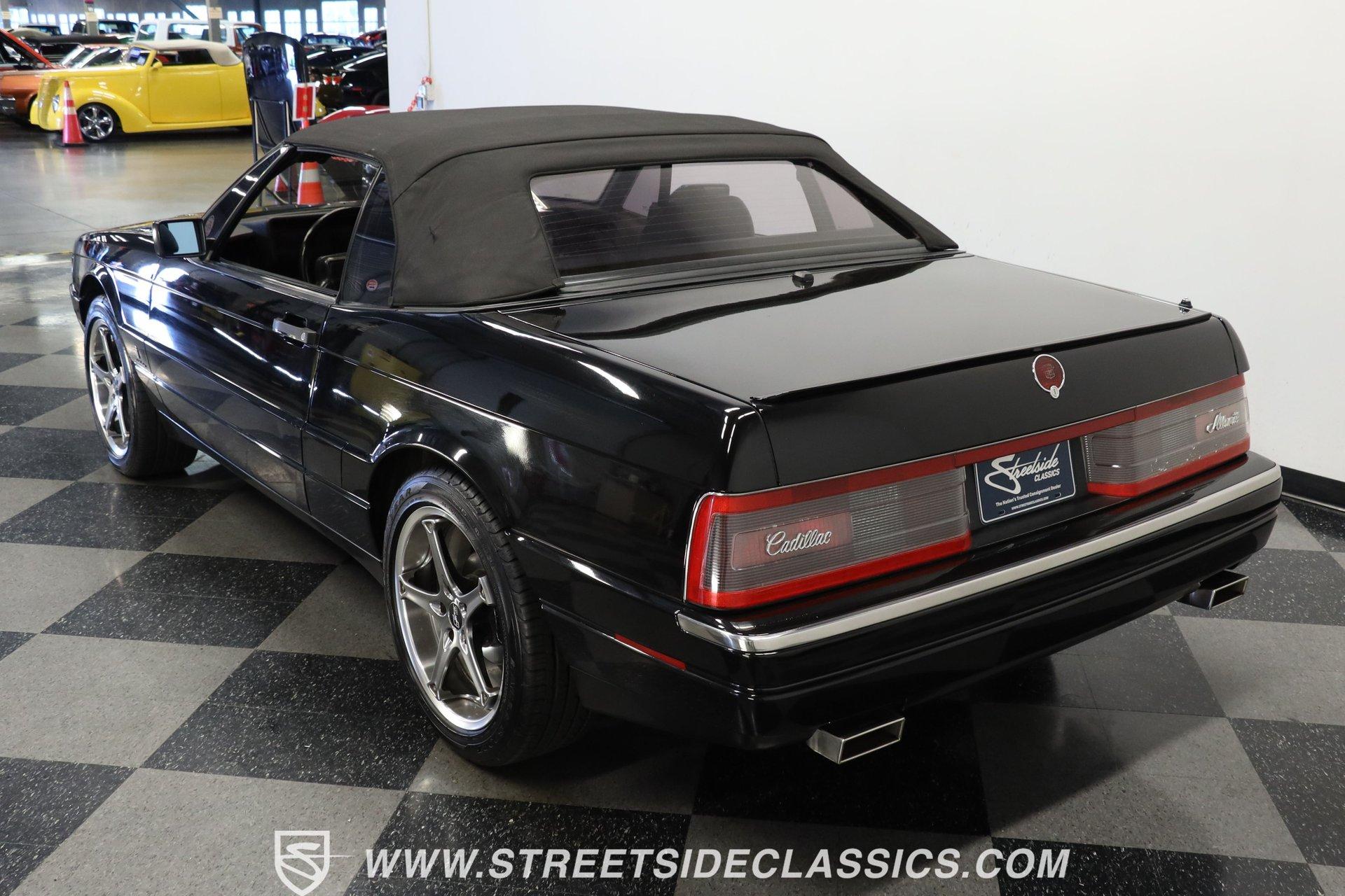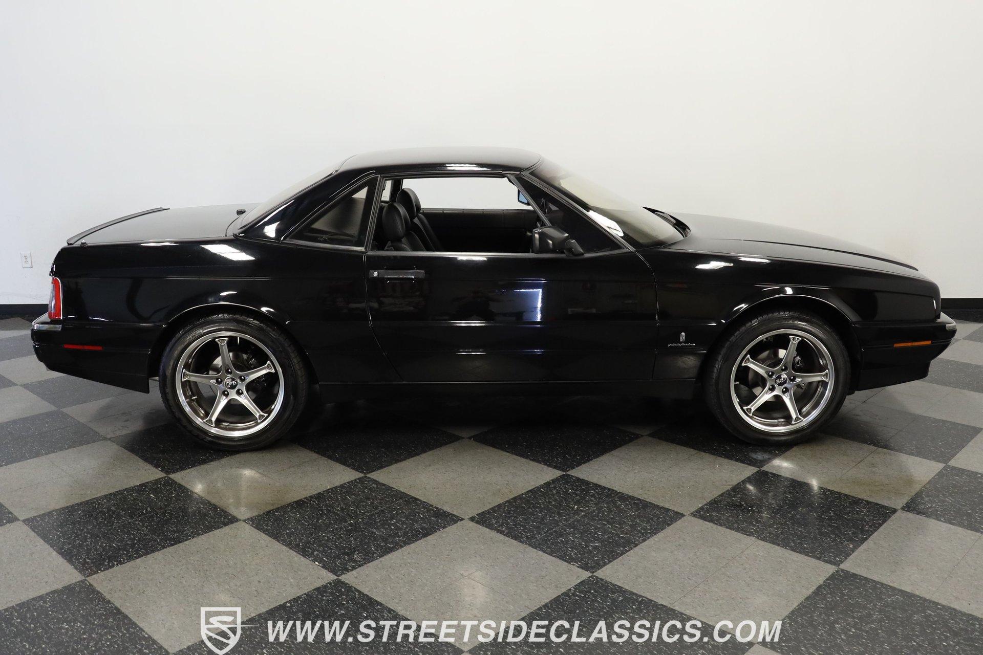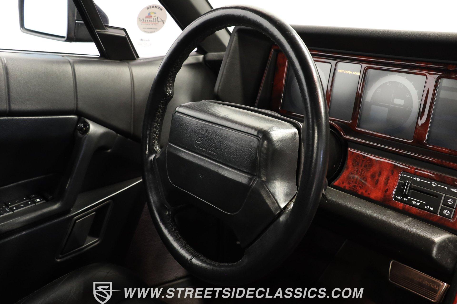 Hand-built in Italy by Pininfarina for its first six years of production, this 1991 Cadillac Allante in black comes equipped with both a black cloth convertible soft top and rarely optioned removable black hardtop. The 18" Enkei alloy wheels are mounted with 245/45R18 tires, while power trunk operation and tinted window glass add to the luxury roadster's appeal. Clean door jambs and properly functioning doors and hood complete the exterior package. Charcoal leather bucket seats dominate the interior space, complemented by clean faux wood trim accents throughout the cabin. Power seats, power windows, power locks, and power mirrors provide modern convenience, while air conditioning and tilt wheel add to driver comfort. The AM/FM radio includes both cassette player and CD player functionality, with an additional CD changer located in the carpeted trunk. Recently added Sirius satellite radio brings contemporary connectivity to the luxury cabin. The fuel-injected 4.5 Liter V8 engine connects to a 4-speed automatic transmission with overdrive. Power steering and power brakes handle the driving duties, while four-wheel disc brakes with anti-lock capability provide stopping power. Independent suspension front and rear, combined with the dual exhaust system, complete the mechanical package in the well-maintained engine bay. HIGHLIGHTS: 4.5 Liter V8 Engine Electronic Fuel Injection 4 Speed Automatic Transmission with Overdrive Four Wheel Disc Brakes Anti-Lock Brake System Independent Front and Rear Suspension Dual Exhaust Serpentine Belt System Black Paint Black Cloth Convertible Soft Top Removable Black Hardtop 18" Enkei Alloy Wheels with 245/45R18 Tires Power Trunk Tinted Window Glass Charcoal Leather Interior with Power Bucket Seats Faux Wood Trim Power Windows Power Locks Power Mirrors Air Conditioning Tilt Wheel Power Steering Console Shifter AM/FM Satellite Radio, Cassette, CD CD Changer in Trunk Original Window Sticker Service Receipts With its triple black configuration, 4.5L V8 power, and dual-top versatility, this 1991 Cadillac Allante provides luxury roadster motoring with Italian craftsmanship and American comfort. Call today! We can assist you with getting an Extended Vehicle Service Plan from Freedom Warranty, which provides comprehensive coverage that can save thousands of dollars on unexpected repairs. Inquire for more details and pricing!