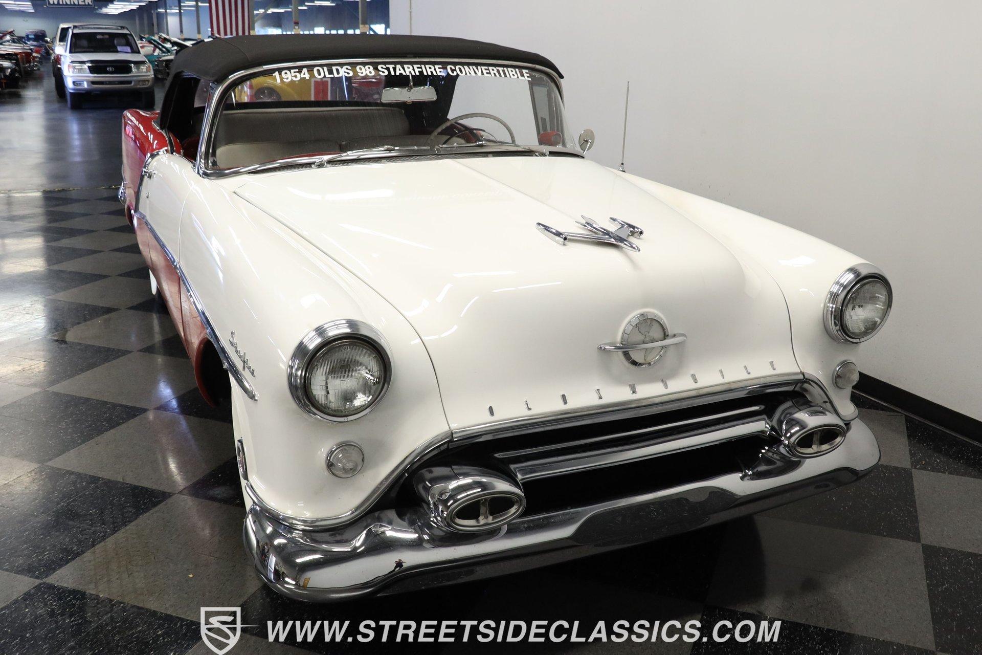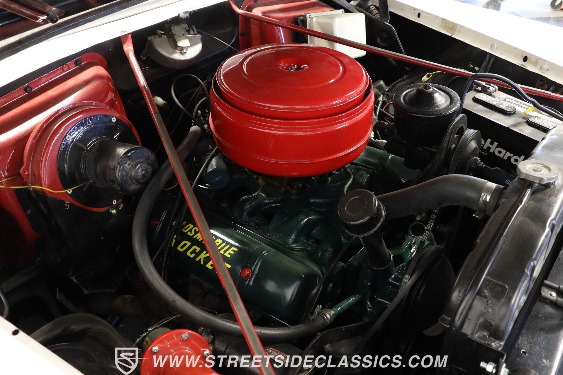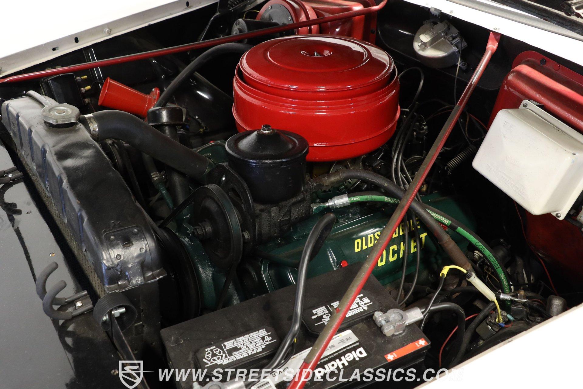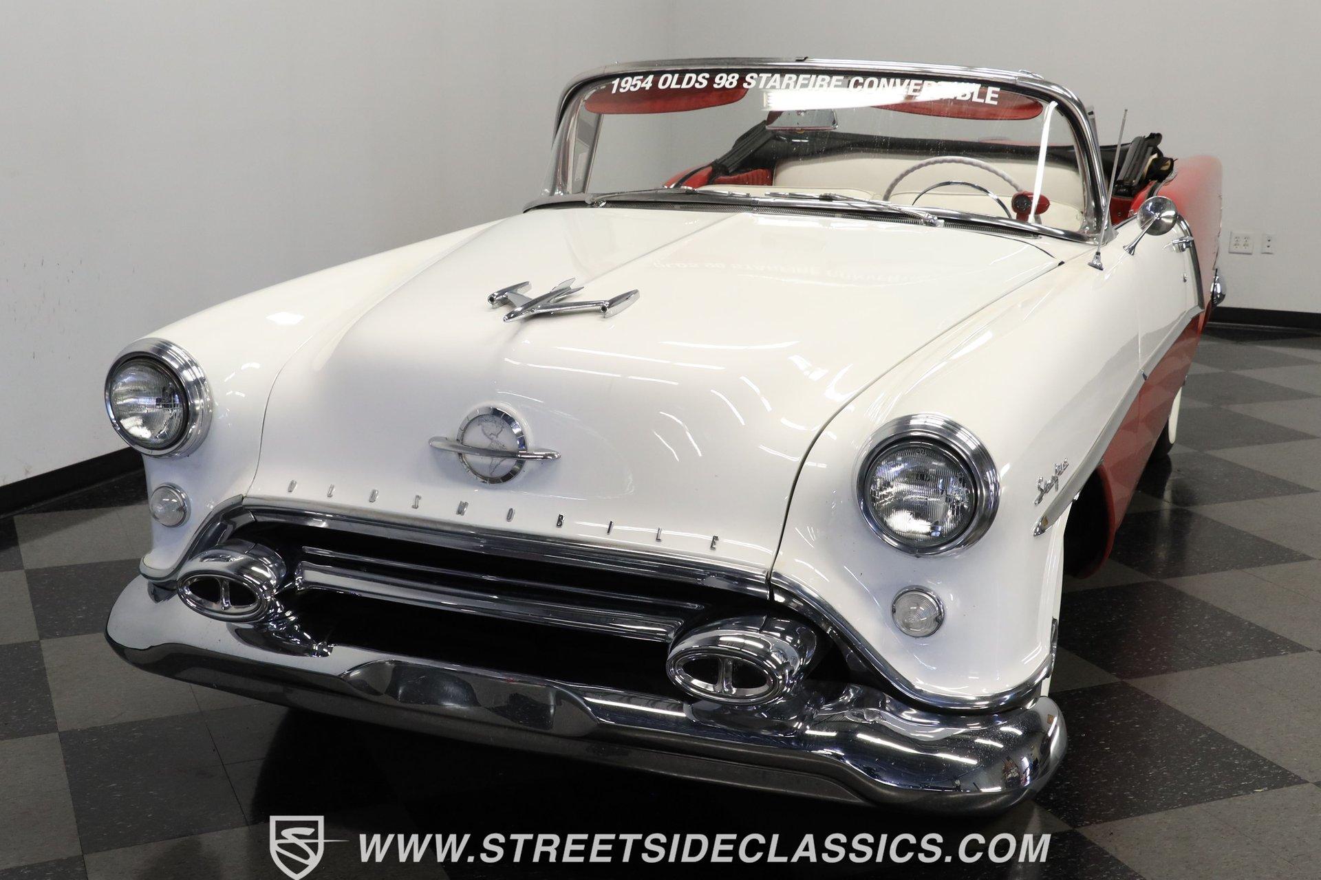 Marking the debut year for the Starfire nameplate, this 1954 Oldsmobile Starfire Convertible represents the top-tier, highest-priced, and lowest-volume Oldsmobile produced that year. The striking two-tone Red and White exterior creates a bold visual contrast that defines this classic American convertible. A black power-operated convertible top with rear plastic window adds versatility to the open-air driving experience. Front and rear chrome bumpers along with elegant trim work appear in good condition, complementing the car's flowing lines. The 15-inch wheels with chrome spoke hub caps and 235/75R15 whitewall radial tires complete this Starfire's road presence. Color-coordinated Red and White interior maintains the exterior's striking theme. The dash features a matching Red and White paint scheme that houses period-correct gauges, adding authenticity to the cabin experience. Chrome accents throughout the dash and doors provide classic 1950s luxury styling. Comfort and convenience come from the split front bench seat, while power windows add a touch of luxury uncommon for vehicles of this era. The column-mounted shifter keeps the cabin floor uncluttered, while the AM radio adds period-appropriate entertainment options. Mechanical specifications showcase Oldsmobile's engineering prowess with the 324 Rocket V8 engine. This powerplant breathes through a 4-barrel carburetor with oil bath breather, while a vacuum advance distributor manages ignition timing. The 4-speed Hydramatic automatic transmission handles power delivery to the rear wheels. Driving ease comes courtesy of power steering, while standard drum brakes provide stopping power. The cooling system features a standard radiator with belt-driven fan. The period-correct engine bay maintains this Starfire's authentic appearance. HIGHLIGHTS: 324 Rocket V8 Engine 4-Speed Hydramatic Automatic Transmission 4-Barrel Carburetor with Oil Bath Breather Vacuum Advance Distributor Drum Brakes Belt-Driven Cooling Fan Standard Radiator Red and White Two-Tone Paint Black Power Convertible Top with Rear Plastic Window Front and Rear Chrome Bumpers and Trim 15" Wheels with Chrome Spoke Hub Caps 235/75R15 Whitewall Radial Tires Red and White Interior with Split Bench Seat Power Windows Manual Door Locks Period-Correct Gauges Column Shifter Power Steering AM Radio Red and White Painted Dash From its first-year Starfire heritage to its powerful Rocket V8 engine, this 1954 Oldsmobile Starfire Convertible delivers American automotive luxury in an elegant open-top package. The two-tone styling and premium features make this rare Oldsmobile a standout example of 1950s automotive design. Call today! We can assist you with getting an Extended Vehicle Service Plan from Freedom Warranty, which provides comprehensive coverage that can save thousands of dollars on unexpected repairs. Inquire for more details and pricing!