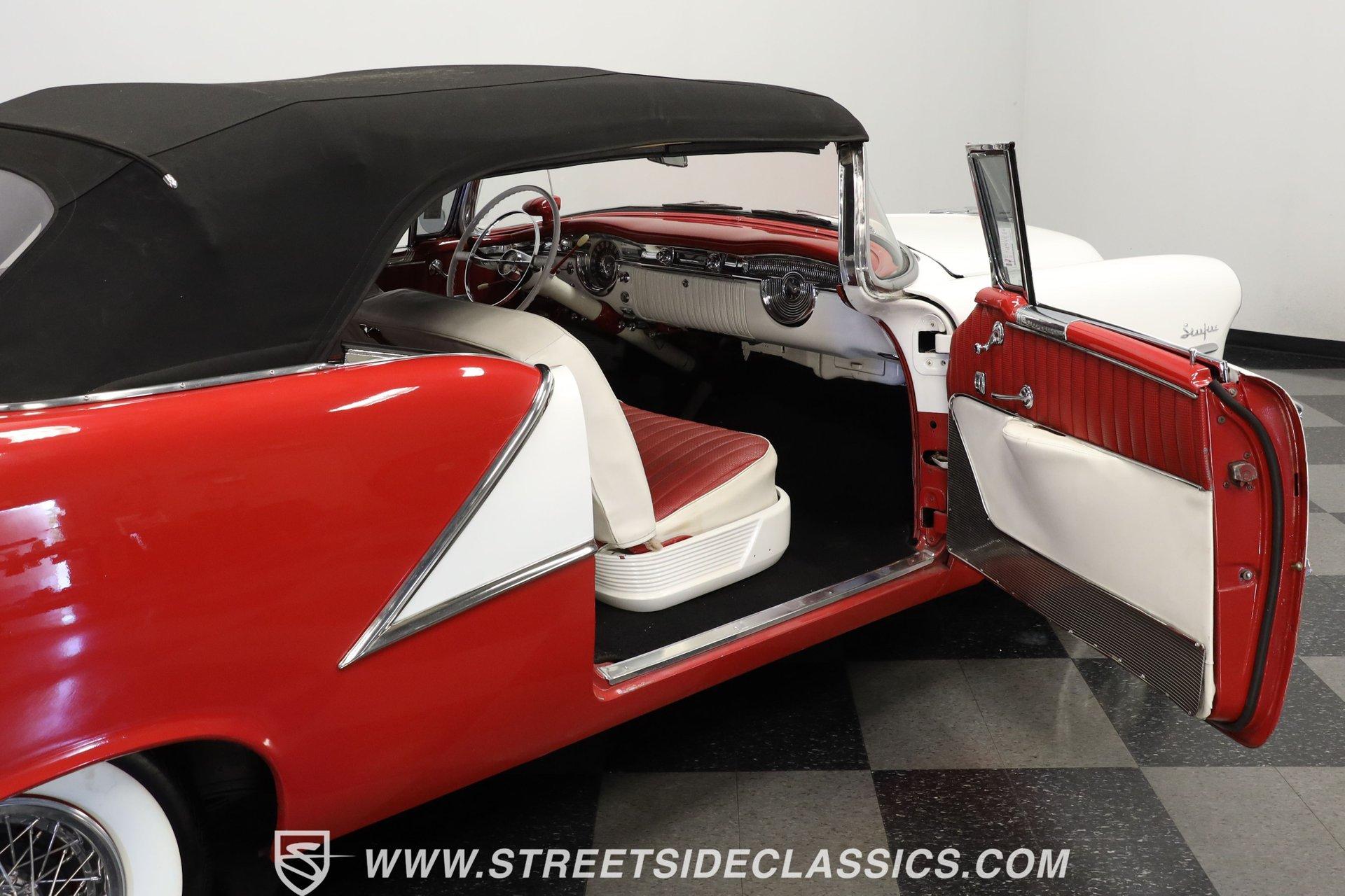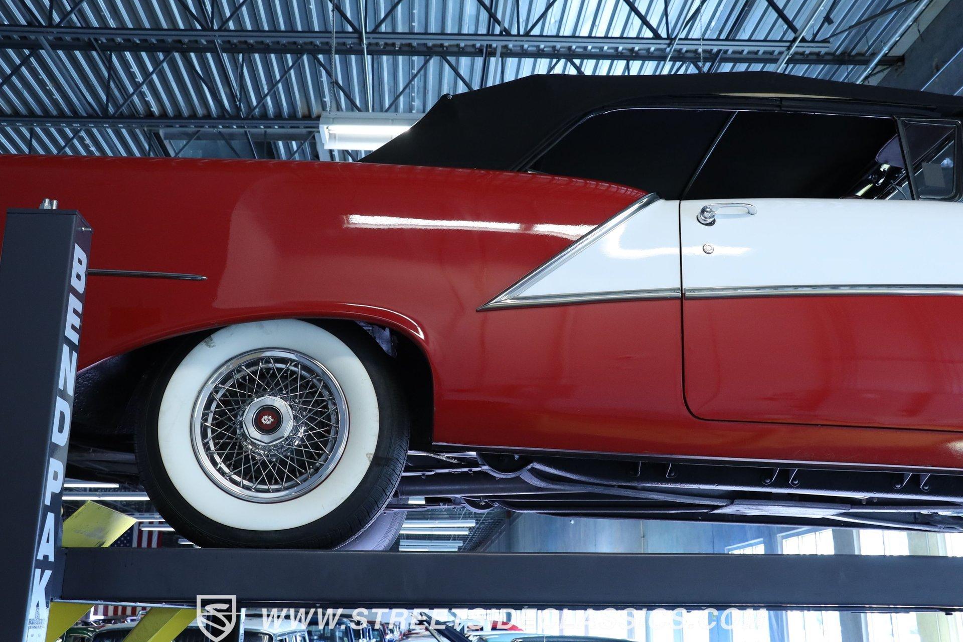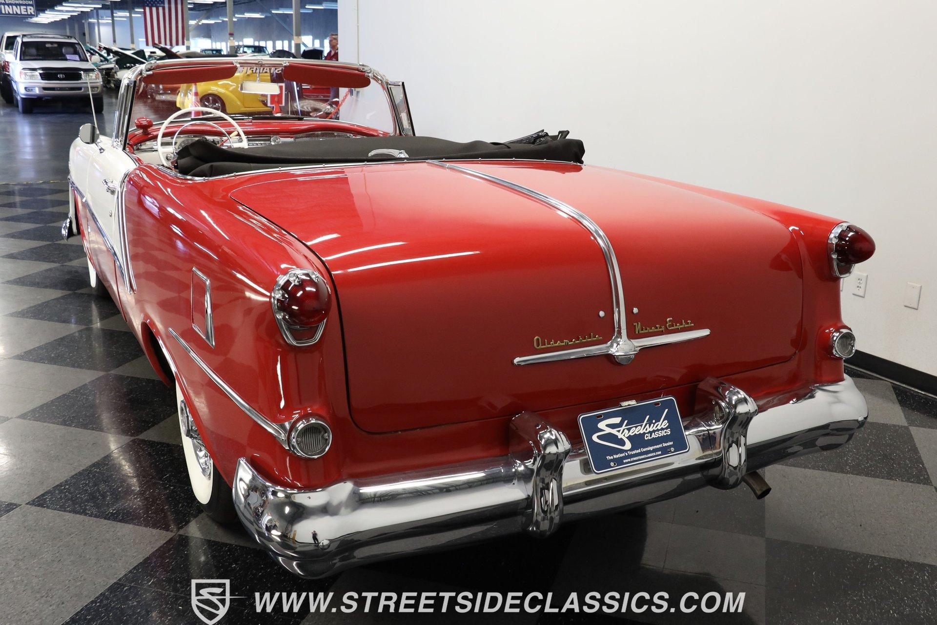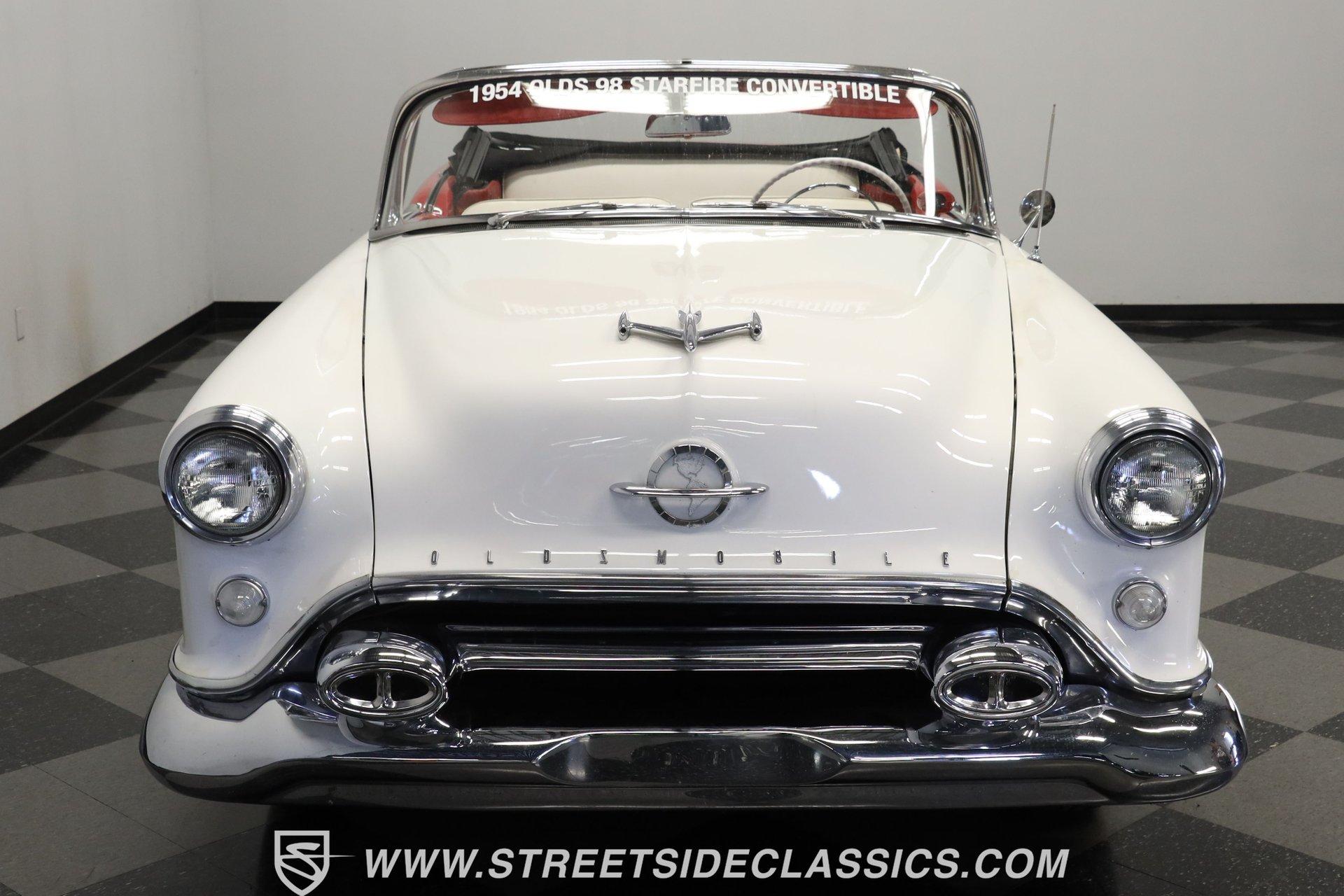 Marking the debut year for the Starfire nameplate, this 1954 Oldsmobile Starfire Convertible represents the top-tier, highest-priced, and lowest-volume Oldsmobile produced that year. The striking two-tone Red and White exterior creates a bold visual contrast that defines this classic American convertible. A black power-operated convertible top with rear plastic window adds versatility to the open-air driving experience. Front and rear chrome bumpers along with elegant trim work appear in good condition, complementing the car's flowing lines. The 15-inch wheels with chrome spoke hub caps and 235/75R15 whitewall radial tires complete this Starfire's road presence. Color-coordinated Red and White interior maintains the exterior's striking theme. The dash features a matching Red and White paint scheme that houses period-correct gauges, adding authenticity to the cabin experience. Chrome accents throughout the dash and doors provide classic 1950s luxury styling. Comfort and convenience come from the split front bench seat, while power windows add a touch of luxury uncommon for vehicles of this era. The column-mounted shifter keeps the cabin floor uncluttered, while the AM radio adds period-appropriate entertainment options. Mechanical specifications showcase Oldsmobile's engineering prowess with the 324 Rocket V8 engine. This powerplant breathes through a 4-barrel carburetor with oil bath breather, while a vacuum advance distributor manages ignition timing. The 4-speed Hydramatic automatic transmission handles power delivery to the rear wheels. Driving ease comes courtesy of power steering, while standard drum brakes provide stopping power. The cooling system features a standard radiator with belt-driven fan. The period-correct engine bay maintains this Starfire's authentic appearance. HIGHLIGHTS: 324 Rocket V8 Engine 4-Speed Hydramatic Automatic Transmission 4-Barrel Carburetor with Oil Bath Breather Vacuum Advance Distributor Drum Brakes Belt-Driven Cooling Fan Standard Radiator Red and White Two-Tone Paint Black Power Convertible Top with Rear Plastic Window Front and Rear Chrome Bumpers and Trim 15" Wheels with Chrome Spoke Hub Caps 235/75R15 Whitewall Radial Tires Red and White Interior with Split Bench Seat Power Windows Manual Door Locks Period-Correct Gauges Column Shifter Power Steering AM Radio Red and White Painted Dash From its first-year Starfire heritage to its powerful Rocket V8 engine, this 1954 Oldsmobile Starfire Convertible delivers American automotive luxury in an elegant open-top package. The two-tone styling and premium features make this rare Oldsmobile a standout example of 1950s automotive design. Call today! We can assist you with getting an Extended Vehicle Service Plan from Freedom Warranty, which provides comprehensive coverage that can save thousands of dollars on unexpected repairs. Inquire for more details and pricing!