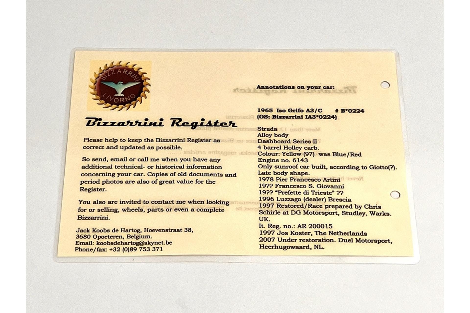 Today, the Bizzarrini 5300 GT Strada remains in impeccable and race-ready condition. Additionally, the car is registered as a road car in the Netherlands, providing the future owner with the option to either race it or use it for fast road rallies.