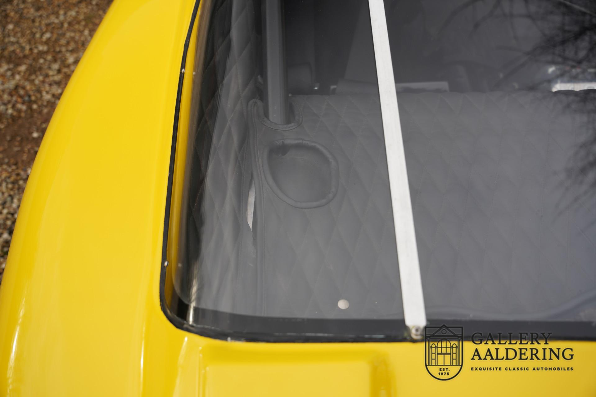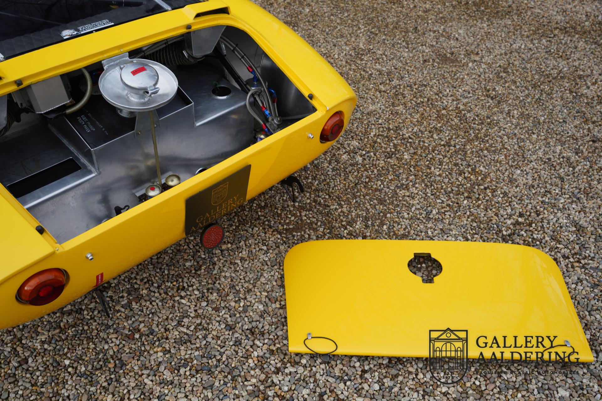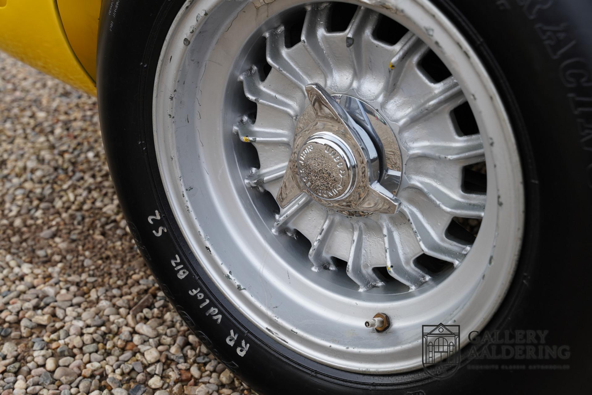 The exquisite yellow Bizzarrini offered here, was constructed in 1965 as a Strada version. After passing through several owners in Italy, in 1997, the car was acquired by a well-known gentleman racer in the Netherlands. He promptly initiated a comprehensive restoration and race preparation project, entrusting the work to a distinguished UK company specializing in racing car restoration and race preparation. This extensive undertaking spanned nearly two years, and detailed invoices for the work can be found in the extensive history file that accompanies the car.
